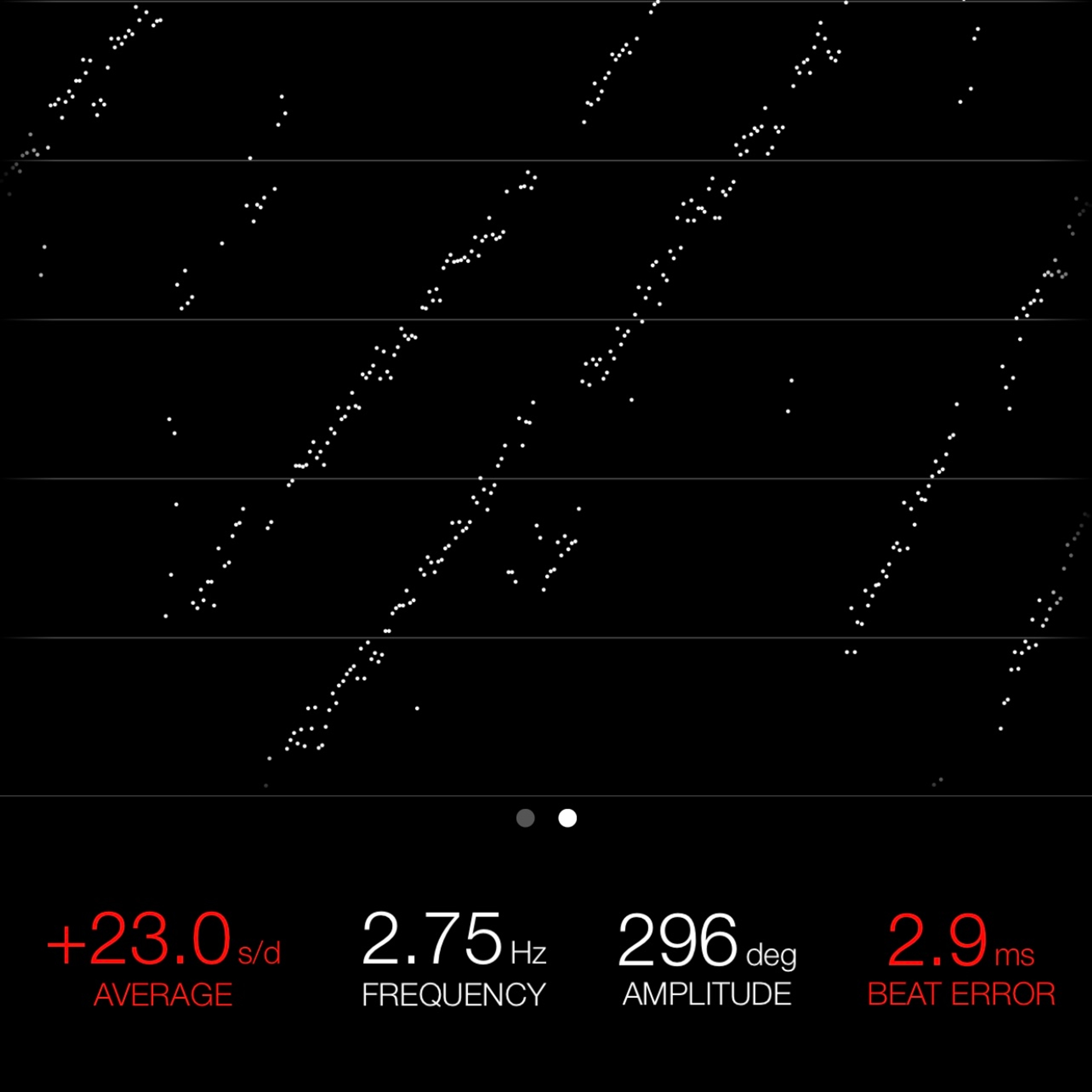 This reading was taken (crown down) with a ONEOF Accuracy Boutique Edition timing machine at time of cataloging. It is provided as a courtesy only, and shall not be construed as a warranty or guarantee of any kind. Please refer to our terms and conditions of sale for more information.
