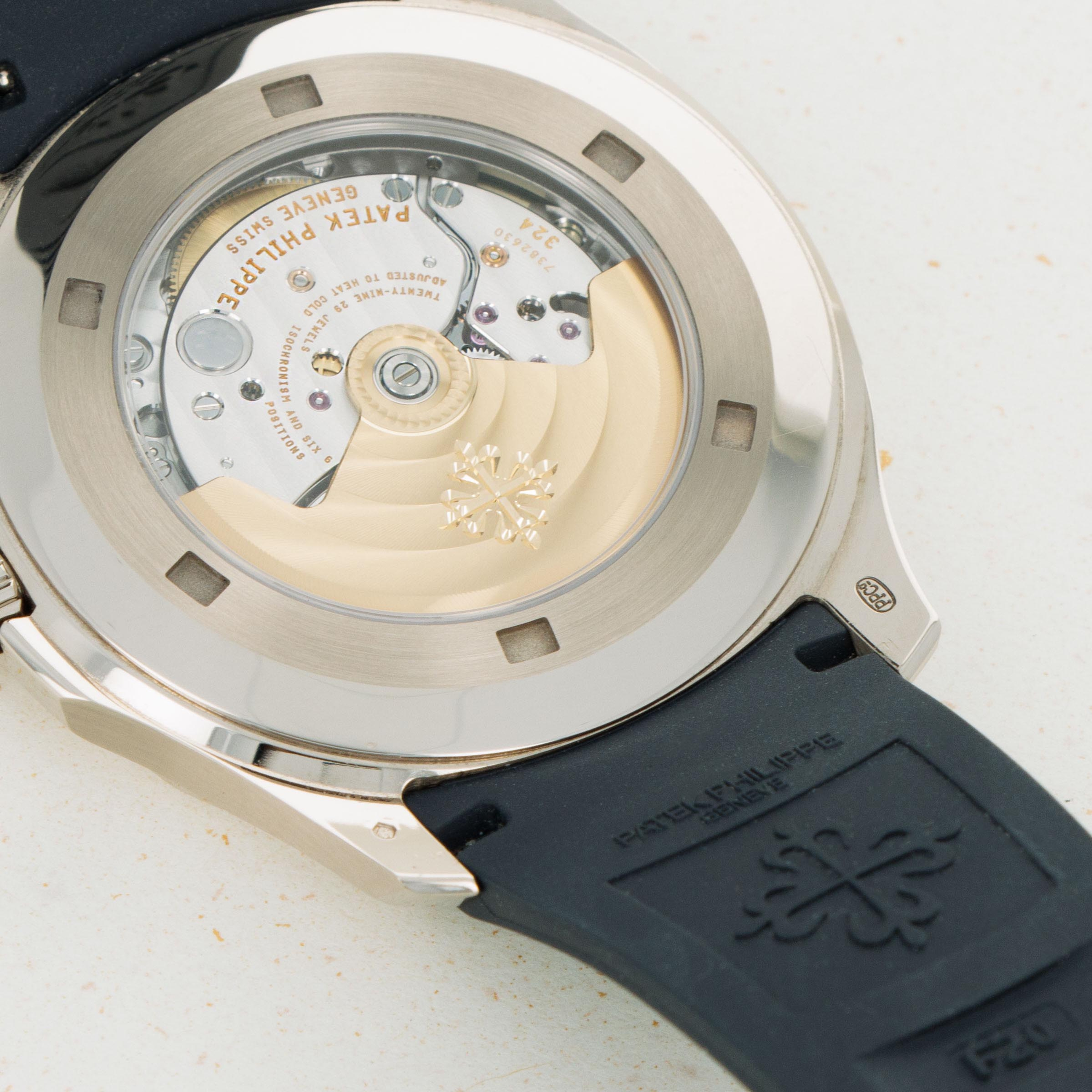 Debuting in 1997, the Patek Philippe Aquanaut was released to engage with a new kind of clientele - a younger, sportier, and trendier watch collector that was newly minted on the back of the dot.com stock market explosion. Released under the same premise as the Nautilus when it was released in 1976 – a trendy watch for a new clientele, the Aquanaut raised suspicions from Patek’s traditional collectors with its position as the first Patek to feature a rubber strap – something collectors saw as a cheap design option at the time. Following on from its debut, the Aquanaut has grown into a rather diverse collection of iconic and sought-after timepieces, with the reference we have here standing as one of the most desirable, the 18kt white gold ref. 5168G. While the latest generation of the Aquanaut was released in 2007 with an updated aesthetic, the ref. 5168G was launched in 2017 as a 20th-anniversary model. Merging the Aquanaut’s robust sports-oriented functionality with a luxurious 18kt white gold construction and Patek Philippe’s holy trinity finishing, the end result is a sports watch with very few equals. Pushing its elegant design to the limit, the Patek Philippe Aquanaut ref. 5168G features an 18kt white gold 42.2mm case, which houses a stunning blue dial with a subtle graduation from its bright blue center to a navy-black along its periphery with the Aquanaut’s signature horizontal embossing across its entire surface. An incredibly luxurious and wonderfully designed timepiece, the ref. 5168G indeed has it all.