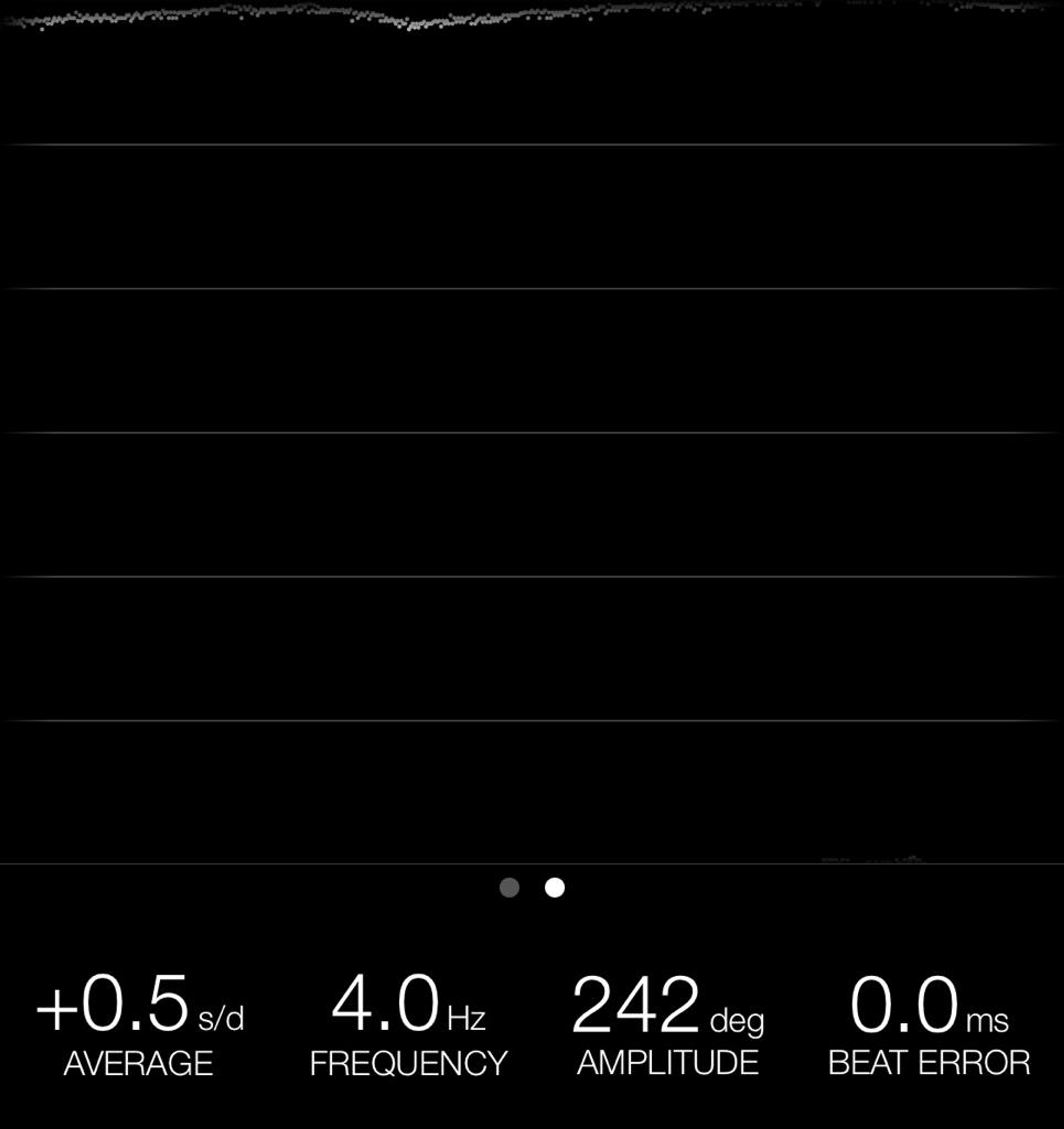 This reading was taken (crown down) with a ONEOF Accuracy Boutique Edition timing machine at time of cataloging. It is provided as a courtesy only, and shall not be construed as a warranty or guarantee of any kind. Please refer to our terms and conditions of sale for more information.