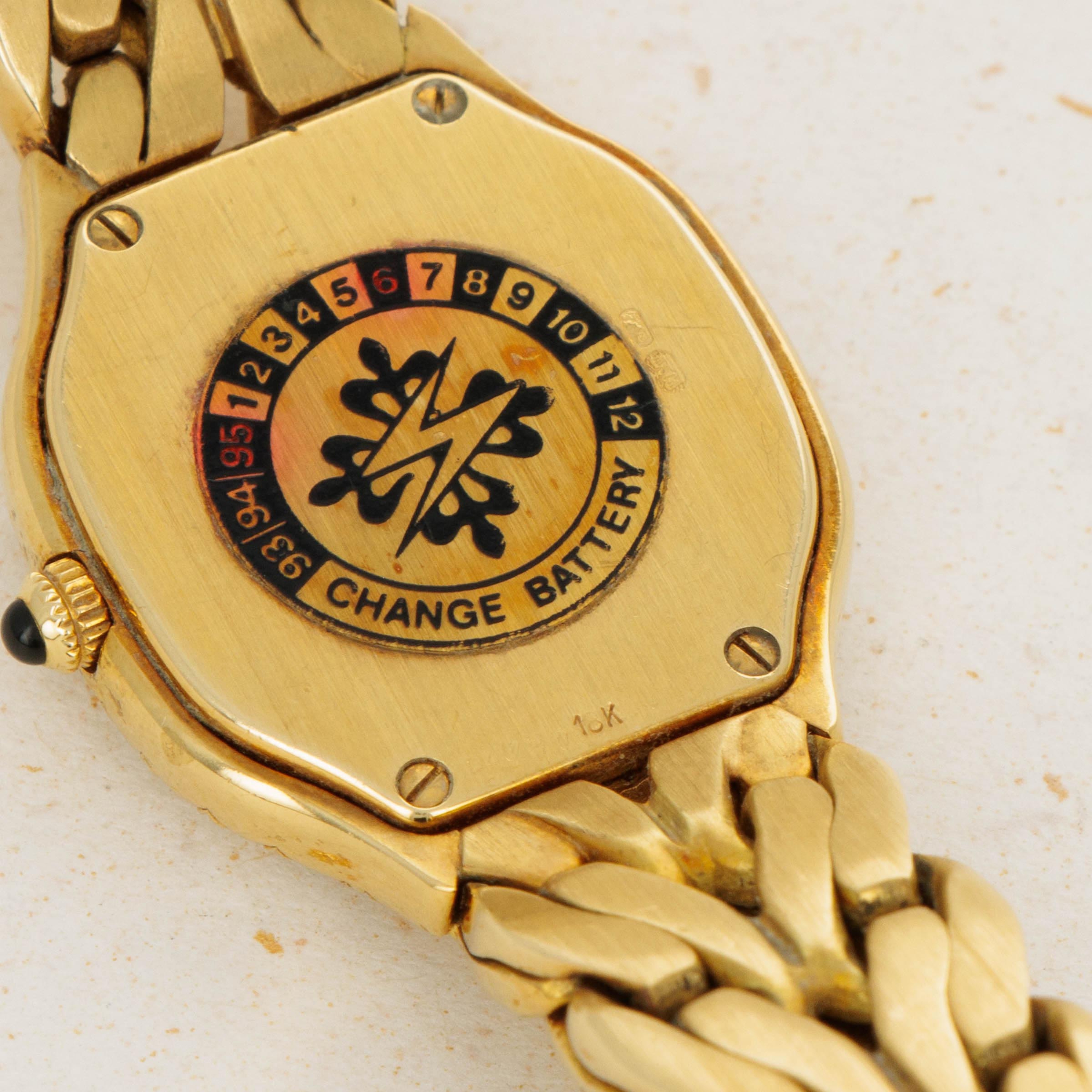 Watch is in excellent overall condition. Case shows light signs of oxidation on the surface, but no major dings or scratches. Bracelet is permanently sized to fit a small wrist. It is approx 5 3/4" in total lenght.