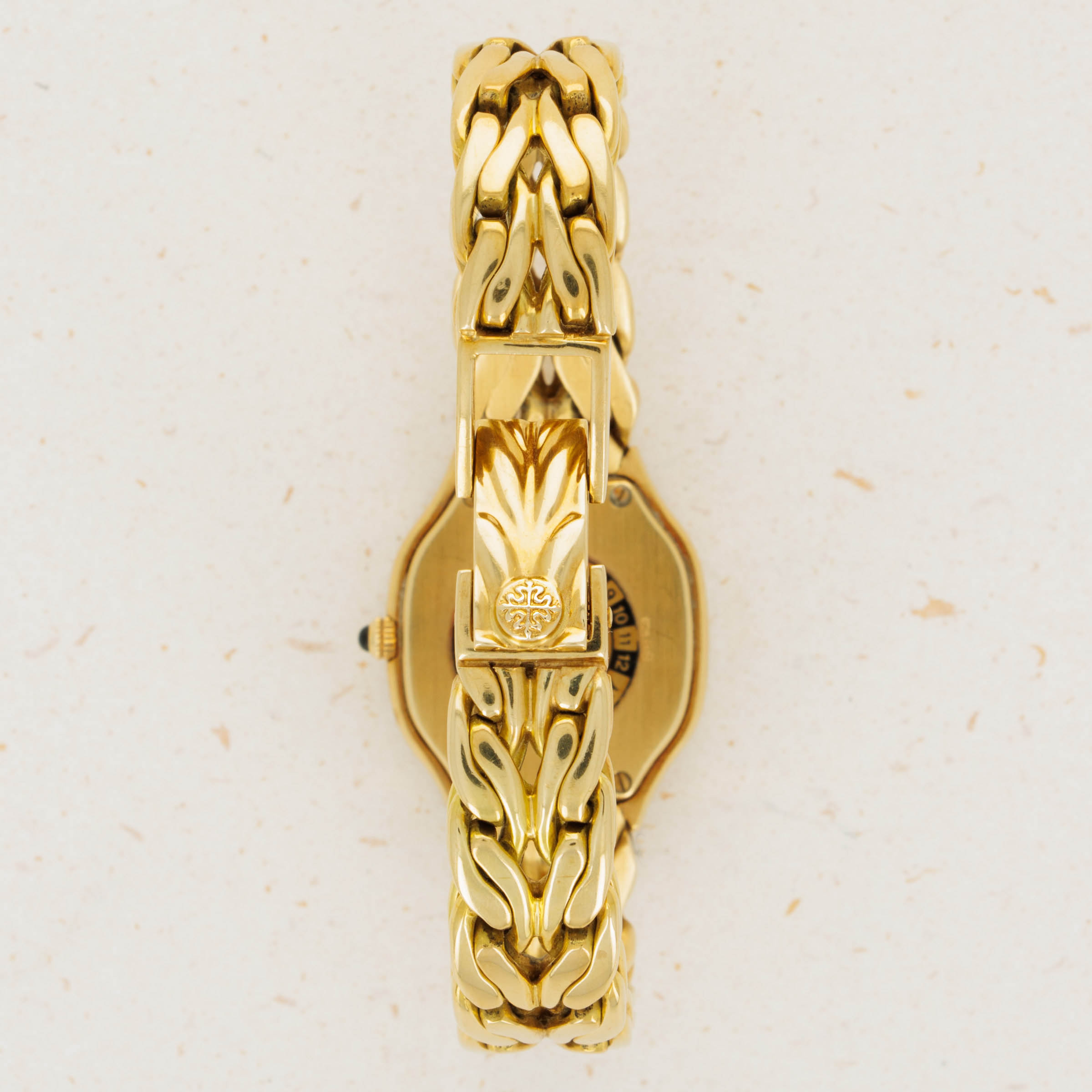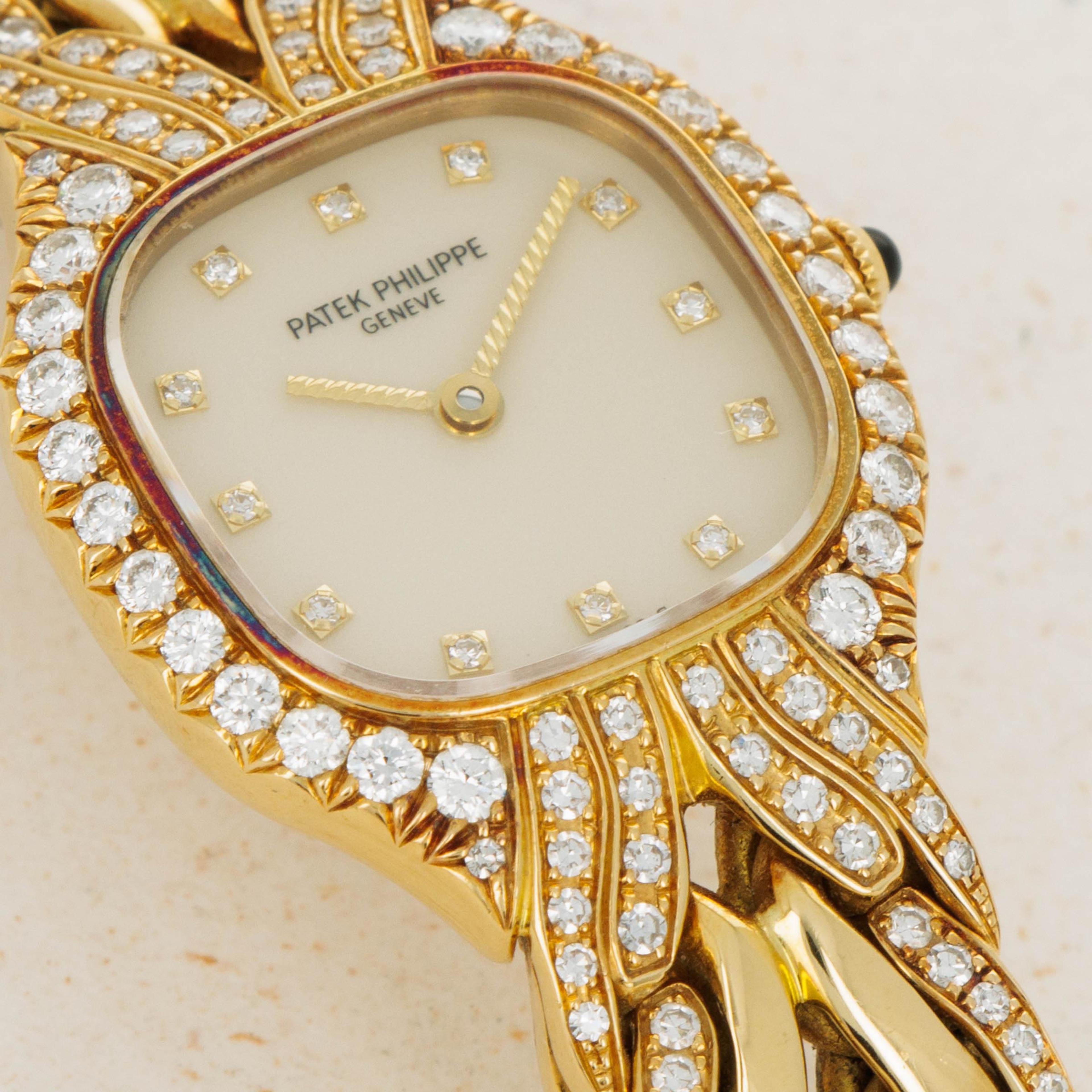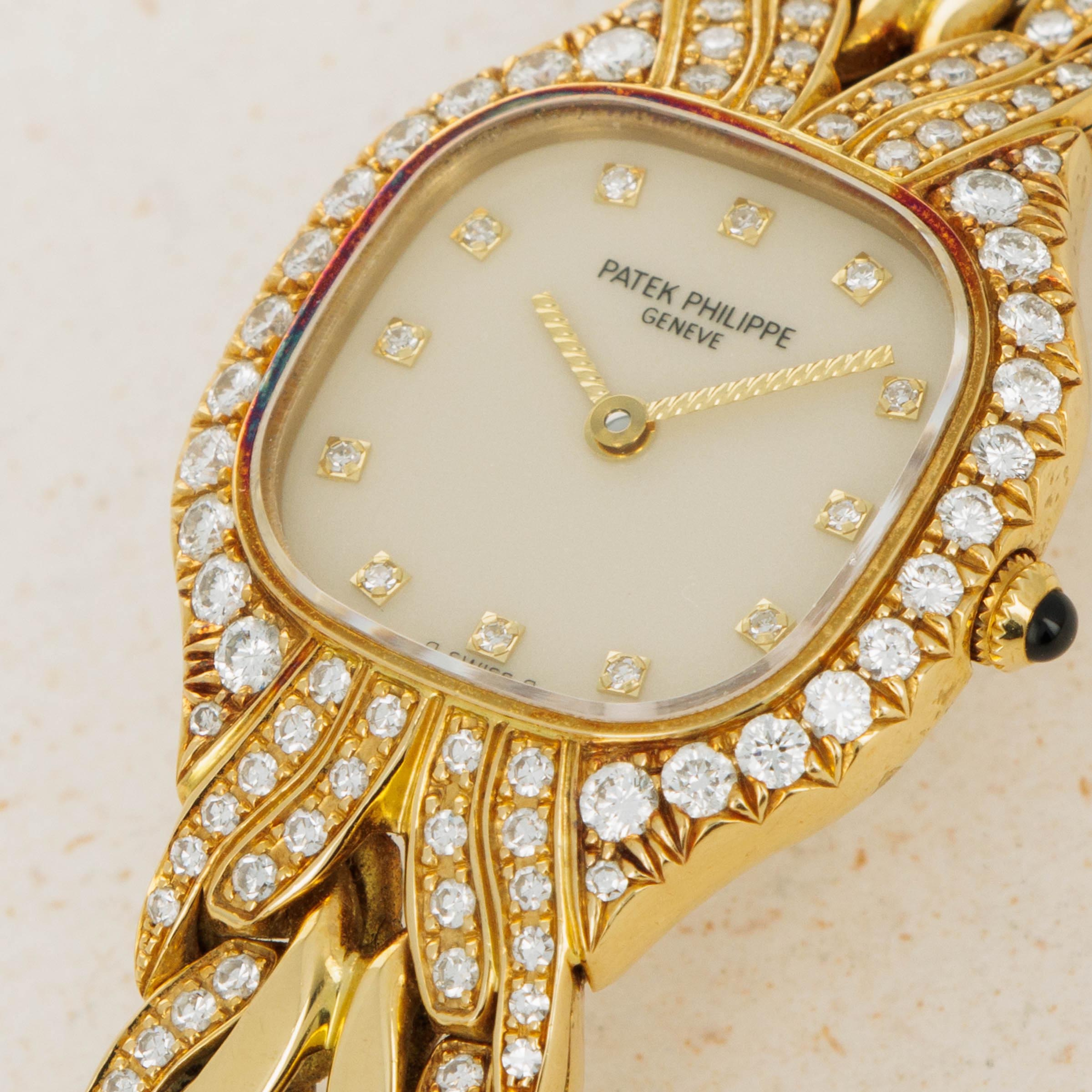 Launched in 1990 as a new extravagant ladies line, the La Flamme collection showcases some of Patek Philippe’s finest work thanks to its exuberant details, impeccable craftsmanship and unique design. A testament to the incredible standard of case making, bracelet making, and gem setting that Patek Philippe was, and still is, capable of, the La Flamme was an exhibition in jewellery-making as it was an incredible timepiece. Boasting a beautifully executed case and a twisting integrated bracelet that are both set with a beautiful diamonds and topped with elaborate engravings, the La Flamme is a visually exciting piece that does not hold back. Featuring a wonderful cream-tone dial with diamond set hour markers and even decorated hands that are engraved just like its case, the La Flamme is perhaps one of Patek’s most impressive neo-vintage offerings that simultaneously represents fantastic value for those who want to carry its bold presence on their wrist.