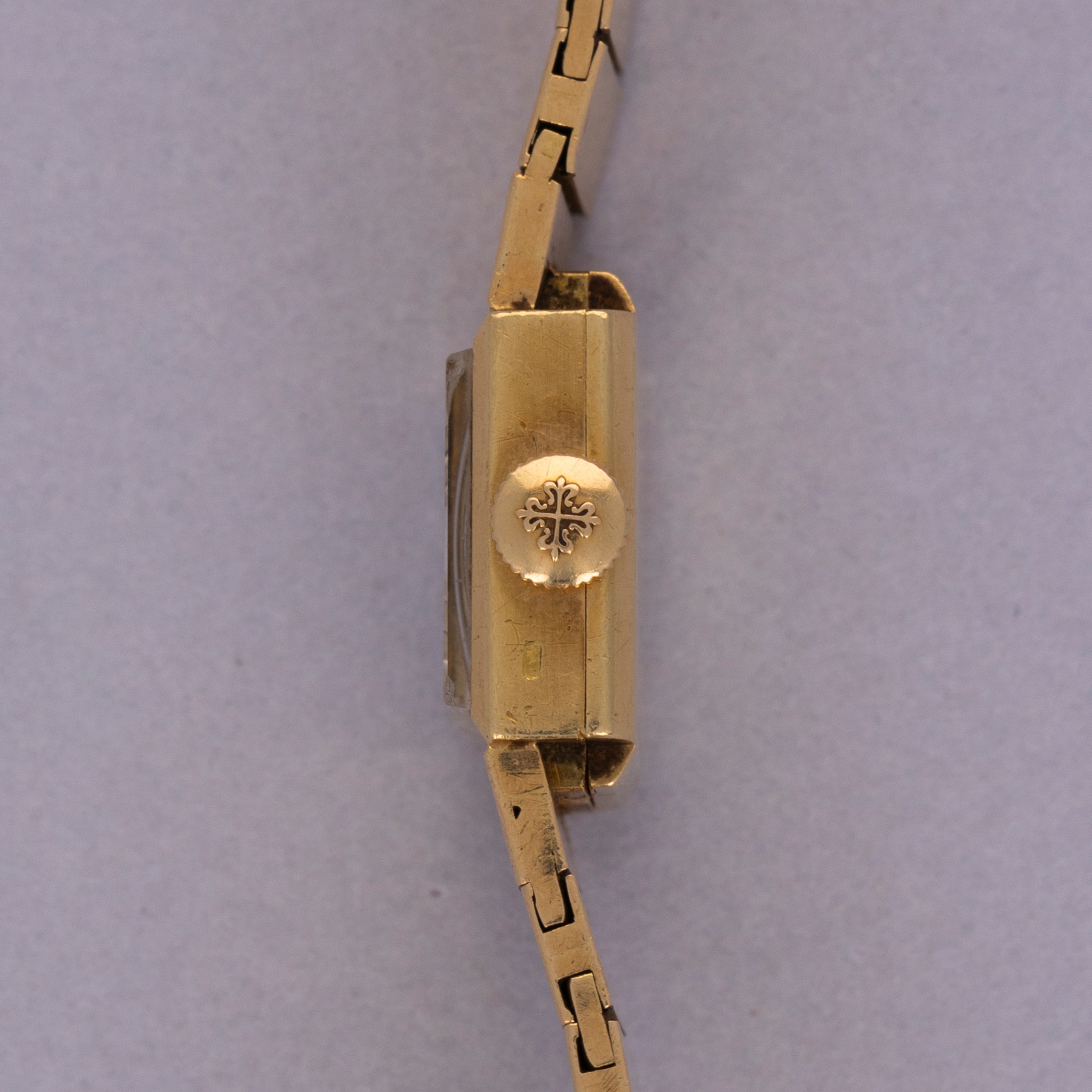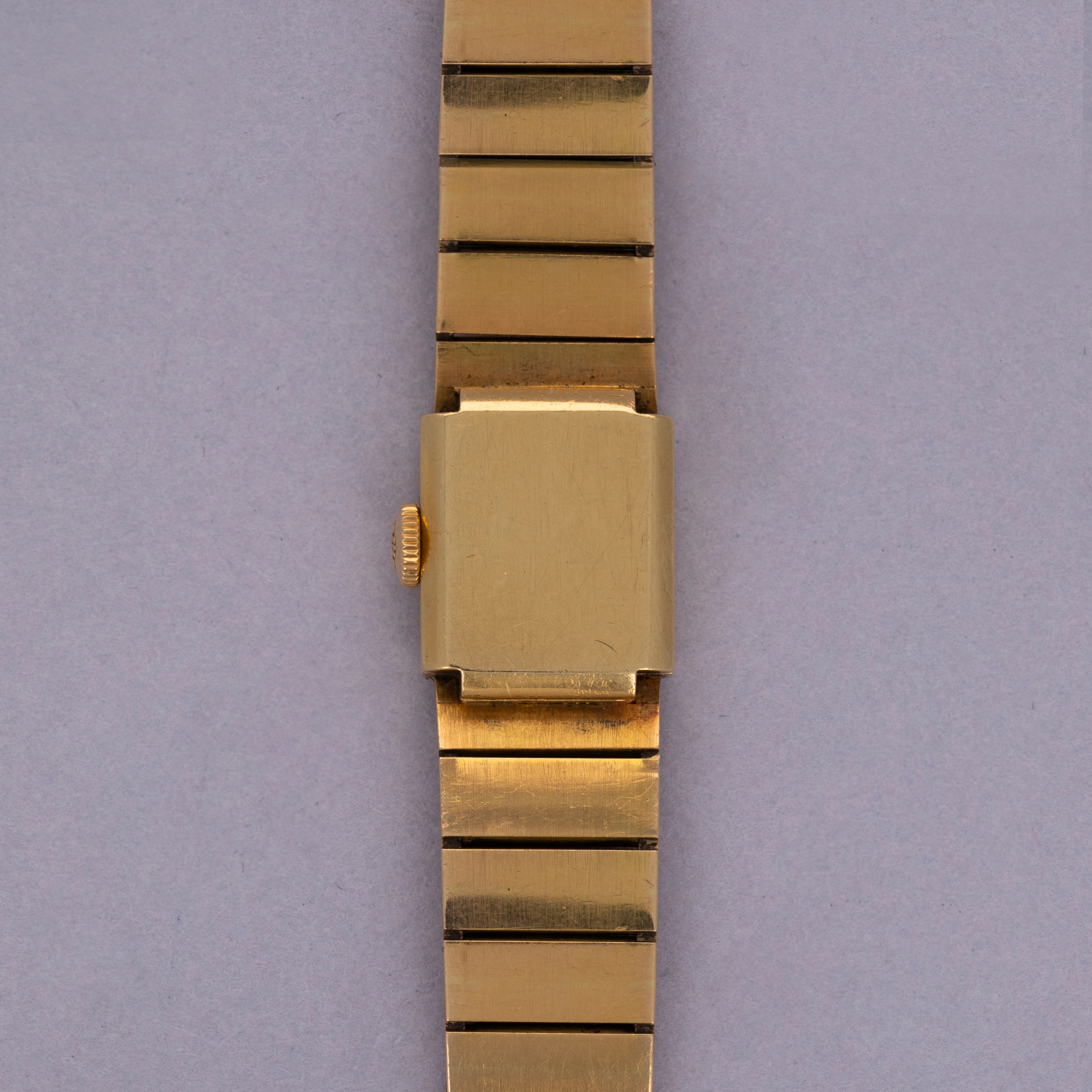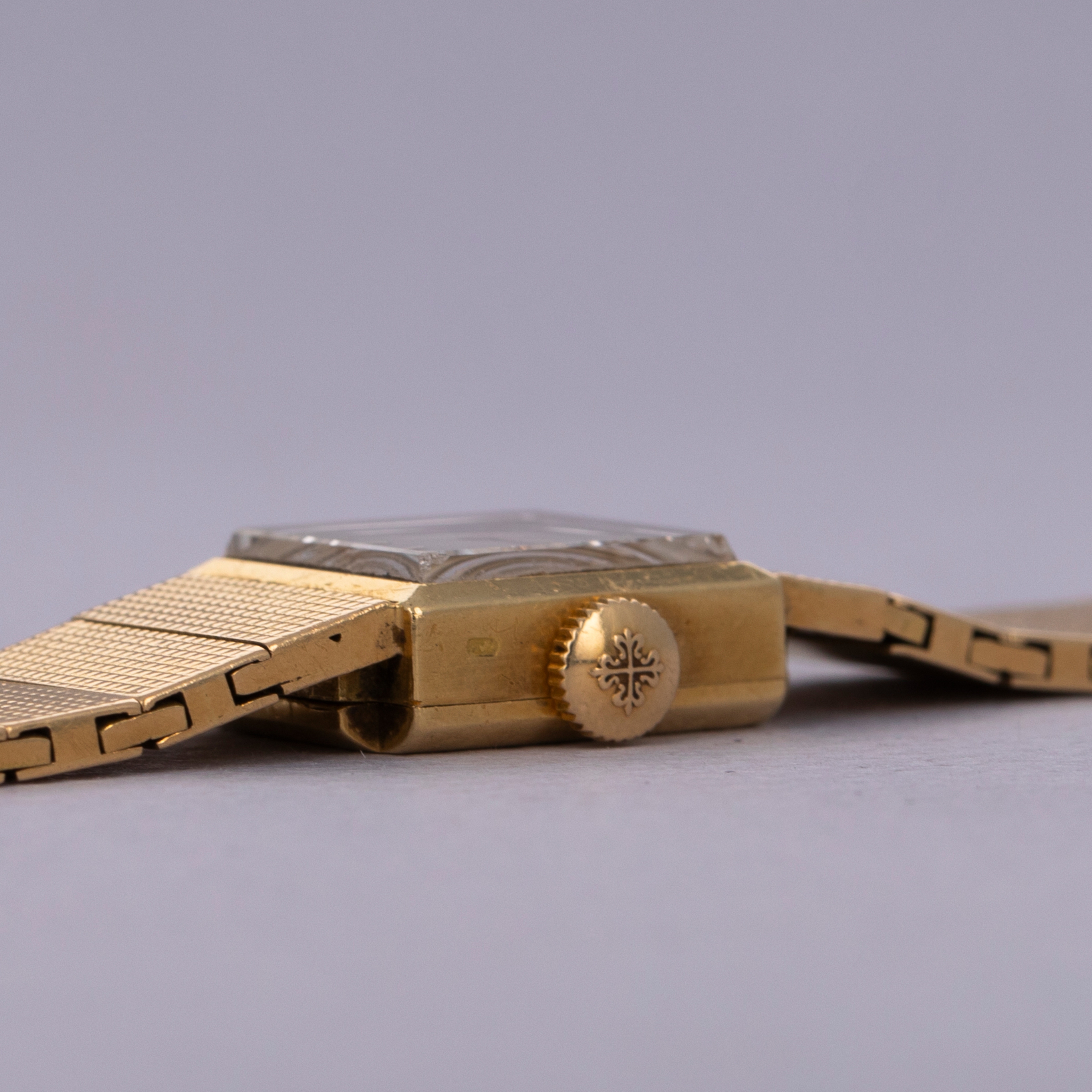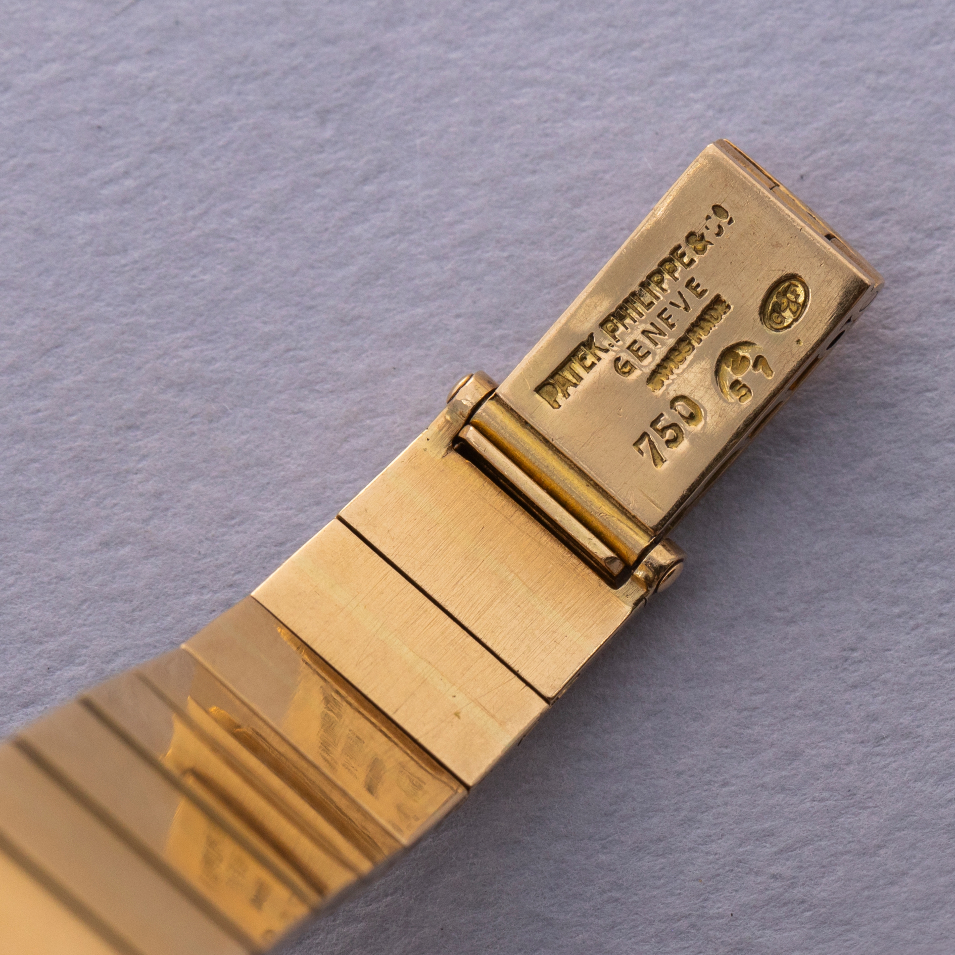 While its 15mm x 15mm 18kt yellow gold case is certainly on the svelte size of things, the ref. 3086's 18kt yellow gold bracelet adds some considerable heft to its wrist presence.