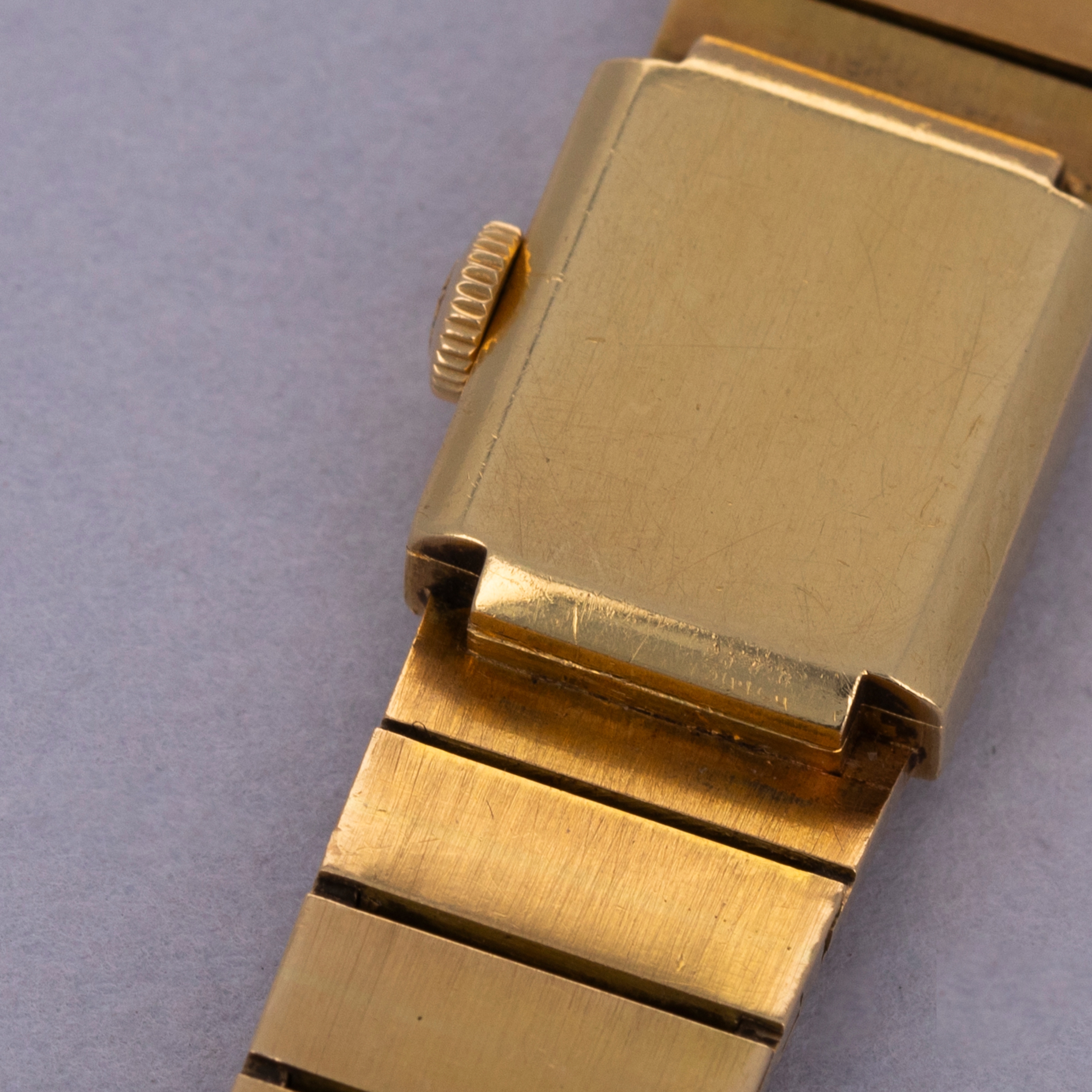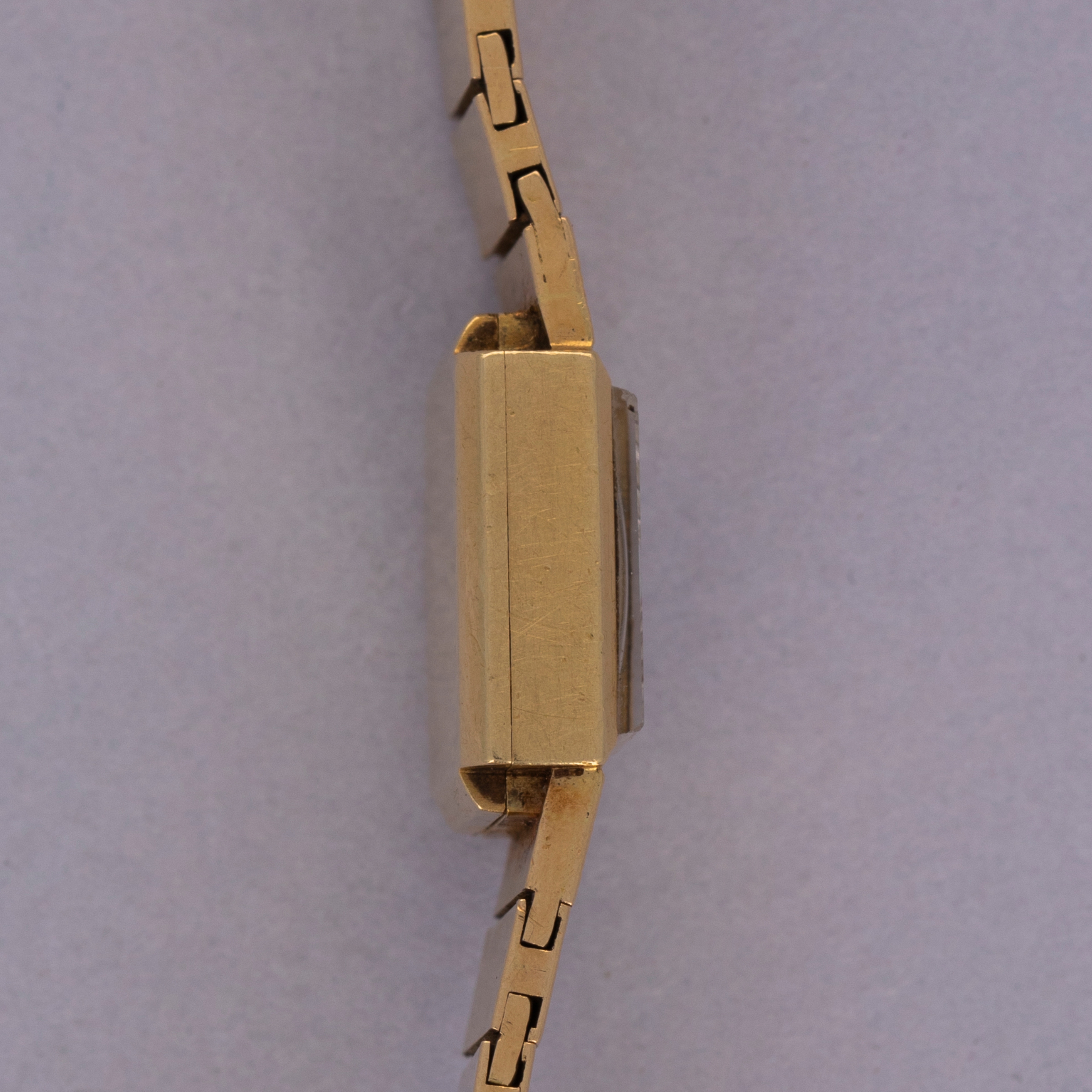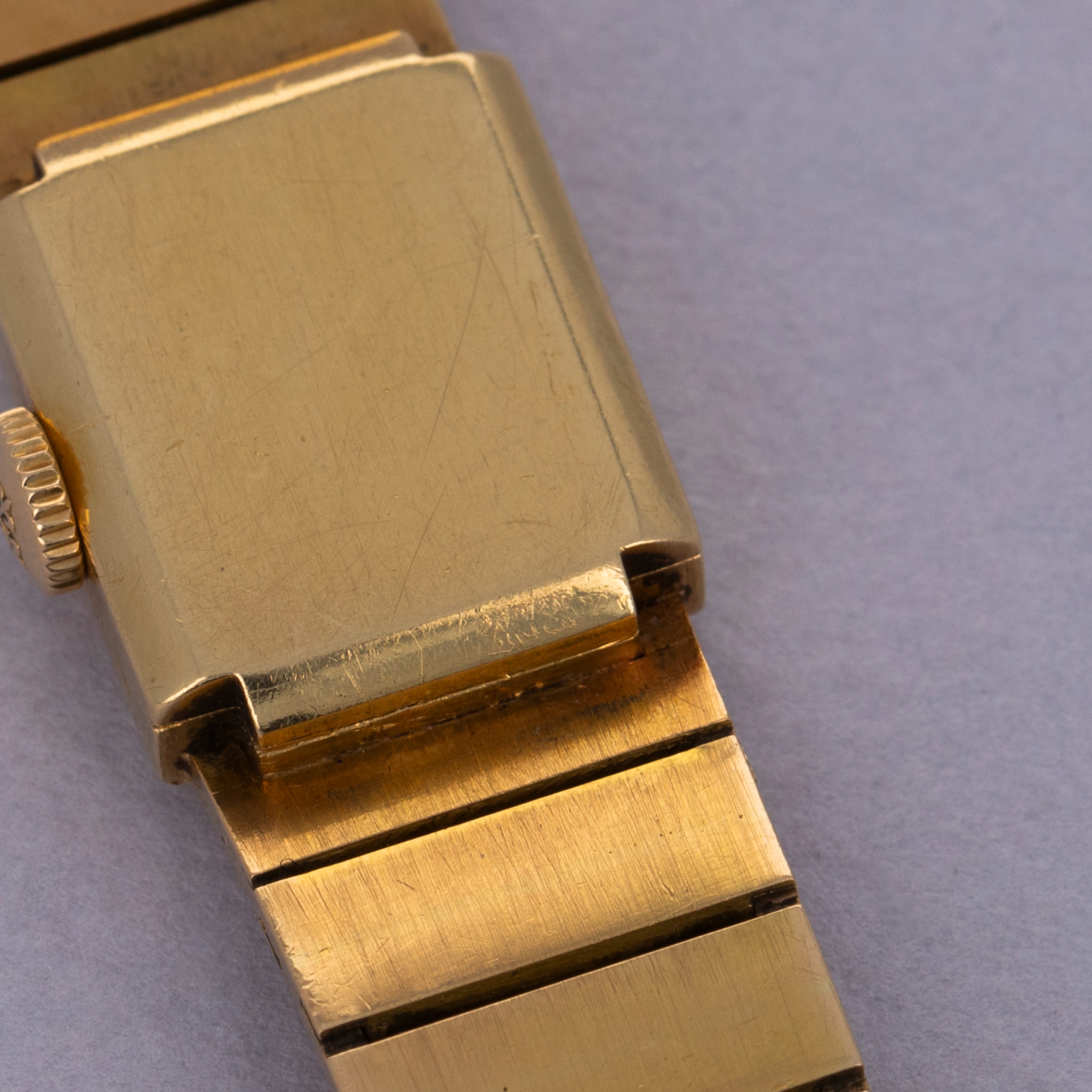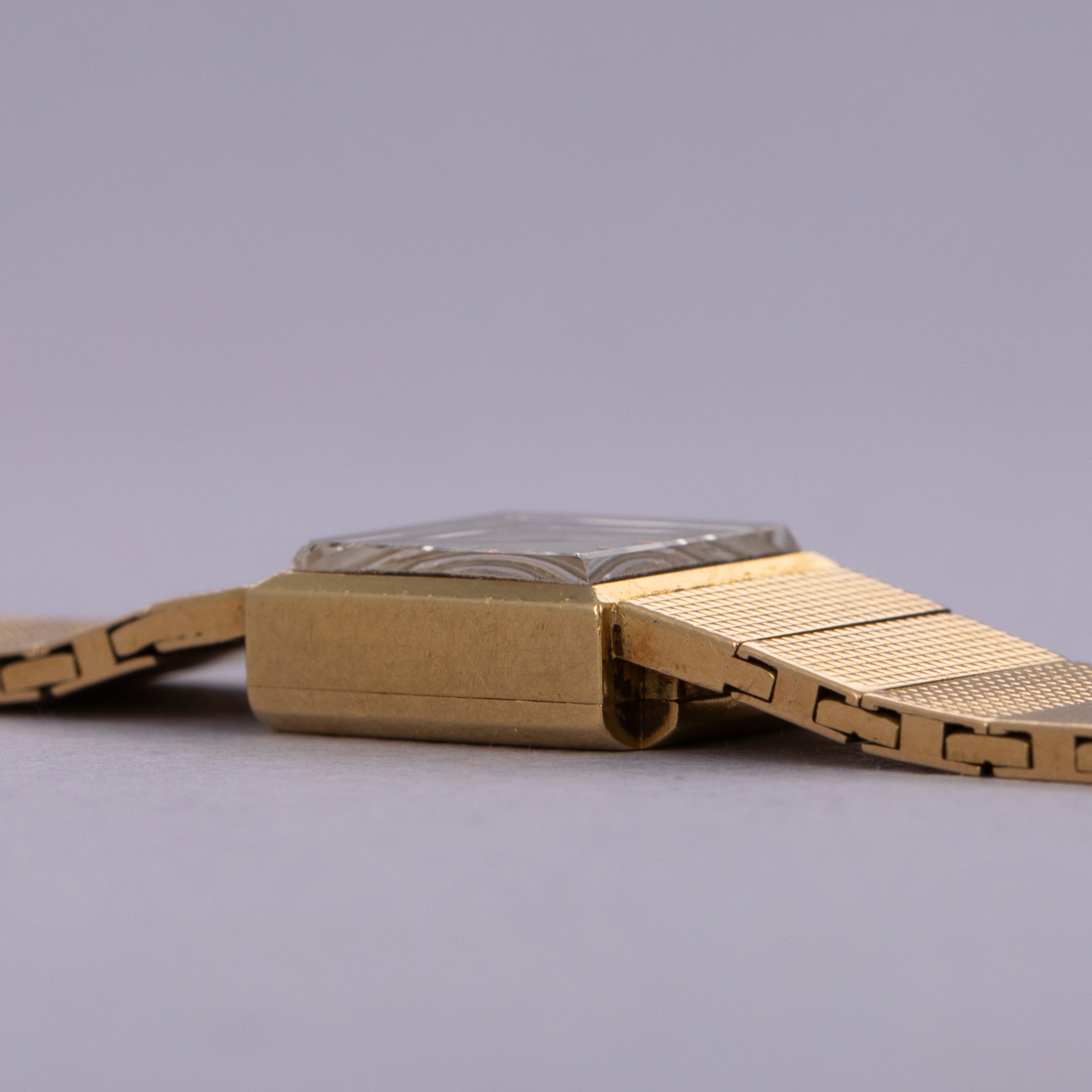While its 15mm x 15mm 18kt yellow gold case is certainly on the svelte size of things, the ref. 3086's 18kt yellow gold bracelet adds some considerable heft to its wrist presence.