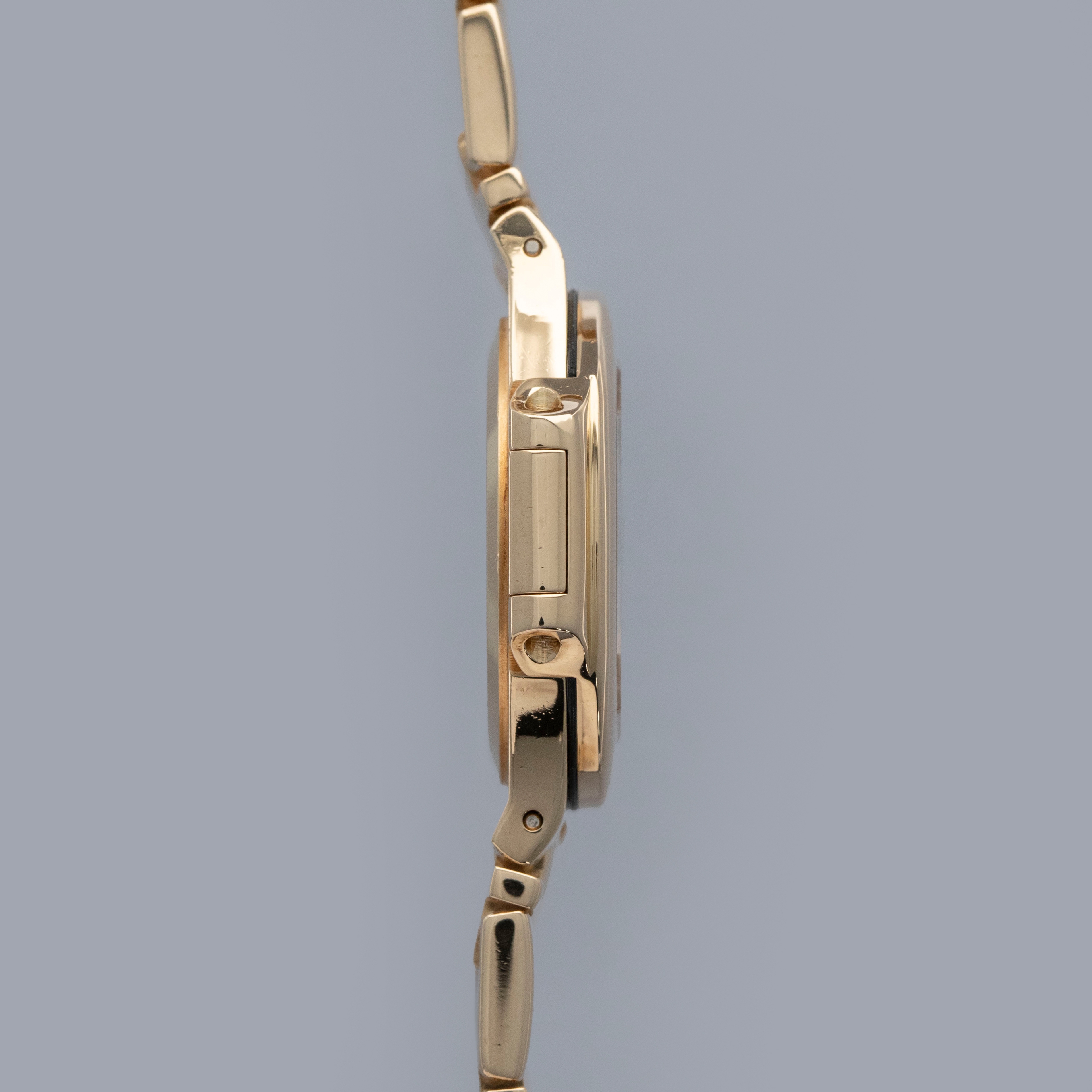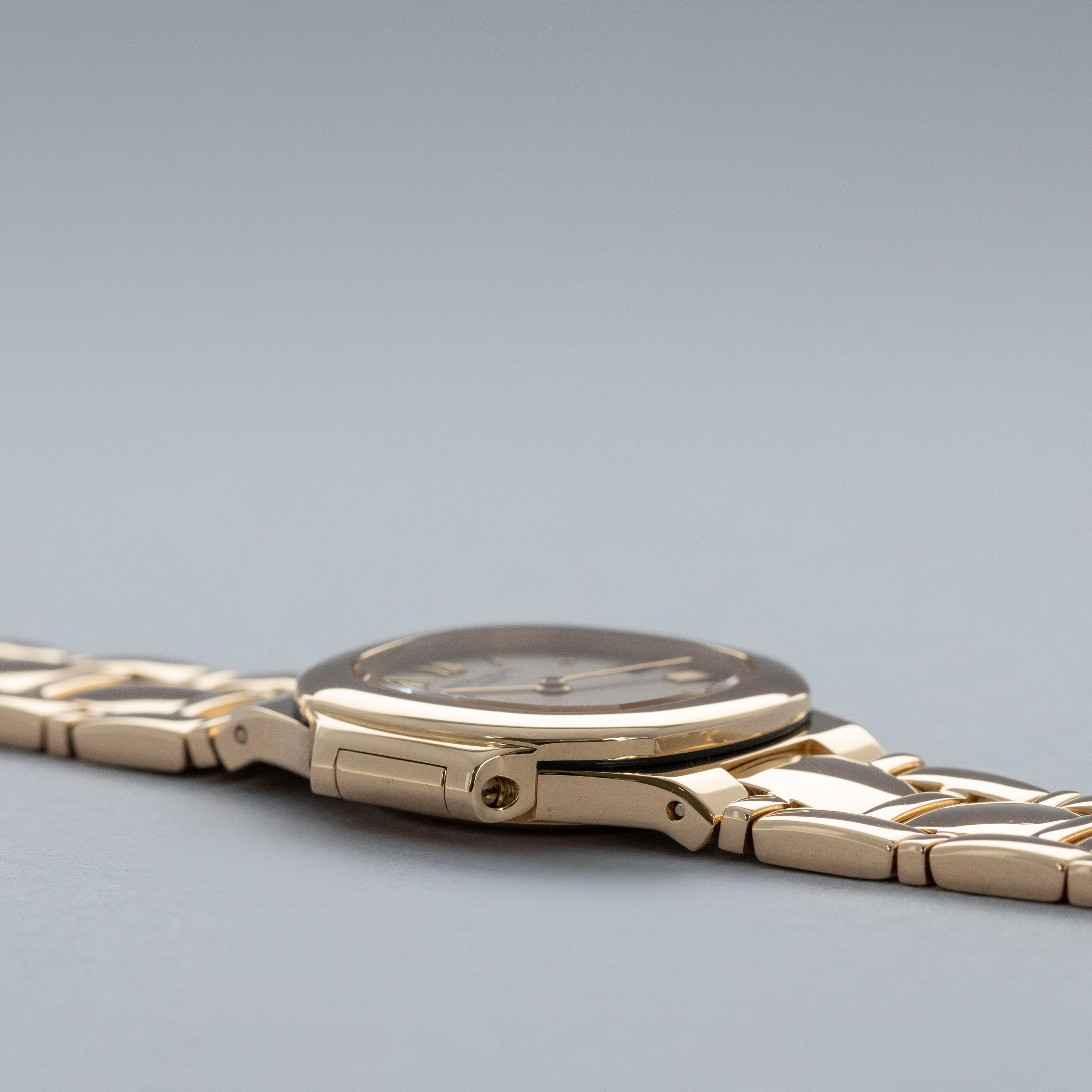 Powered by a quartz movement, the ref. 4700's case profile is wonderfully thin, in keeping with its mechanical siblings, allowing the ref. 4700's wearing experience to remain true to how Gerald Genta intended it.