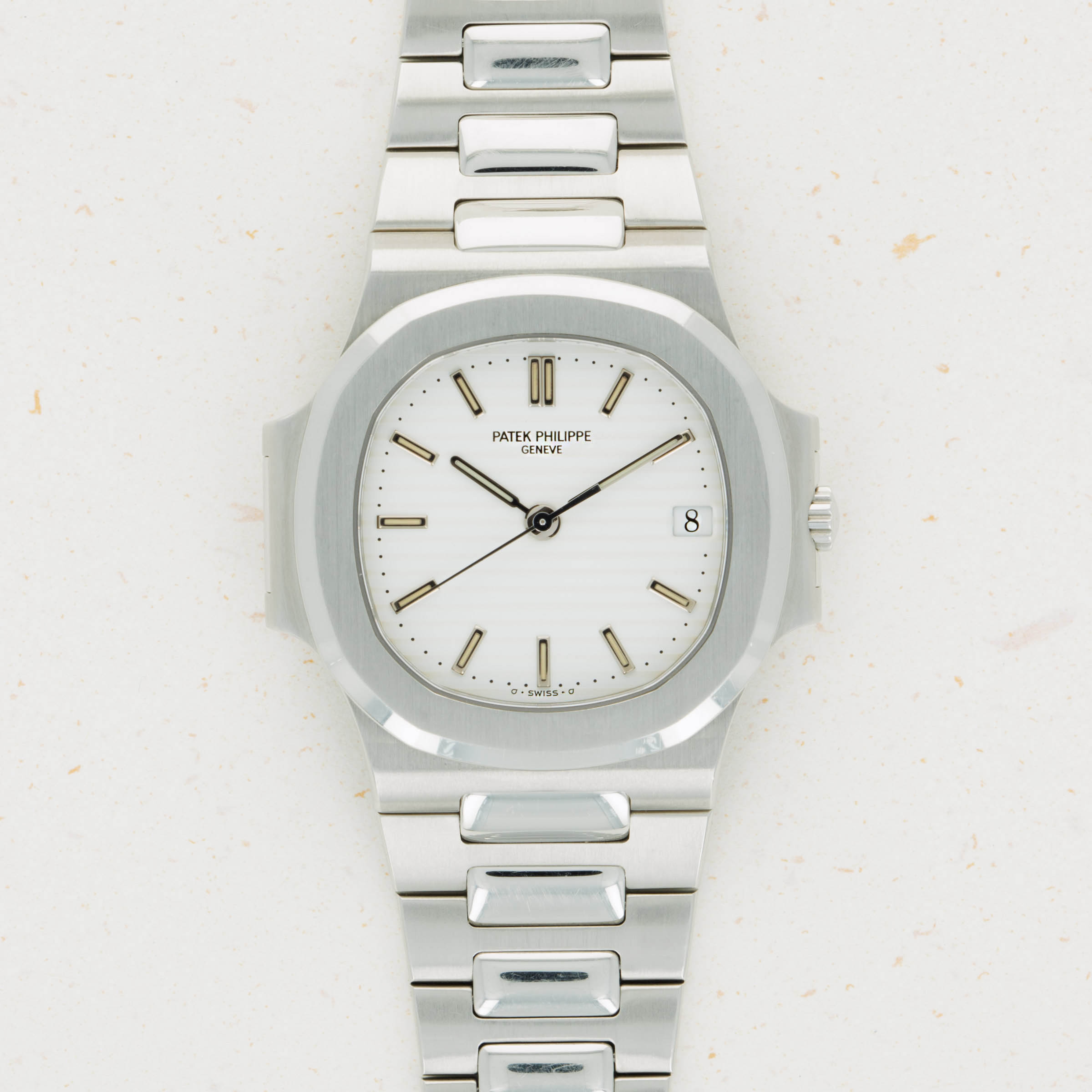 Released in 1976 as Patek Philippe's response to the Audemars Piguet Royal Oak, an avant-garde luxury stainless steel sports watch borne from AP's necessity to survive the Quartz Crisis, the Nautilus was Patek Philippe's attempt to go head to head with AP's increasingly popular sports watch. Designed by Gerald Genta, the same man that had created the Royal Oak, the Nautilus was inspired by a porthole and thus features a rounded-over octagonal bezel and hinge-like protrusions on either side of its case. Featuring its signature horizontally embossed dial and iconic integrated bracelet, the Nautilus has become the most sought-after watch in the market today as collectors clamor over examples thanks to its iconic design, extreme exclusivity, and impeccable craftsmanship.