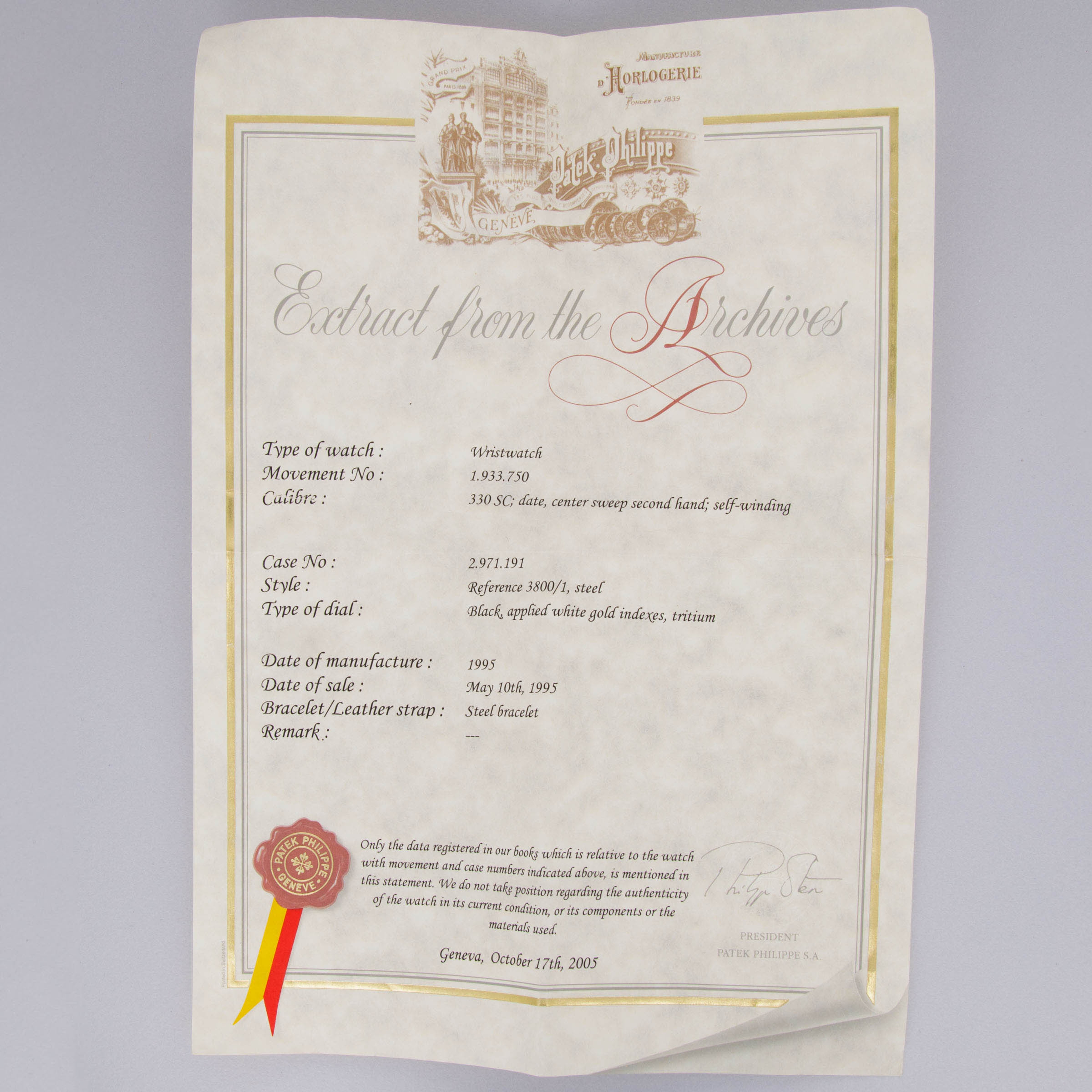 Watch, Patek watch roll, archive extract