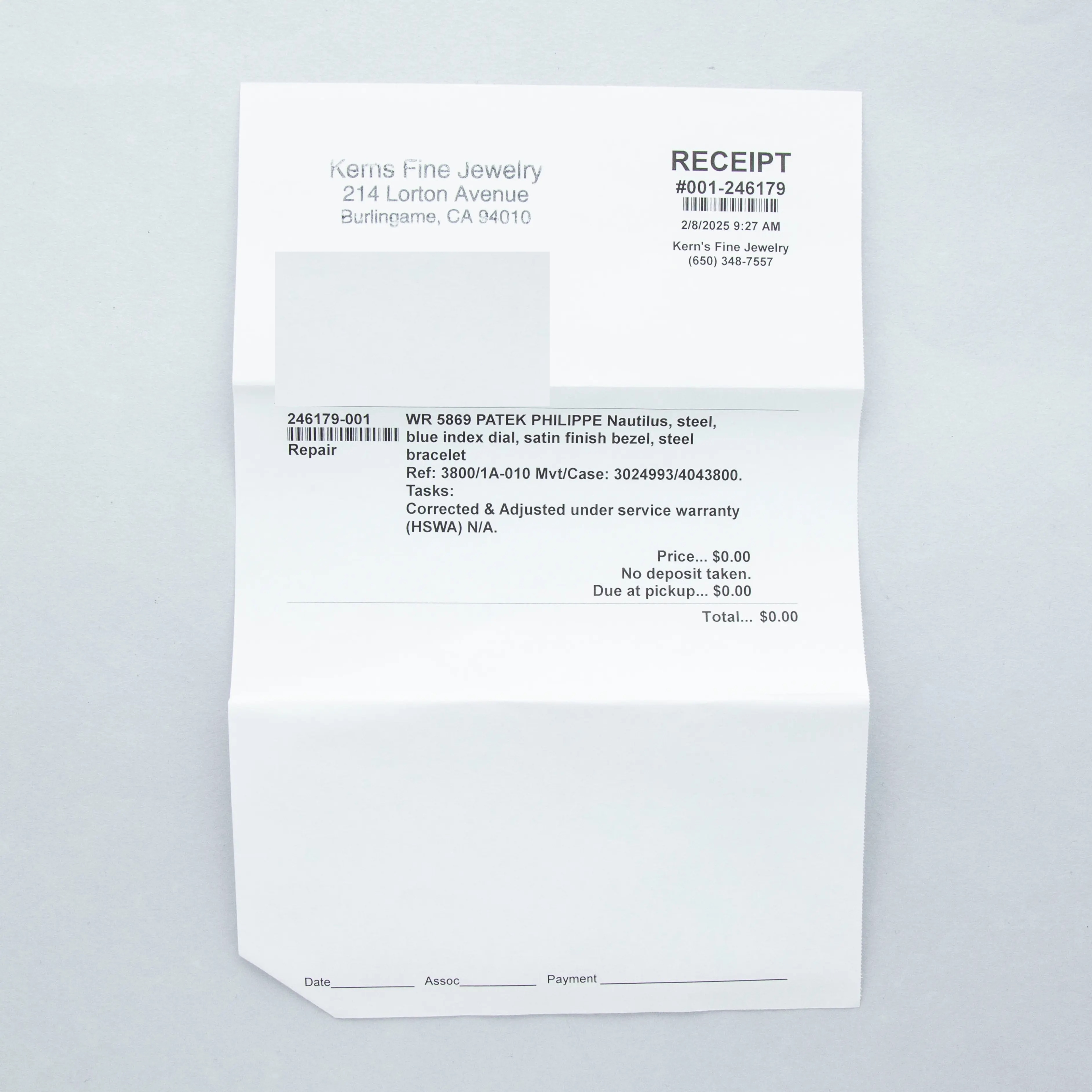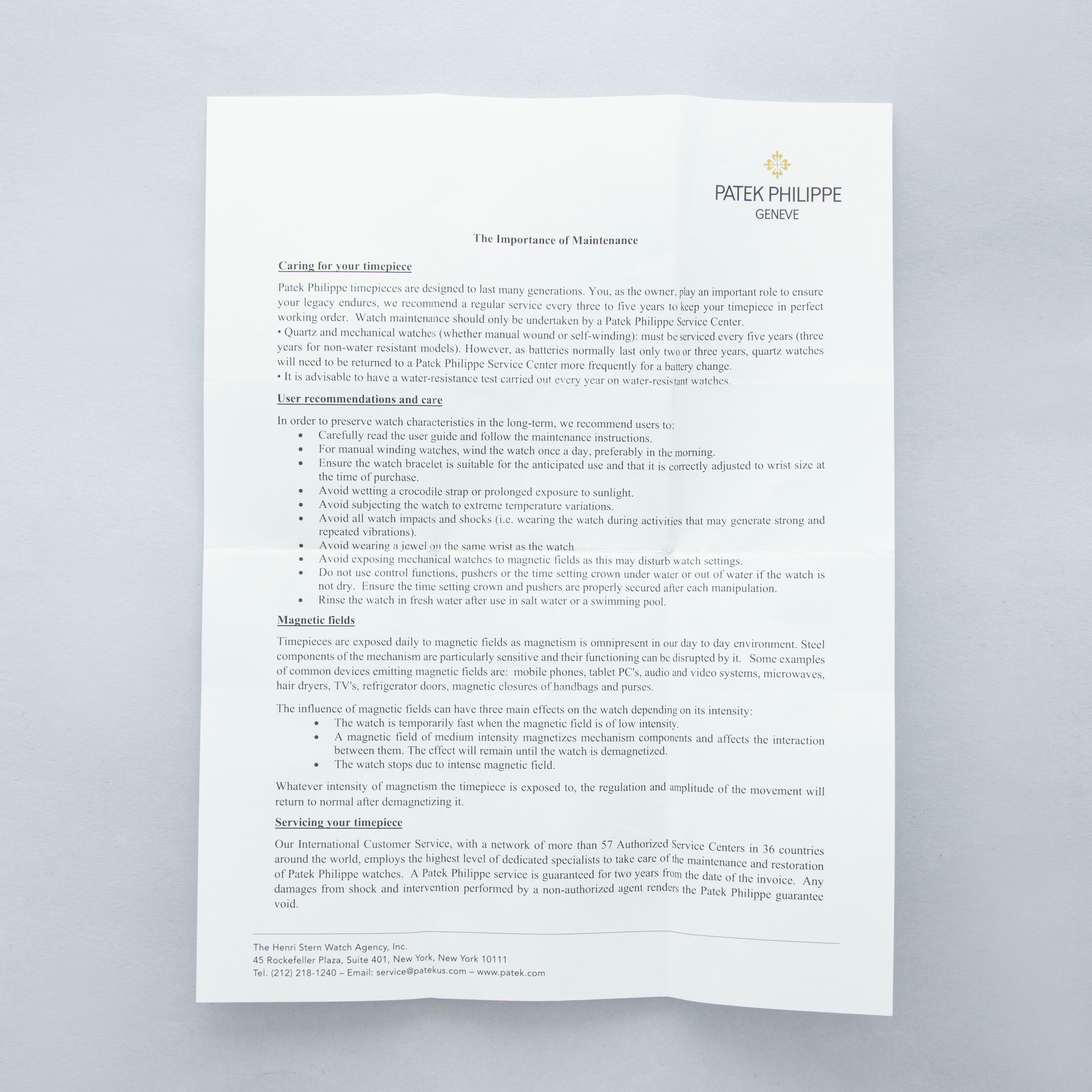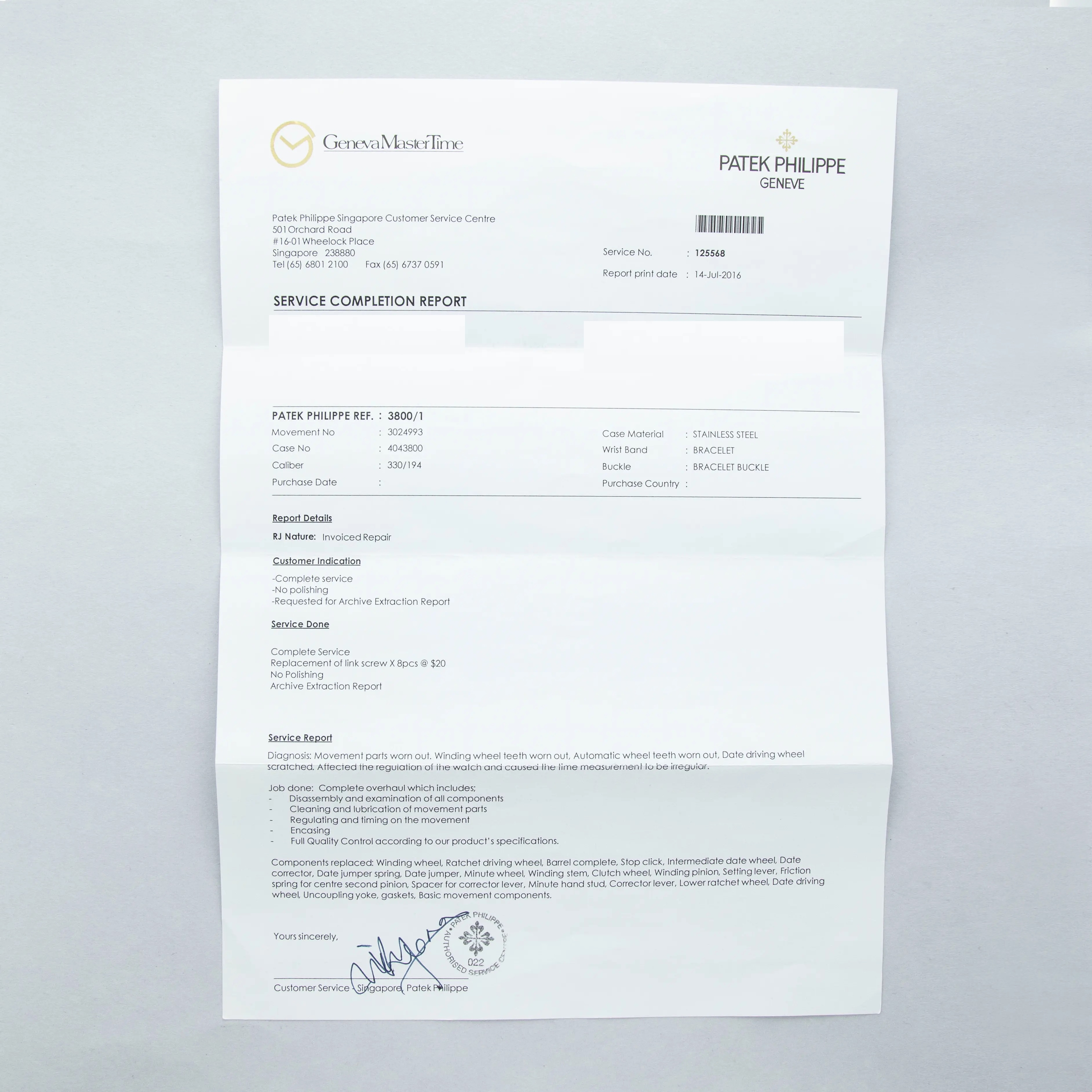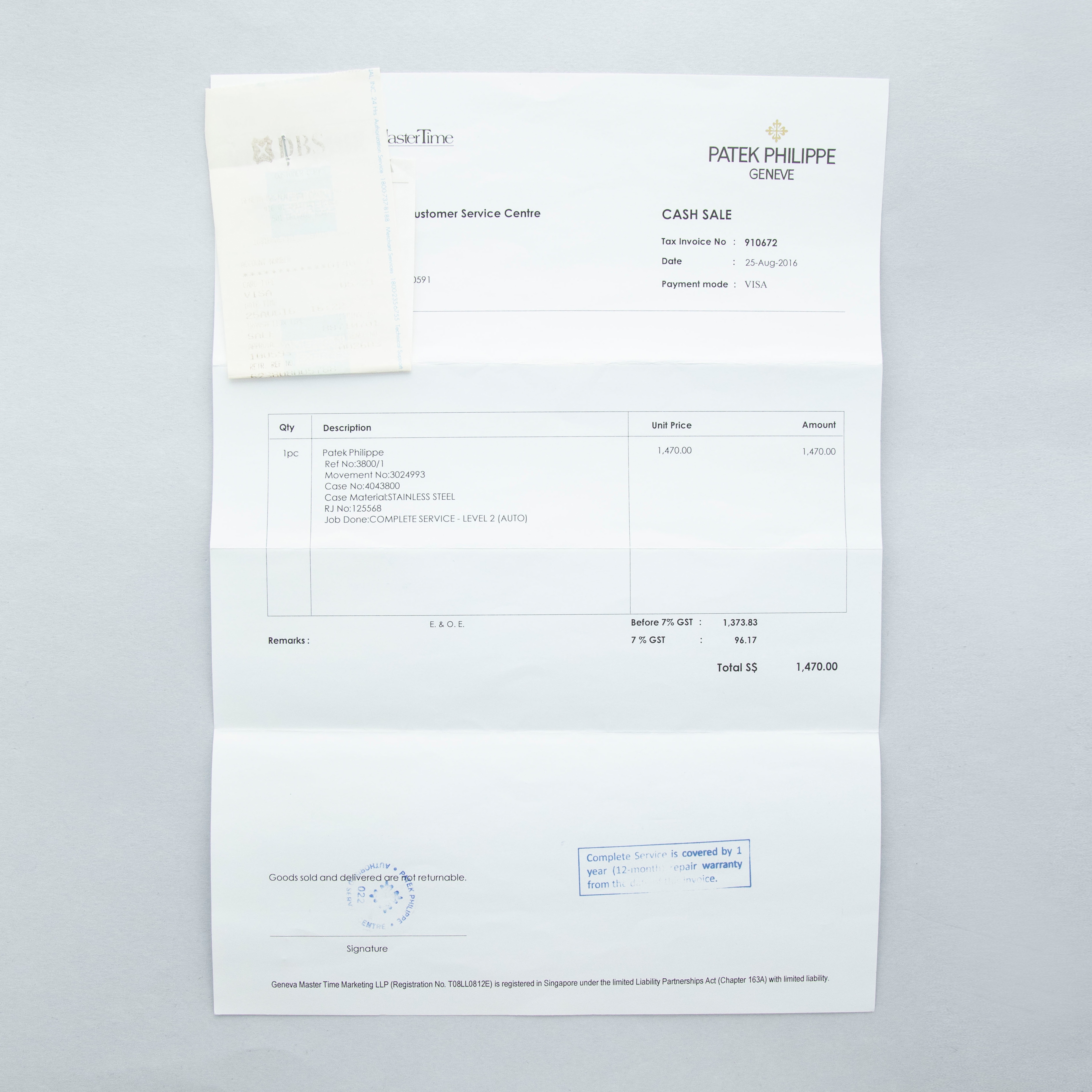 Watch, Extract from the Archives, service pouch, and 2016-dated Patek service paperwork and invoice