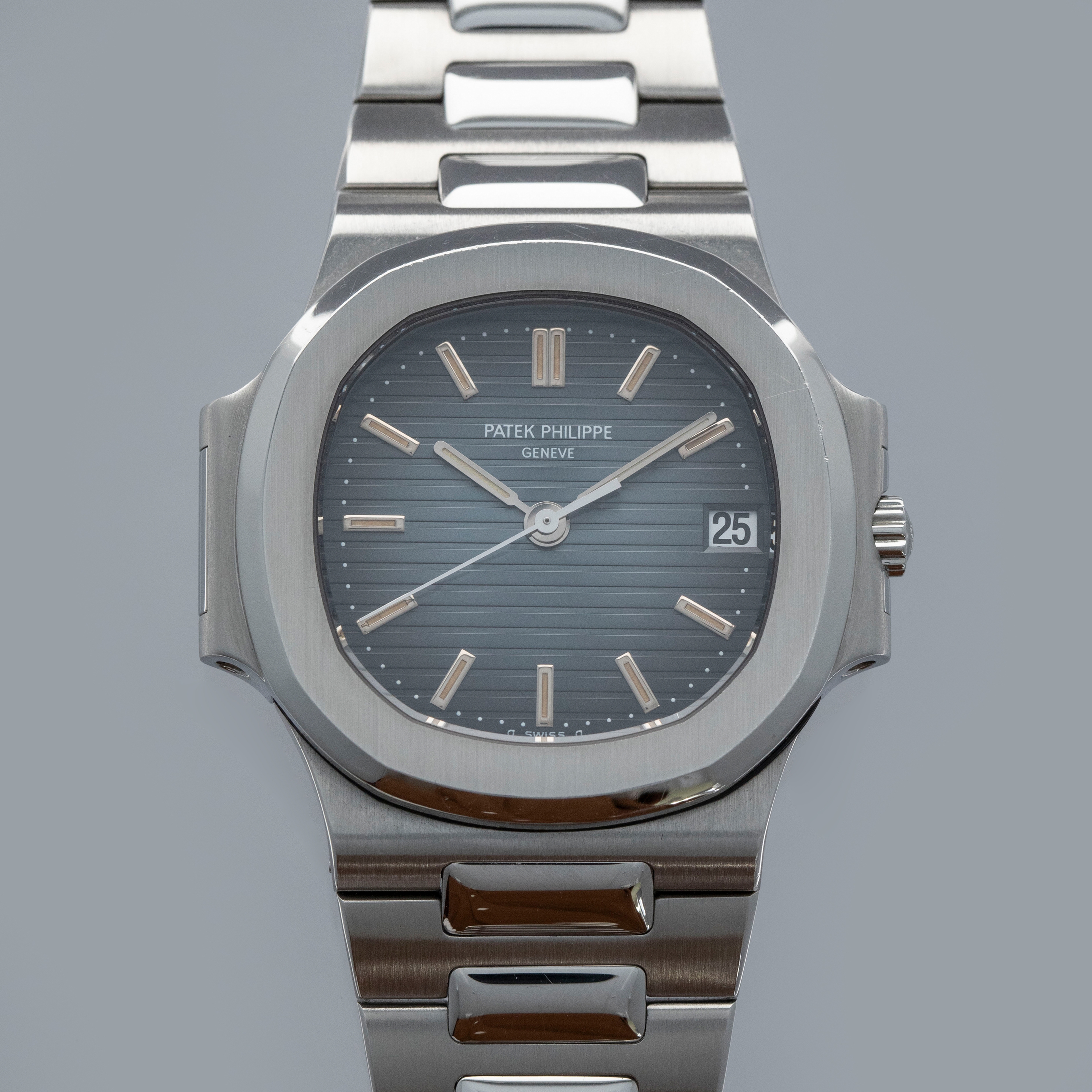 I have always been a massive fan of the reference 3800 Nautilus. The size and style are extremely sophisticated. I've always felt that this size wears better than it's big brother, the 3700. This particular example has an incredible blue dial, with matching creamy patina.
