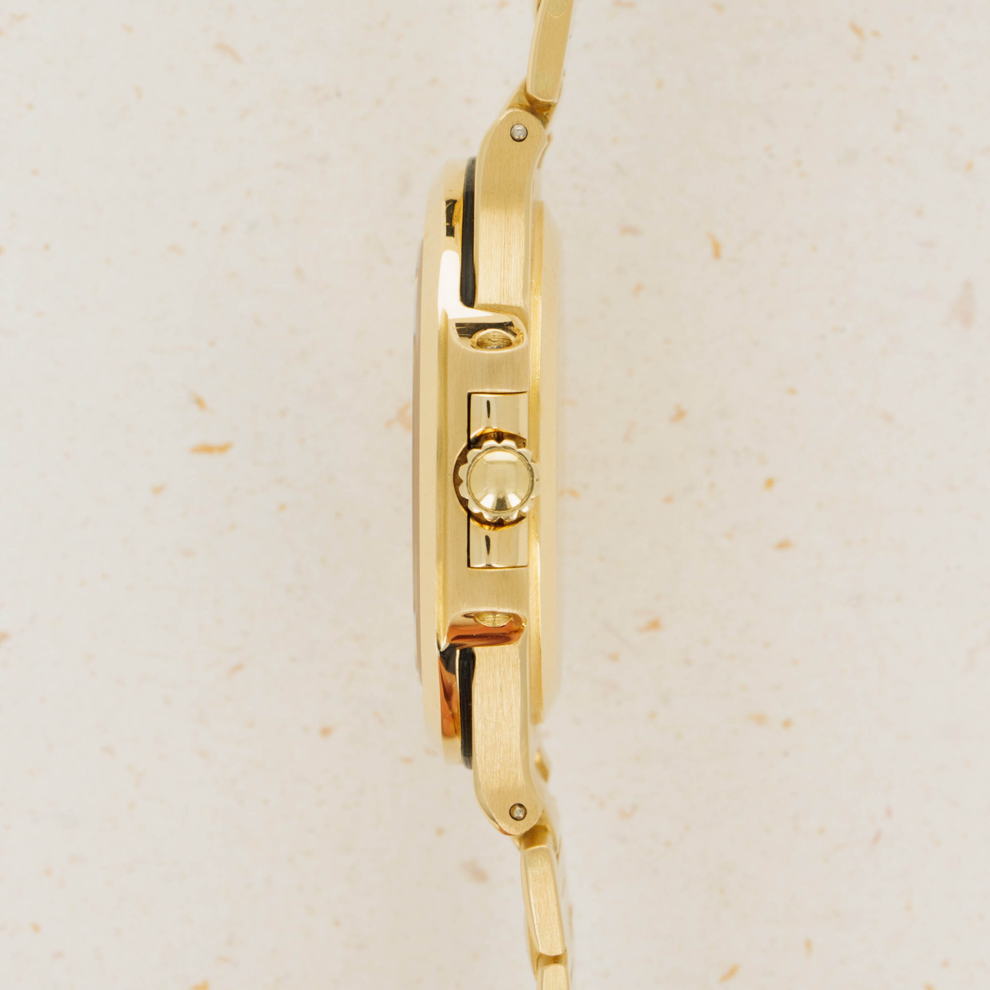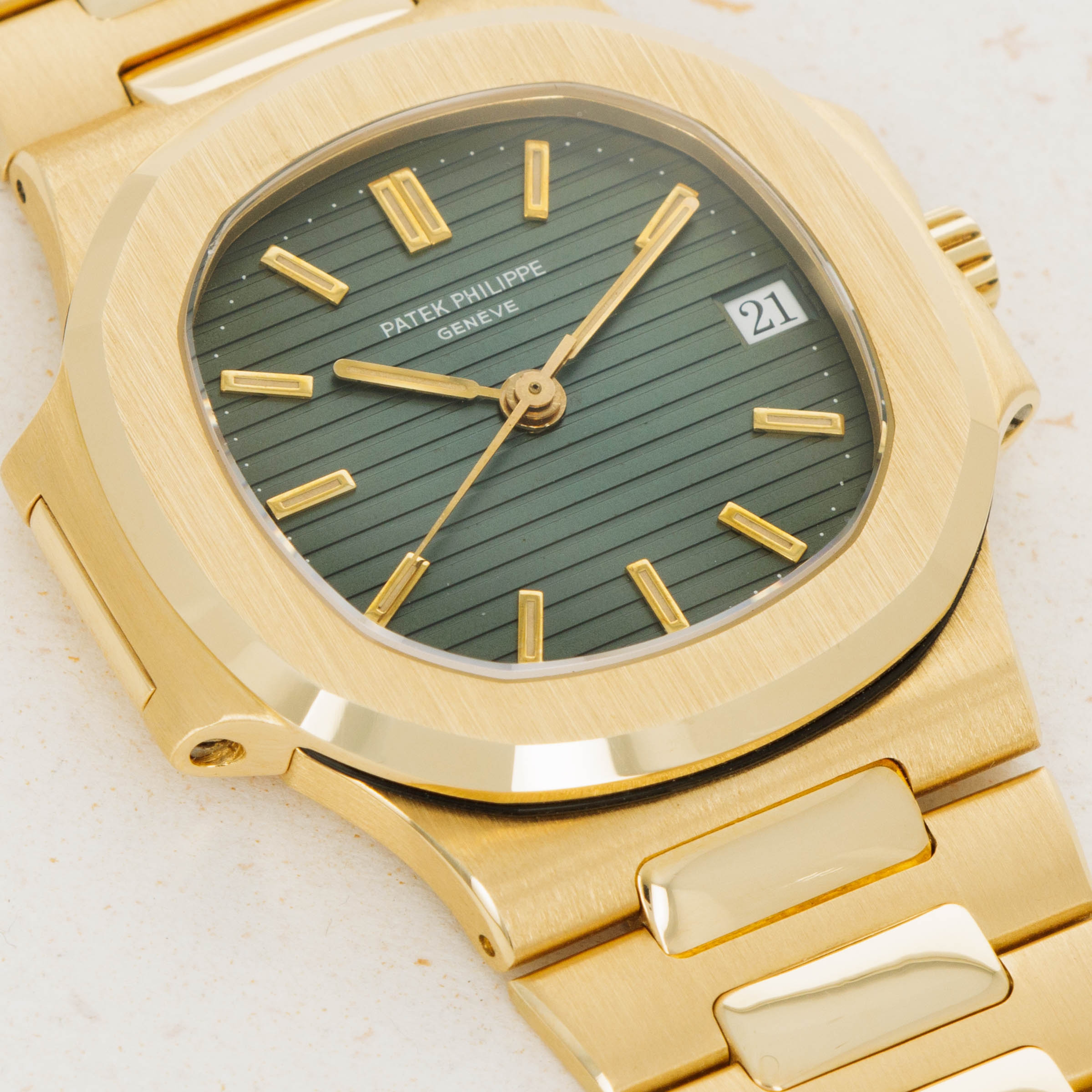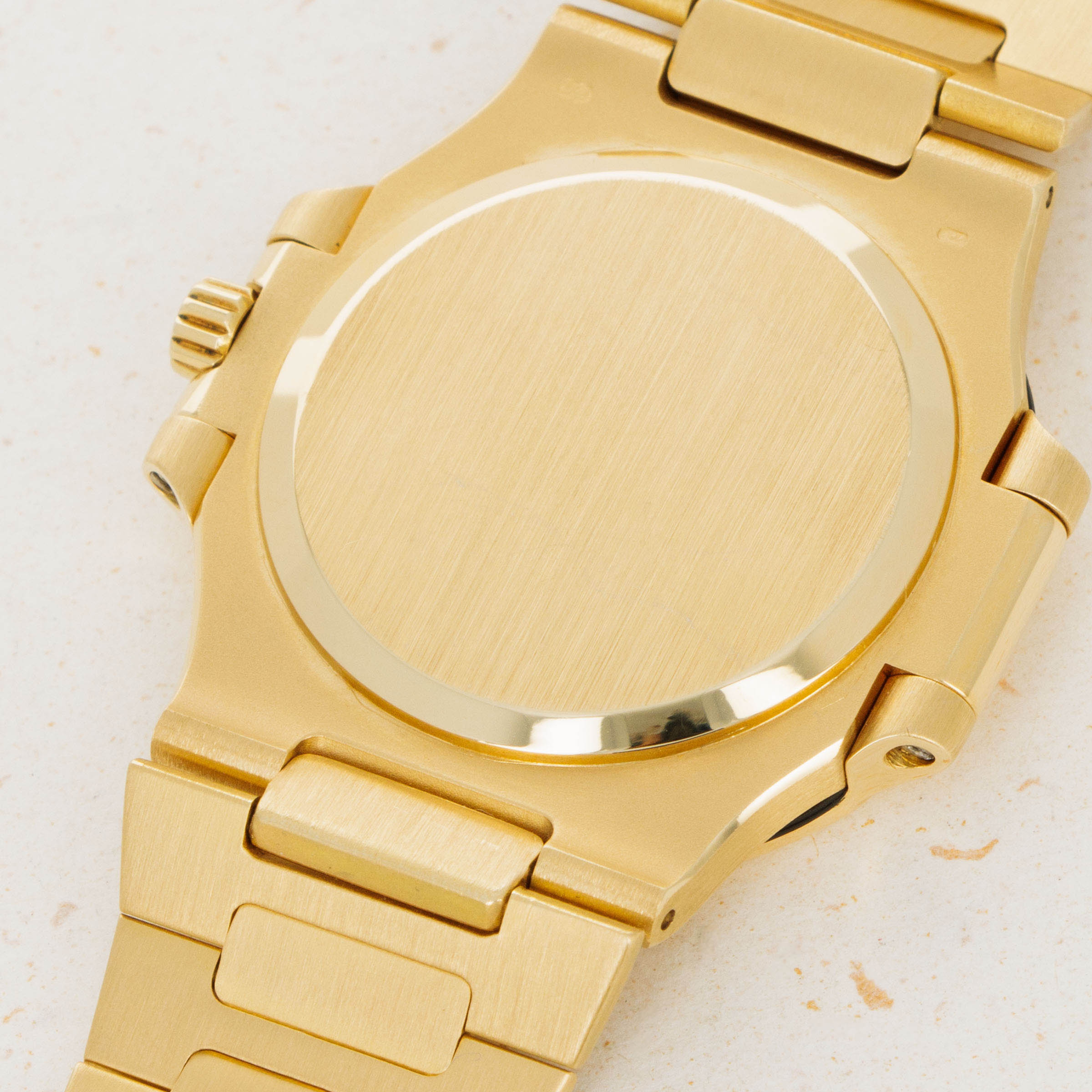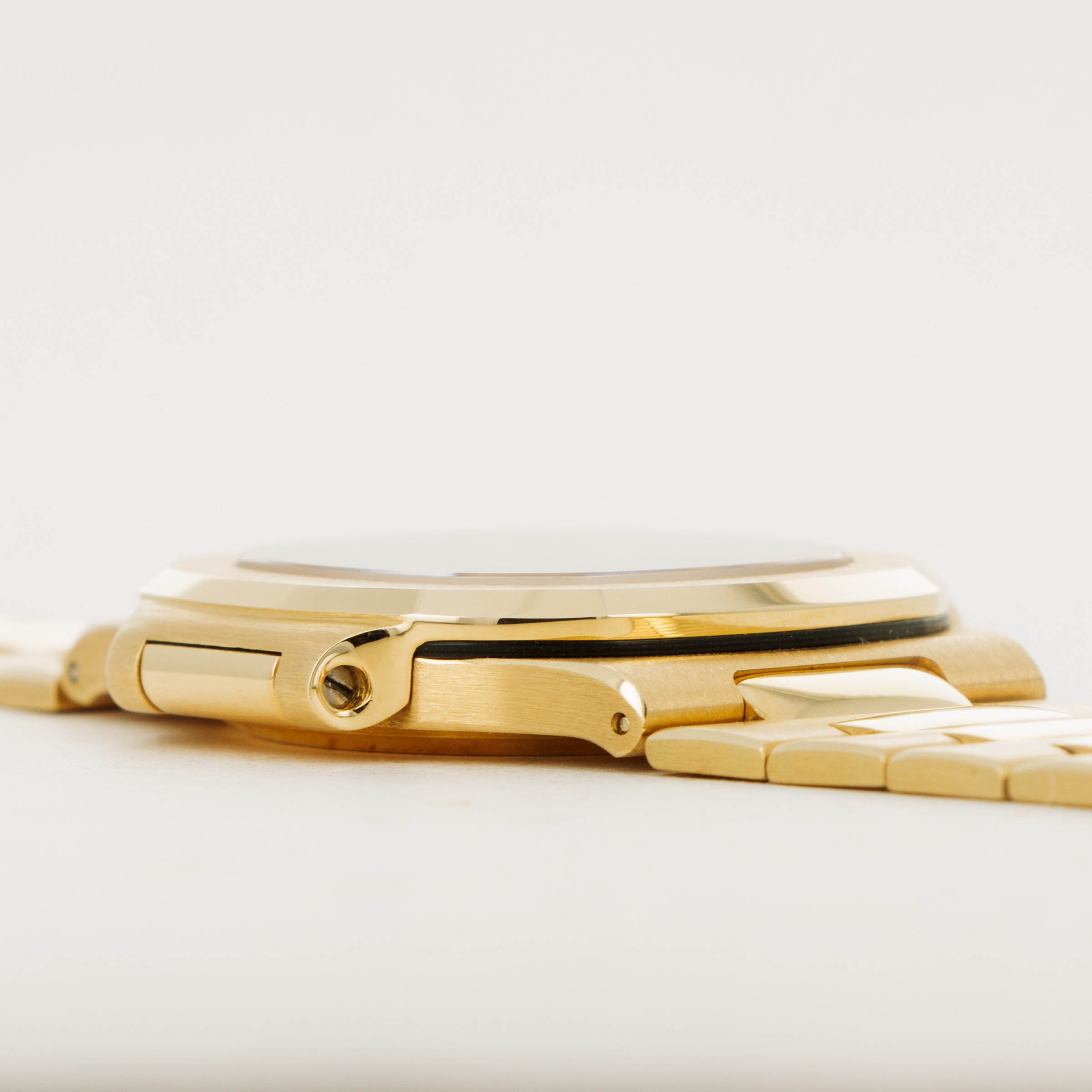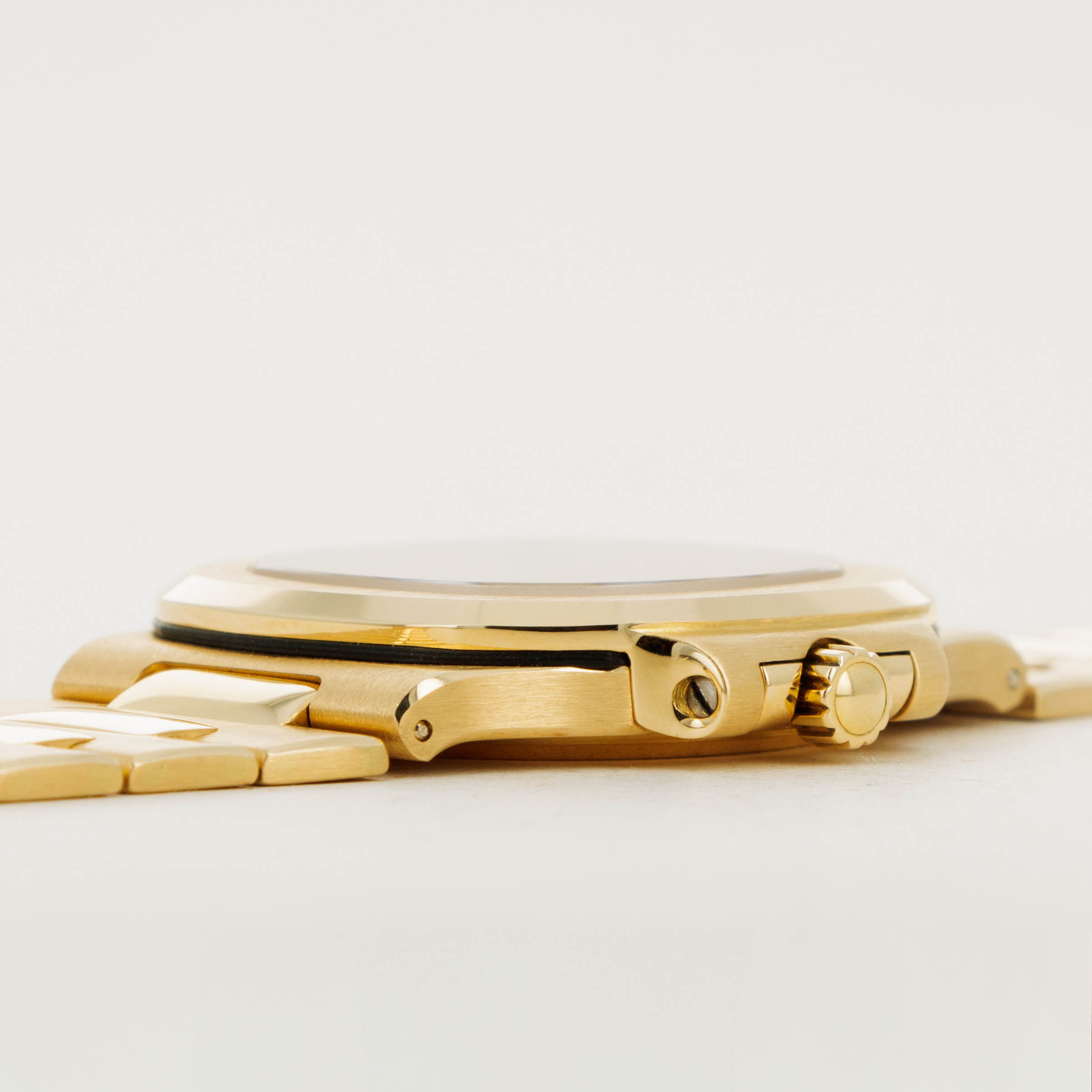 Launched with the intention to bring the Nautilus' design to a wider audience, the ref. 3800J was a more modestly-sized piece with a 37.5mm case. Additionally, the ref. 3800J was the first 18kt yellow gold Nautilus, which introduced Patek's famously luxurious touch to the previously stainless steel model.