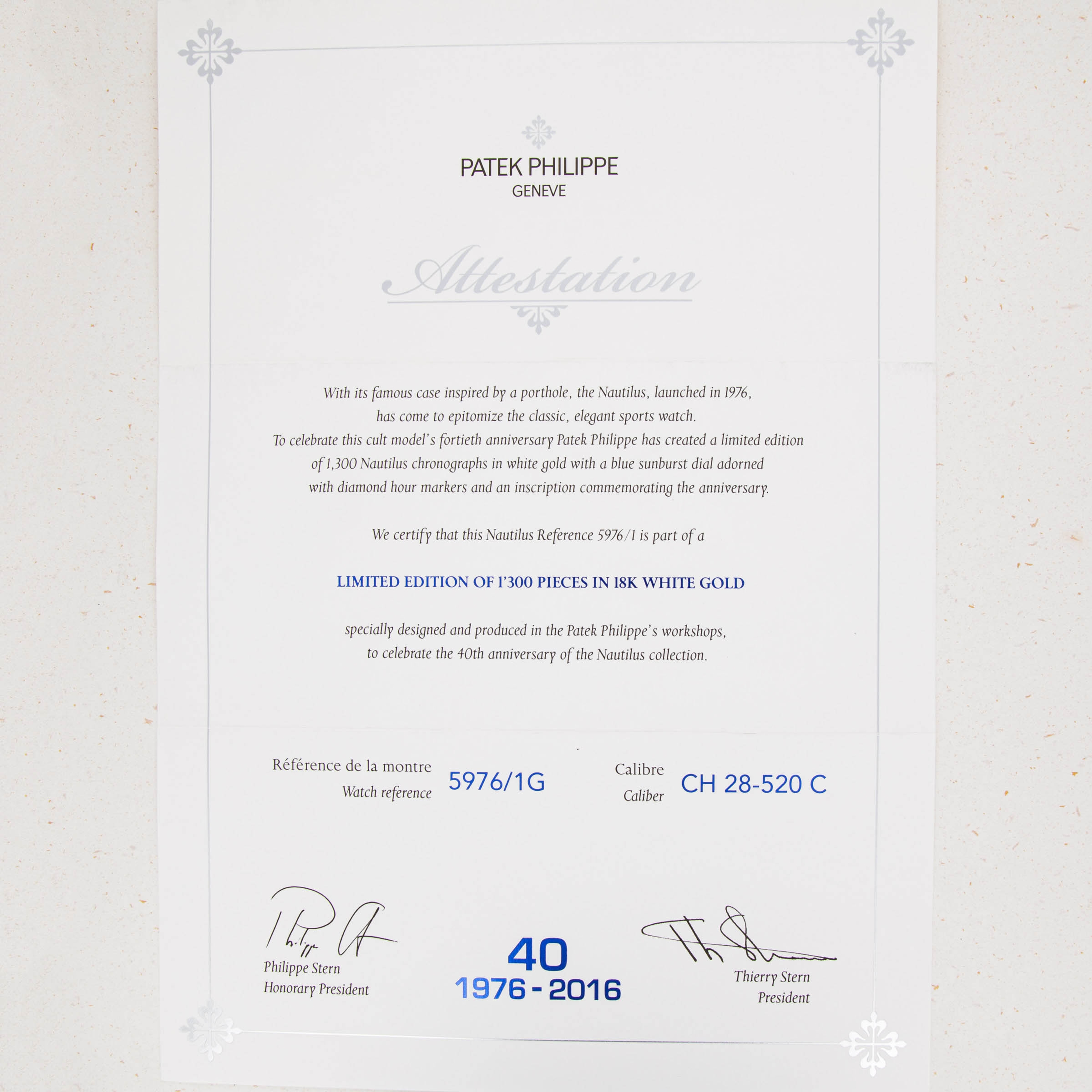 Patek Philippe Nautilus 40th Anniversary Chronograph 5976/1G 18K WG