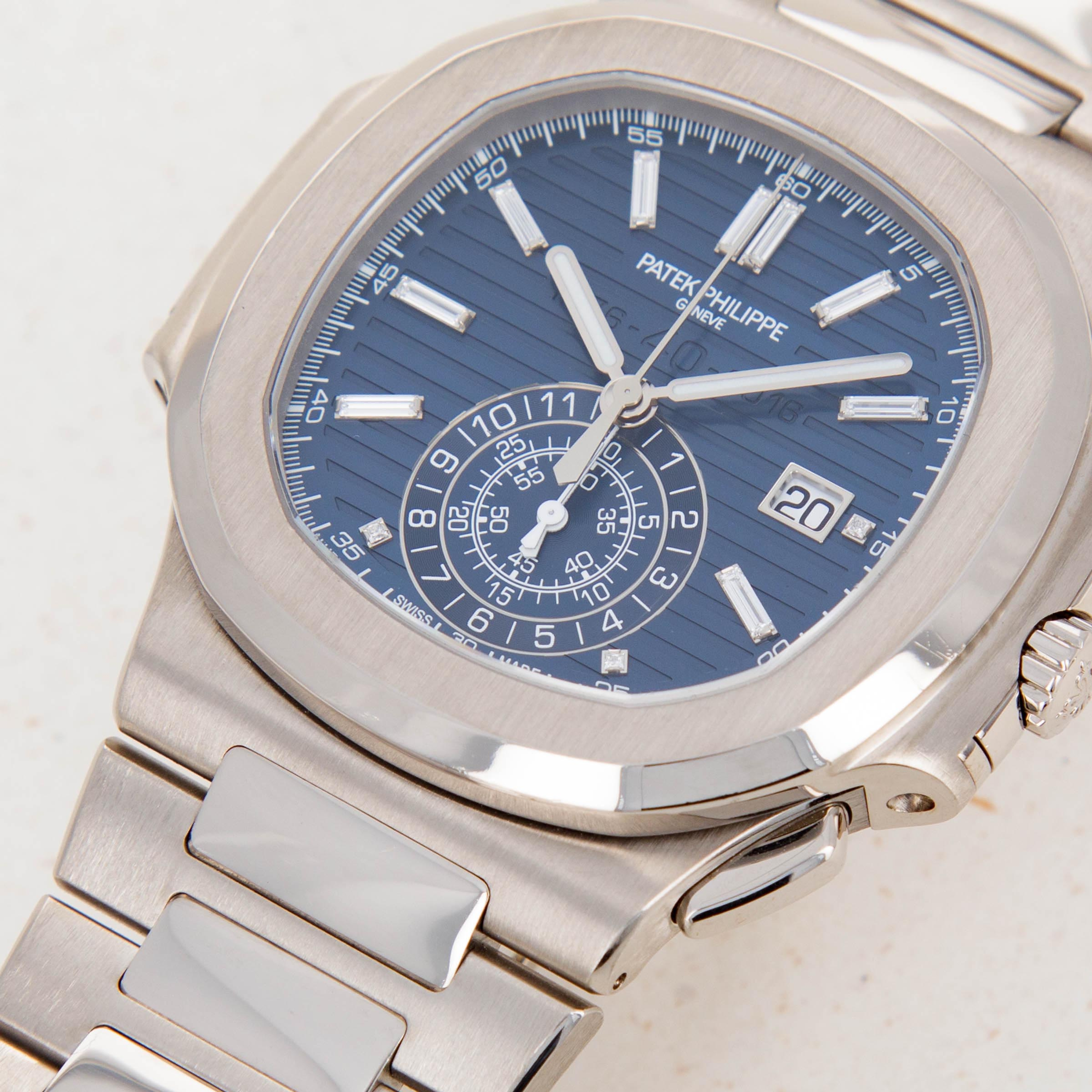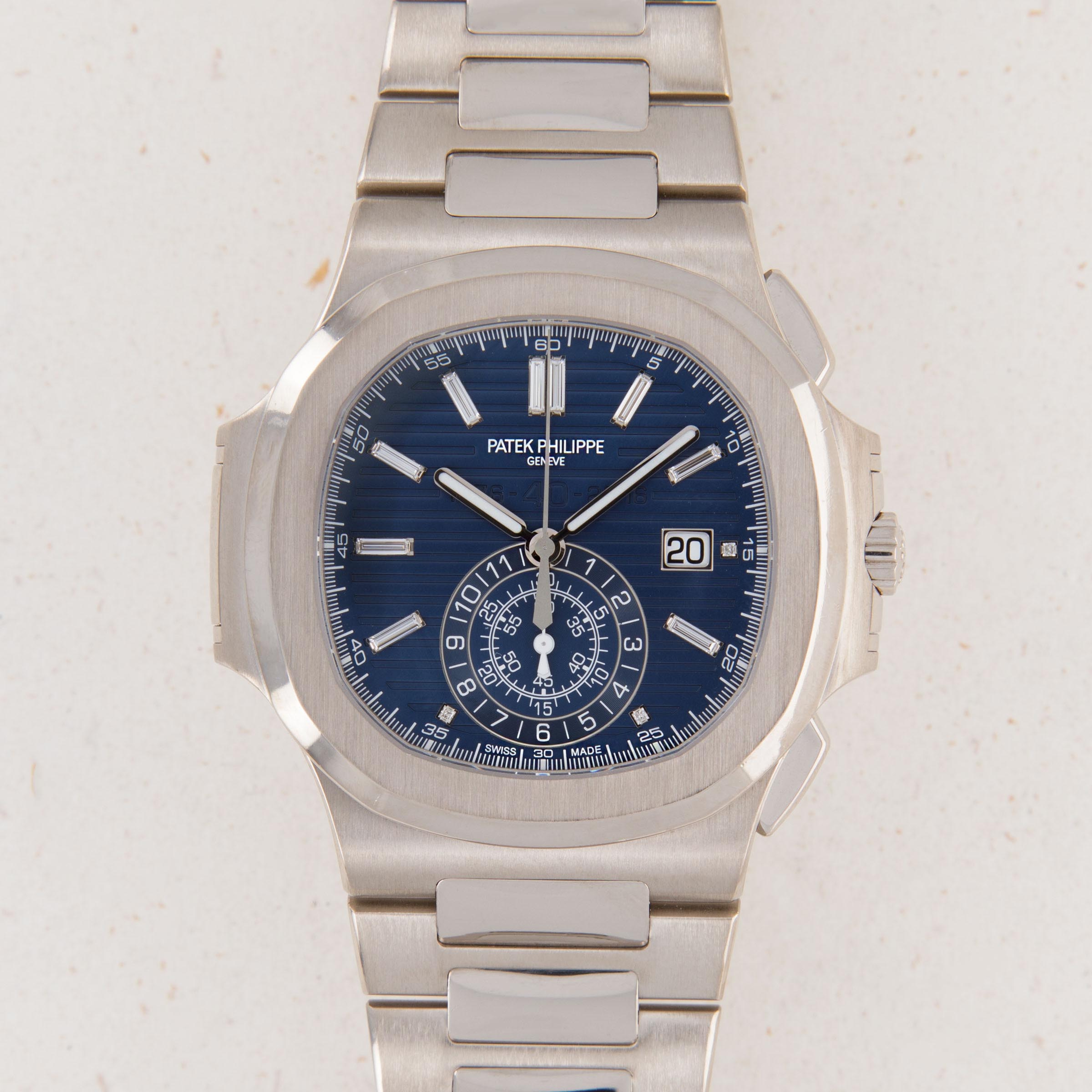 Released in 2016 and taking the Patek Philippe Nautilus' design, exclusivity and demand to a whole new level, the Nautilus ref. 5976/1G celebrated the iconic timepiece's 40th anniversary in style. Limited to just 1300 pieces, the 5976/1G gives the Nautilus Chronograph ref. 5980 a tasteful makeover by swapping its 40.5mm stainless-steel construction for a 44mm diameter 18kt white gold one. Far more exclusive, expensive and luxurious than the ref. 5980, the 5976/1G elevates its stainless-steel sibling's standing as a sports watch into a wholeheartedly luxurious piece. Featuring a dial with a slightly brighter shade of blue and 10 baguette-cut diamond alongside 3 princess-cut indices, the 5976/1G stands out visually when compared to the stainless steel ref. 5980. In addition, its dial features the commemorative engraving "1976-40-2016" at 12 o’clock as a subtle nod to the Nautilus’ incredible 40 year-rich heritage as one of the most important timepieces to have ever been created. Powered by the automatic cal. CH 28-520 C and thus featuring the ref. 5980’s dial layout with its double-handed chronograph subdial at 6 o’clock and date aperture at 3 o’clock, the ref. 5976/1G packs a lot onto its stunning blue dial. Indeed, on the wrist, the ref. 5976/1G is a lot of watch on the wrist too, with its hefty 18kt white gold construction spanning 49.25mm at the widest points on its case when the Nautilus’ hinges are included. Offered in a cork box like that of the original Nautilus, the ref. 5976/1G tastefully nods back to its heritage while also furthering the Nautilus’ claim as one of the most luxurious sports watches on the market.