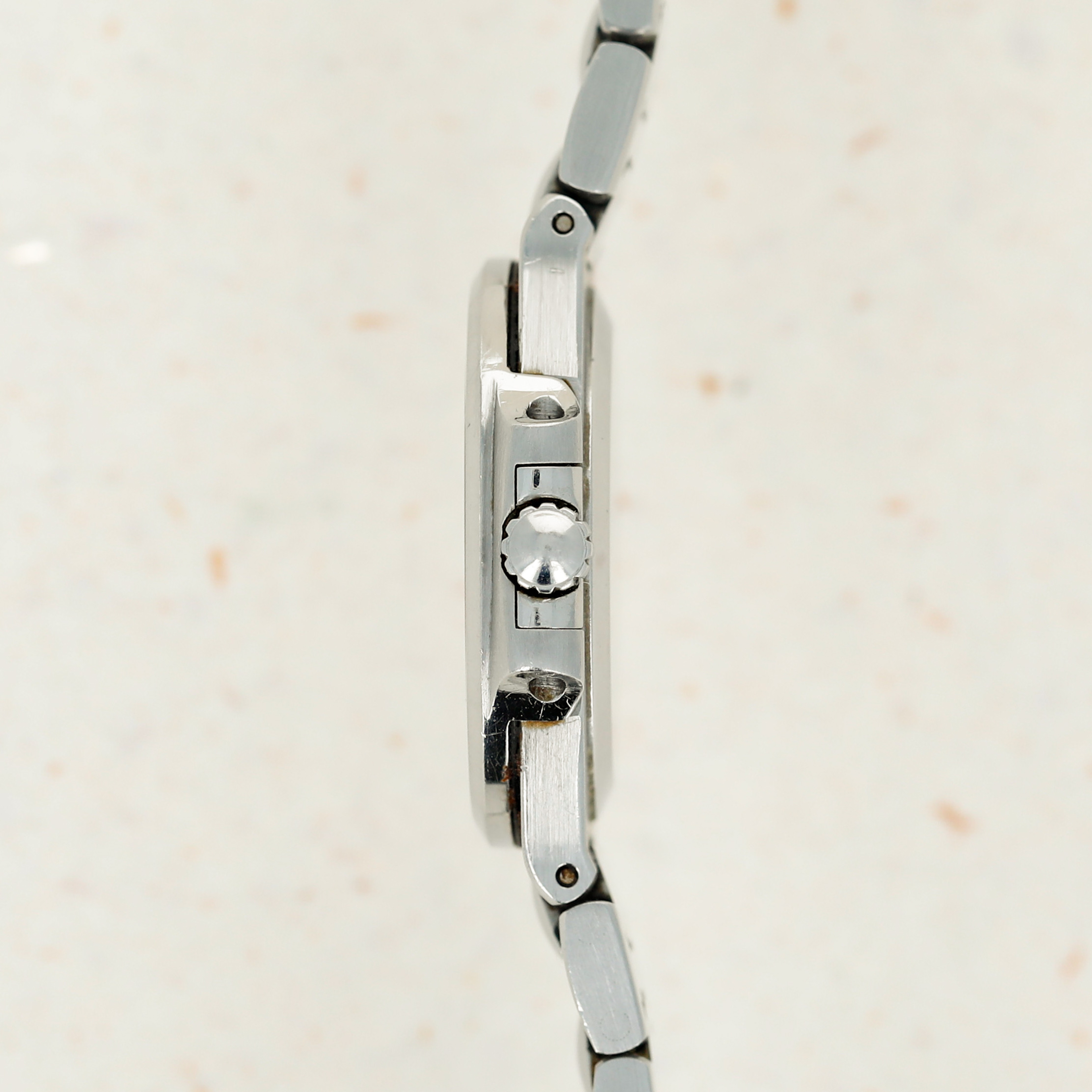 Watch is in very good overall condition. Case exhibits sharp edges with surface wear including some minor scratches and scuffs. There is some debris trapped along the edge of the bezel and mid-case. The dial has some minor wear on the surface and the luminous minute hand is cracked. Applied Calatrava cross on the clasp is crisp and well defined. Bracelet has 21 links, 9 of which are removable. There is minor stretch.