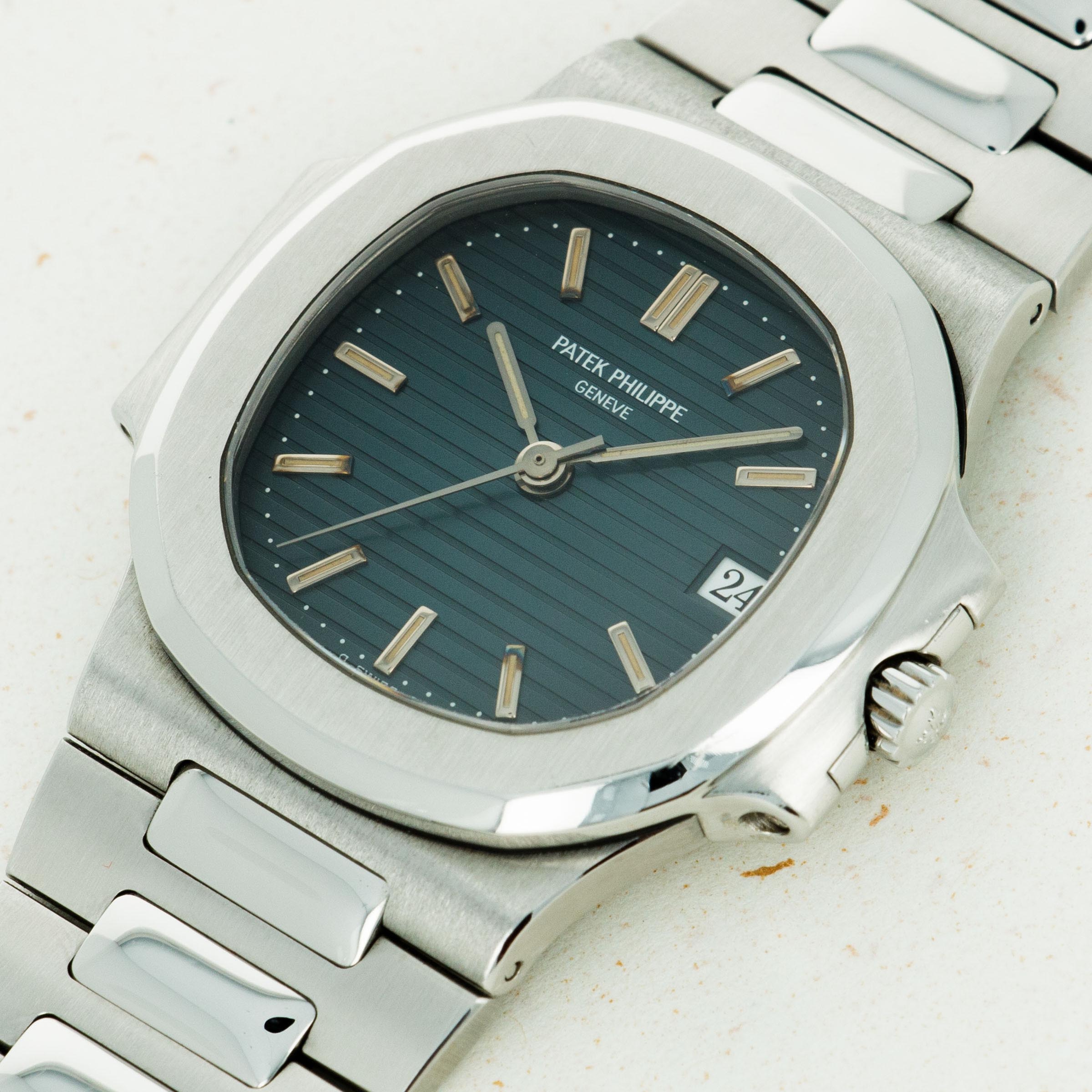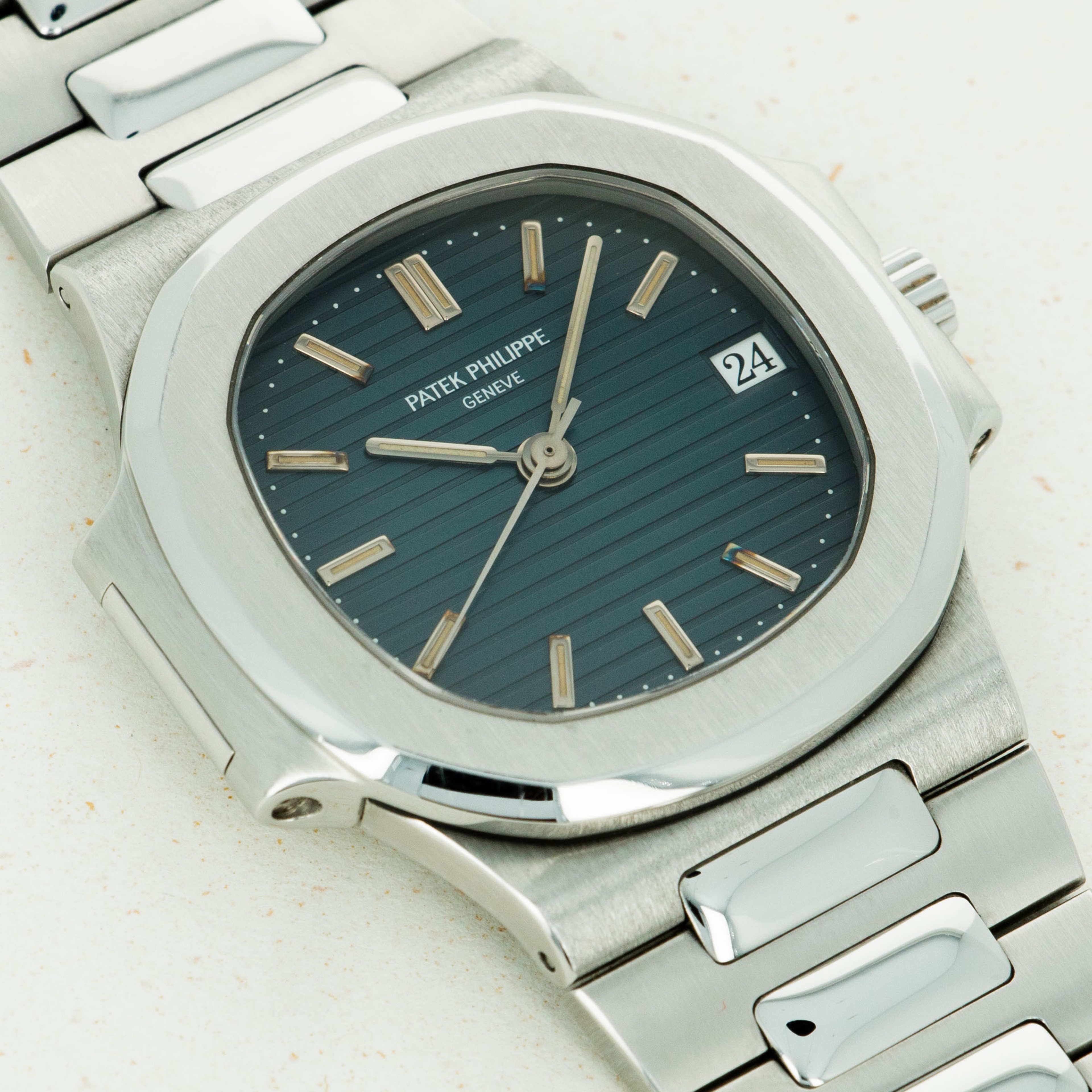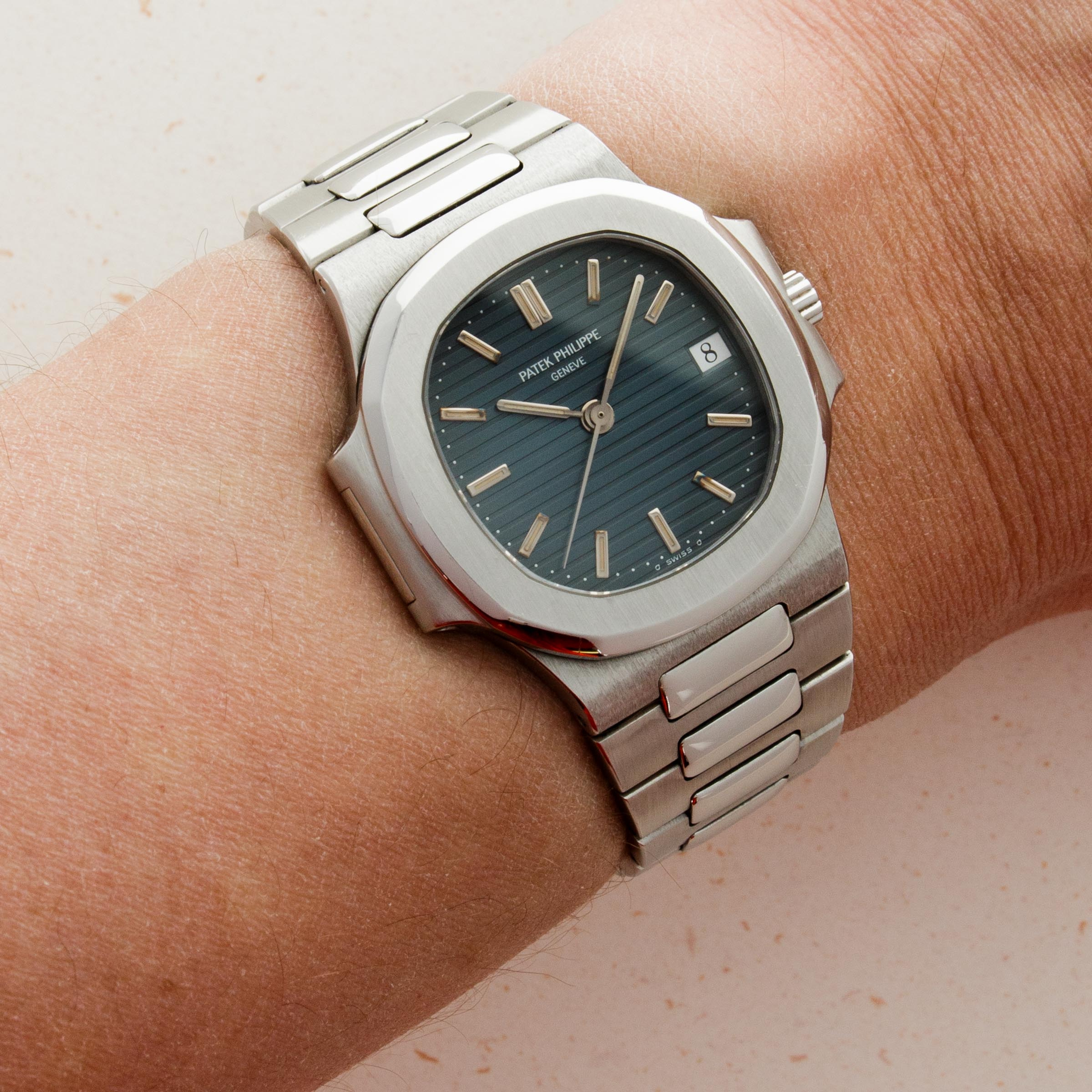 A Patek Philippe classic, the blue ridged dial of the Nautilus.
