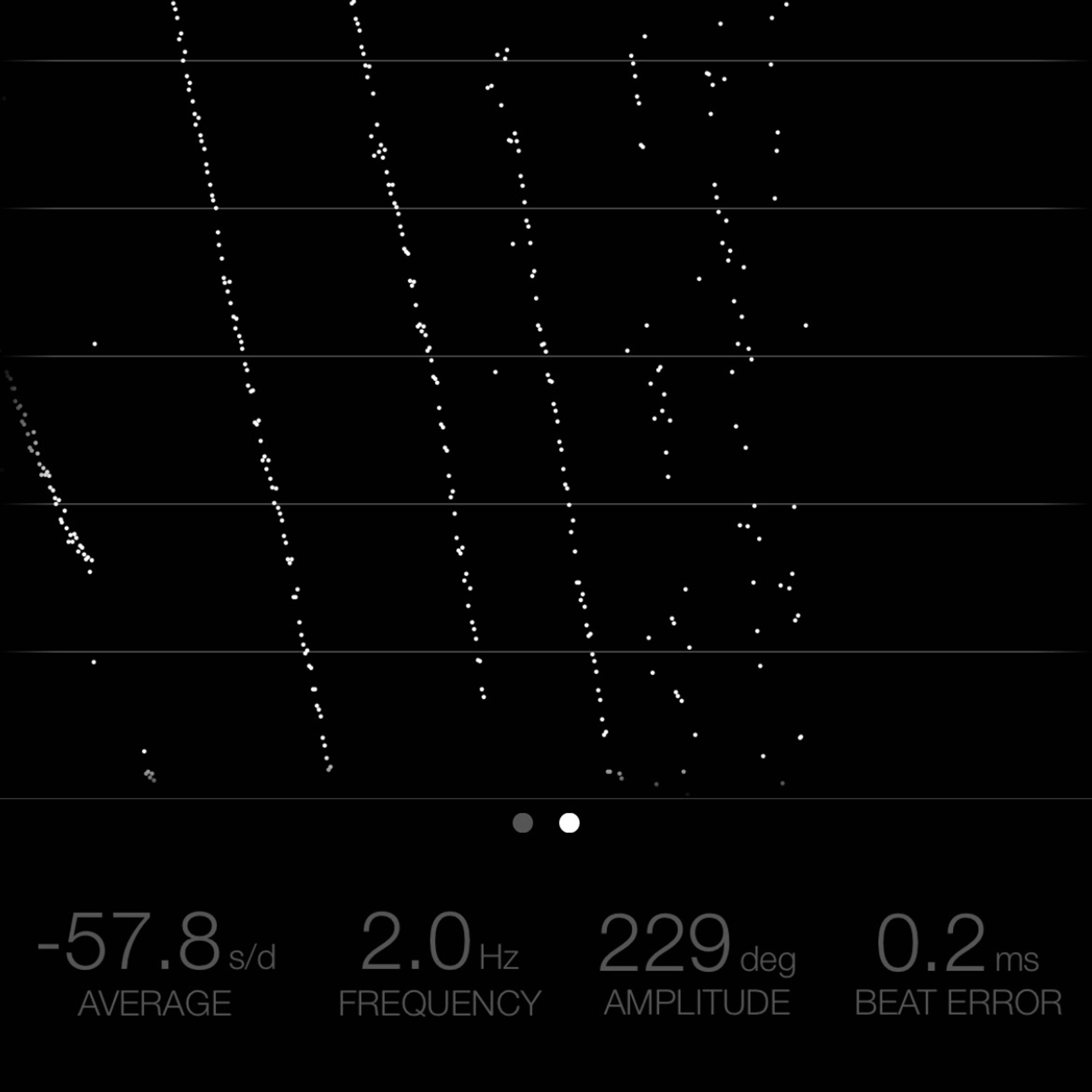 This reading was taken (crown down) with a ONEOF Accuracy Boutique Edition timing machine at time of cataloging. It is provided as a courtesy only, and shall not be construed as a warranty or guarantee of any kind. Please refer to our terms and conditions of sale for more information.