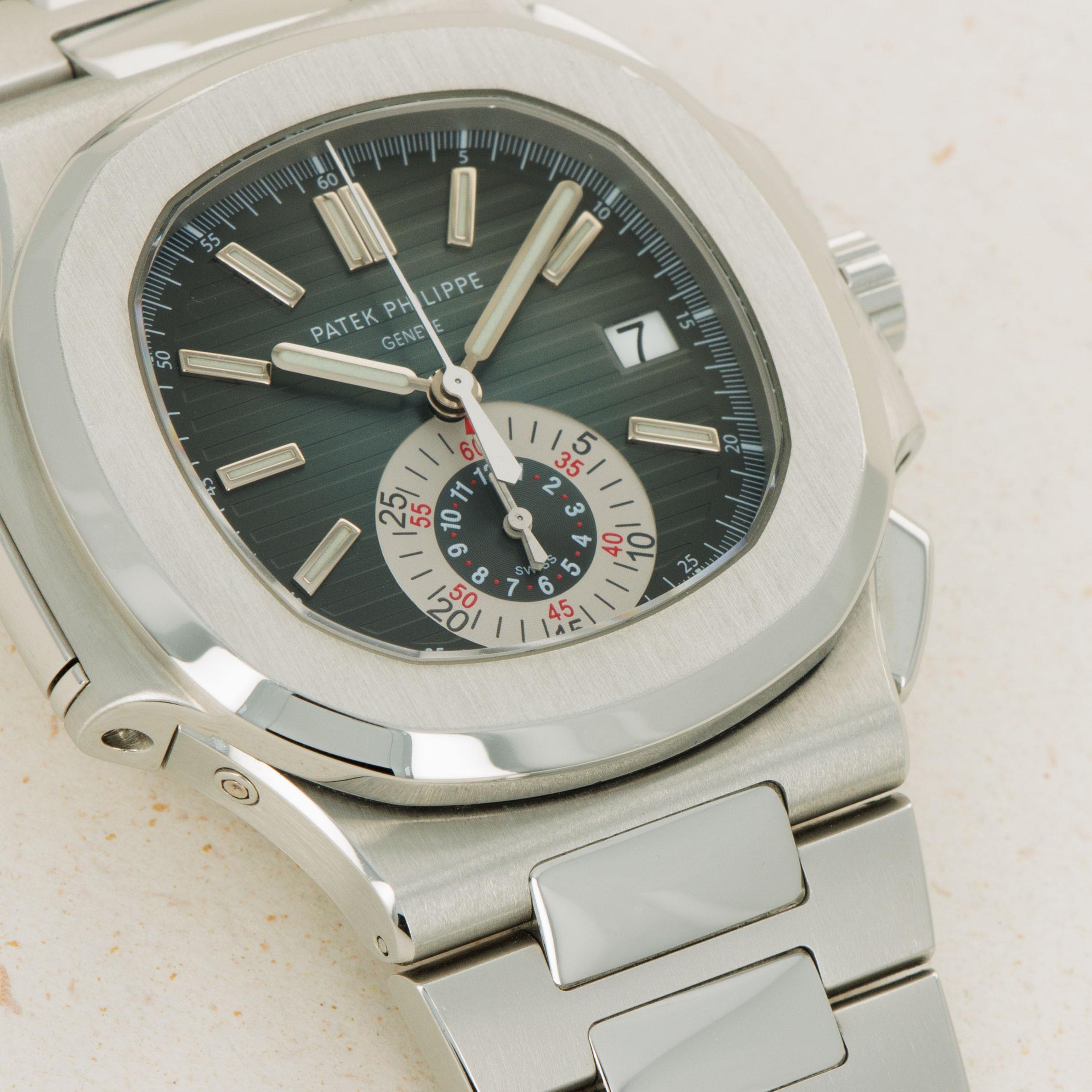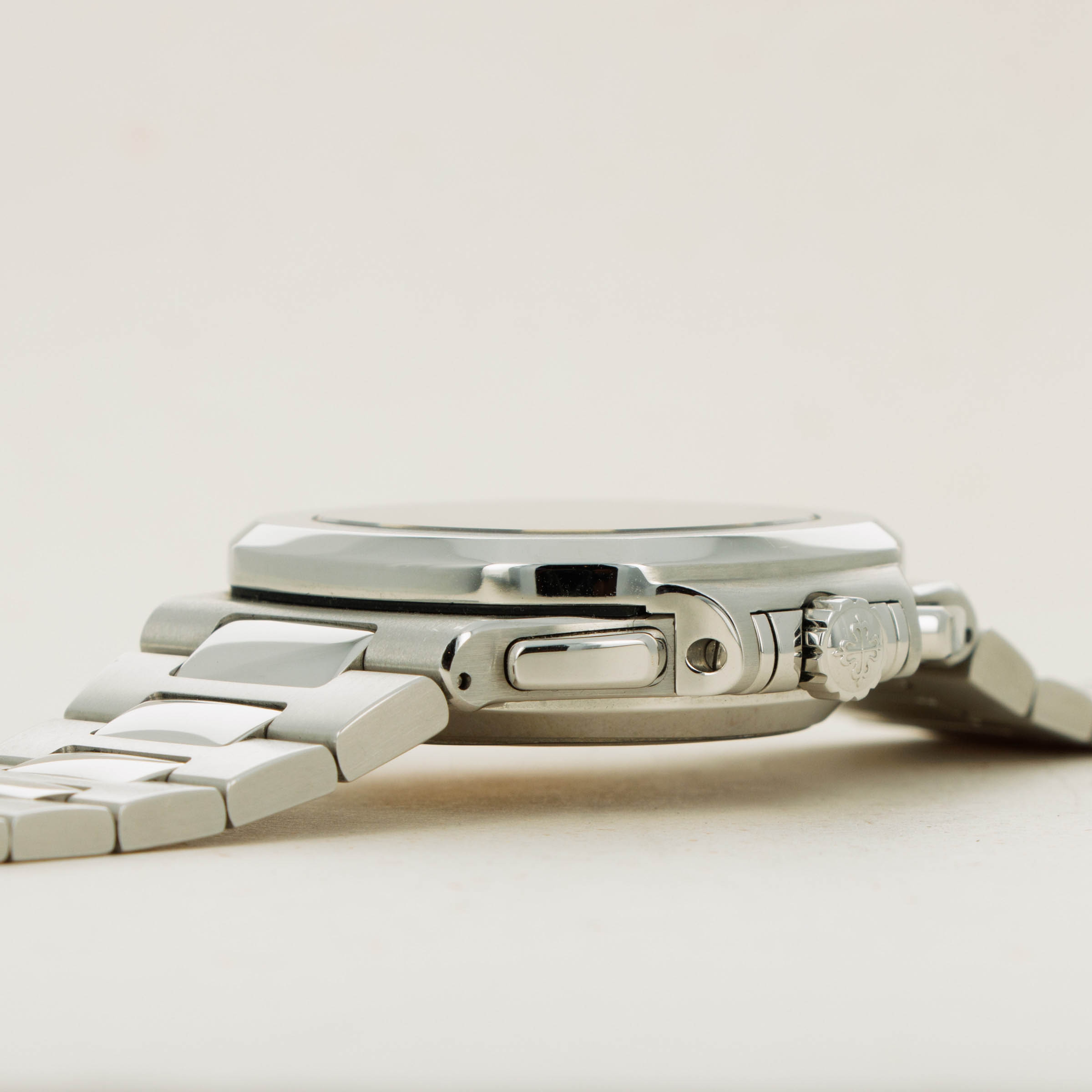 Released in 2006, the Patek Philippe Nautilus ref. 5980R combines the heritage of the Nautilus collection with a practical and brilliantly designed chronograph complication that speaks to the mechanical elegance and sophisticated design we have come to expect from Patek Philippe. Water-resistant to a rather impressive 120m, and featuring its signature co-axial chronograph counter at 6 o’clock, the ref. 5980 allows its wearer to track both the elapsed minutes and hours all on the same subdial. Beyond the Nautilus’ history, elegant design, and useful function, the Nautilus ref. 5980 is amongst one of the Nautilus’ rarest variants. Retaining its base model’s signature blue gradient dial and stainless steel construction, the ref. 5980 is undeniably recognizable as a Nautilus, one of the most sought-after watches on the market for the last handful of years.