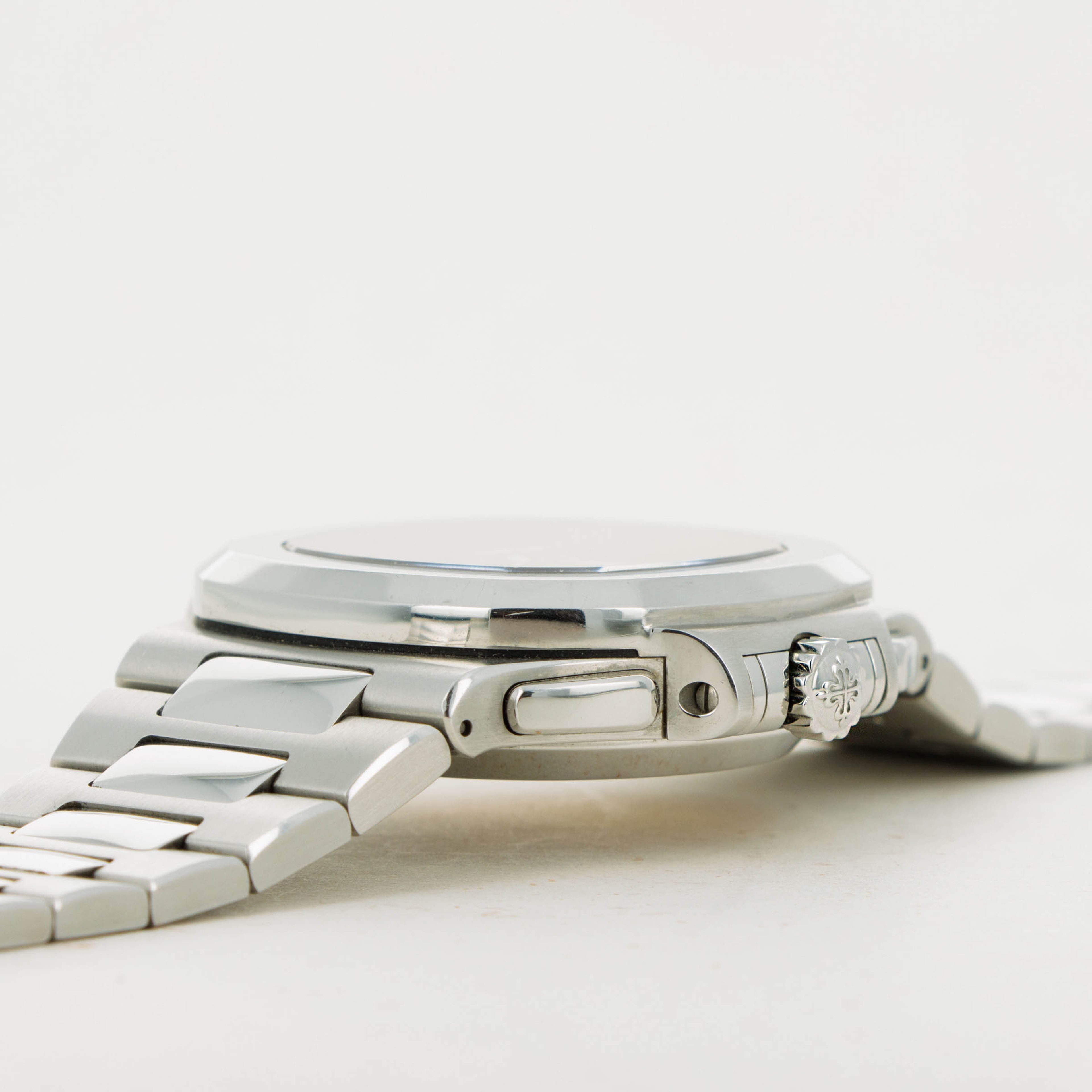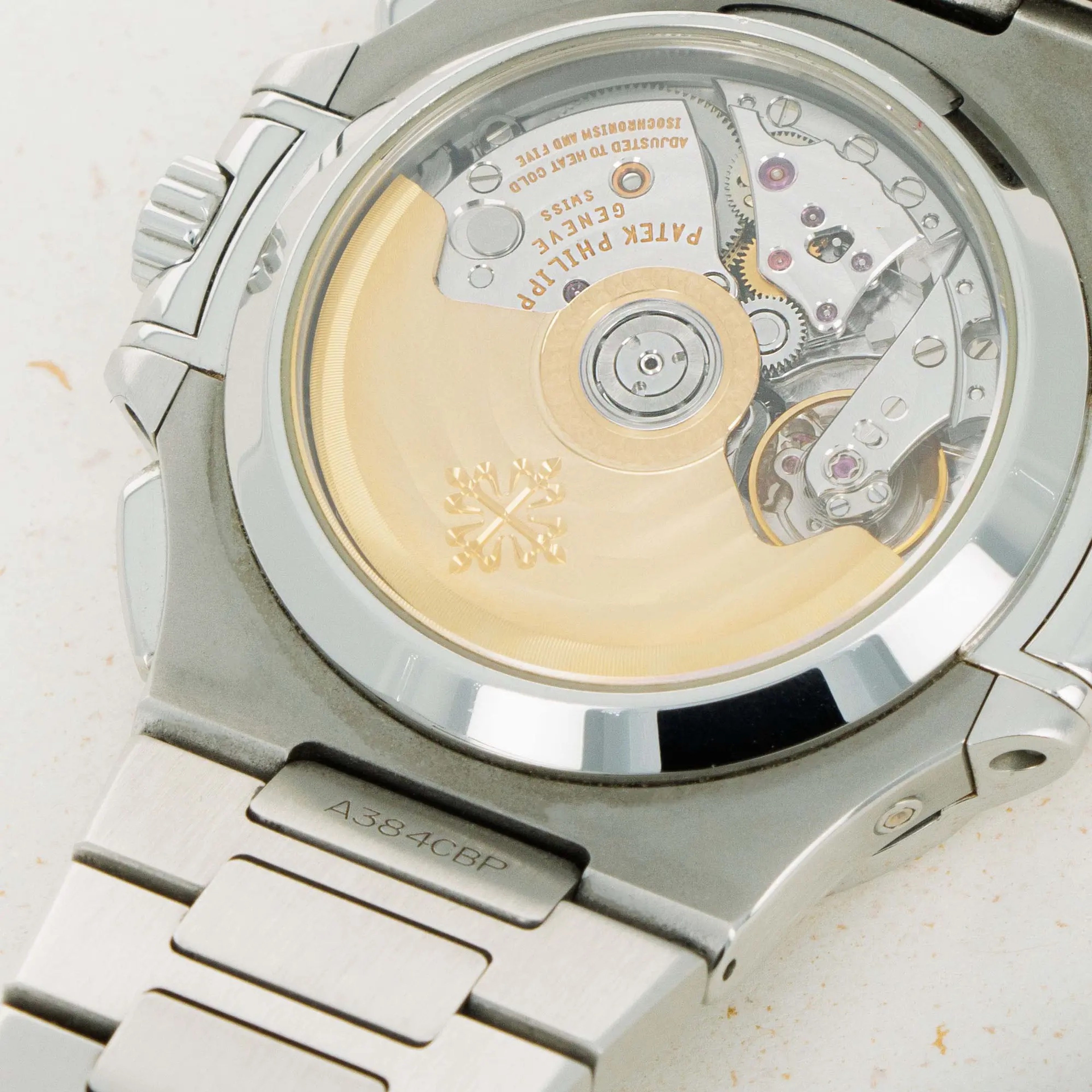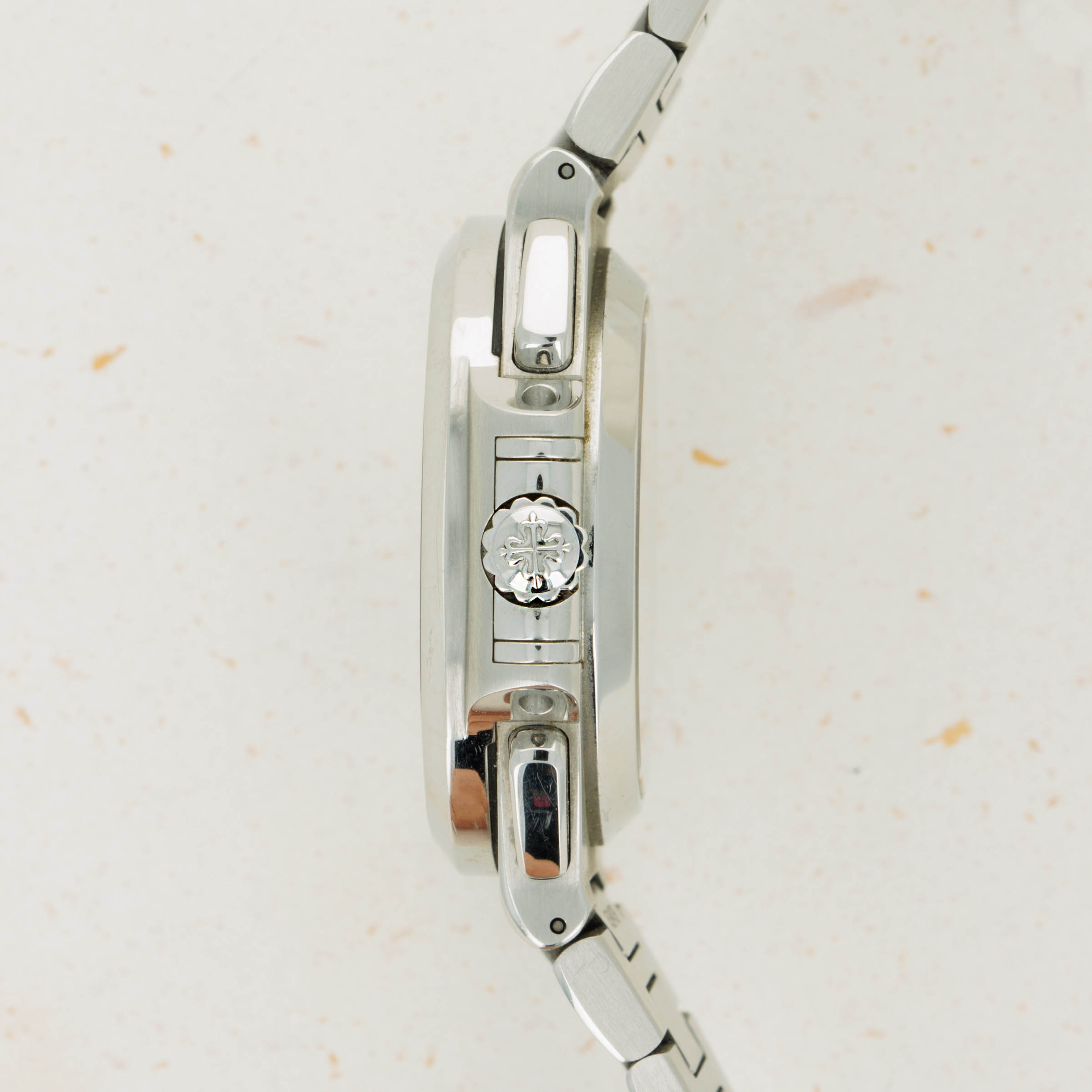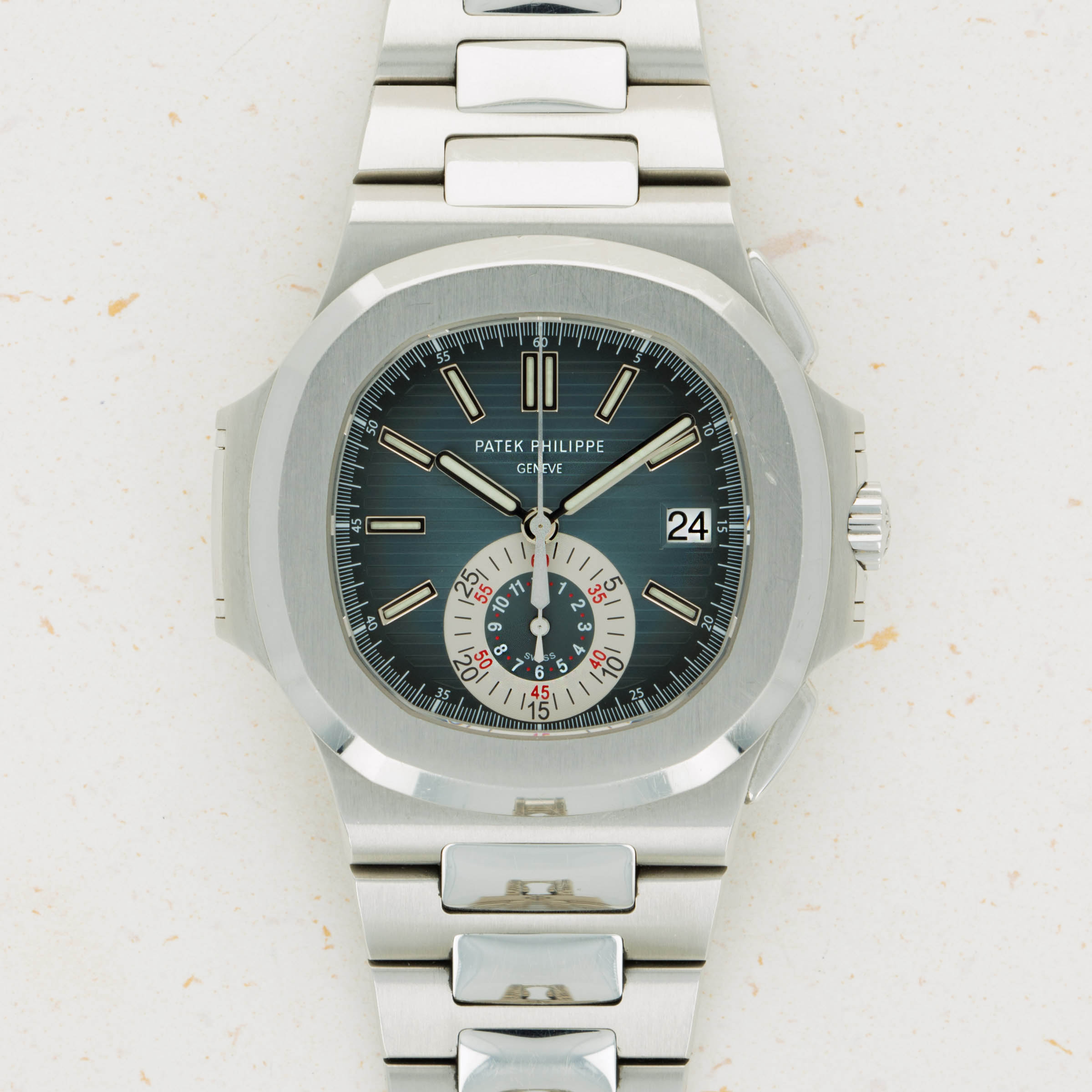Released in 2006, the Patek Philippe Nautilus ref. 5980R combines the heritage of the Nautilus collection with a practical and brilliantly designed chronograph complication that speaks to the mechanical elegance and sophisticated design we have come to expect from Patek Philippe. Water-resistant to a rather impressive 120m, and featuring its signature co-axial chronograph counter at 6 o’clock, the ref. 5980 allows its wearer to track both the elapsed minutes and hours all on the same subdial. Beyond the Nautilus’ history, elegant design, and useful function, the Nautilus ref. 5980 is amongst one of the Nautilus’ rarest variants. Retaining its base model’s signature blue gradient dial and stainless steel construction, the ref. 5980 is undeniably recognizable as a Nautilus, one of the most sought-after watches on the market for the last handful of years.