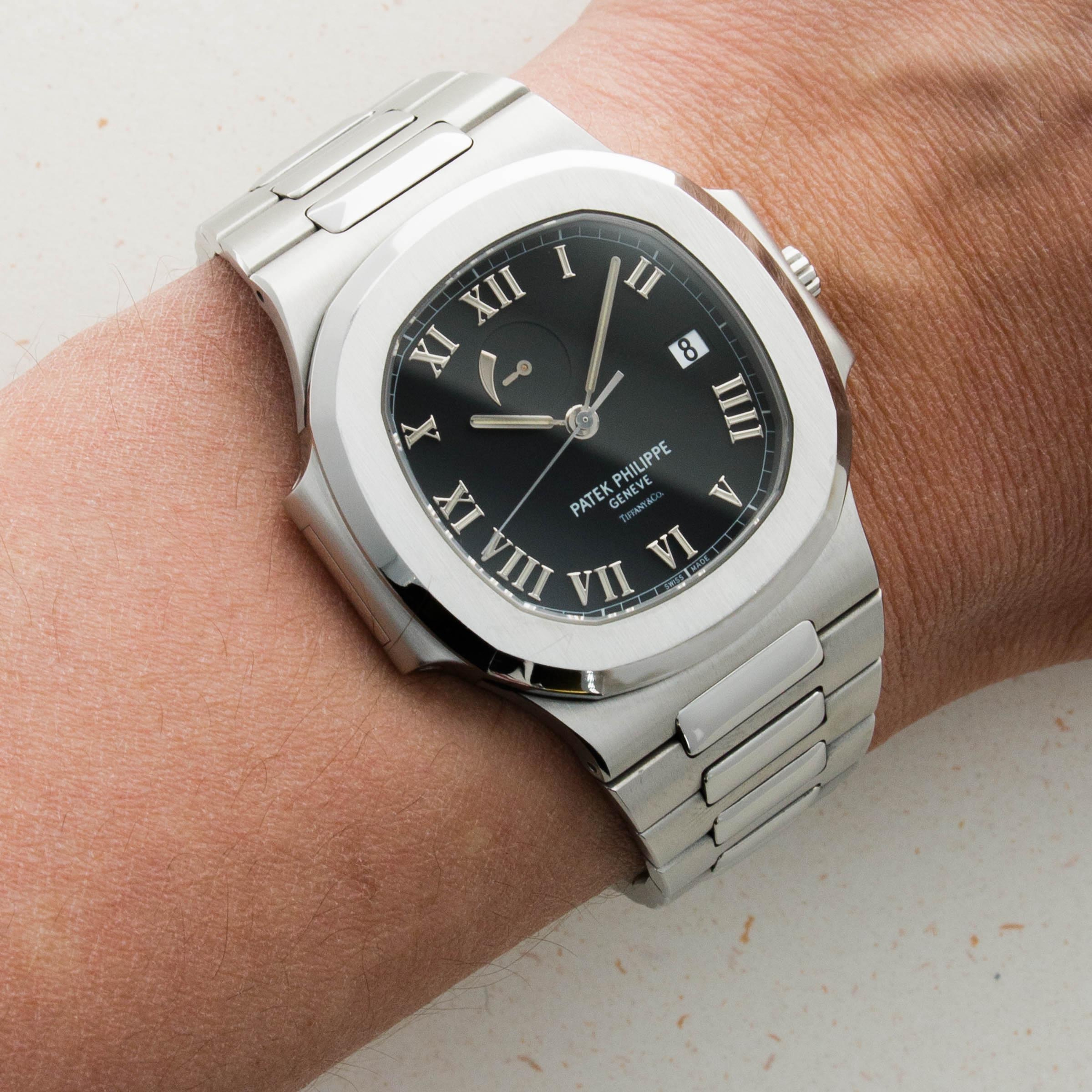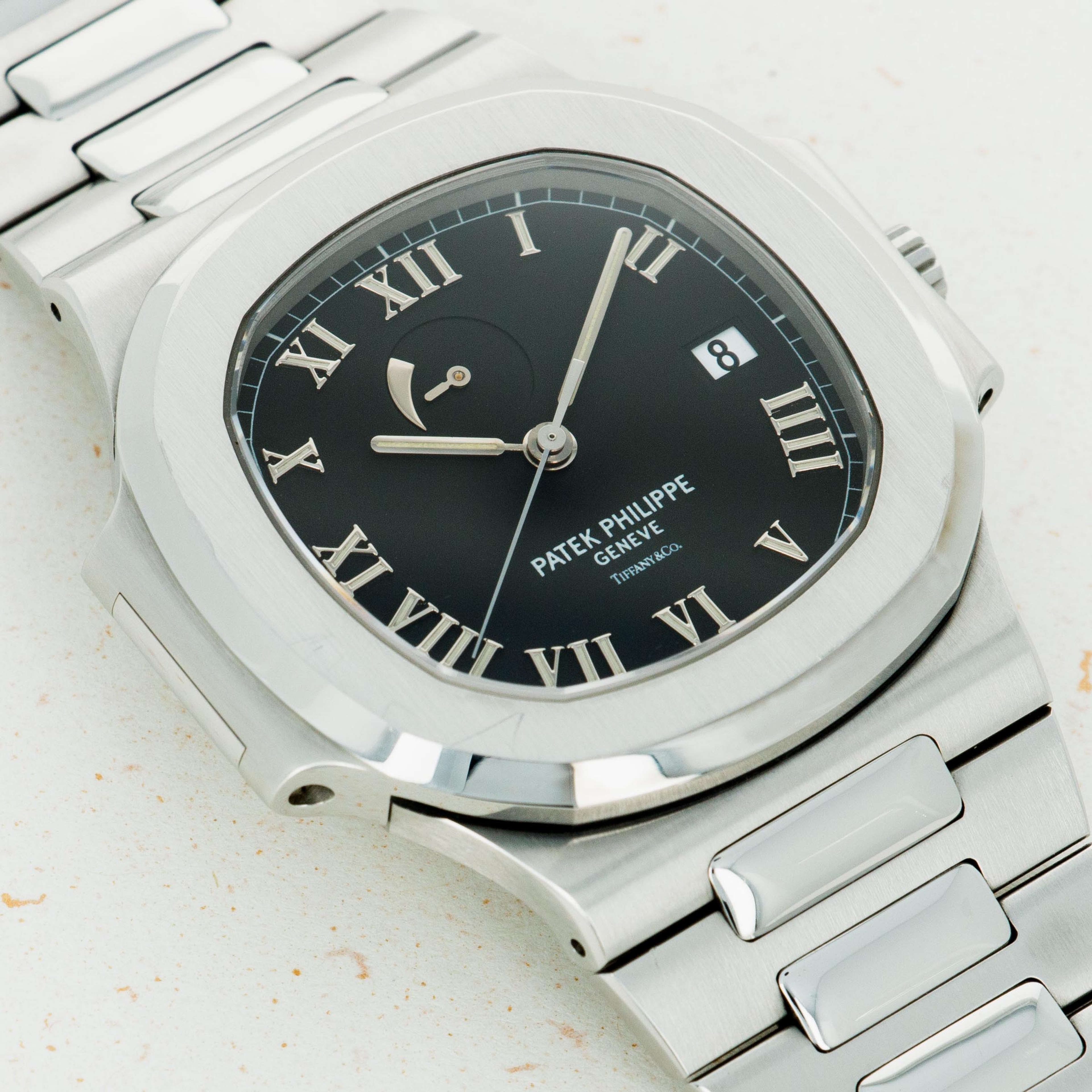 This watch simply has it all- It is a Nautilus made in stainless steel, with a jumbo case, which also happens to have been retailed by Tiffany & Co. What more could one possibly want? It is difficult to conceive that there were more than a handful of these made, with even less now still accompanied by their Certificate of Origin. Don't miss this opportunity to pick up this rarity at no reserve.