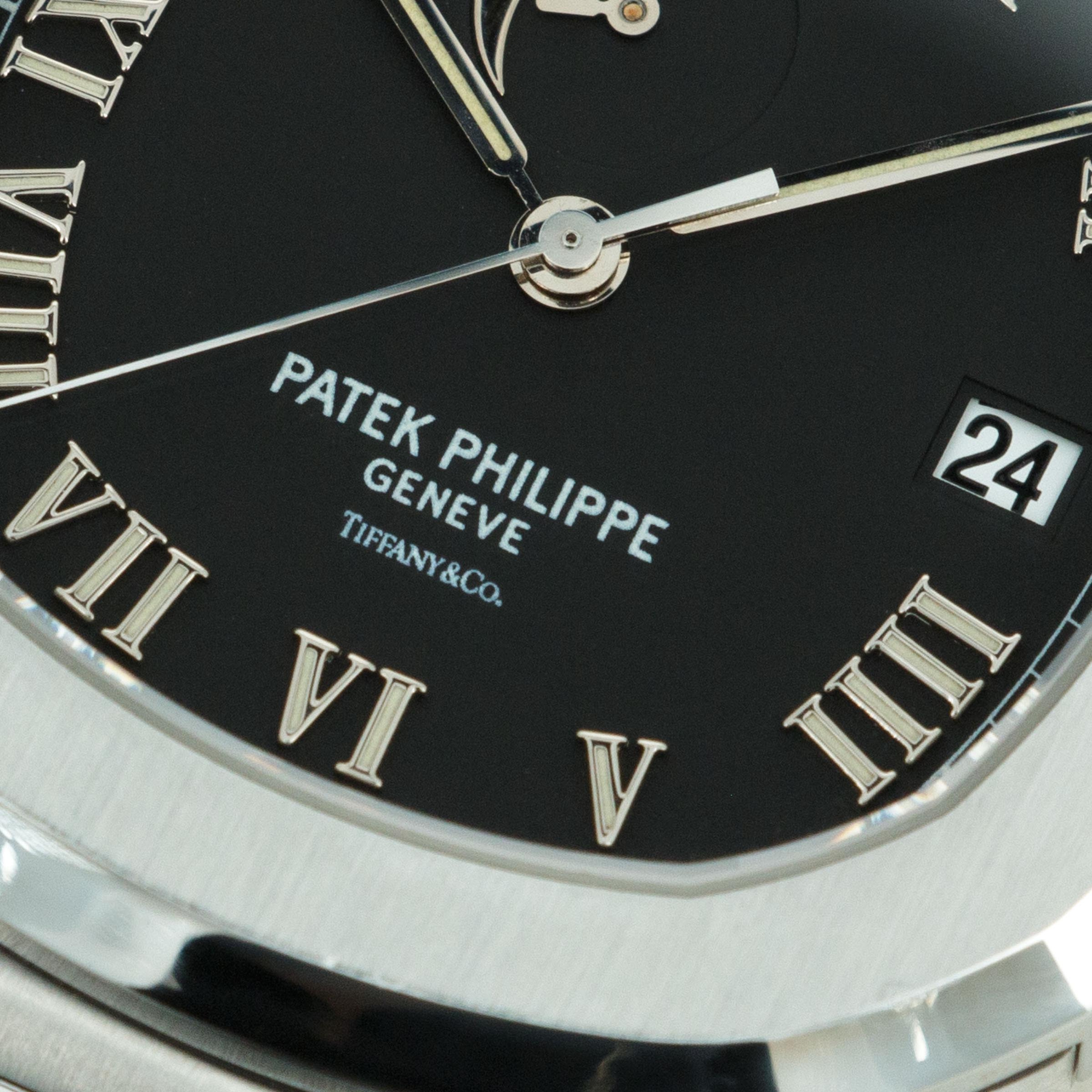 In 1998, Patek Philippe released the 3710. This model was the first to feature a complication (Power Reserve Indicator) beyond the date function. Housed in the Jumbo case, the 3710 was produced until 2006. This example, bearing the "Tiffany & Co." signature on the dial is quite unusual, and was likely produced in extremely small quantities.