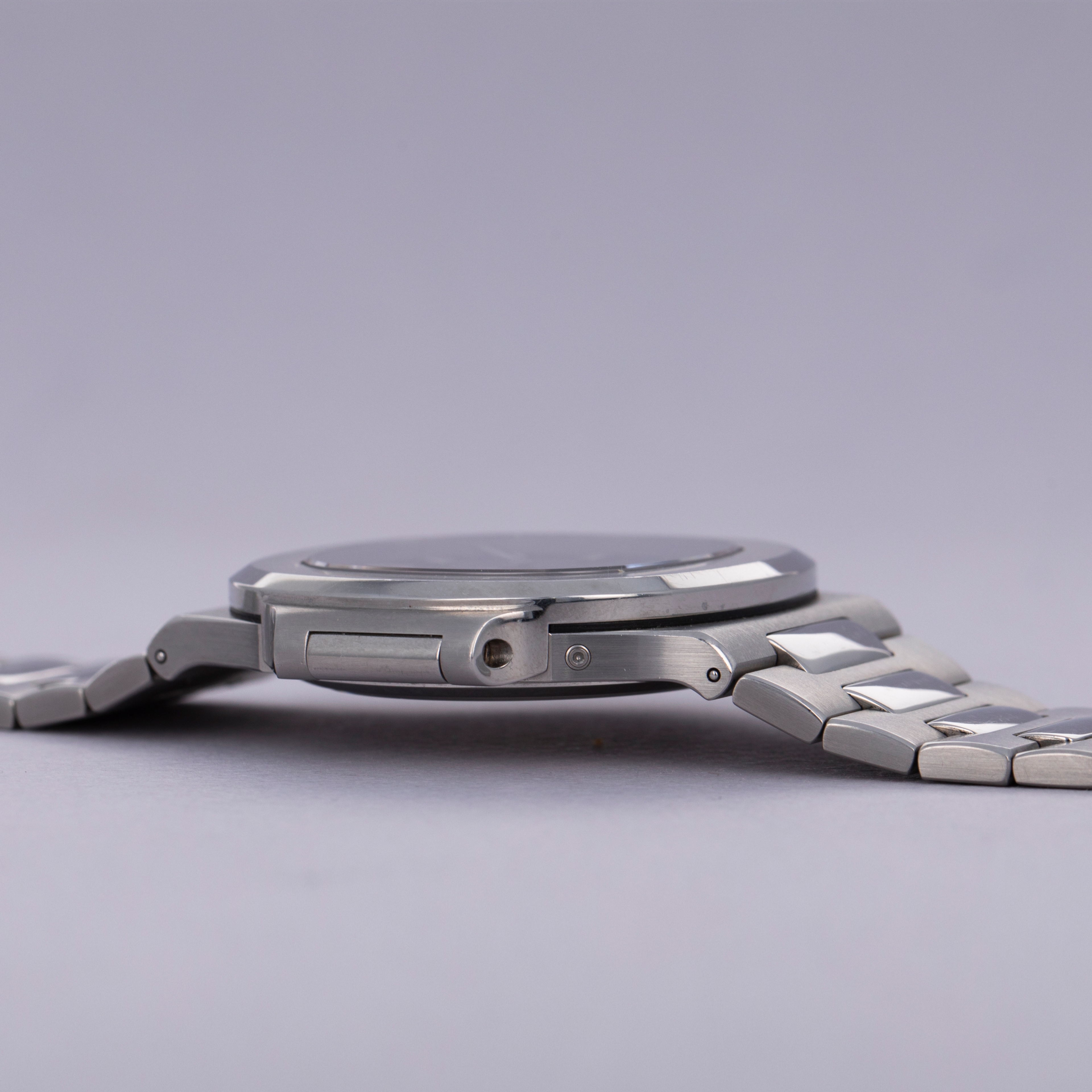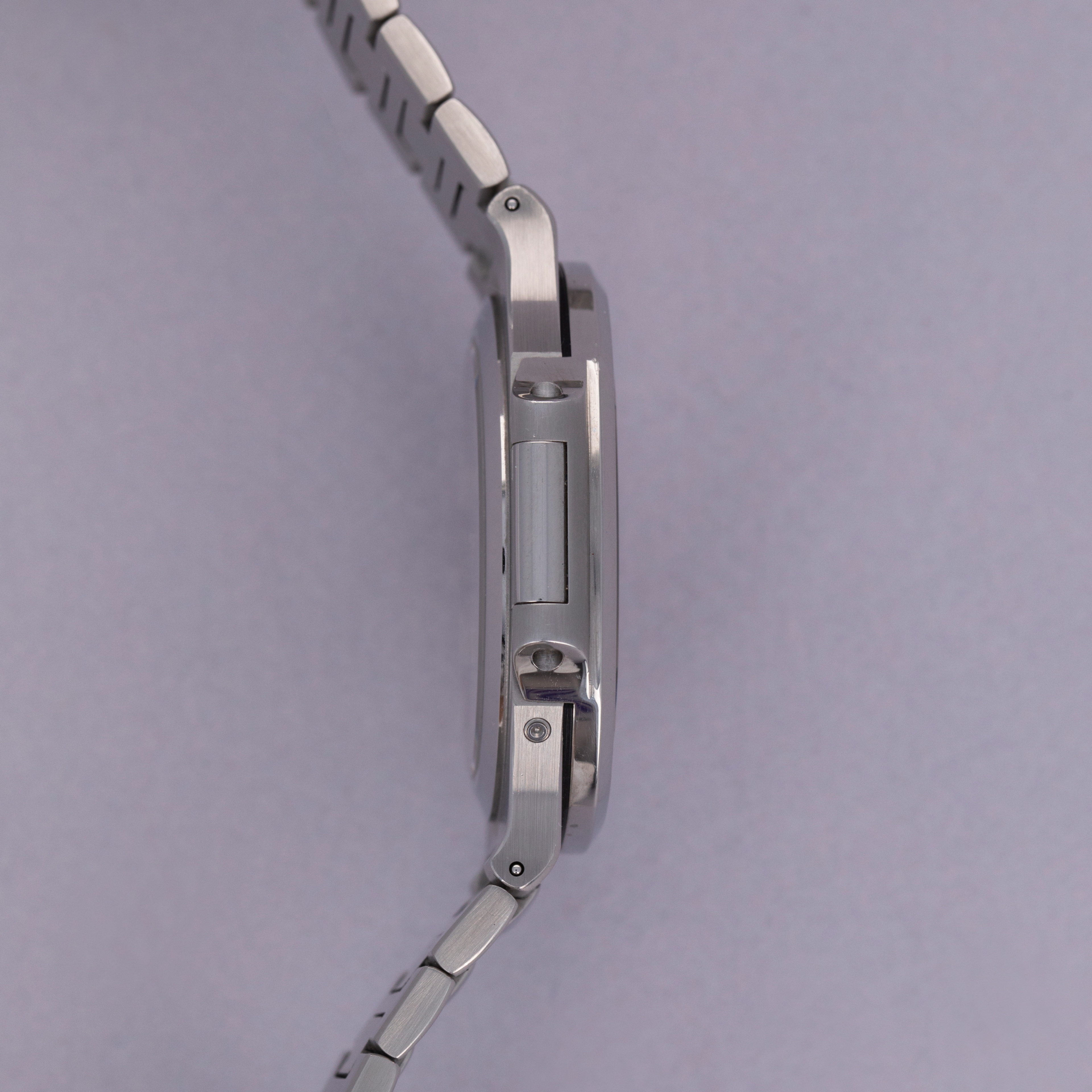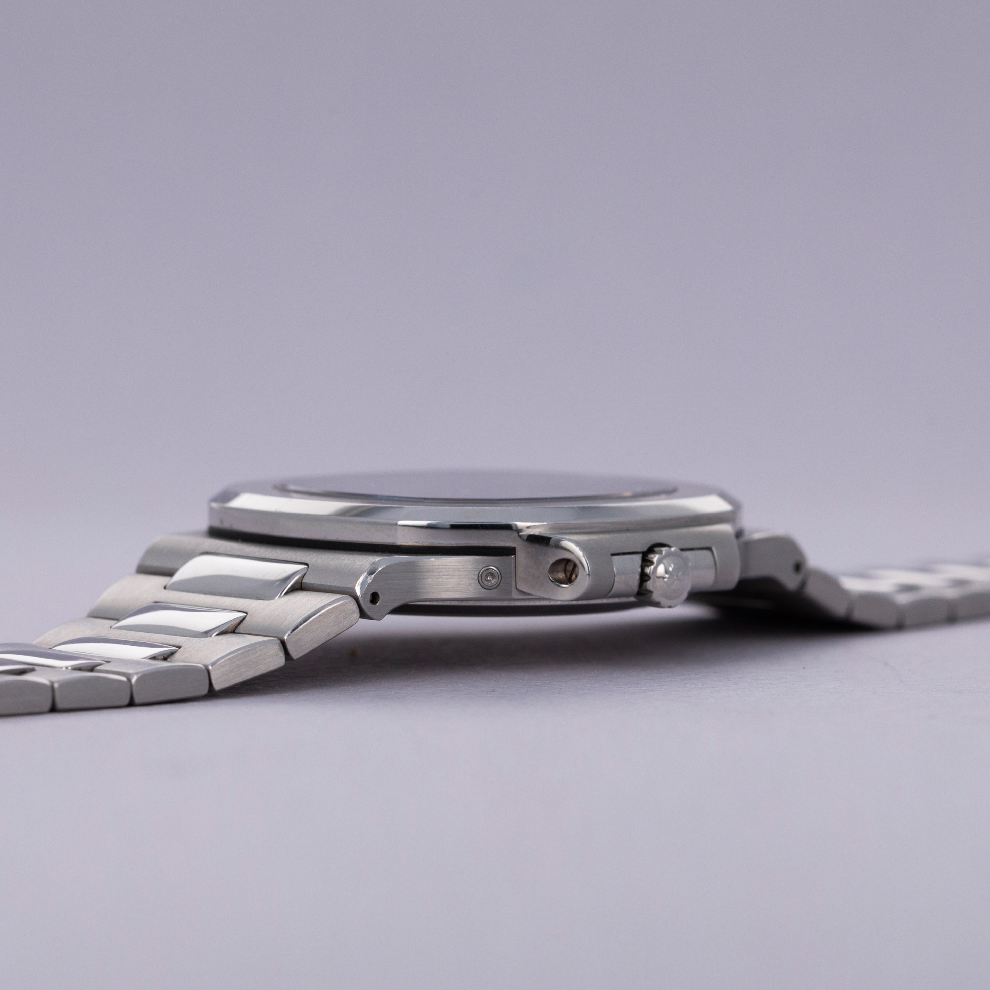 Featuring the Nautilus' typical dial DNA, the ref. 3712 sports a blue to black gradient alongside horizontal embossing that combine to create a familiar aesthetic. However, with its off-center pointer date and moonphase indicator, power reserve indicator, and running seconds subdial, it is a wonderfully unique dial indeed. Identifiable as a later example thanks to it having 4 dots instead of 3 in its power reserve, this ref. 3712 is likely from 2006.