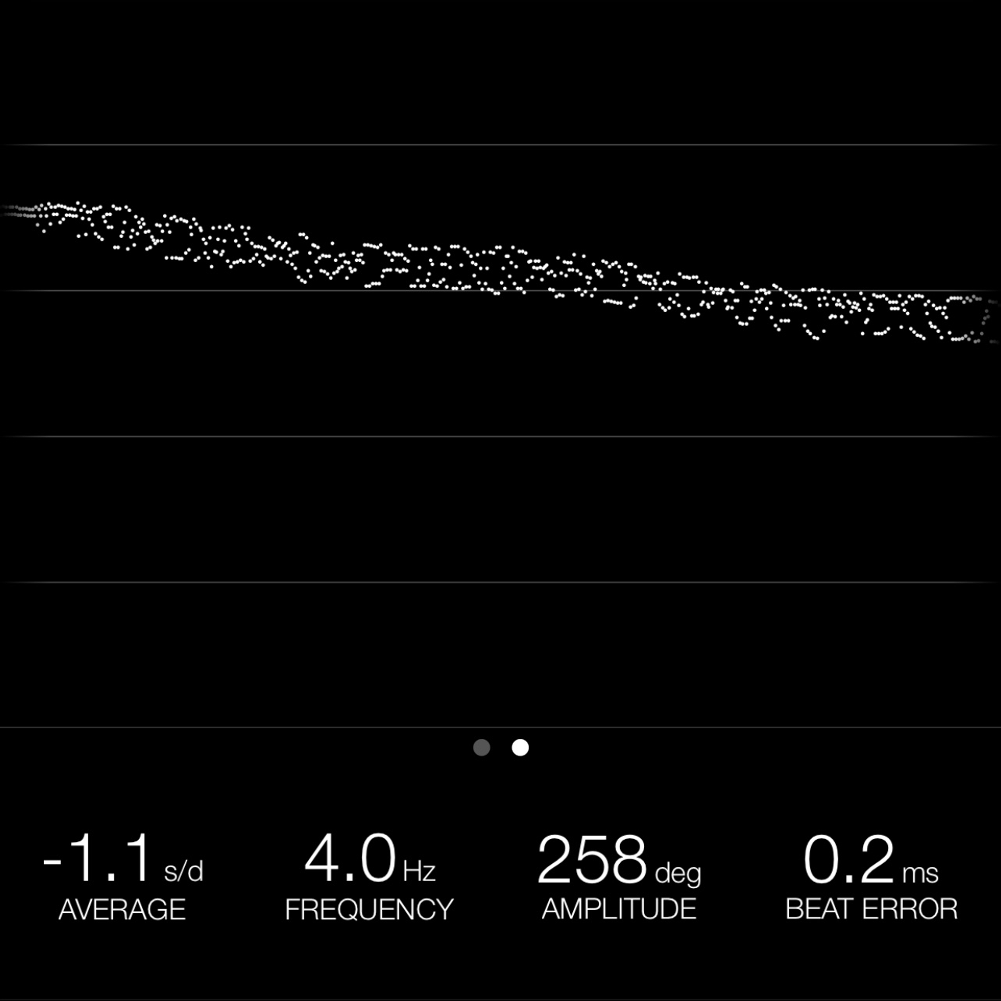 This reading was taken (crown down) with a ONEOF Accuracy Boutique Edition timing machine at time of cataloging. It is provided as a courtesy only, and shall not be construed as a warranty or guarantee of any kind. Please refer to our terms and conditions of sale for more information.