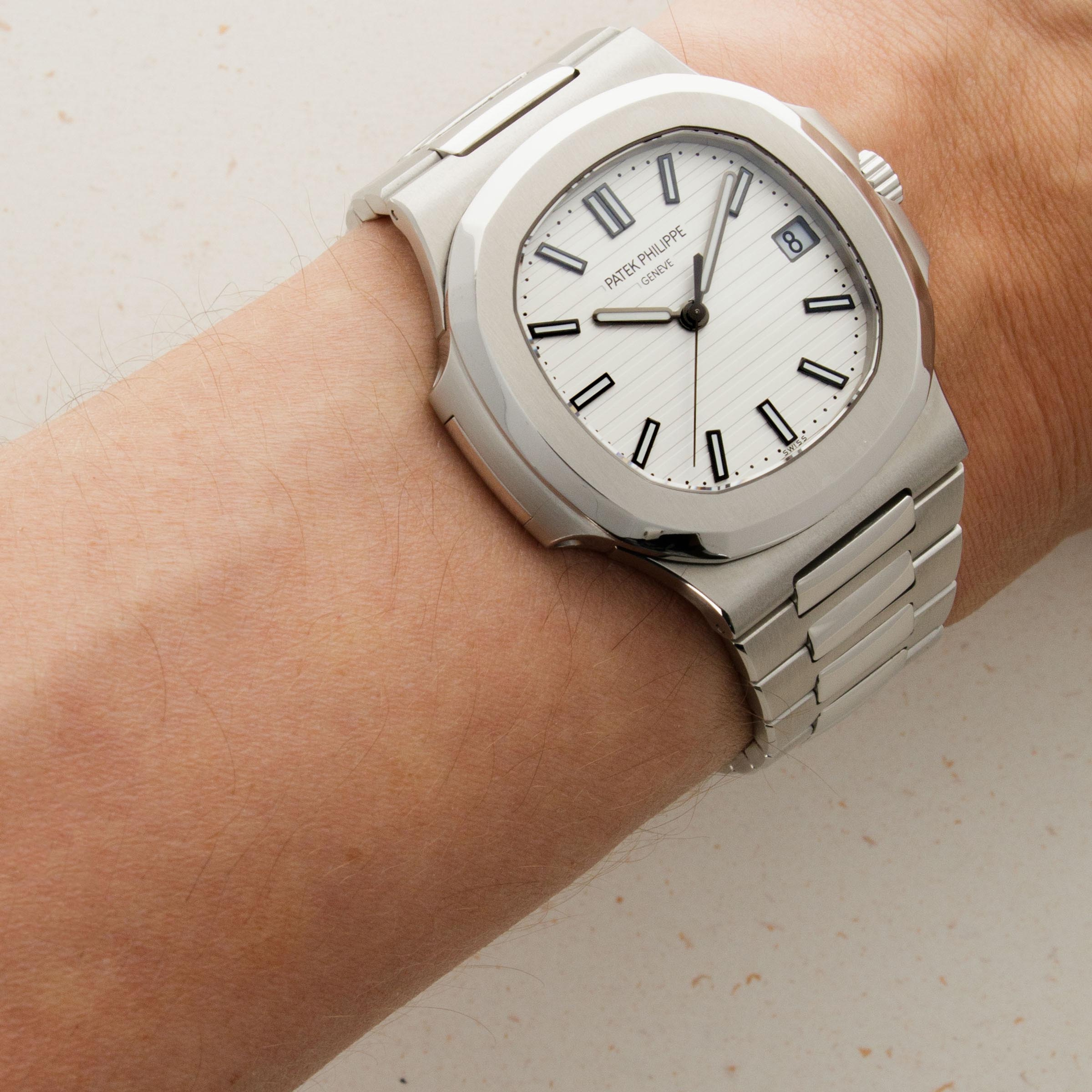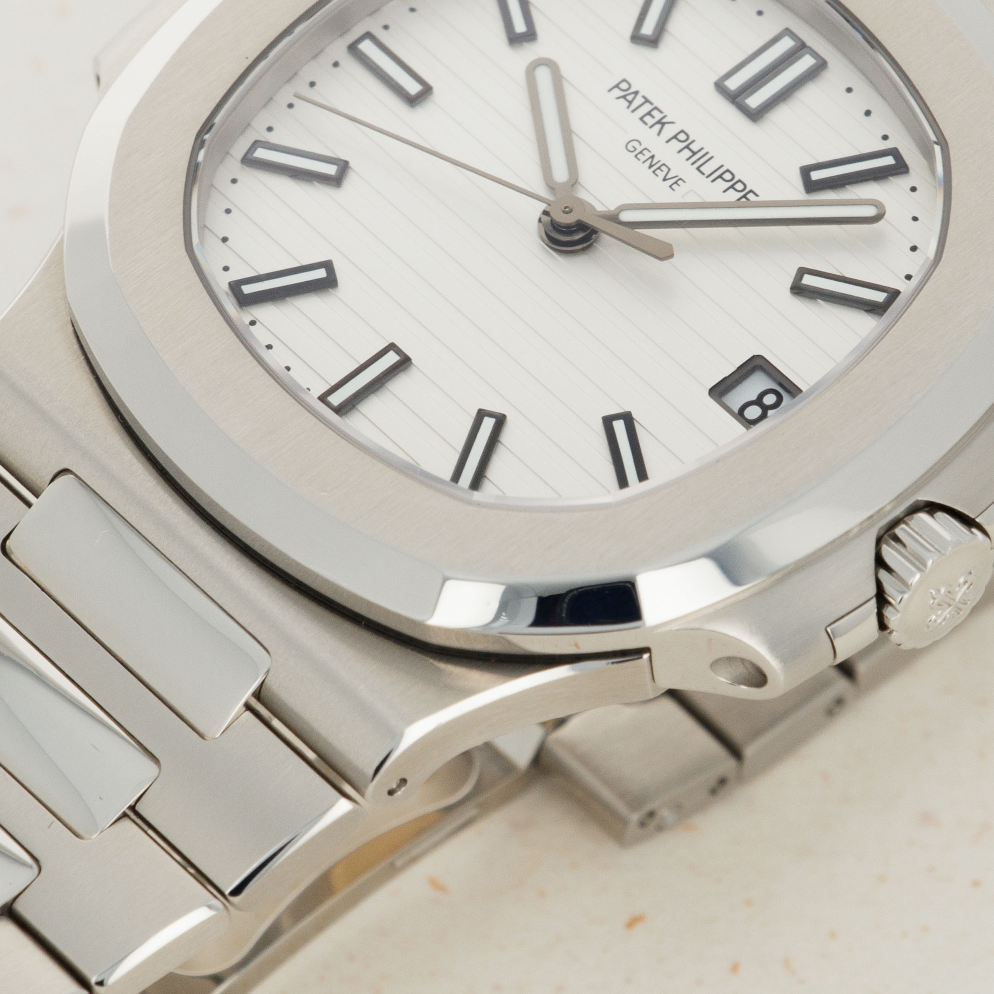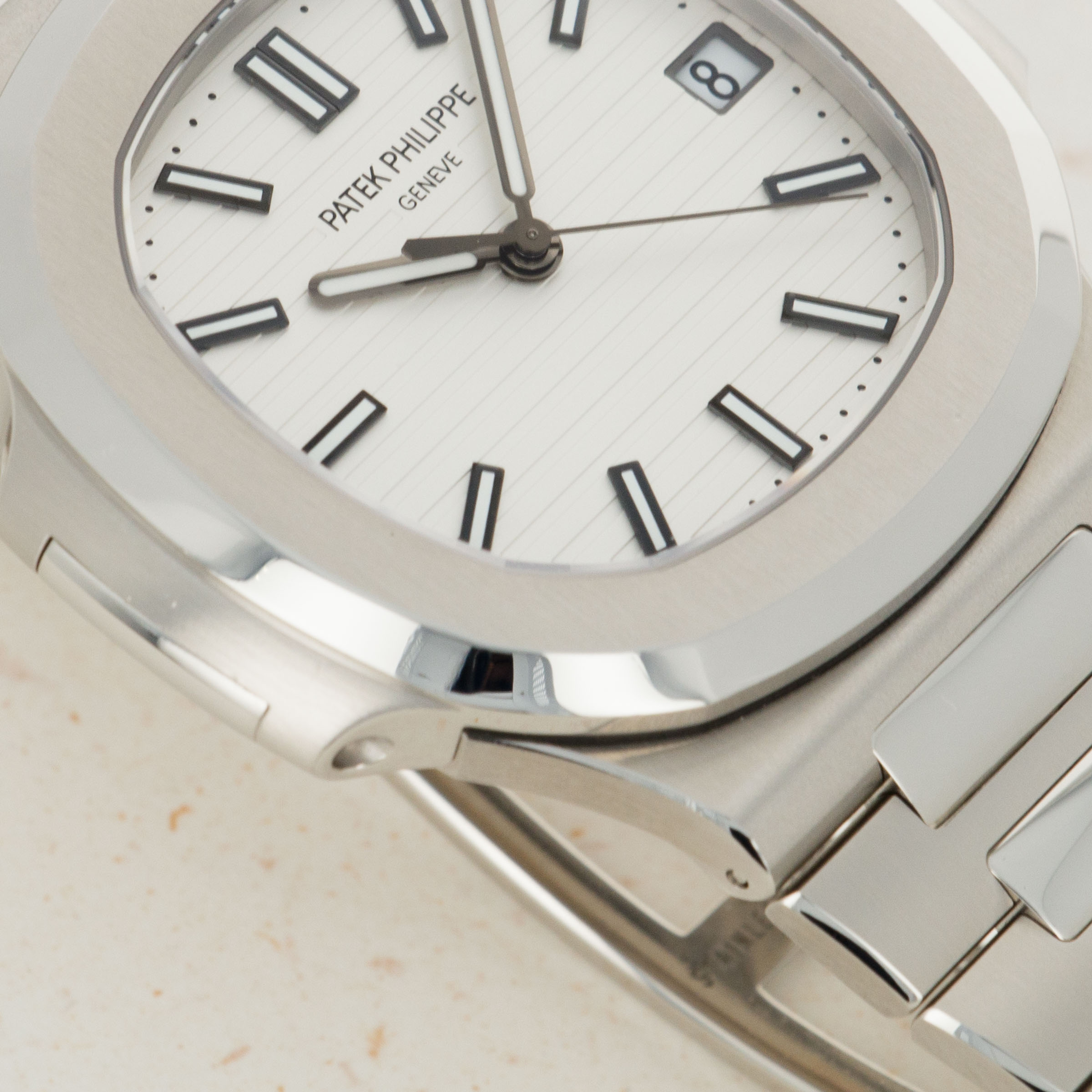 Affectionately known as the "Piano" dial Nautilus variant, this ref. 5711's features black hour markers and hands that stand out proudly against their all-white backdrop like the black and white keys on a piano.