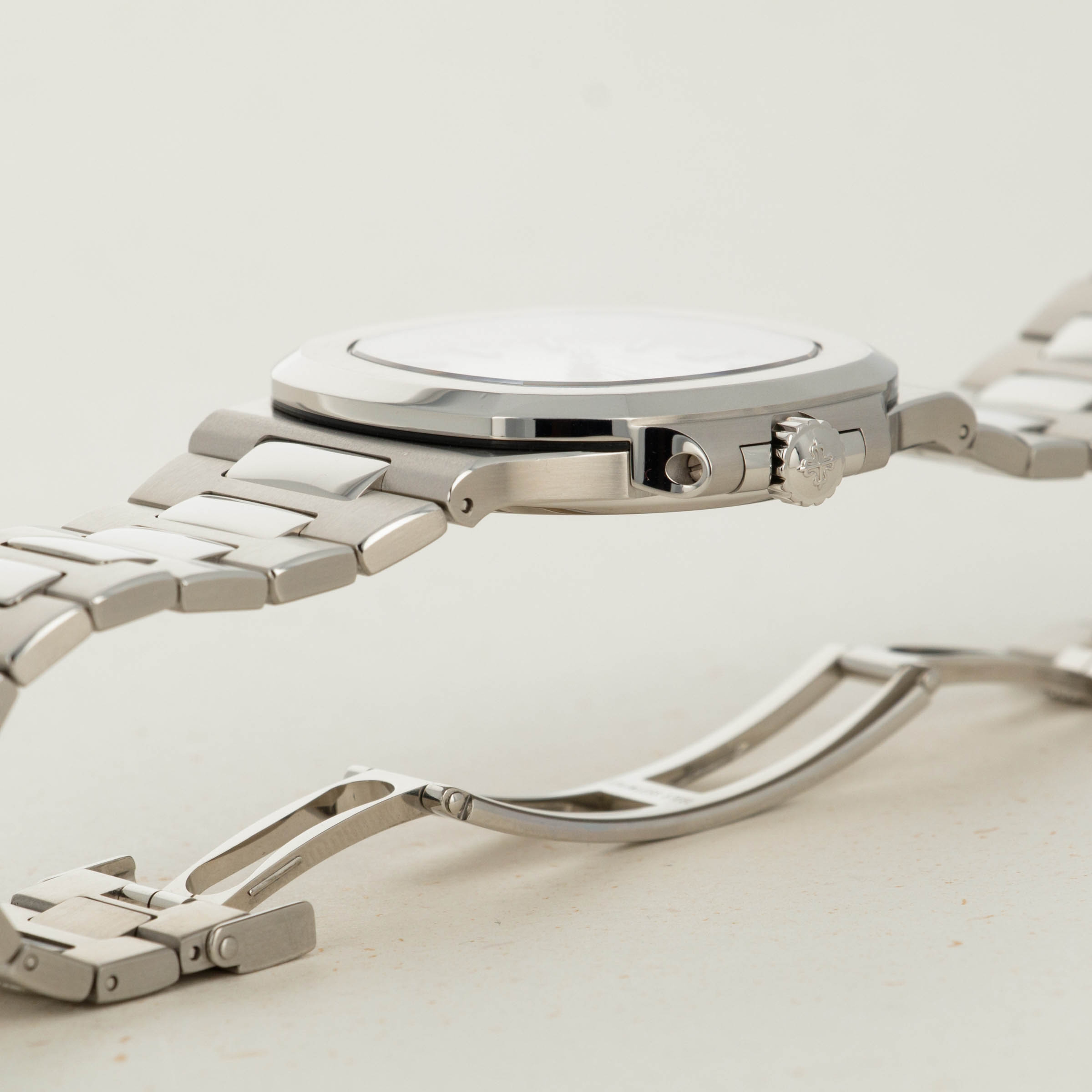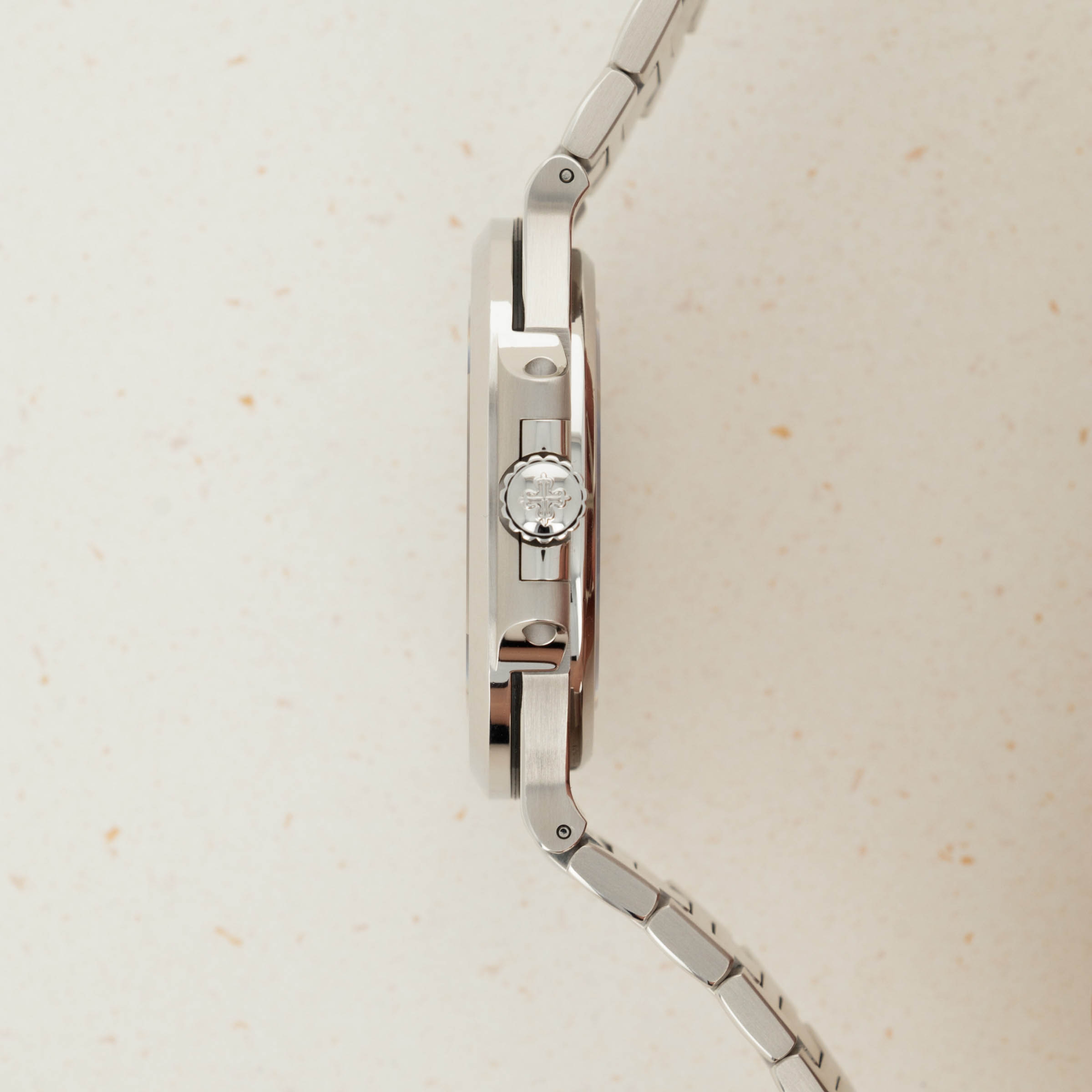 Released in 1976 as Patek Philippe's response to the Audemars Piguet Royal Oak, an avant-garde luxury stainless steel sports watch borne from AP's necessity to survive the Quartz Crisis, the Nautilus was Patek Philippe's attempt to go head to head with AP's increasingly popular sports watch. Designed by Gerald Genta, the same man that had designed the Royal Oak, the Nautilus was inspired by a porthole and thus features a rounded-over octagonal bezel and hinge-like protrusions on either side of its case. Featuring its signature horizontally embossed dial and iconic integrated bracelet, the Nautilus has become the most sought-after watch in the market today as collectors clamor over examples thanks to its iconic design, extreme exclusivity, and impeccable craftsmanship.