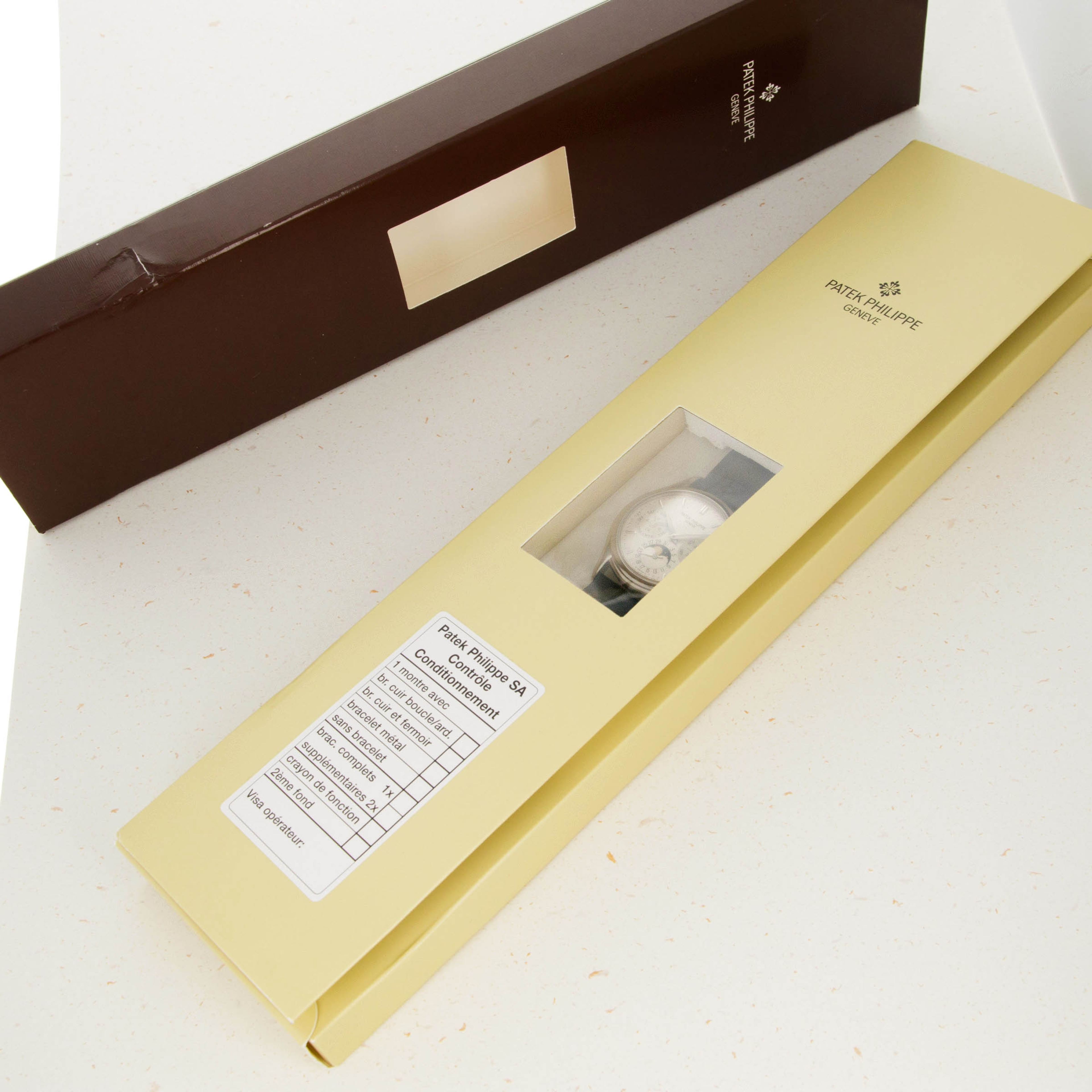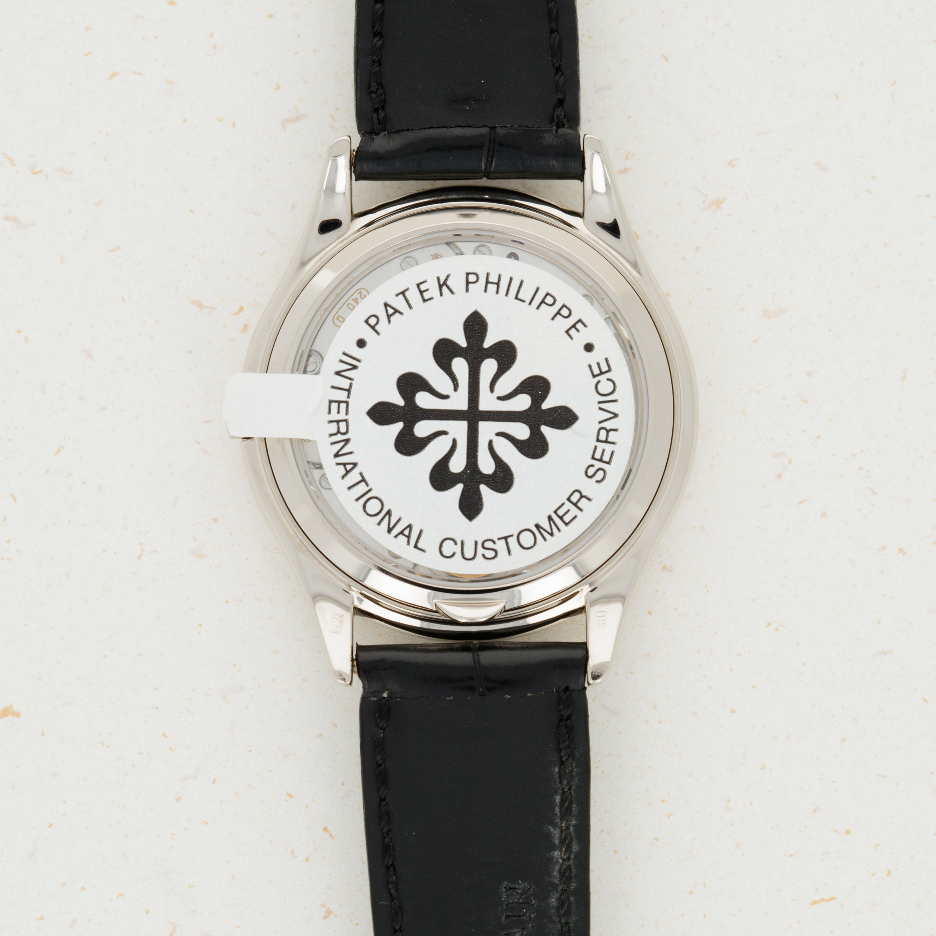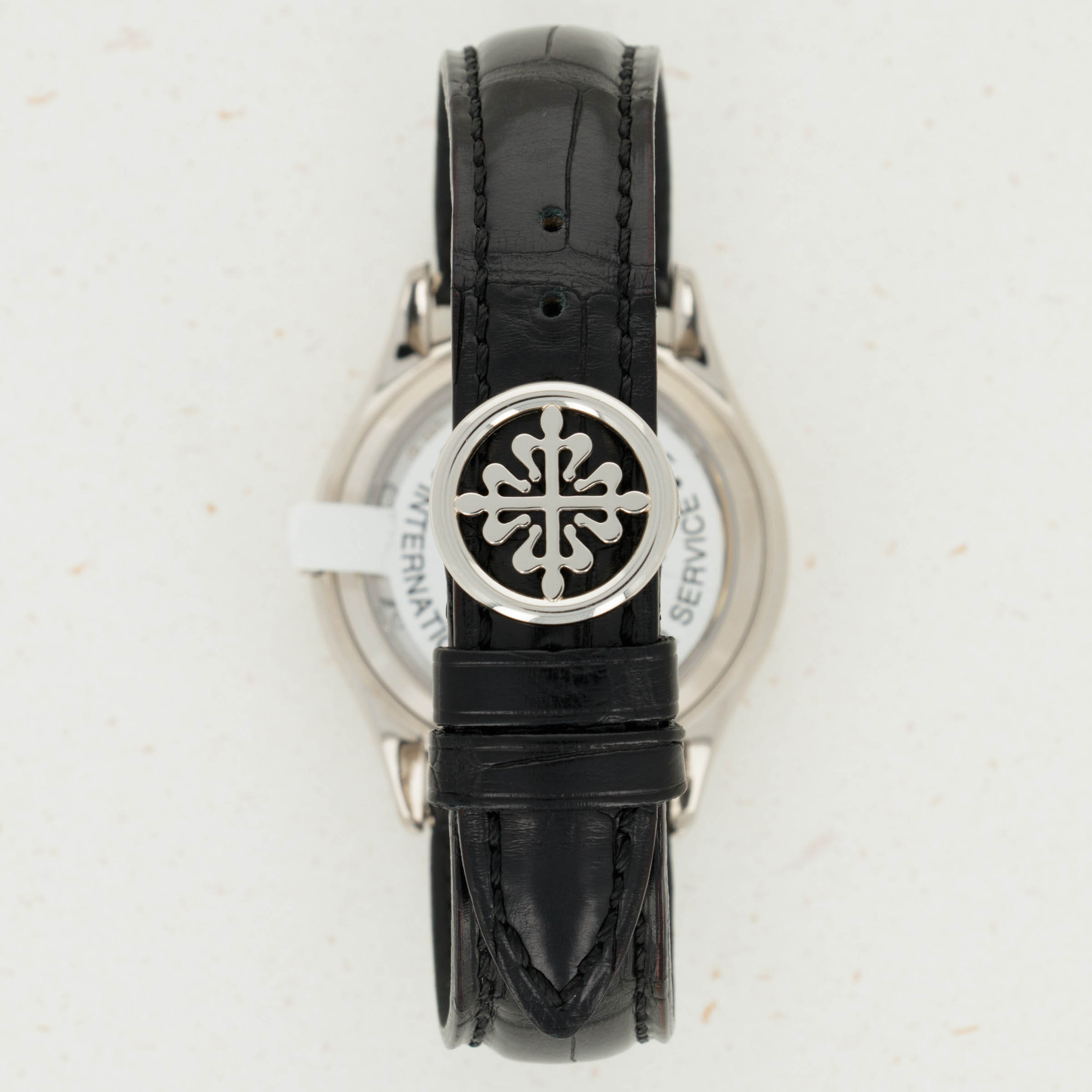 The overall condition of the watch is excellent. Dial is in near-mint condition with no visible surface scratches or marks. Case is in excellent condition with strong hallmarks. Sapphire exhibition back has a Patek Philippe service sticker, however we are unsure of its service history. Strap is a later replacement.