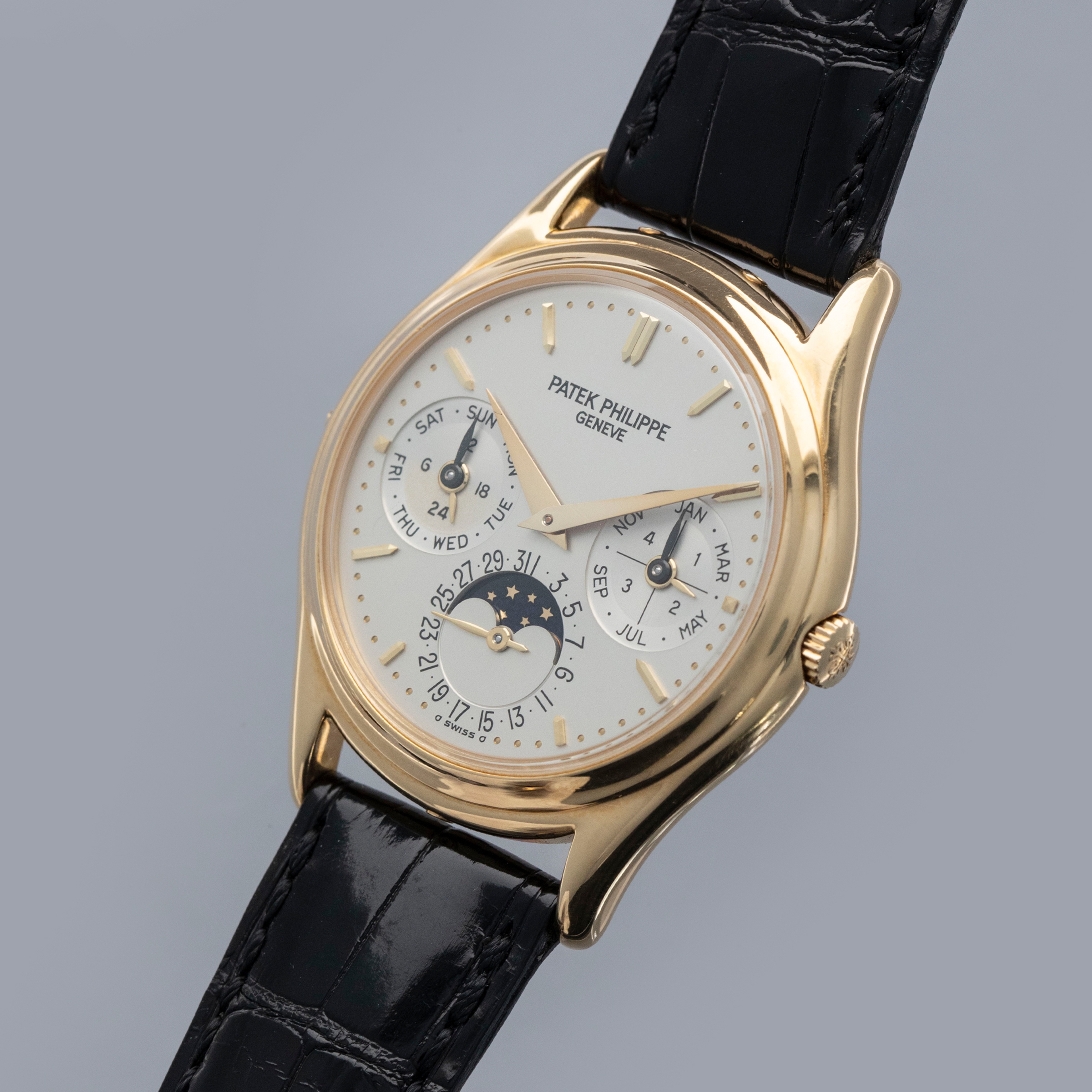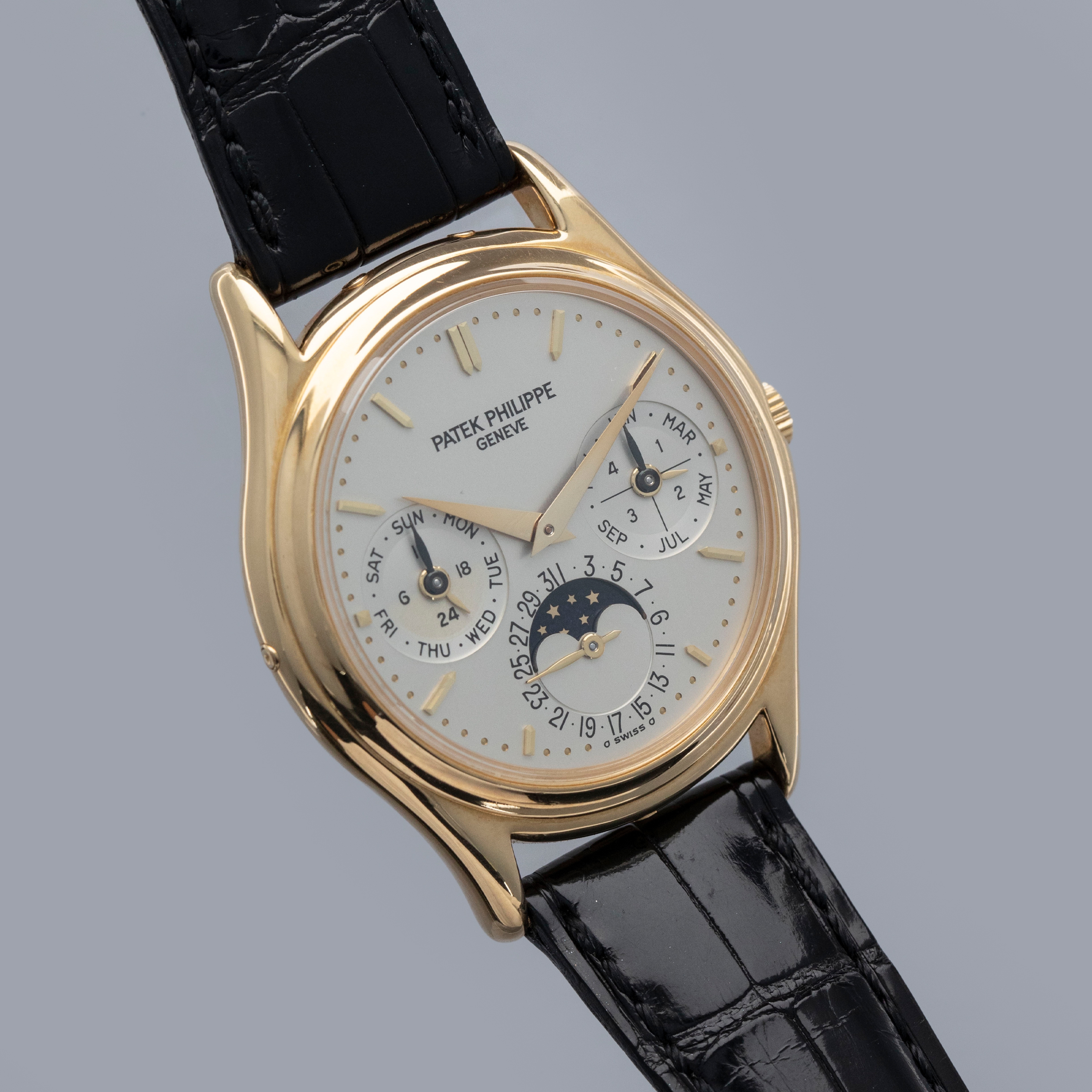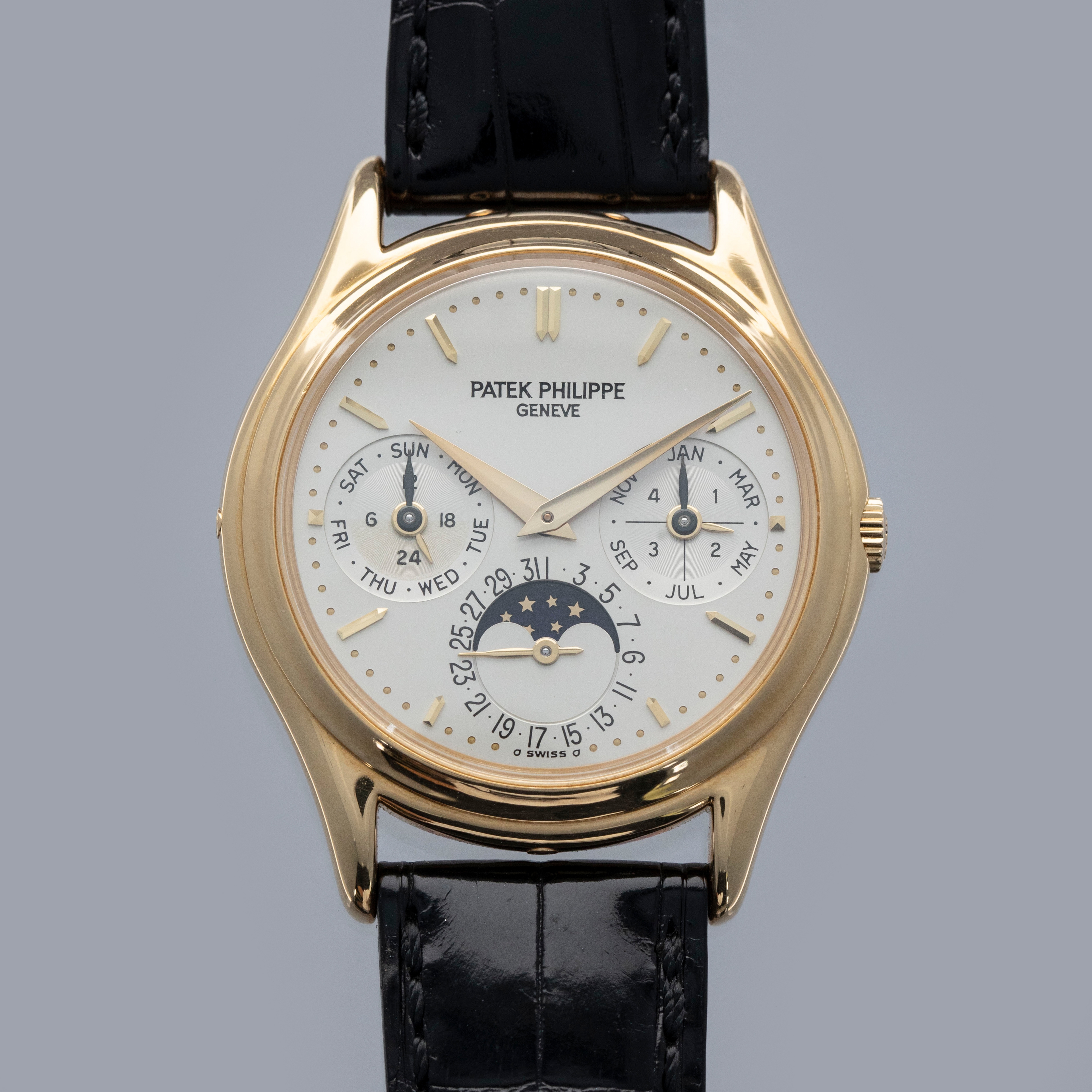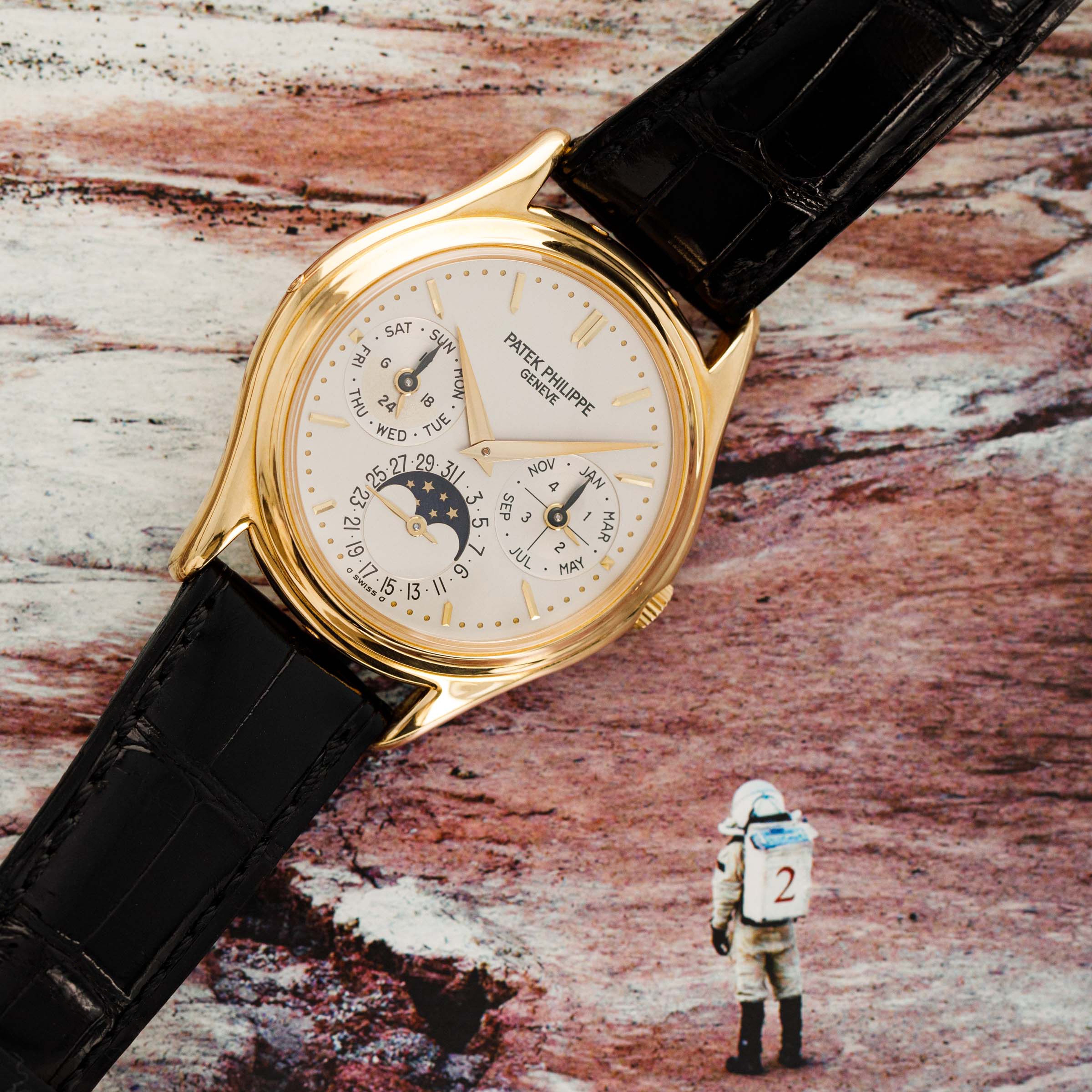 Released in the mid-80s when perpetual calendar timepieces were rare, the Patek Philippe ref. 3940 would quickly become the blueprint for perpetual calendar watches following in its footsteps looking to emulate its aesthetic design and, or, success. With its distinctively classical 36mm case diameter, the ref. 3940 appeals to the pre-modern days when 36mm was seen as a large watch, and technical innovations weren’t as intricate as they are today. One of the most important timepieces within Patek’s modern history, the ref. 3940’s inoffensive construction, beautiful dial, and immaculate craftsmanship all combine to create a watch that collectors still clamor to own. But with that aside, its position as the first serially produced perpetual calendar timepiece signifies that it was the watch to begin the trend for the hyper-complex that we are still; experiencing to this day. Released at the height of the Quartz Crisis, the ref. 3940 even contributed to growing the gap between traditional Swiss artisanal craftsmanship and cheap machine-made quartz watches, ultimately one of the industry’s saving graces as it helped reestablish the Swiss' reputation as the original occupants within the industry.