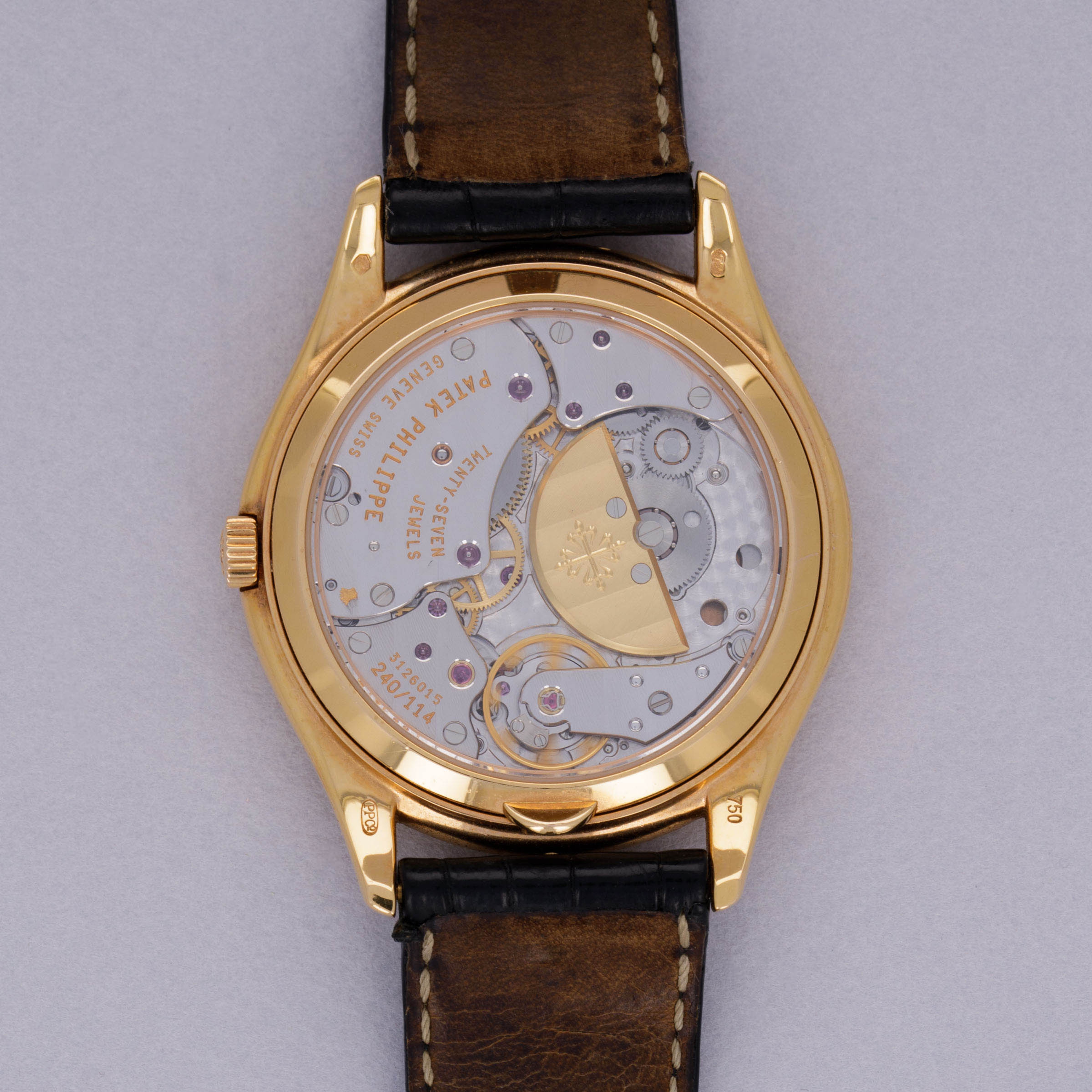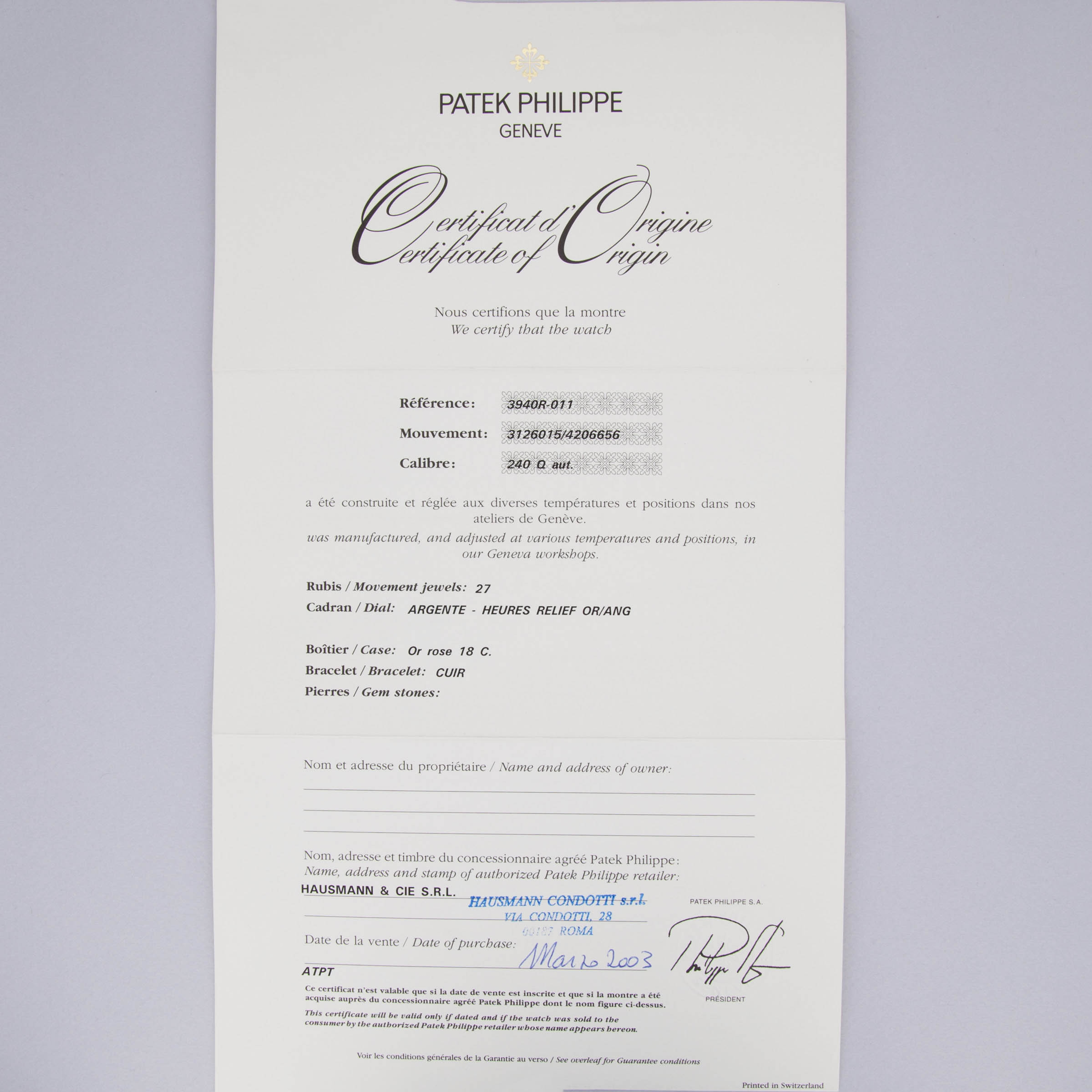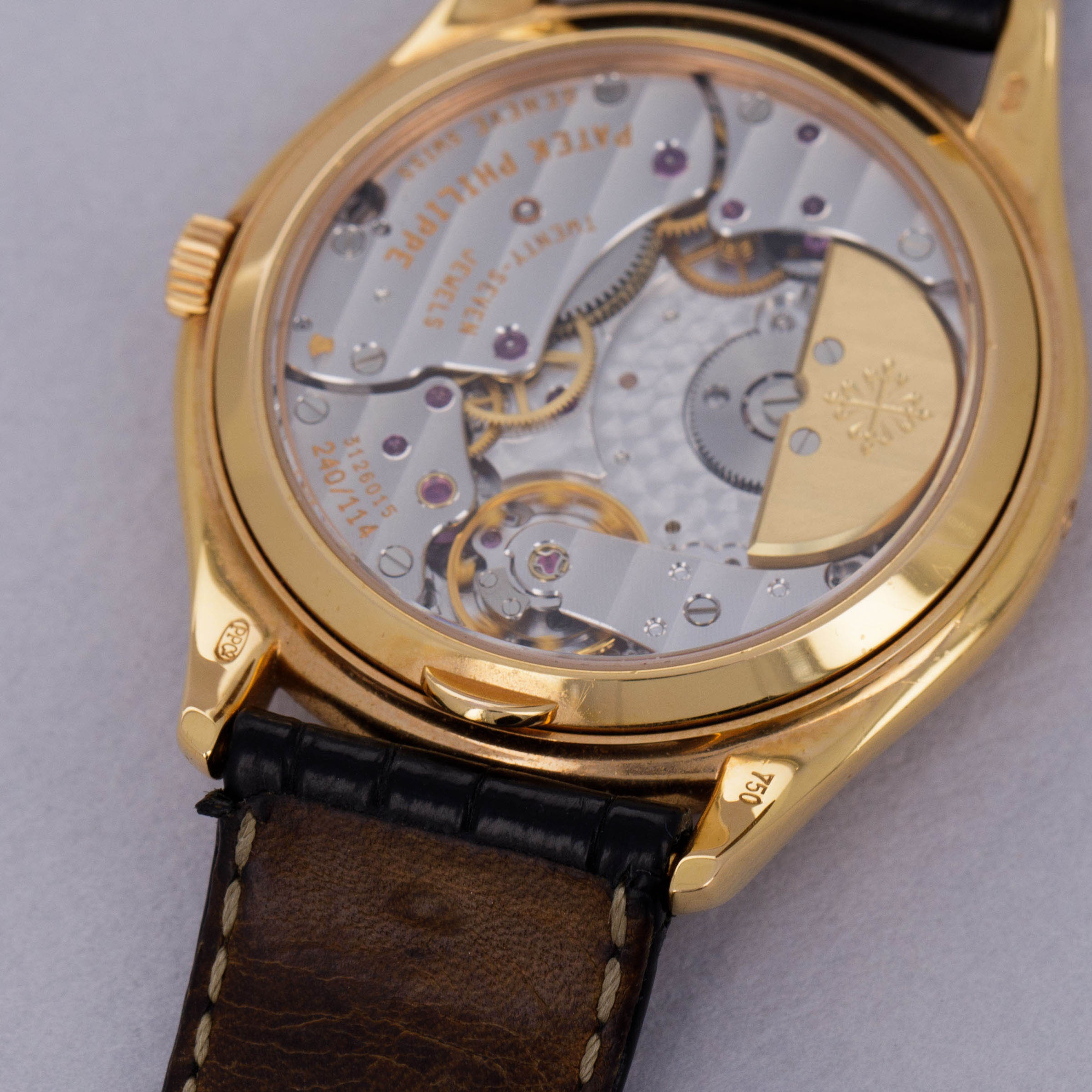 Serving as the window to its soul, the ref. 3940R's dial comes decorated with the inscriptions of its various complications which hint at the incredible complexity of the cal. 240 Q movement within.