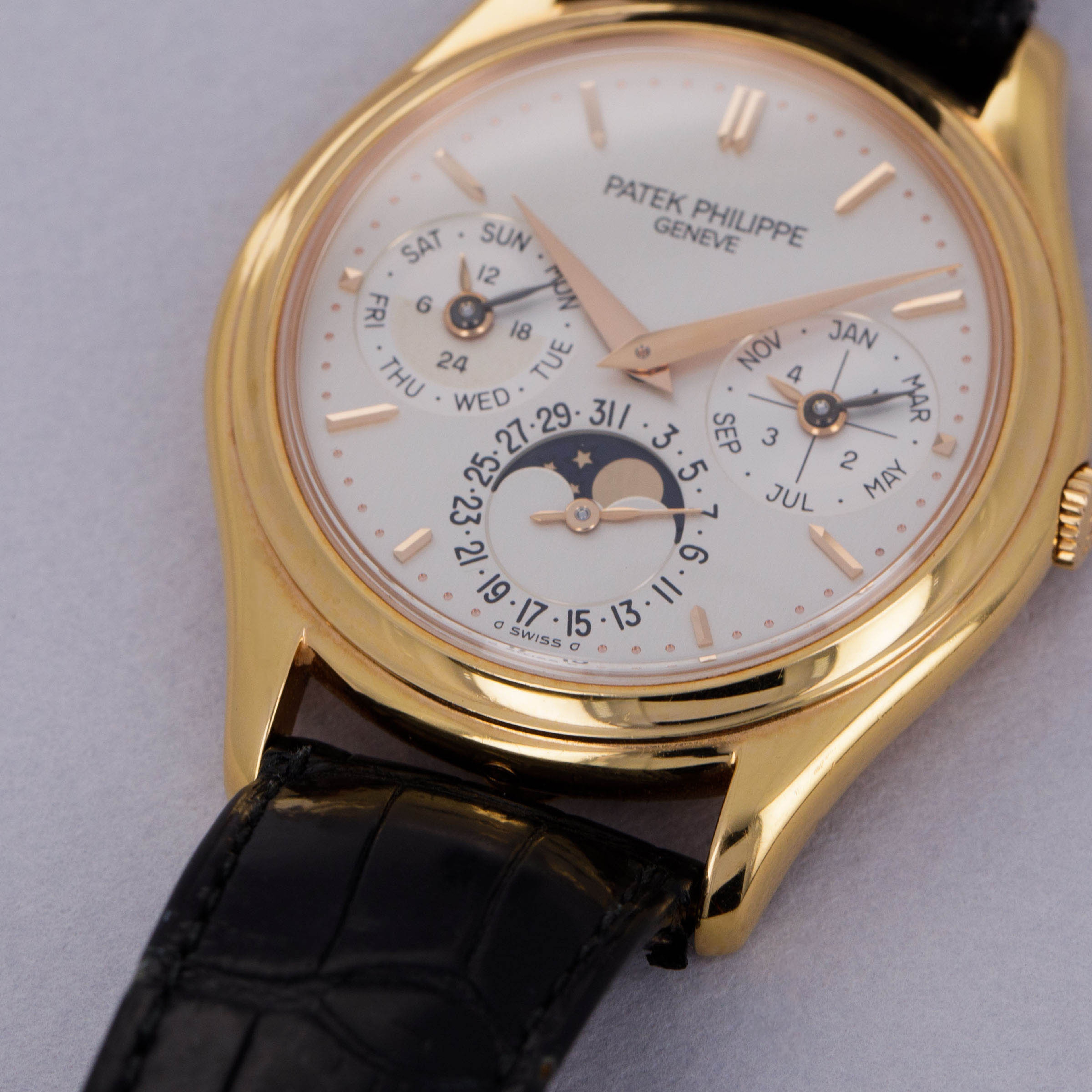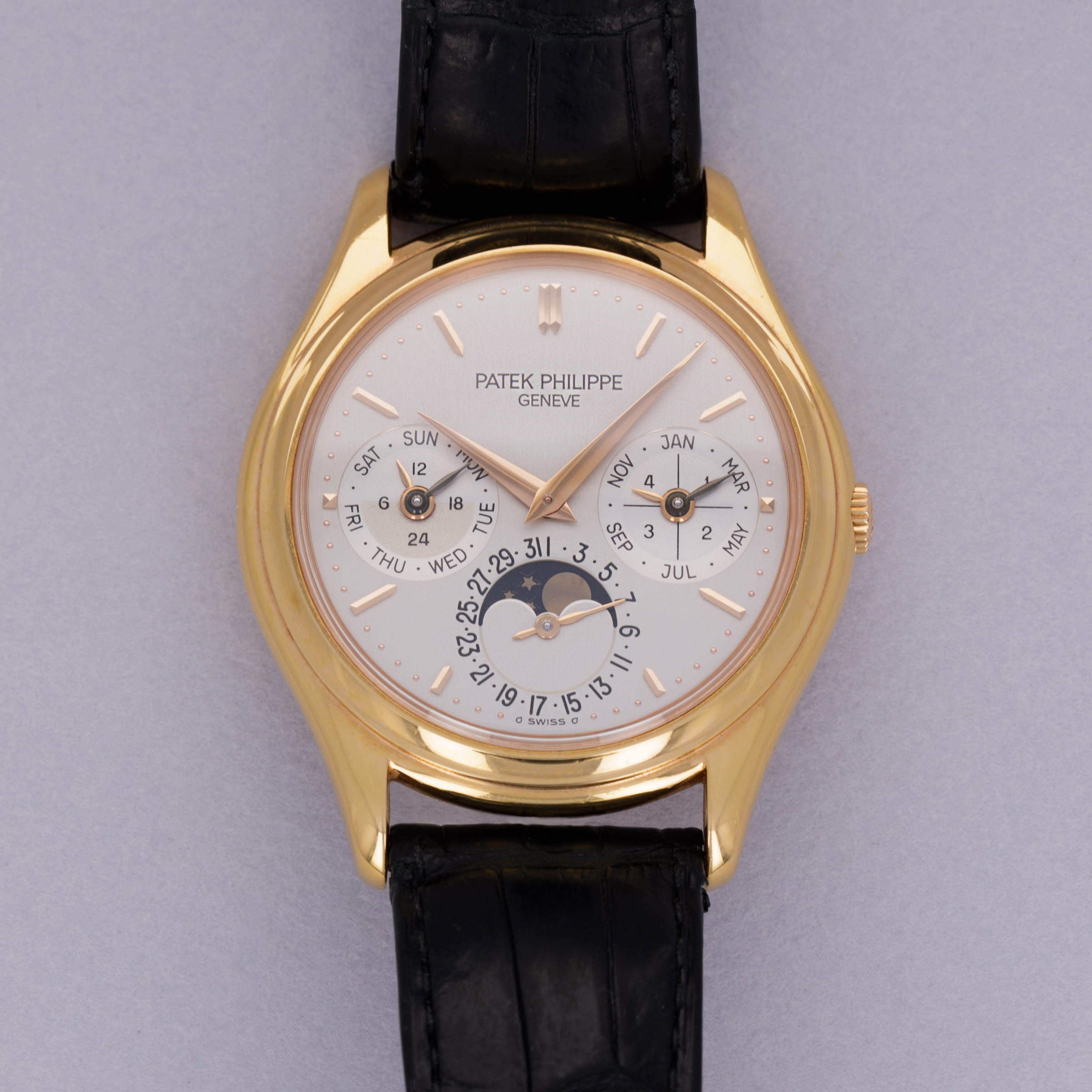 Released in the mid-80s when perpetual calendar timepieces were rare, the Patek Philippe ref. 3940 would quickly become the blueprint for perpetual calendar watches following in its footsteps looking to emulate its aesthetic design and, or, success. With its distinctively classical 36mm case diameter, the ref. 3940 appeals to the pre-modern days when 36mm was seen as a large watch, and technical innovations weren’t as intricate as they are today. One of the most important timepieces within Patek’s modern history, the ref. 3940’s inoffensive construction, beautiful dial, and immaculate craftsmanship all combine to create a watch that collectors still clamor to own. But with that aside, its position as the first serially produced perpetual calendar timepiece signifies that it was the watch to begin the trend for the hyper-complex that we are still; experiencing to this day. Released at the height of the Quartz Crisis, the ref. 3940 even contributed to growing the gap between traditional Swiss artisanal craftsmanship and cheap machine-made quartz watches, ultimately one of the industry’s saving graces as it helped reestablish the Swiss' reputation as the original occupants within the industry.