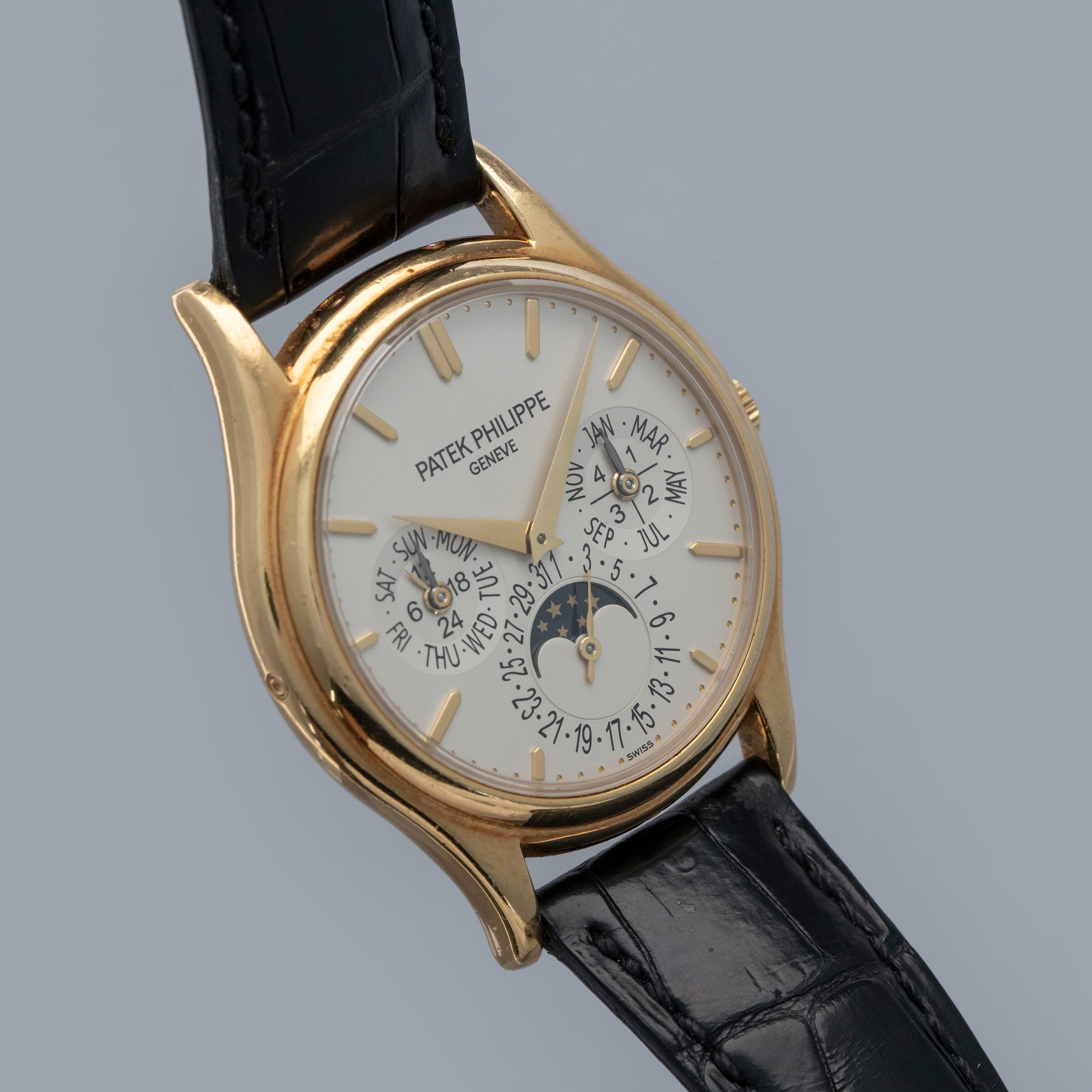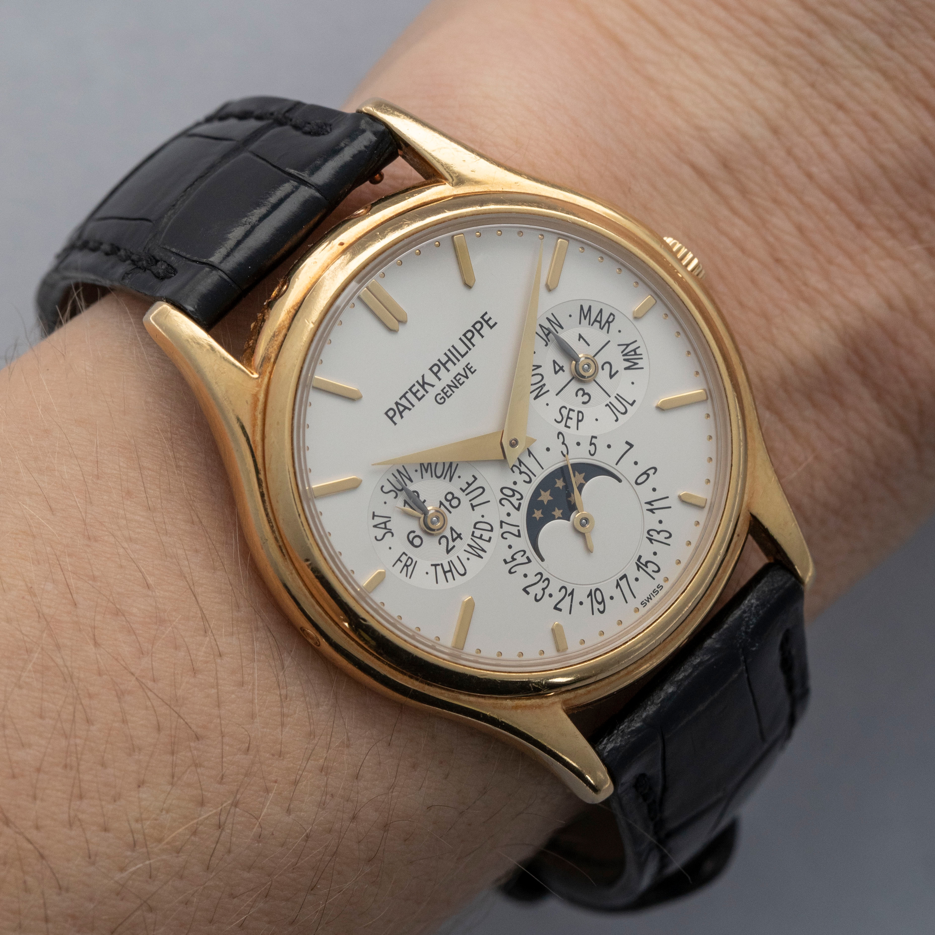 One of the most elegant perpetual calendars Patek Philippe ever made, the ref. 5140 is slim and refined on the wrist, with the ultra-thin cal. 240Q enabling its profile to be understated and easy to wear.