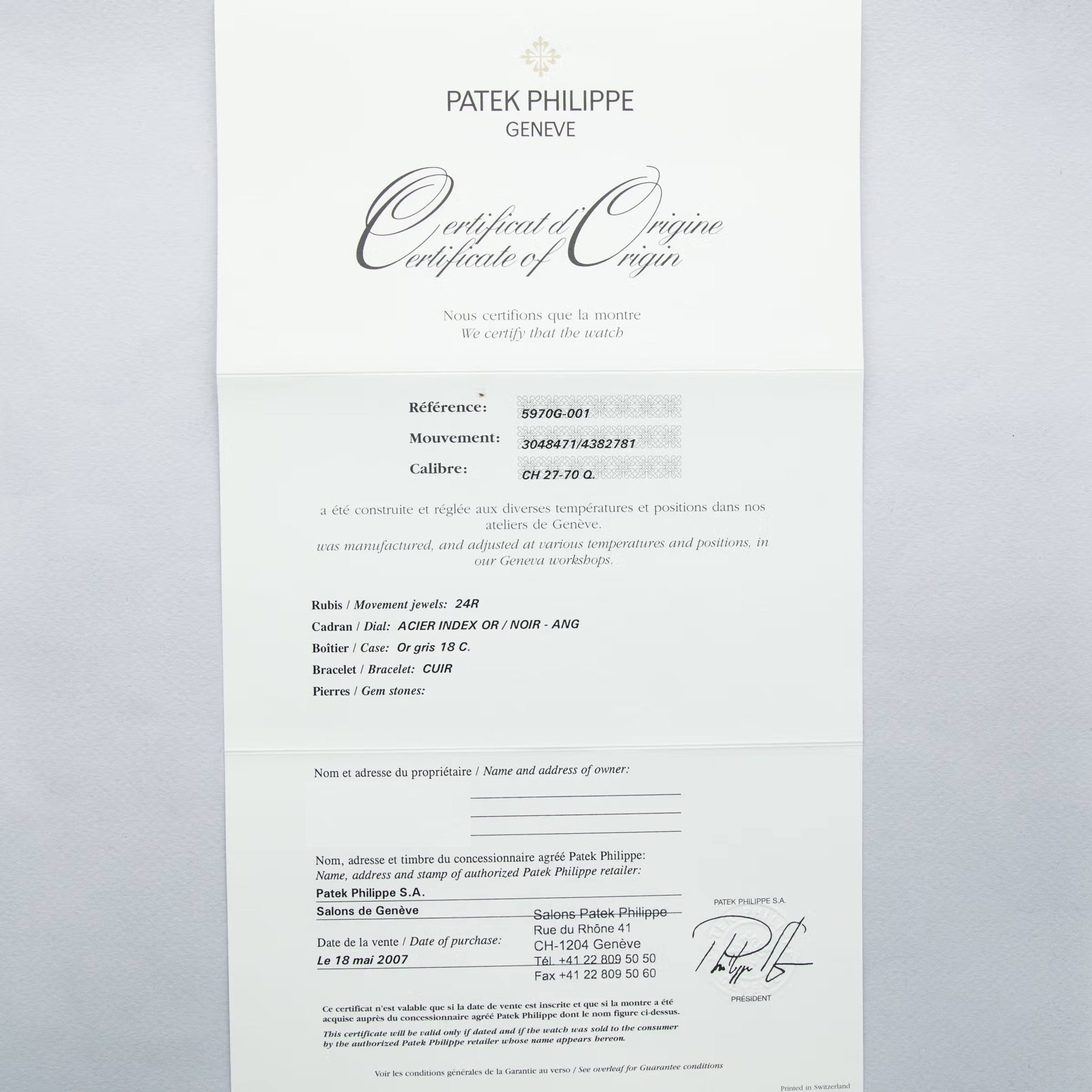 Patek Philippe Perpetual Calendar Chronograph 5970G-001 18k WG Box and Papers