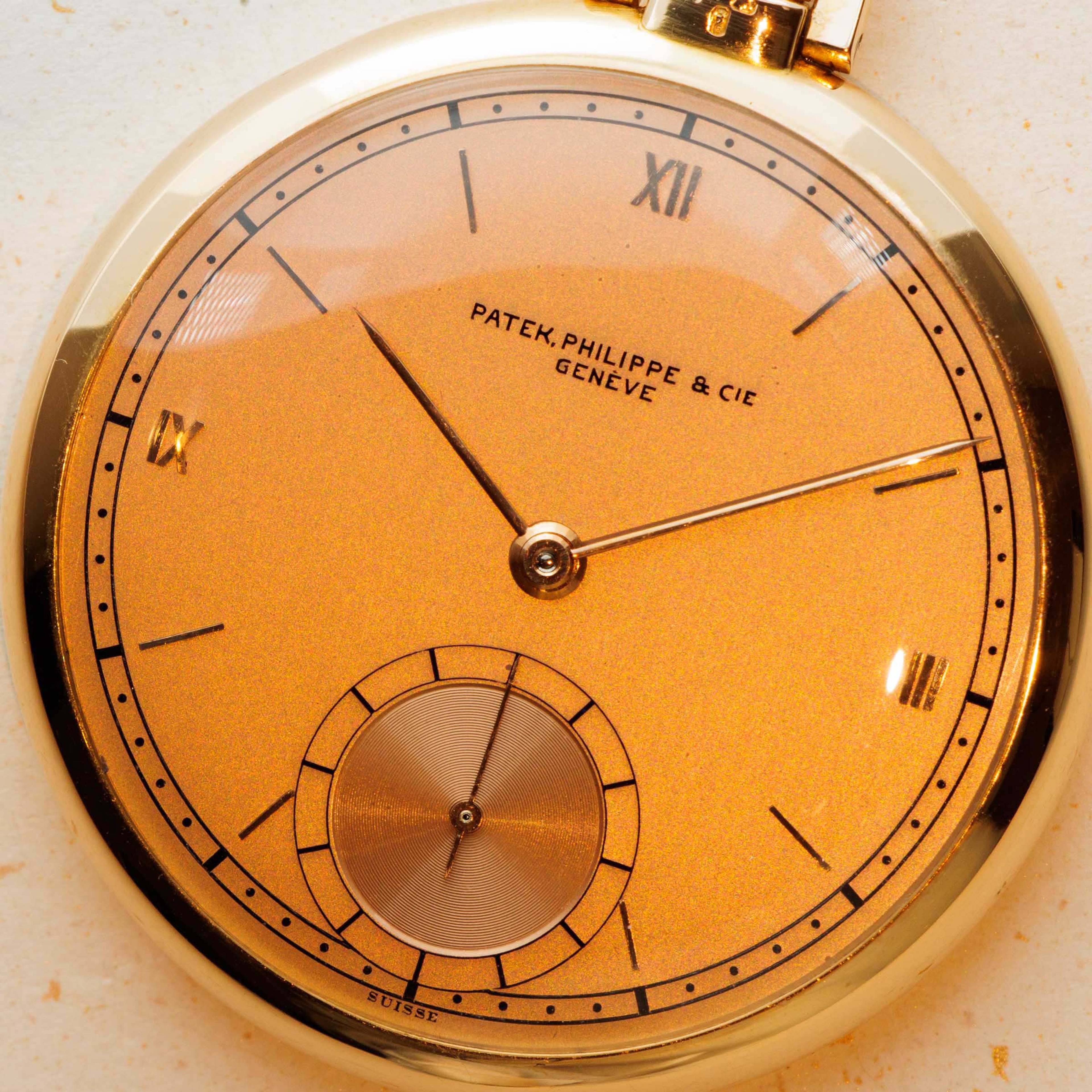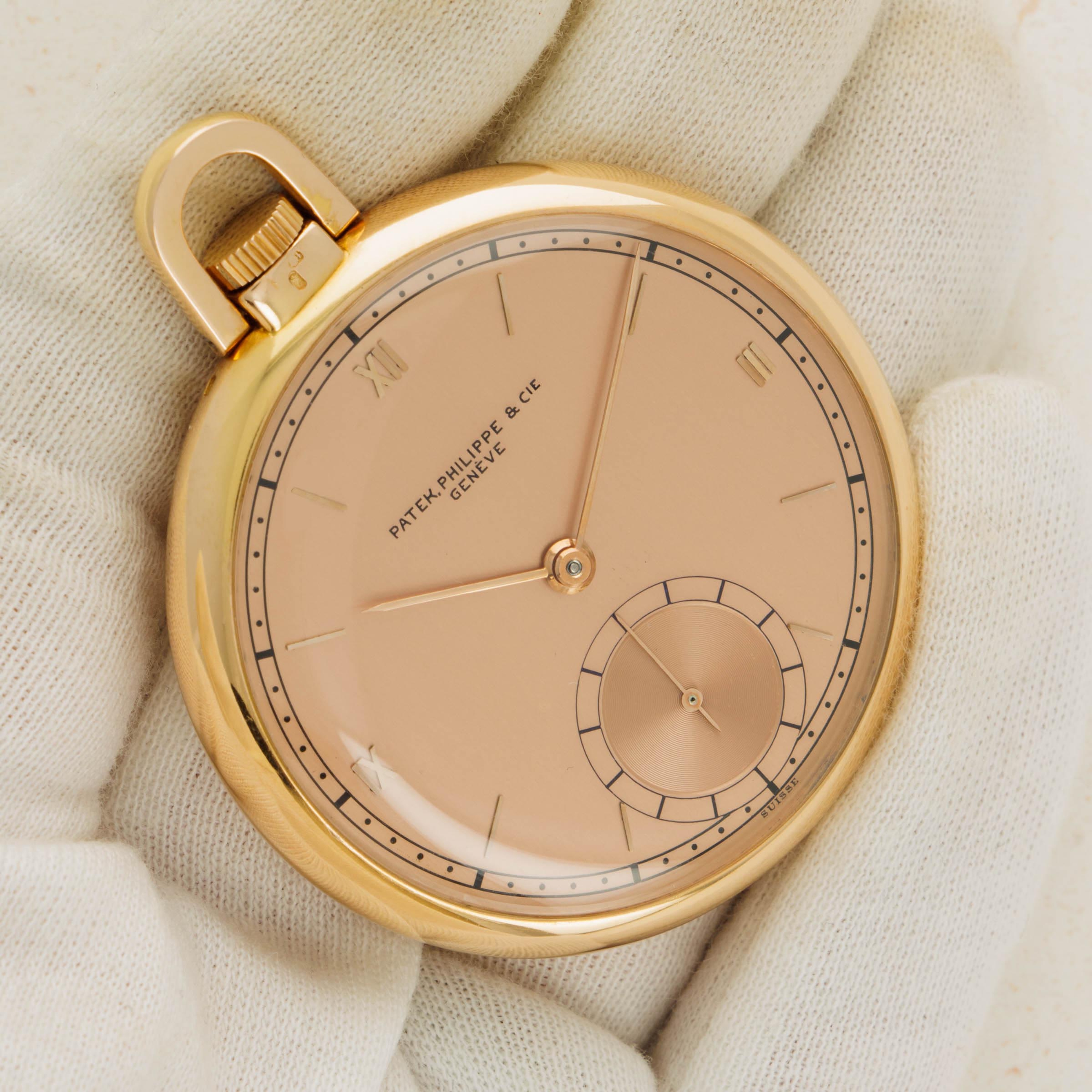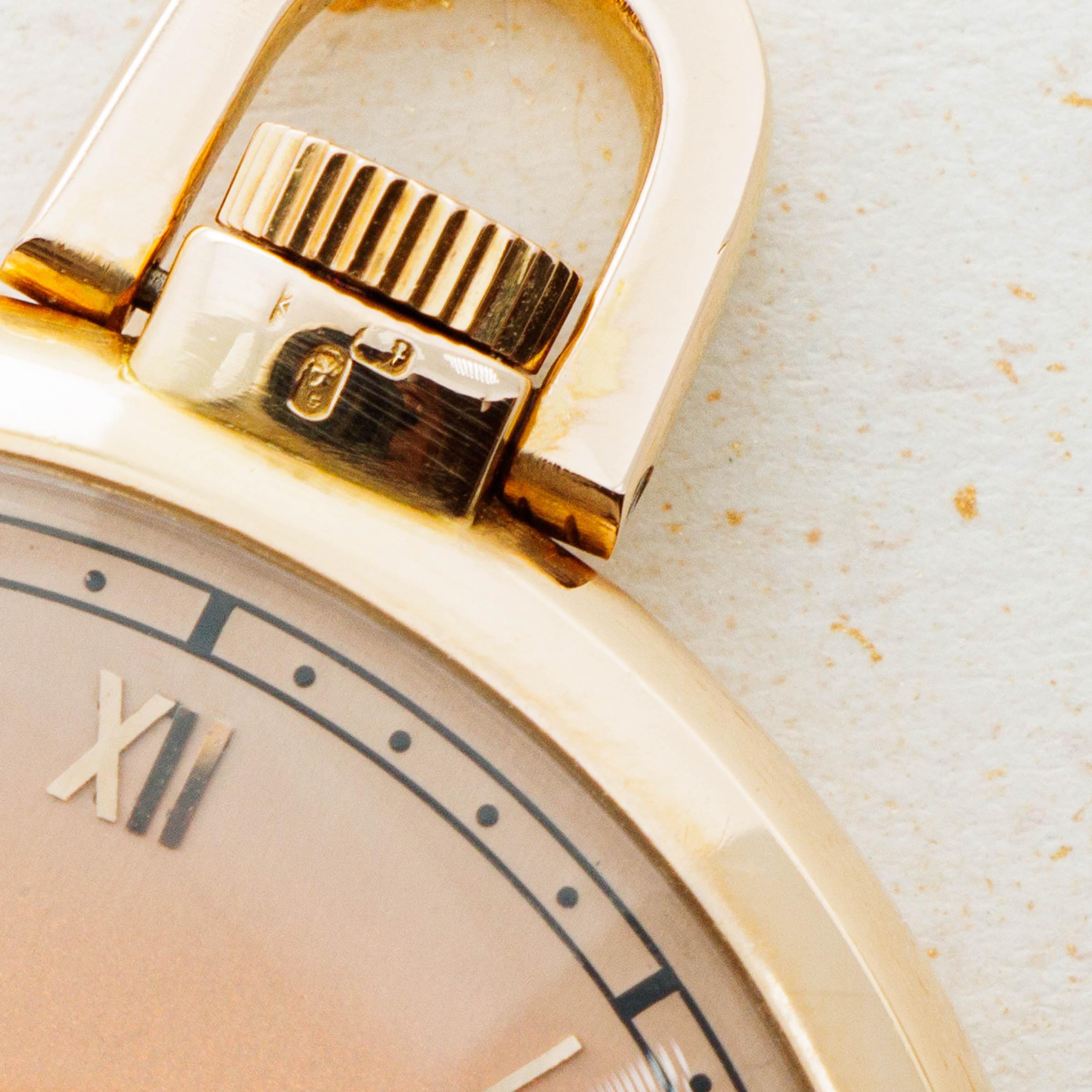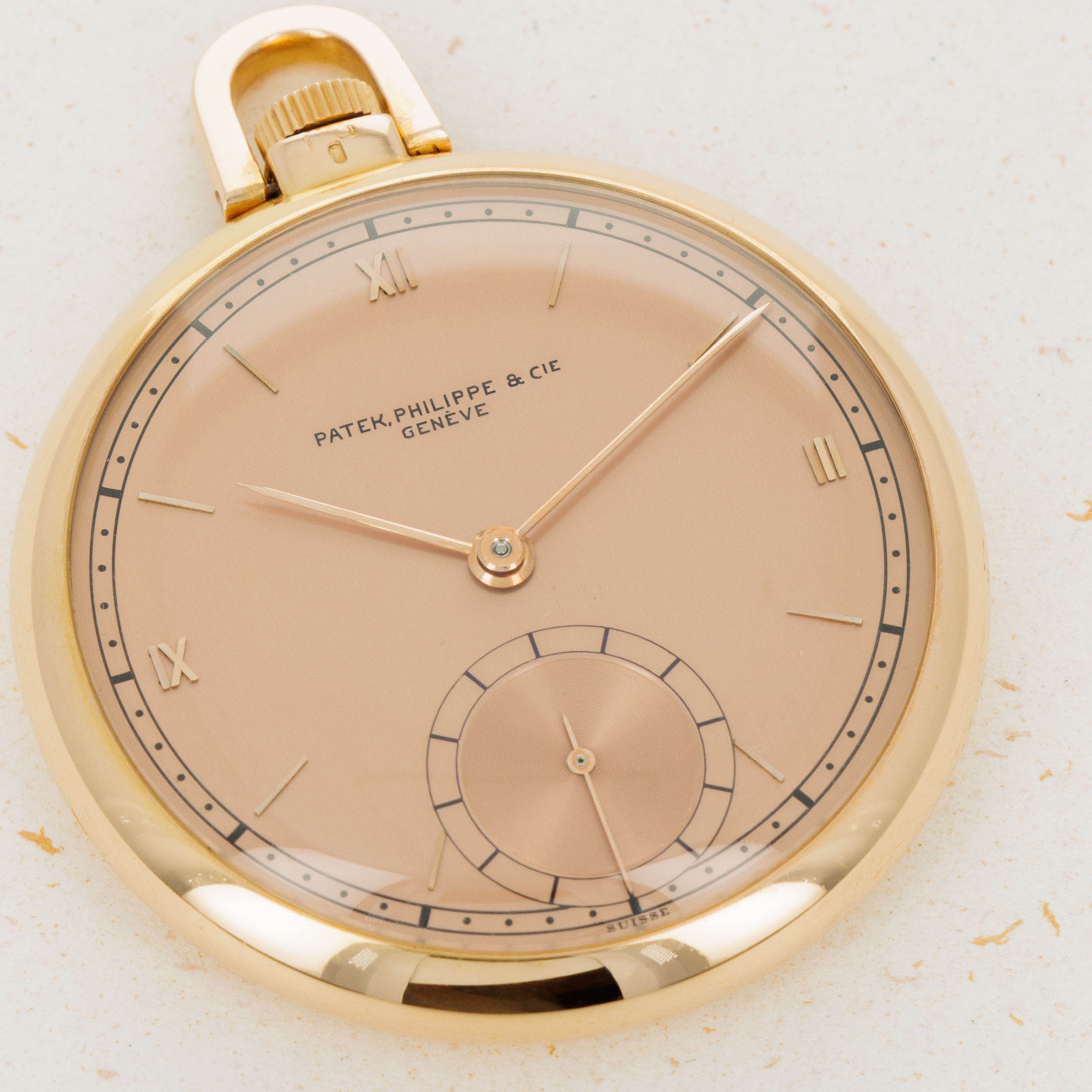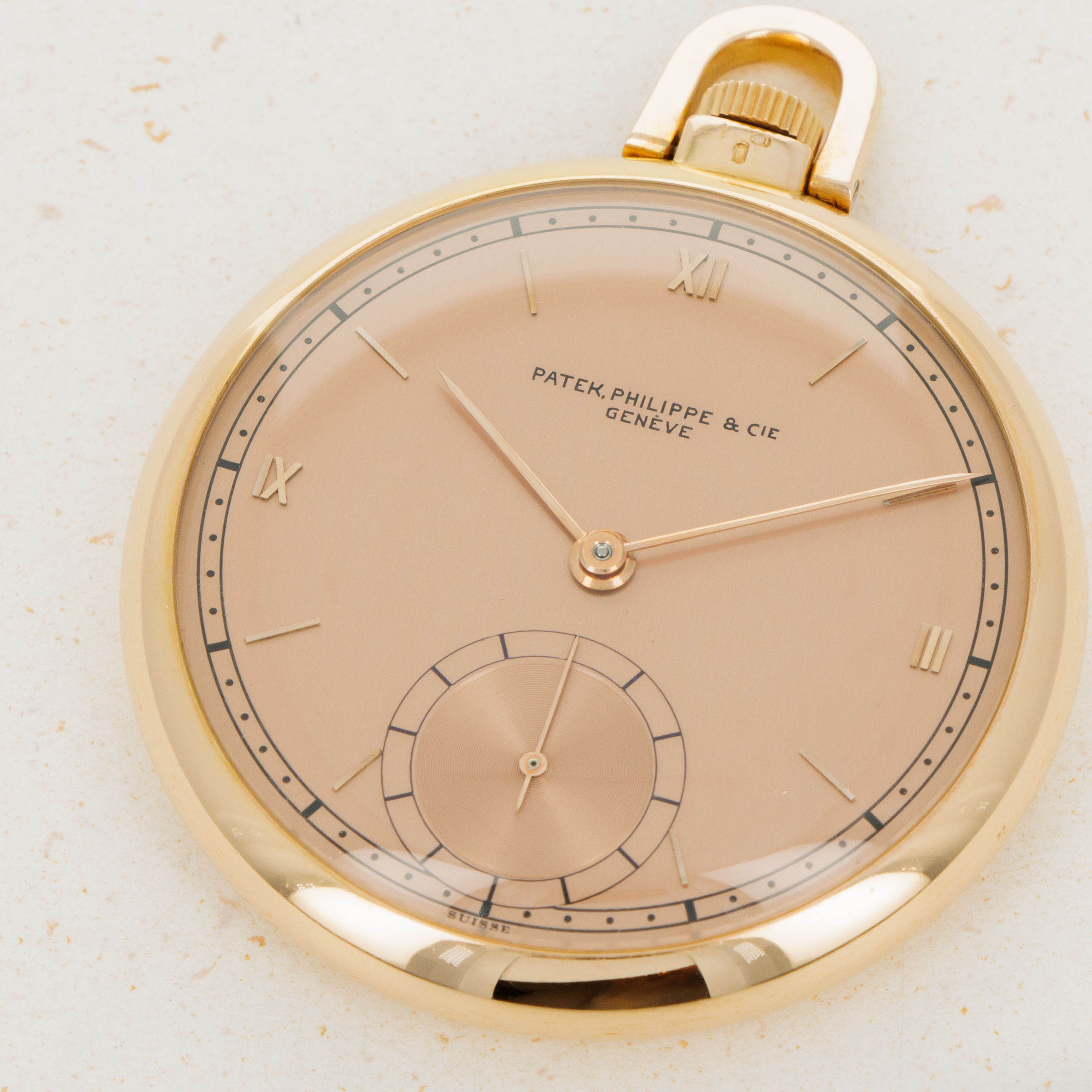 Famed for their intensely luxurious eye for detail and unparalleled heritage within the watchmaking industry, Patek Philippe has long been at the top of the horology pyramid. While their modern plaudits come from their infamously desirable wristwatches, the brand began life creating pocket watches, much like other watchmakers that began life during the 19th century and before. As such, it is pocket watches, like the example we have here draws attention to Patek Philippe’s original legendary aesthetic and unwavering level of craftsmanship. Featuring an 18kt rose gold construction, a stunning salmon dial with applied gold indices and Roman numerals alongside beautiful baton hands, crisp black inscriptions and a sub-seconds dial with a bright concentric guilloche engraving, this example’s display is a classily executed embodiment of style and decorum. Featuring a polished domed bezel and mid-case that wraps around and meets its caseback, this pocket watch is a stunning example of why Patek Philippe has been widely regarded as one of horology’s best watchmakers for centuries now - a reputation that they certainly have earned and will not lose any time soon judging by their constantly improving product line and back-log of truly iconic designs.