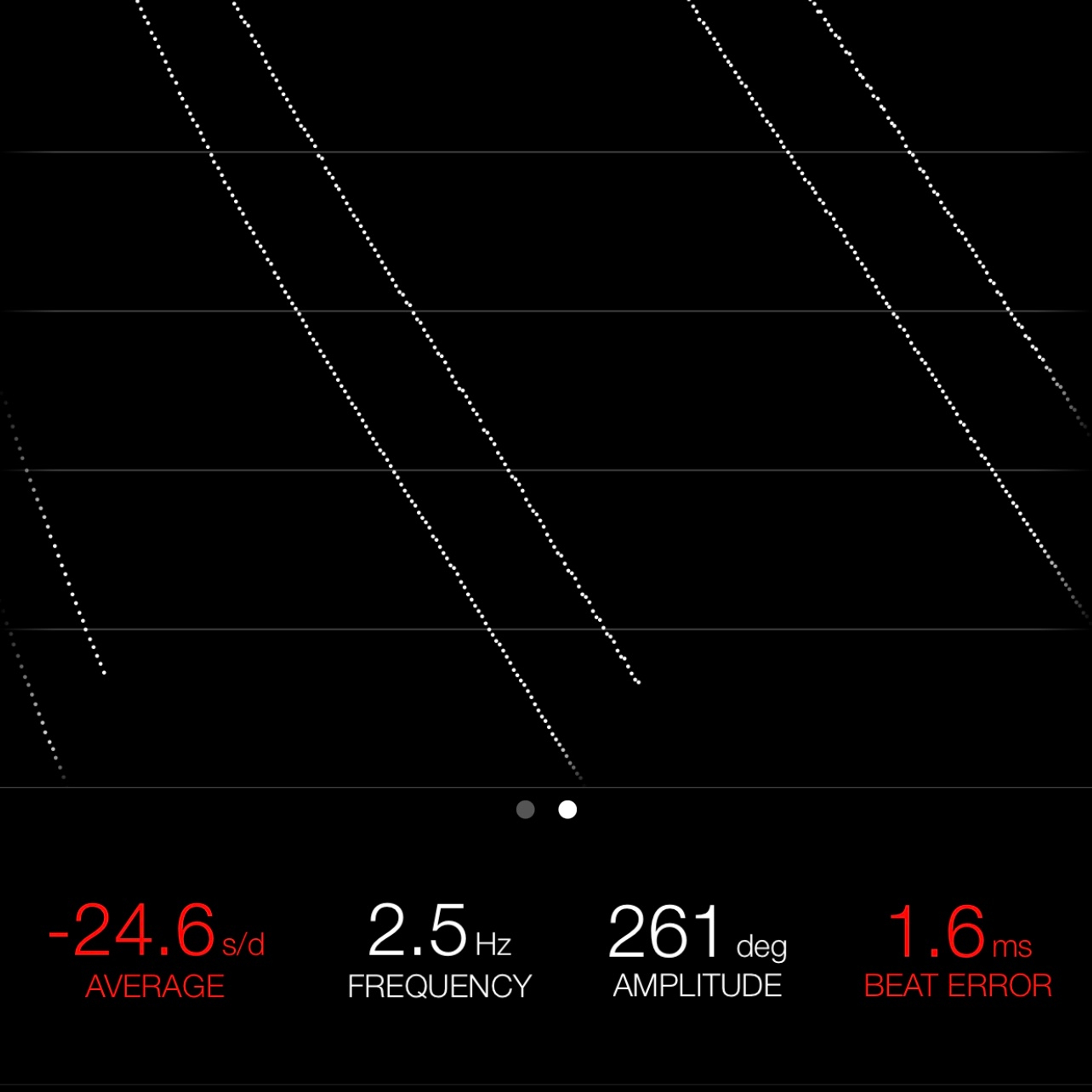 This reading was taken (crown down) with a ONEOF Accuracy Boutique Edition timing machine at time of cataloging. It is provided as a courtesy only, and shall not be construed as a warranty or guarantee of any kind. Please refer to our terms and conditions of sale for more information.