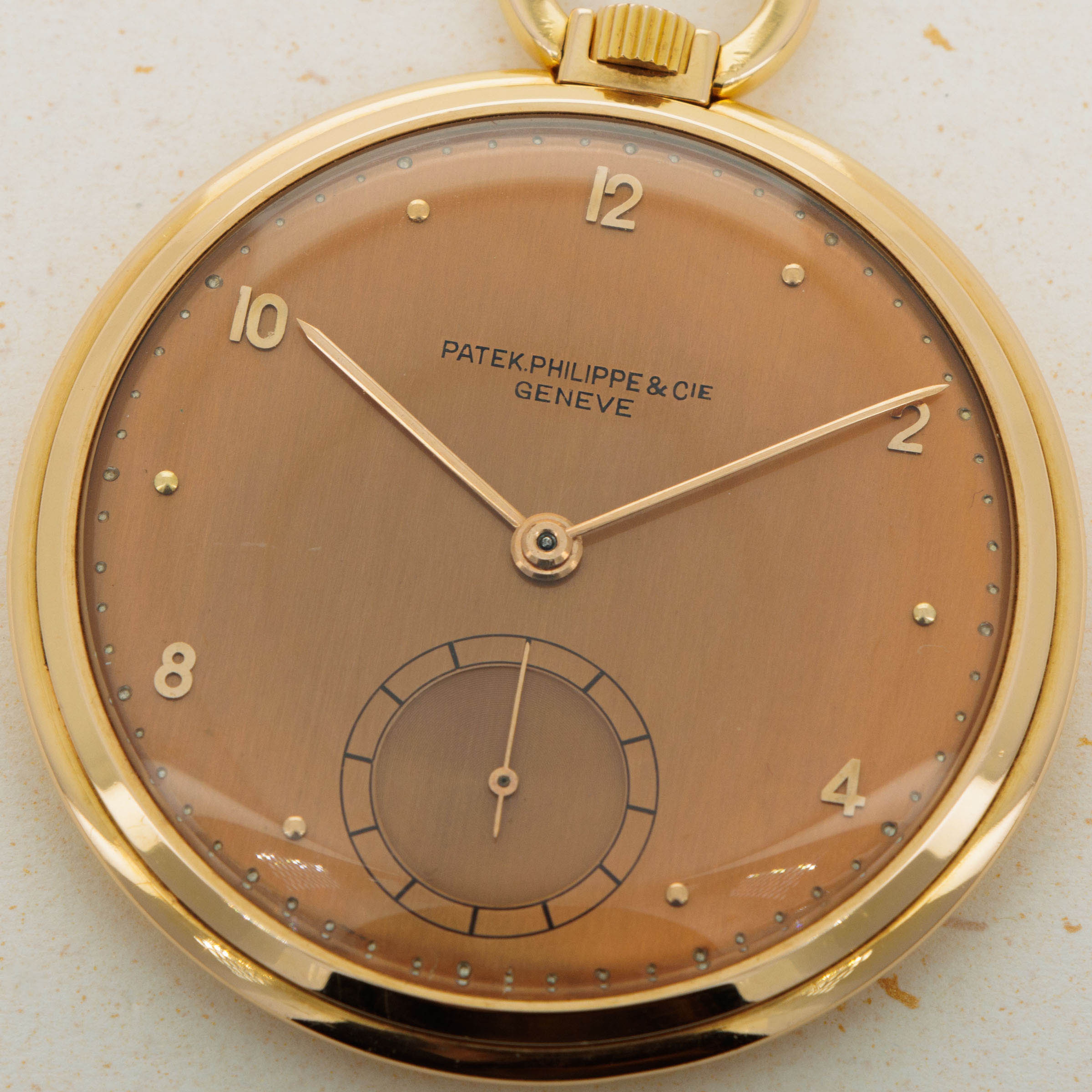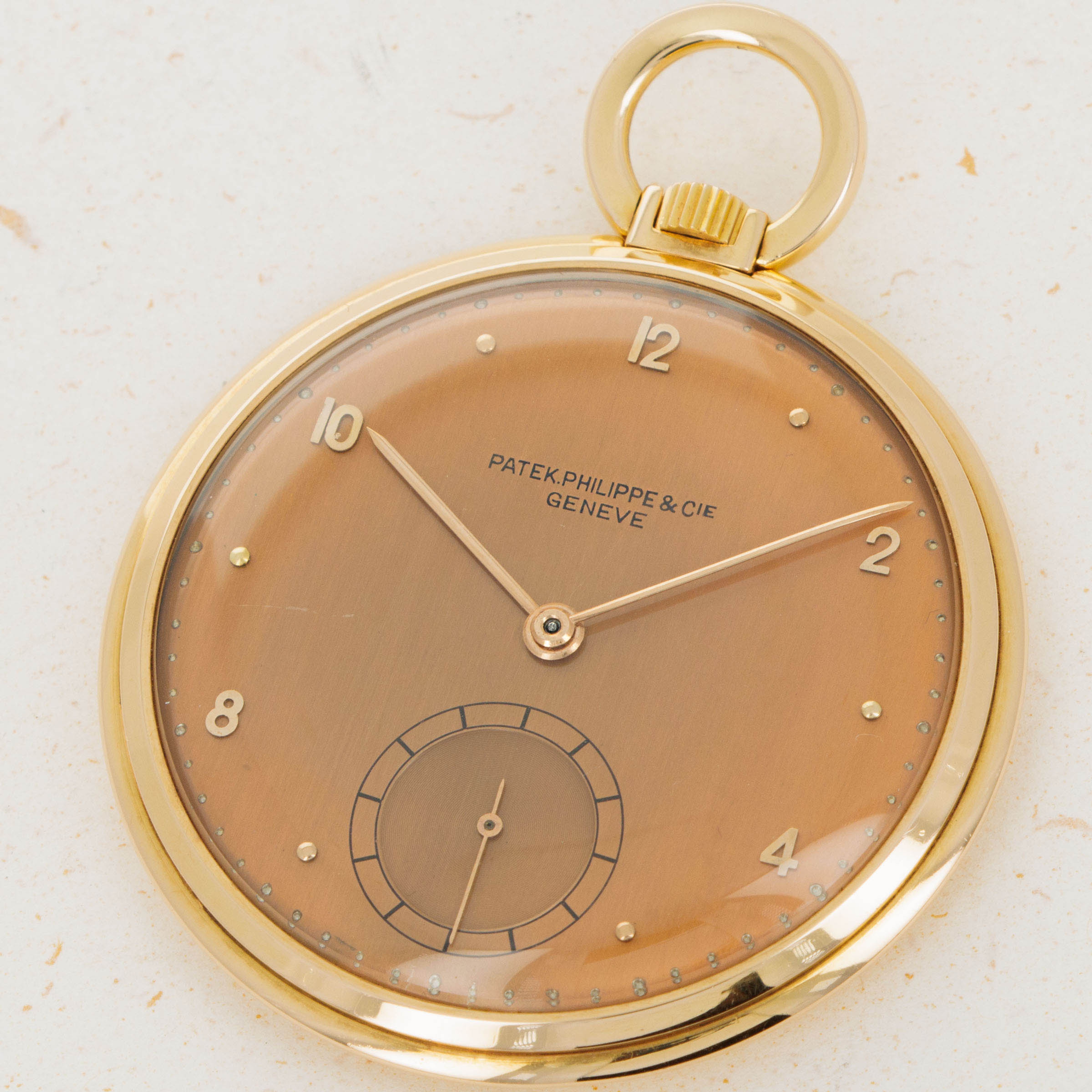 Famed for their intensely luxurious eye for detail and unparalleled heritage within the watchmaking industry, Patek Philippe has long been at the top of the horology pyramid. While their modern plaudits come from their infamously desirable wristwatches, the brand began life creating pocket watches, much like other watchmakers that began life during the 19th century and before. As such, it is pocket watches, like the example we have here draws attention to Patek Philippe’s original legendary aesthetic and unwavering level of craftsmanship. Featuring an 18kt yellow gold construction, a stunning vertically brushed salmon dial with applied gold indices and Arabic numerals alongside beautiful baton hands, crisp black inscriptions, and a sunken sub-seconds dial, this example’s display is a classily executed embodiment of style and decorum. Featuring a polished bezel that sits into the larger diameter of its mid-case that then wraps under the watch to meet its caseback just like its bezel, this pocket watch is a stunning example of why Patek Philippe has been widely regarded as one of horology’s best watchmakers for centuries - a reputation that they certainly have earned and will not lose any time soon judging by their constantly improving product line and back-log of truly iconic designs. Filled with character and rich details, it is timepieces like this pocket watch that showcase just how long Patek Philippe has been serving their A-game.