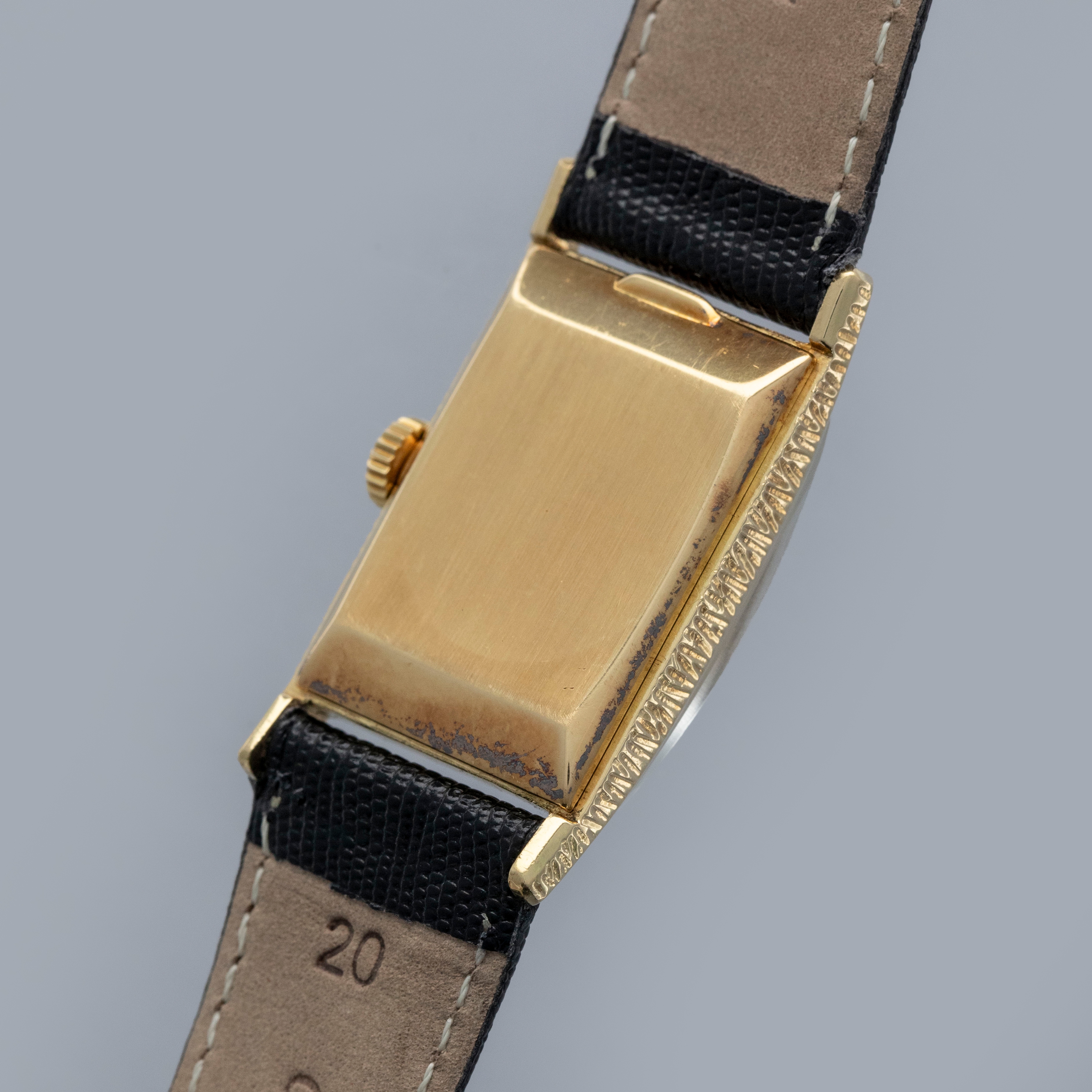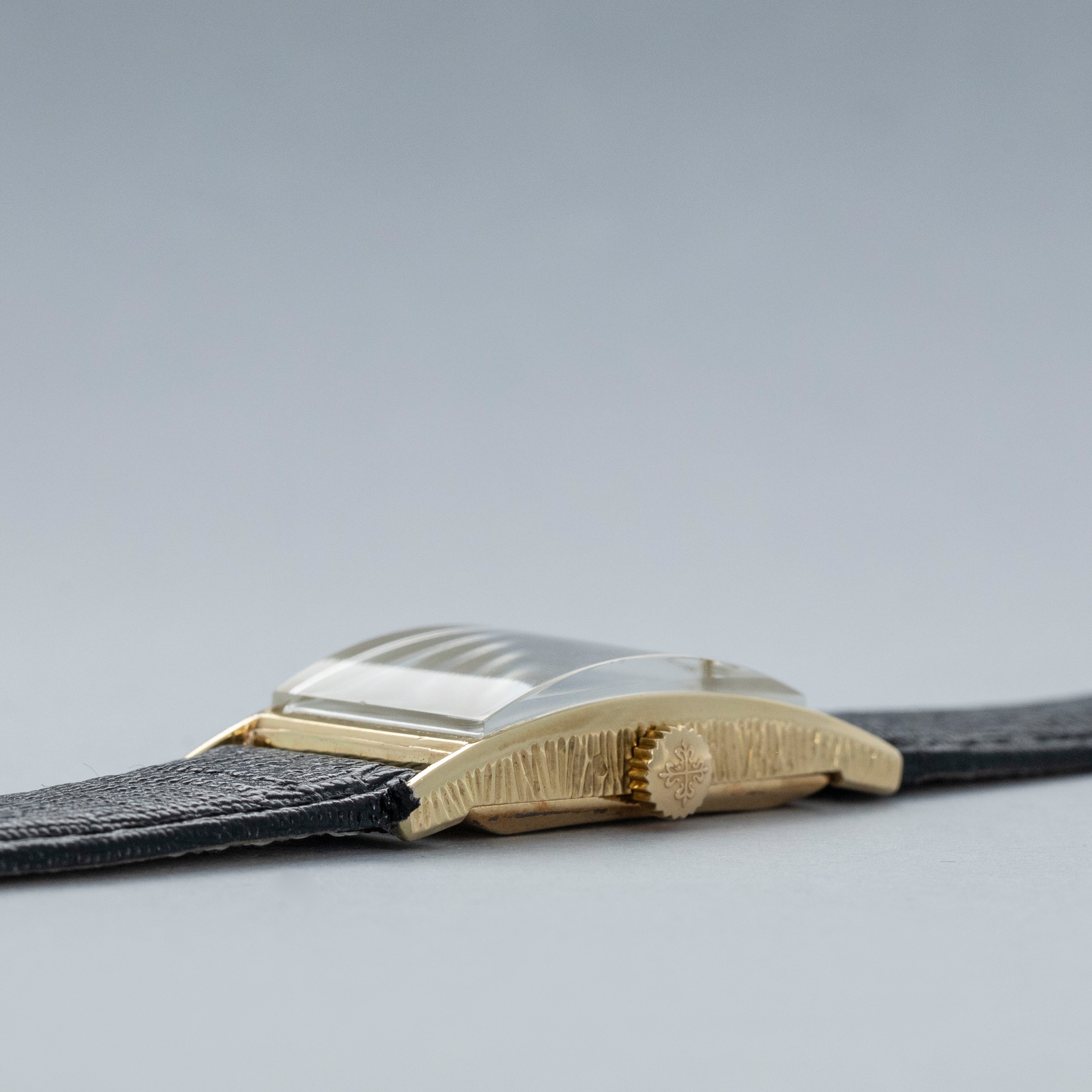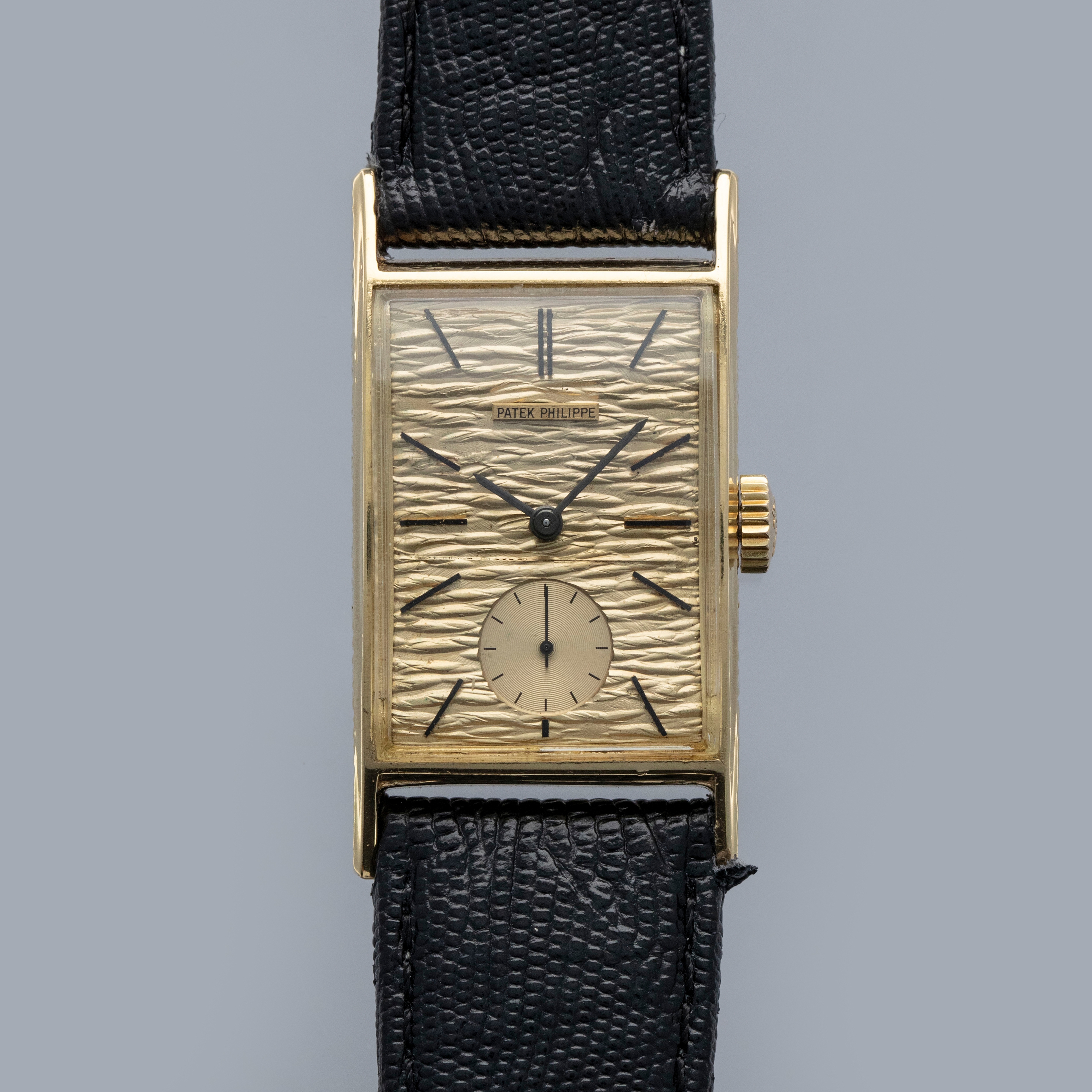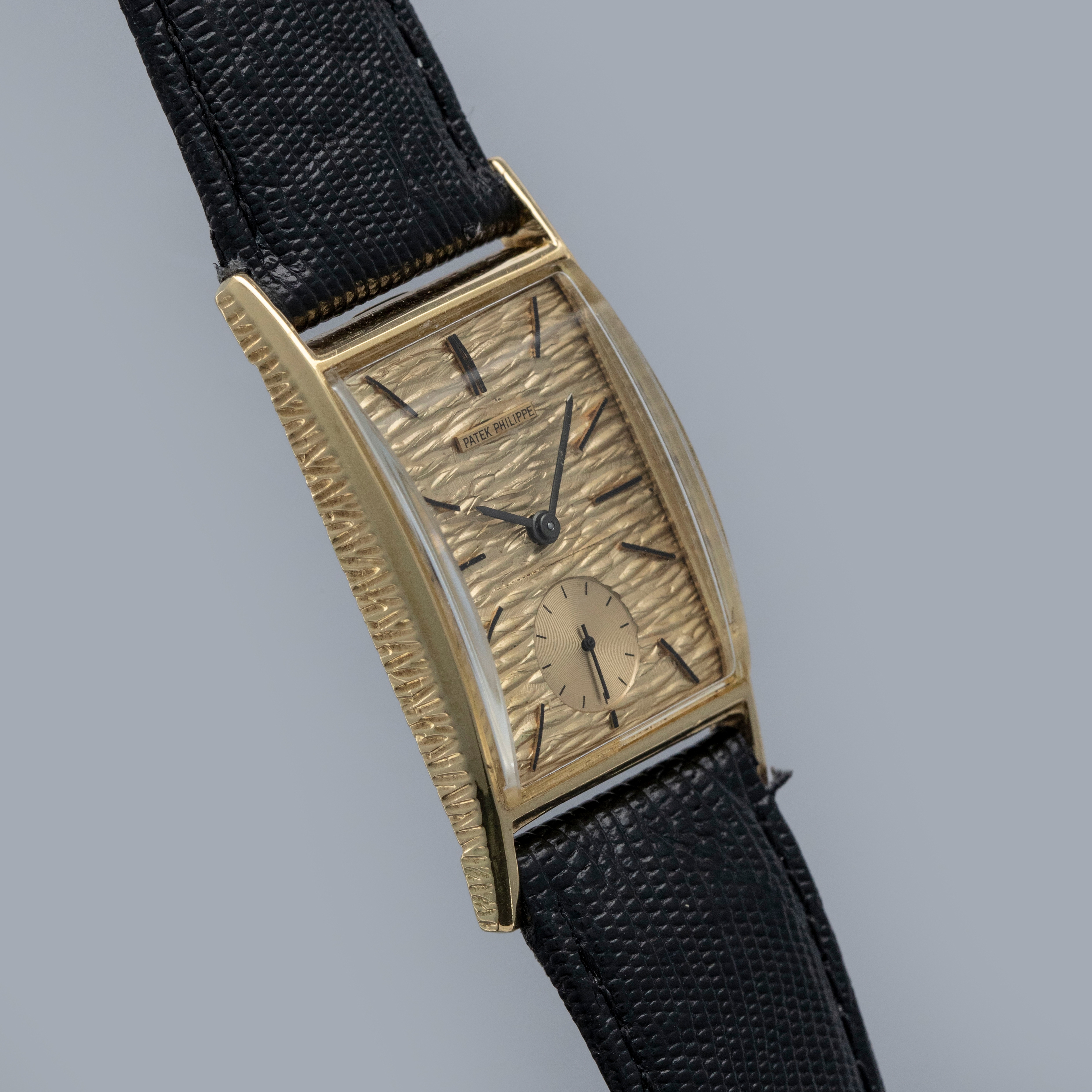 Launched in 1950 and produced until the 1960s, the Patek Philippe ref. 2554 is a wide-ranging collection of unique rectangular offerings that were largely ahead of their time. Powered by the manual-wind cal. 9-90 movement and rather large at 40mm tall and 28mm wide, the resulting rectangular watch was massive for its time. Presented with a champagne textured dial to match its textured 18kt yellow gold case, the ref. 2554/10 fits within the aesthetic styling of today, with textured cases being all the rage.