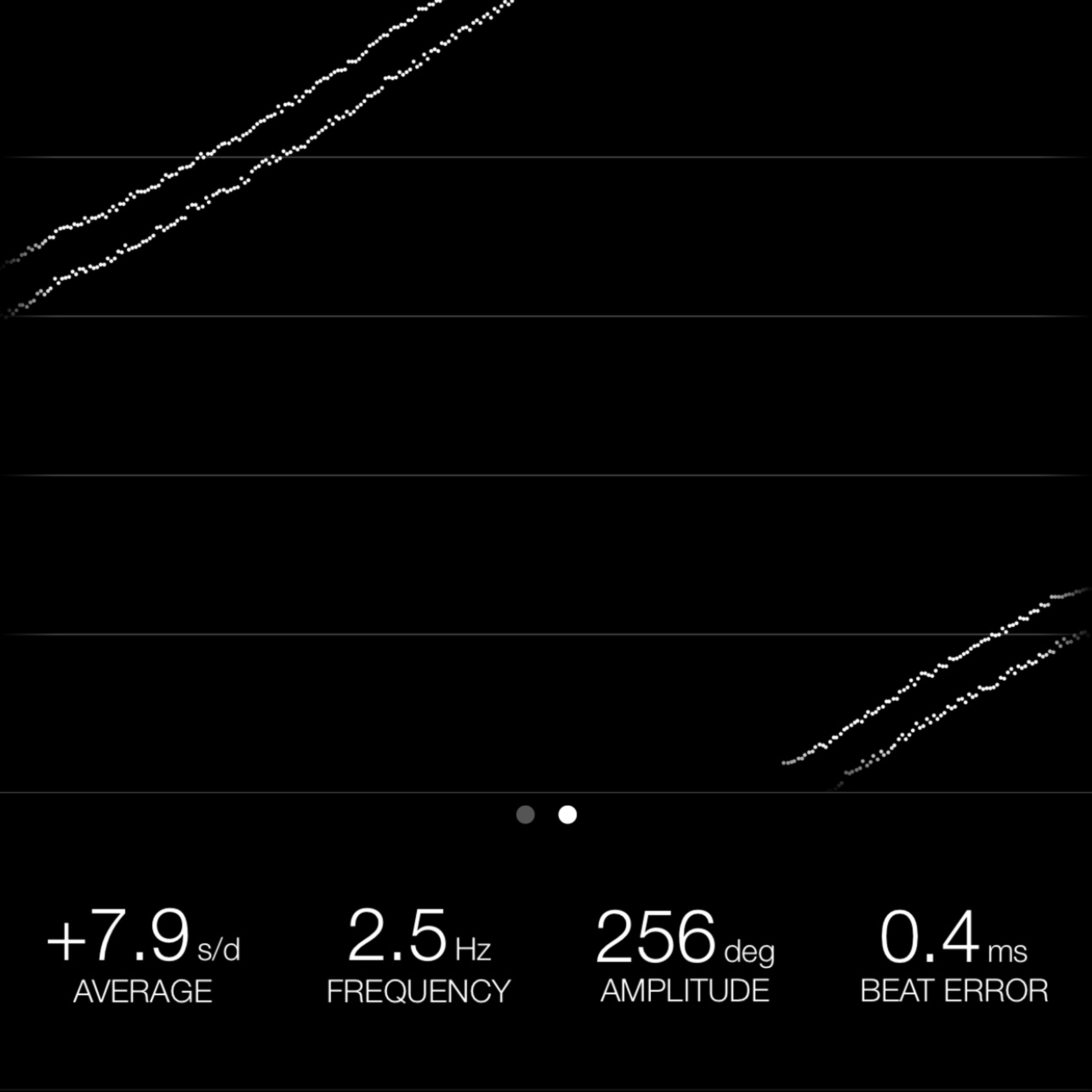 This reading was taken (crown down) with a ONEOF Accuracy Boutique Edition timing machine at time of cataloging. It is provided as a courtesy only, and shall not be construed as a warranty or guarantee of any kind. Please refer to our terms and conditions of sale for more information.