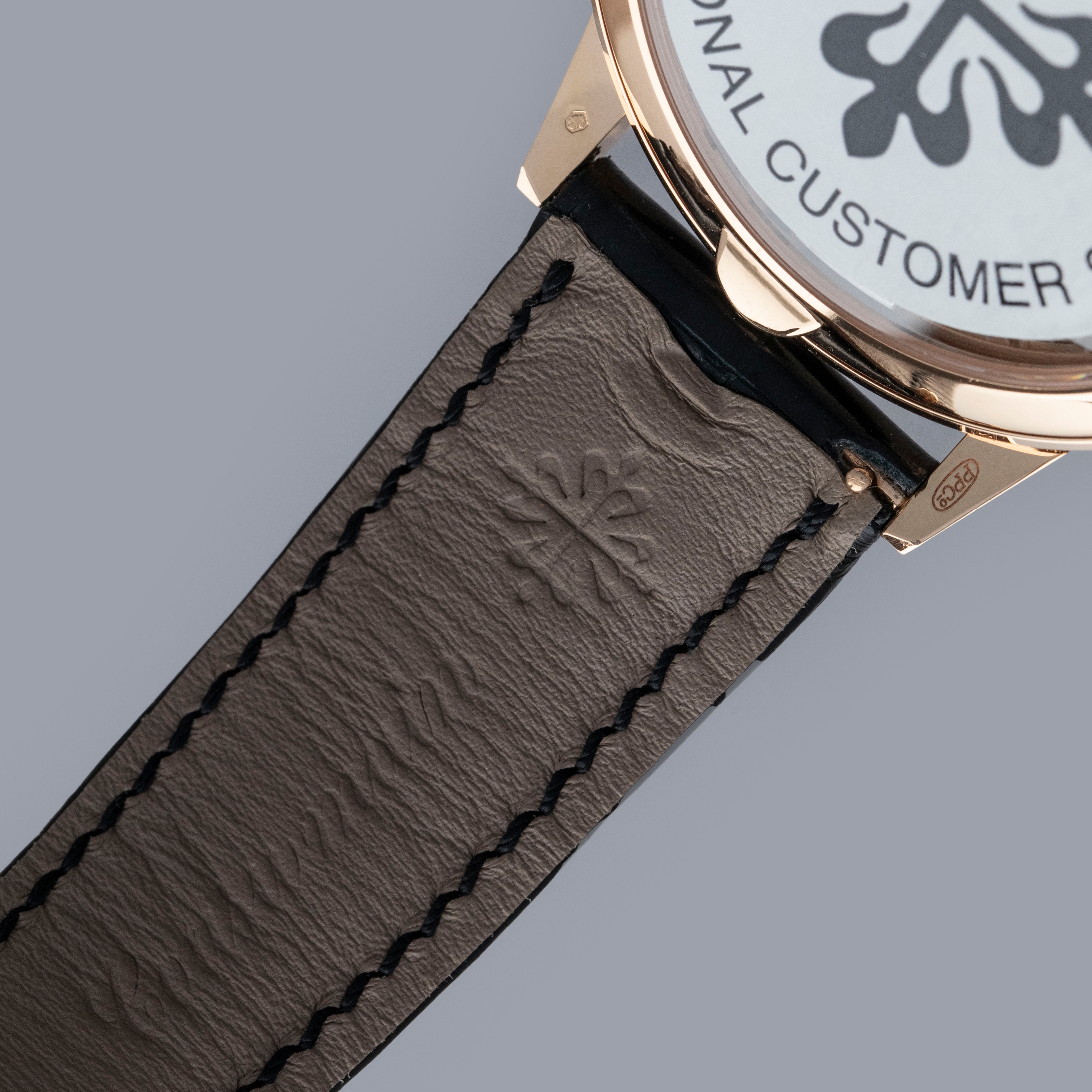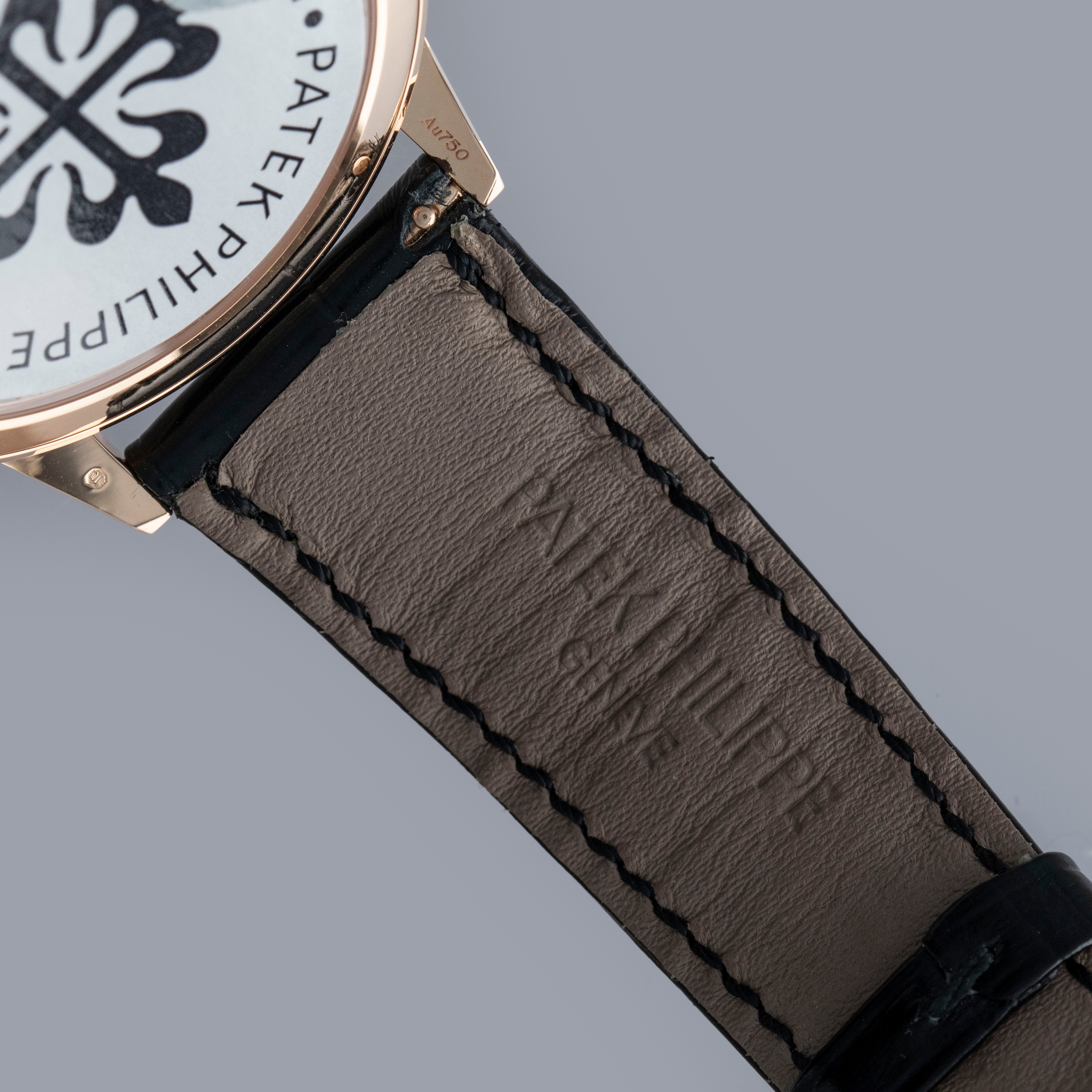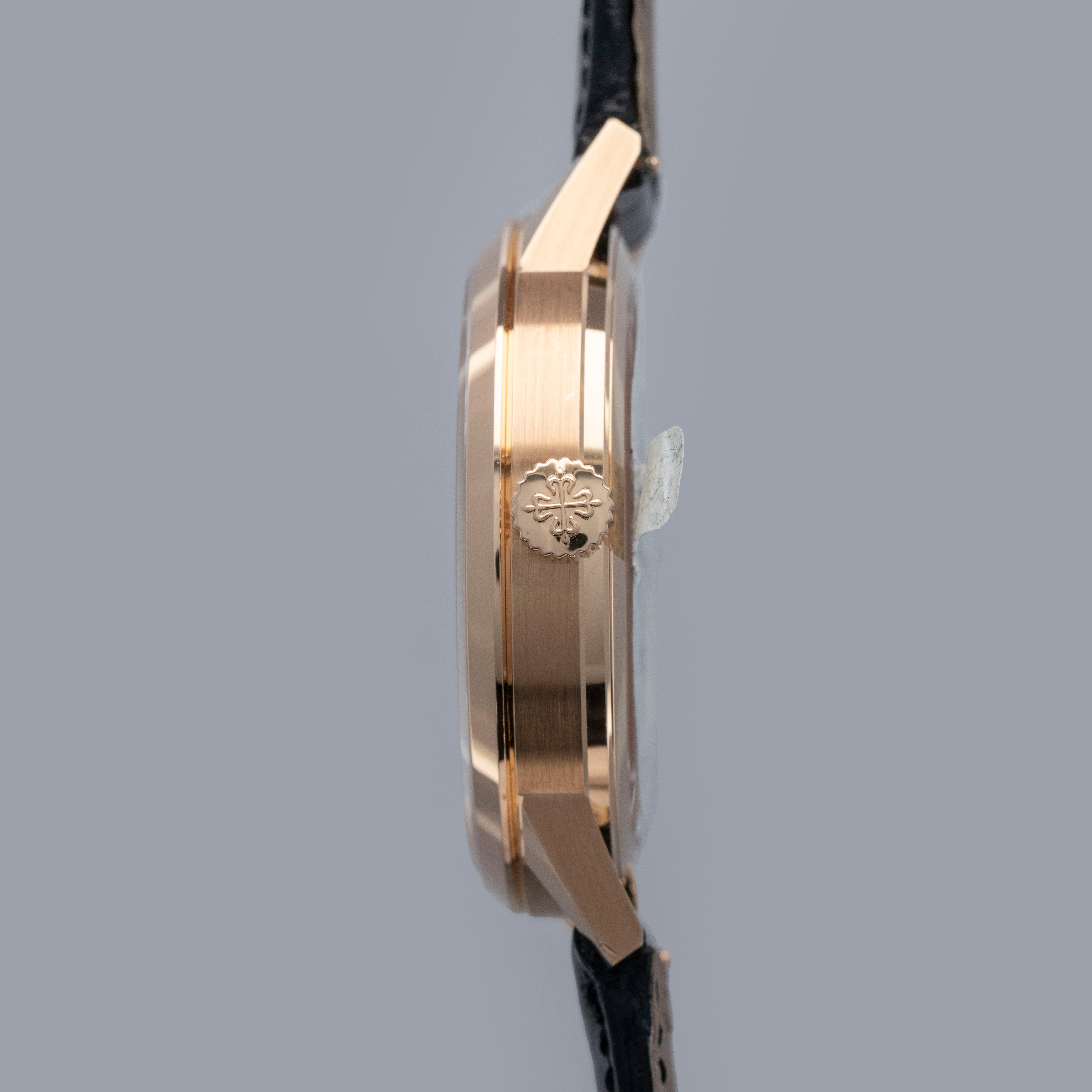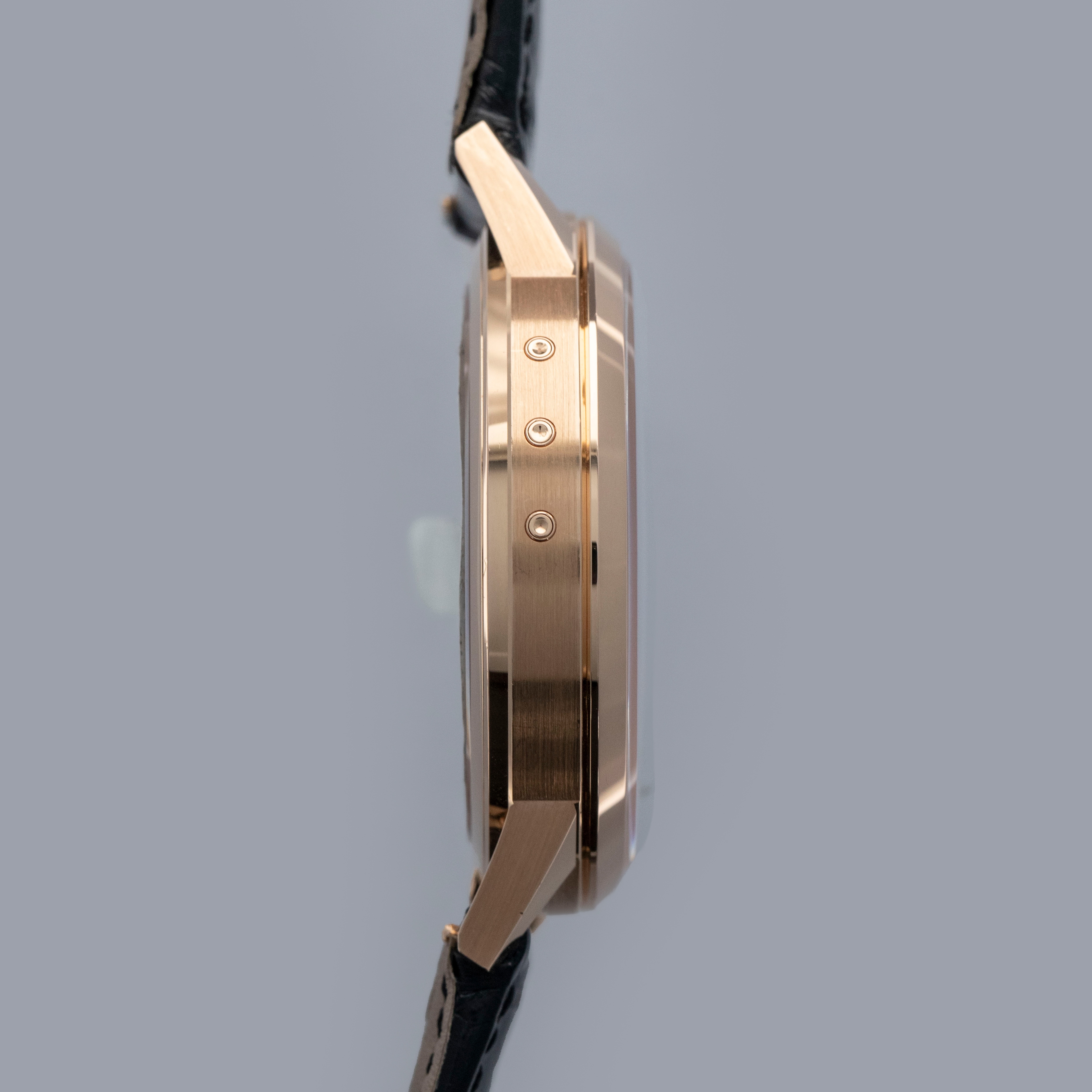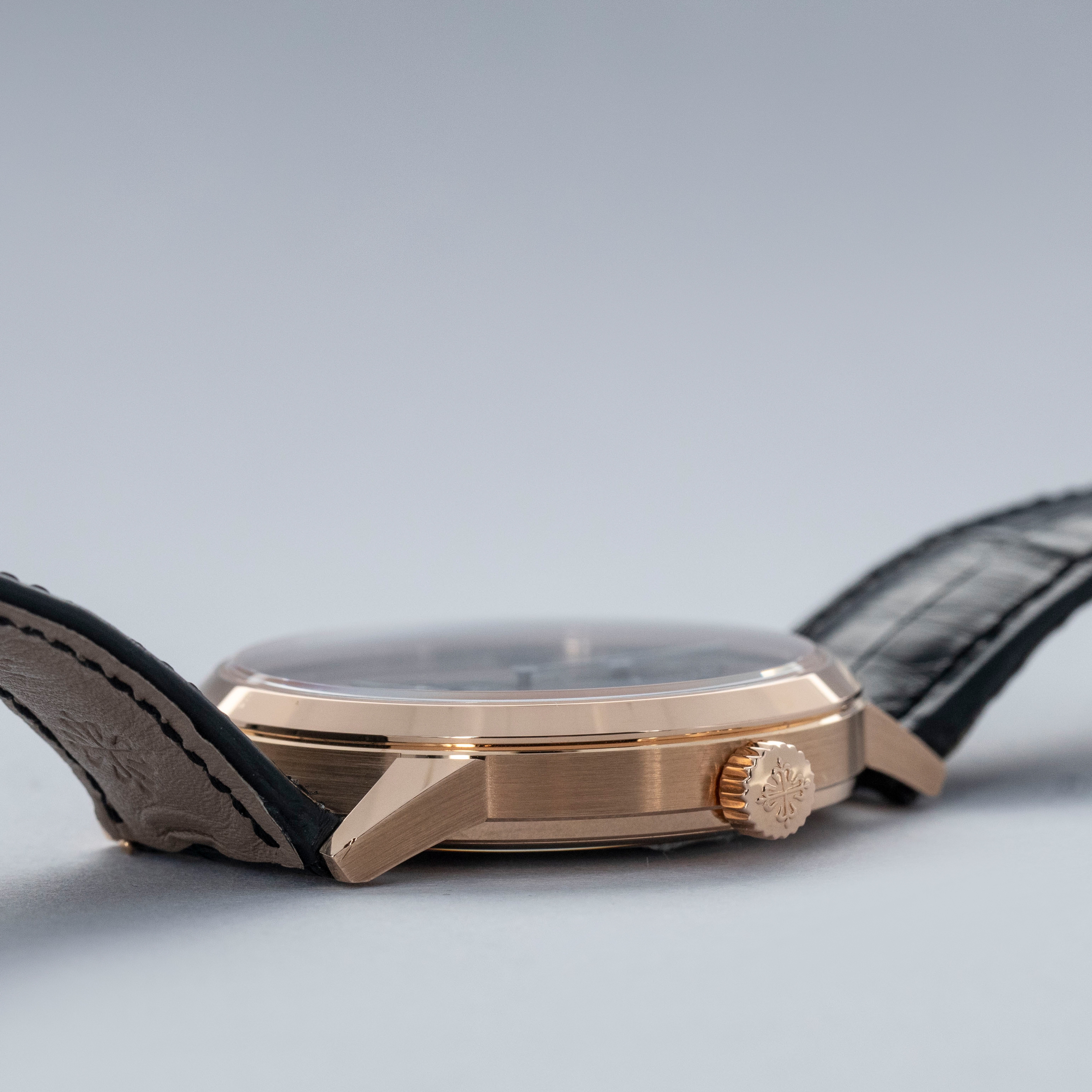 Made of 18kt rose gold, the ref, 5235R boasts a flat polished bezel with a small step out to the mid-case and sharp faceted lugs that provide a close wearing experience, as the watch wears flat to wrist.