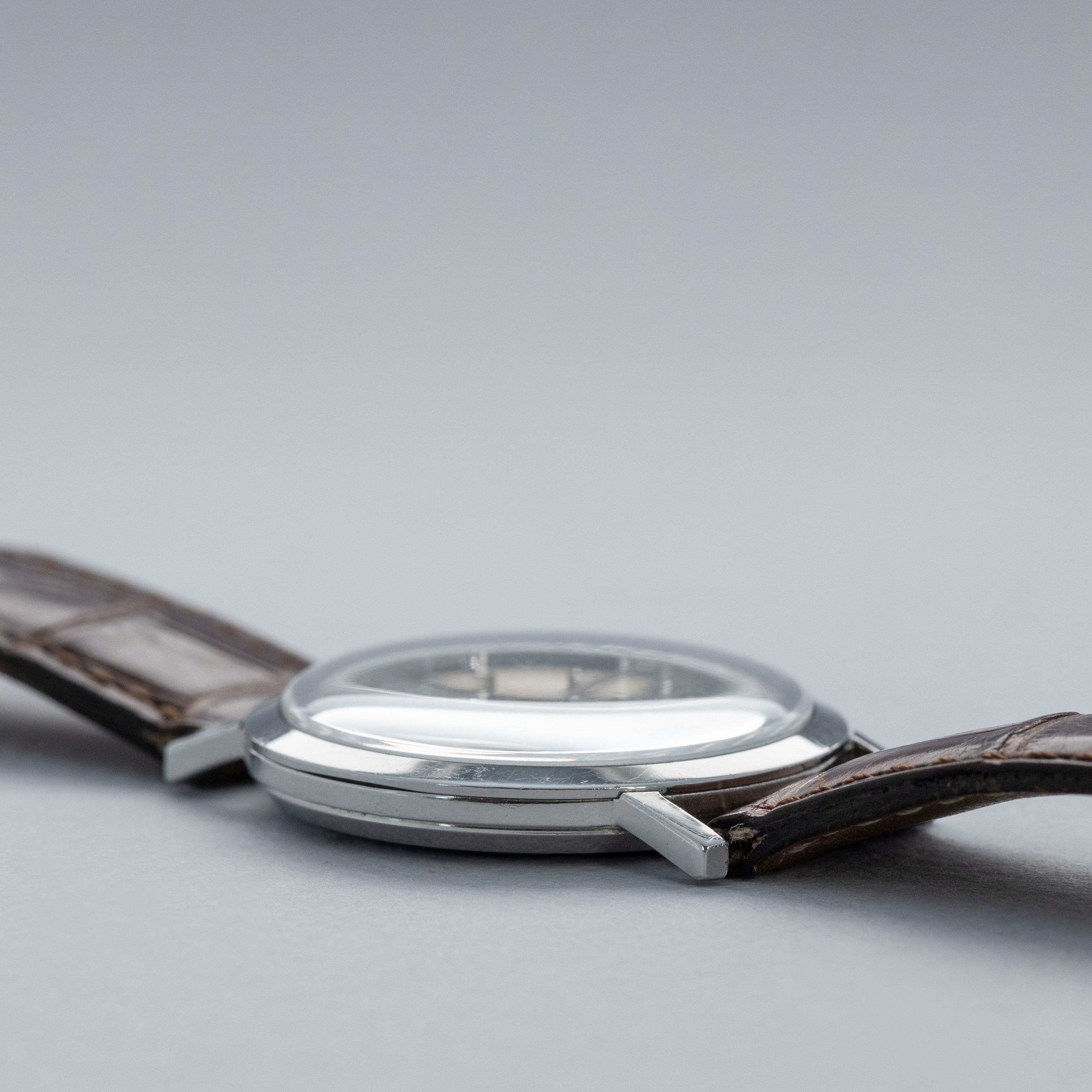 Measuring just 33mm in diameter, the ref. 3509 increases its wrist presence with its brightly polished flat bezel and relatively straight lugs that increase its profile on the wrist and make it much easier to wear in the modern horological landscape than its measurements suggest. However, it nonetheless retains its vintage charm in abundance.