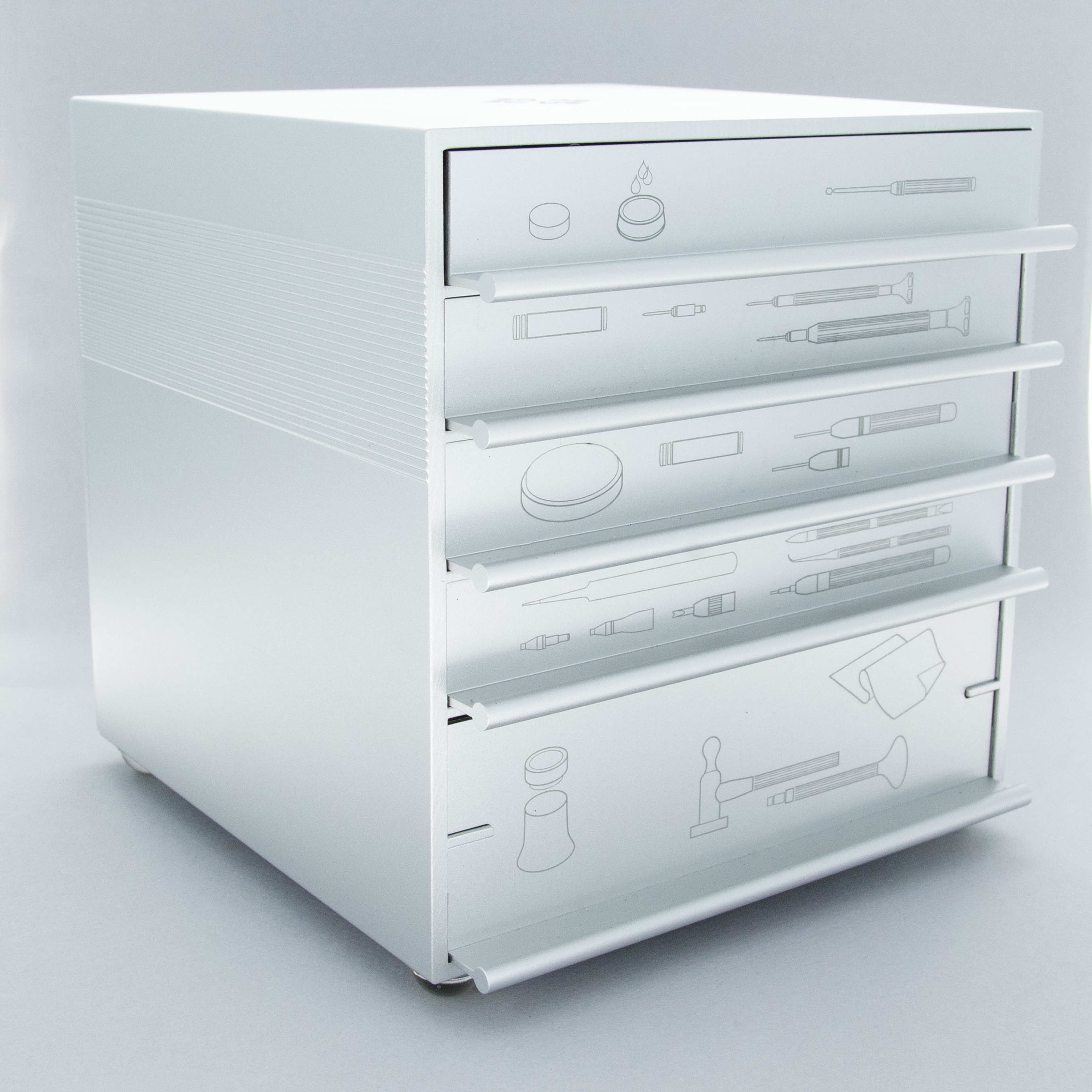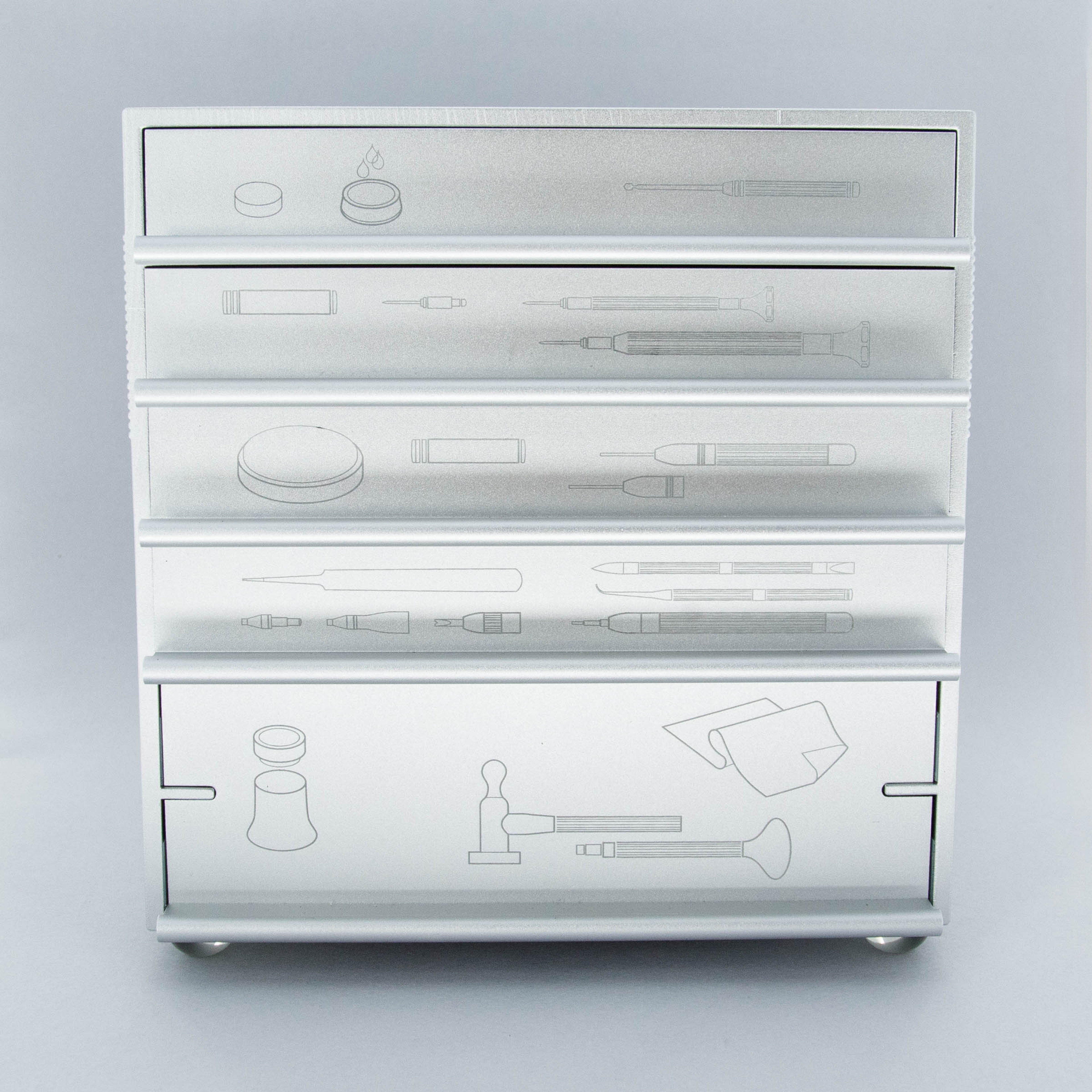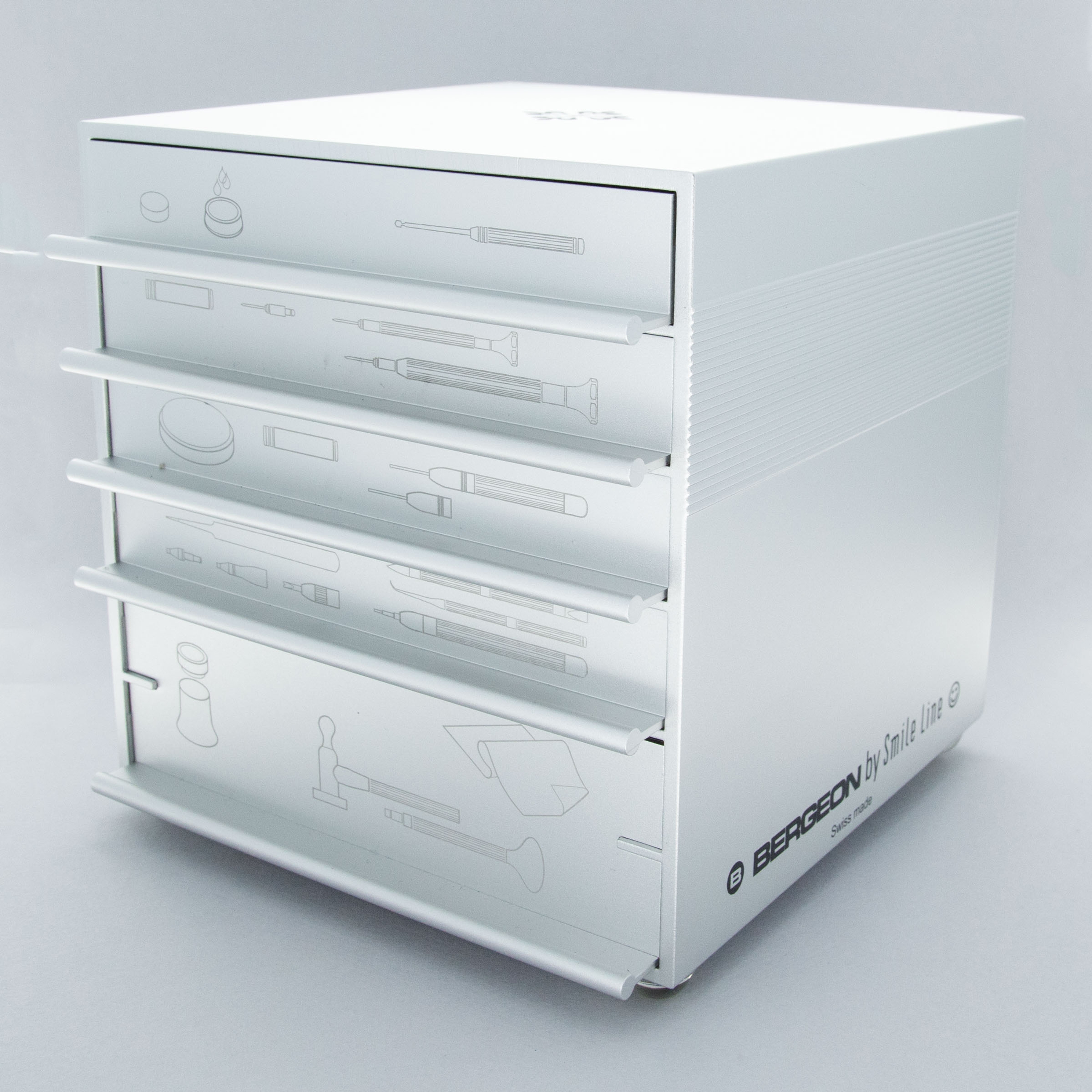 Famed for their watches and incredible craftsmanship, it might be natural to wonder what brand of toolmaker Patek Philippe endorses, and with this tool set the answer is certainly made clear, Bergeon. Often regarded as the best producer of the high-end tools in the industry, Bergeon’s Smile Line “The Cube” offers an all-encompassing watch tool set complete with just about everything a watchmaking might need as they complete a day of work at their bench. And indeed, in that spirit, this co-branded tool set was conceived by Patek Philippe as a prize to be given to their best watchmaking school graduates. Using a 5 drawer aluminum cube-shaped case that measures 150mm tall, deep, and wide, this tool set is co-branded just about everywhere you can look, reminding you of both Patek Philippe’s testament to quality, and Bergeon’s impressive renown.