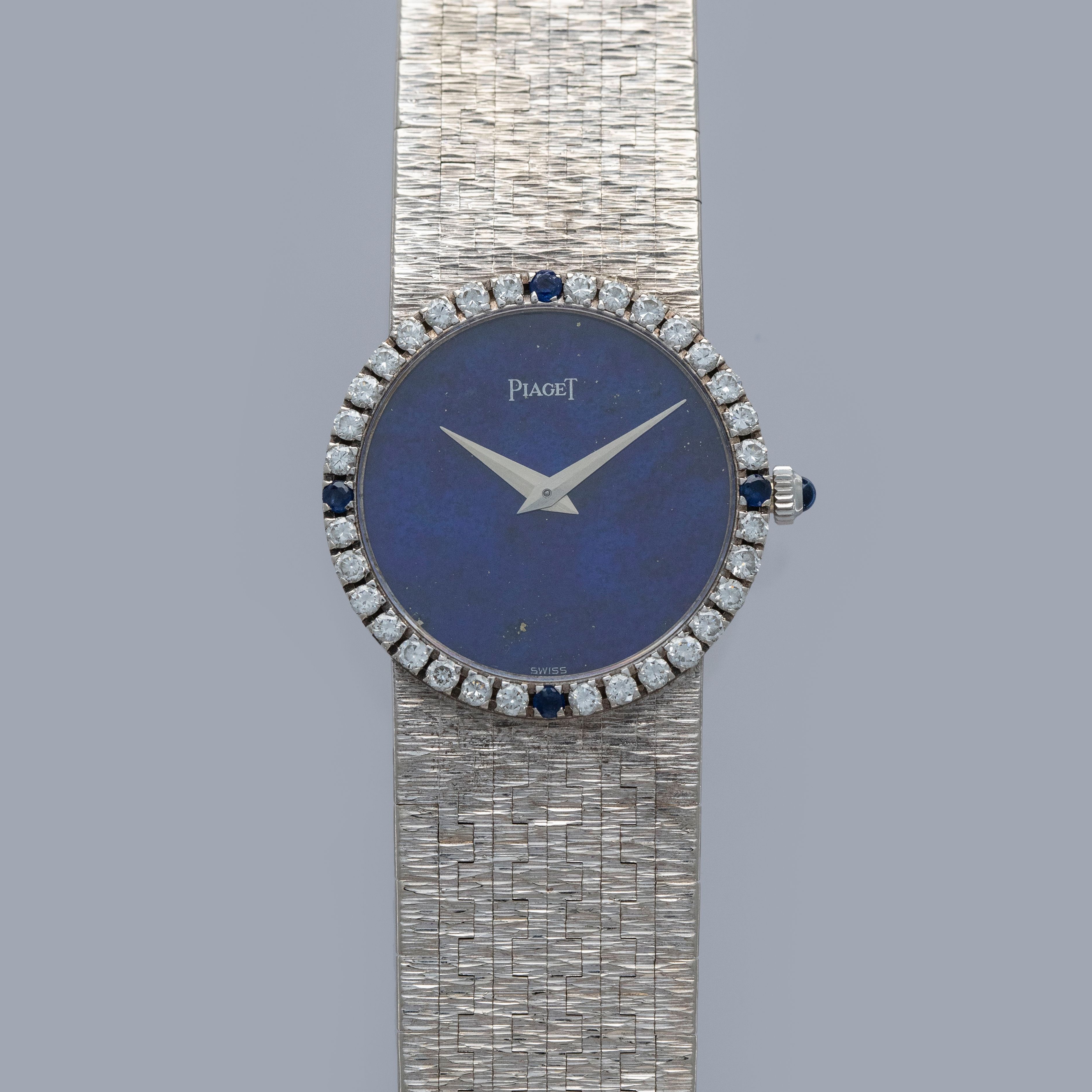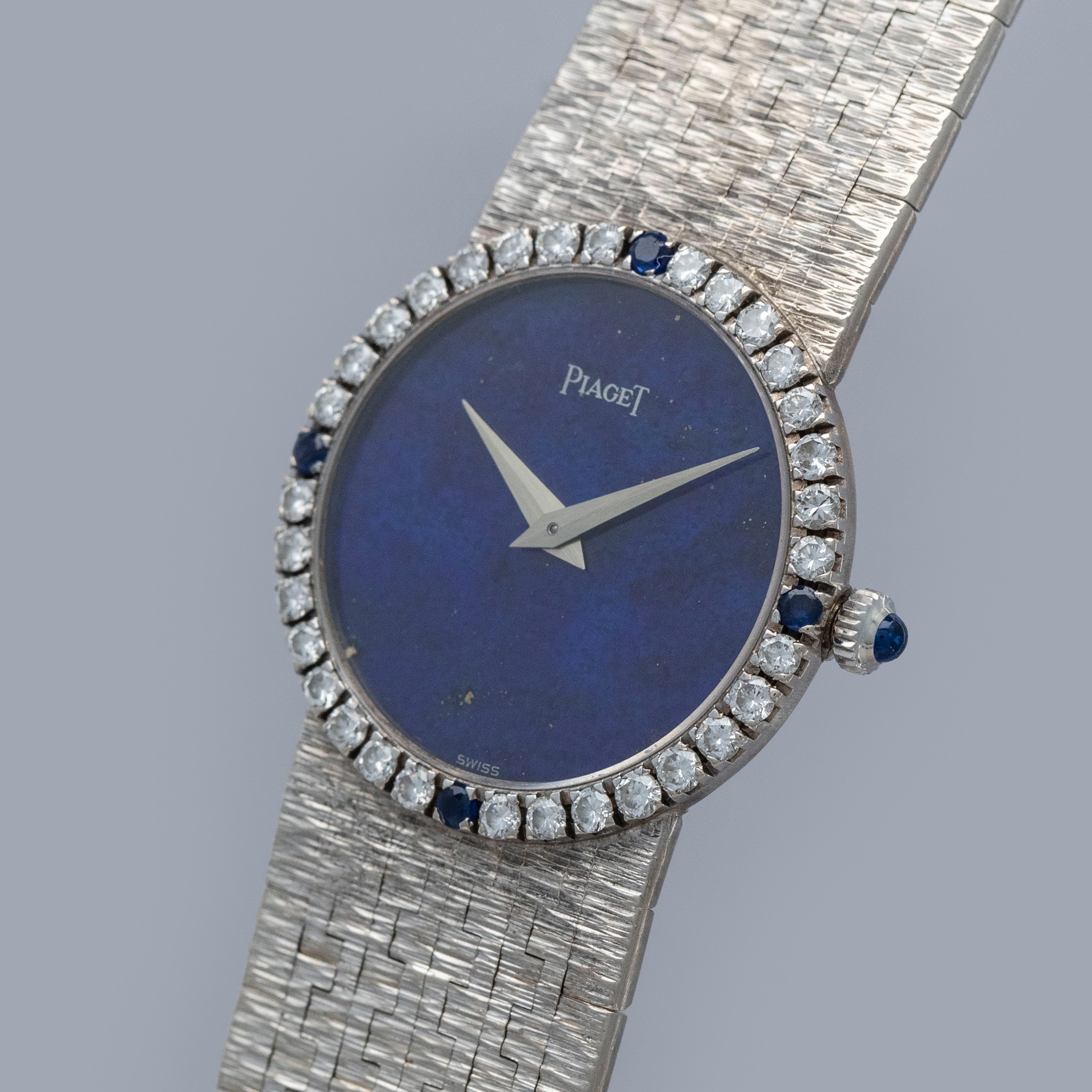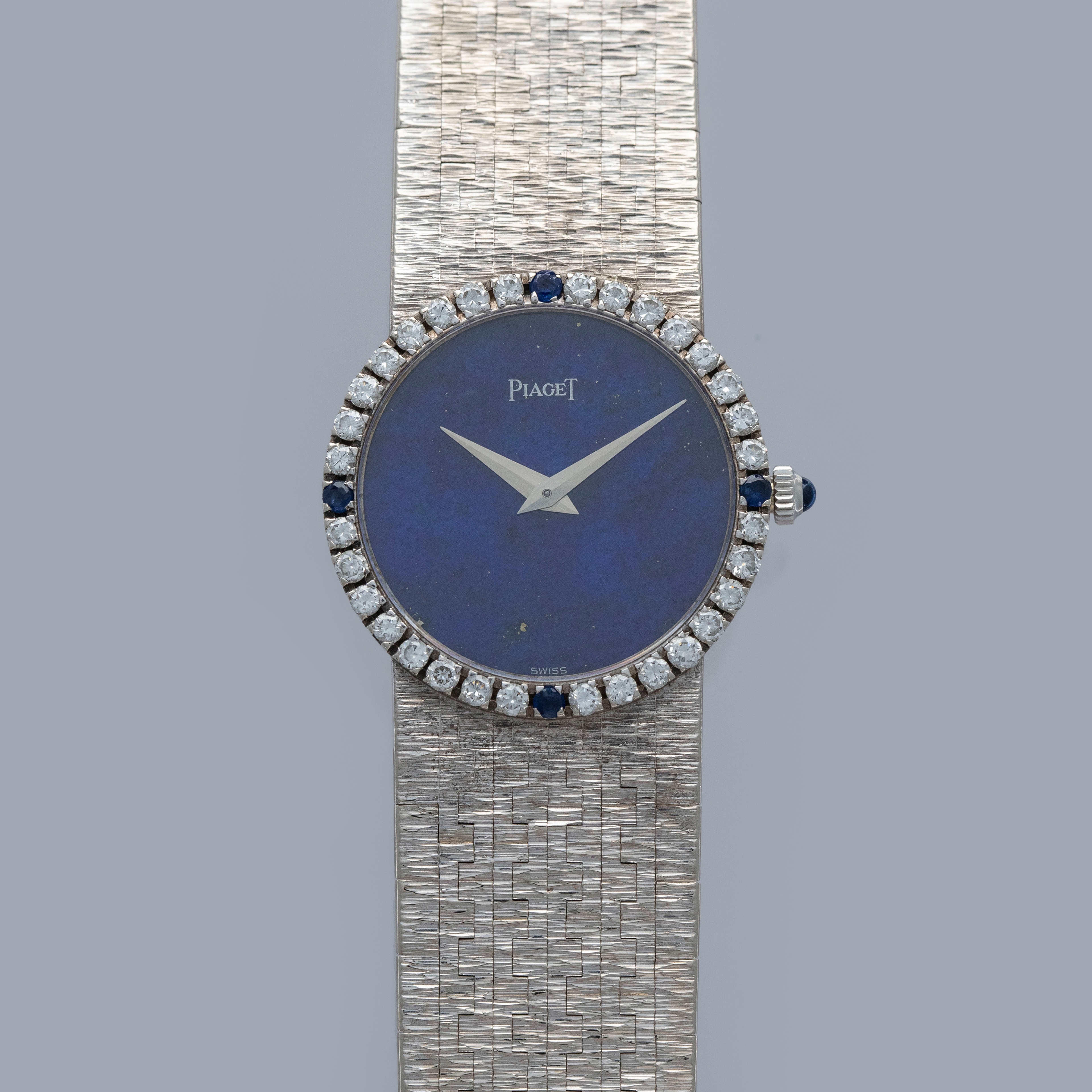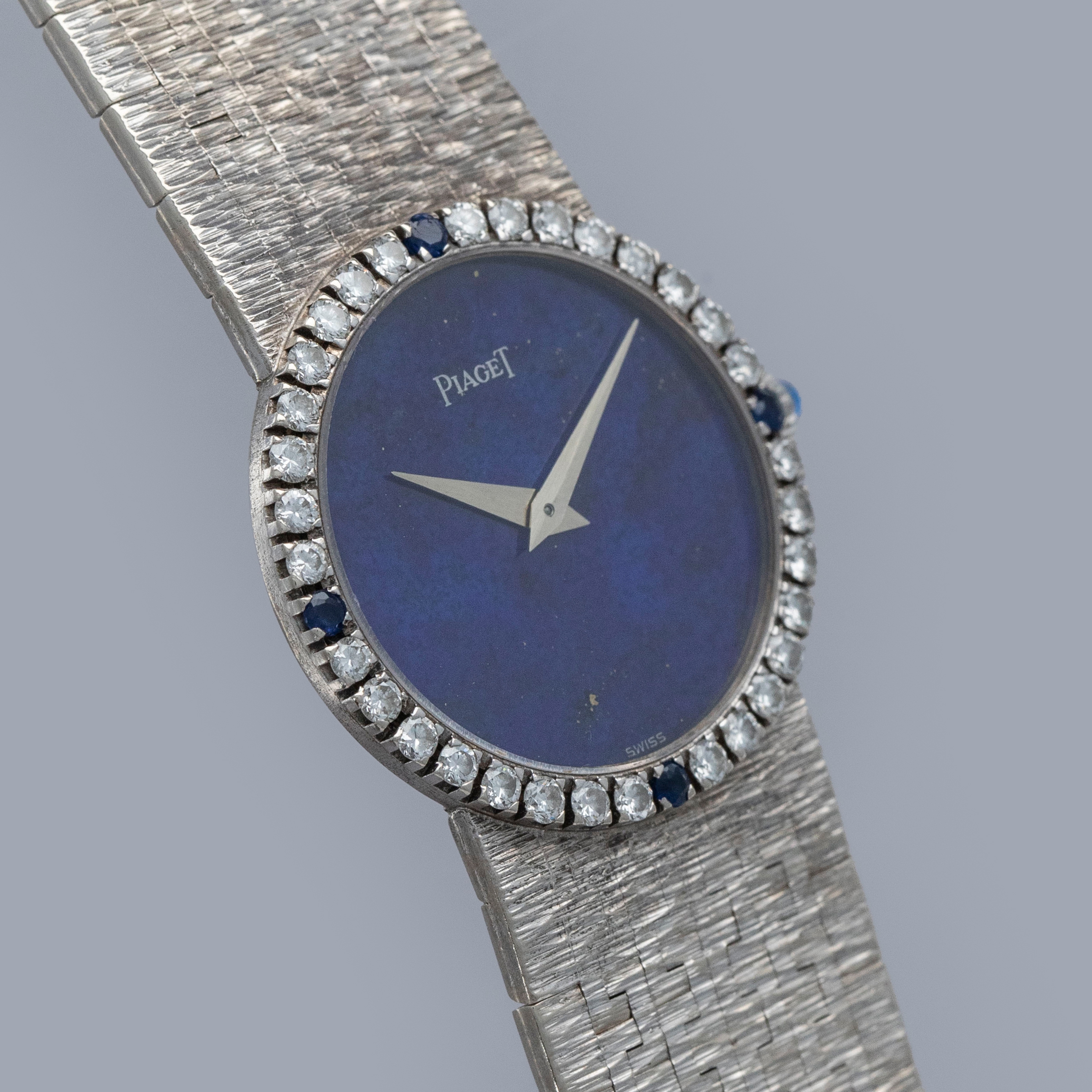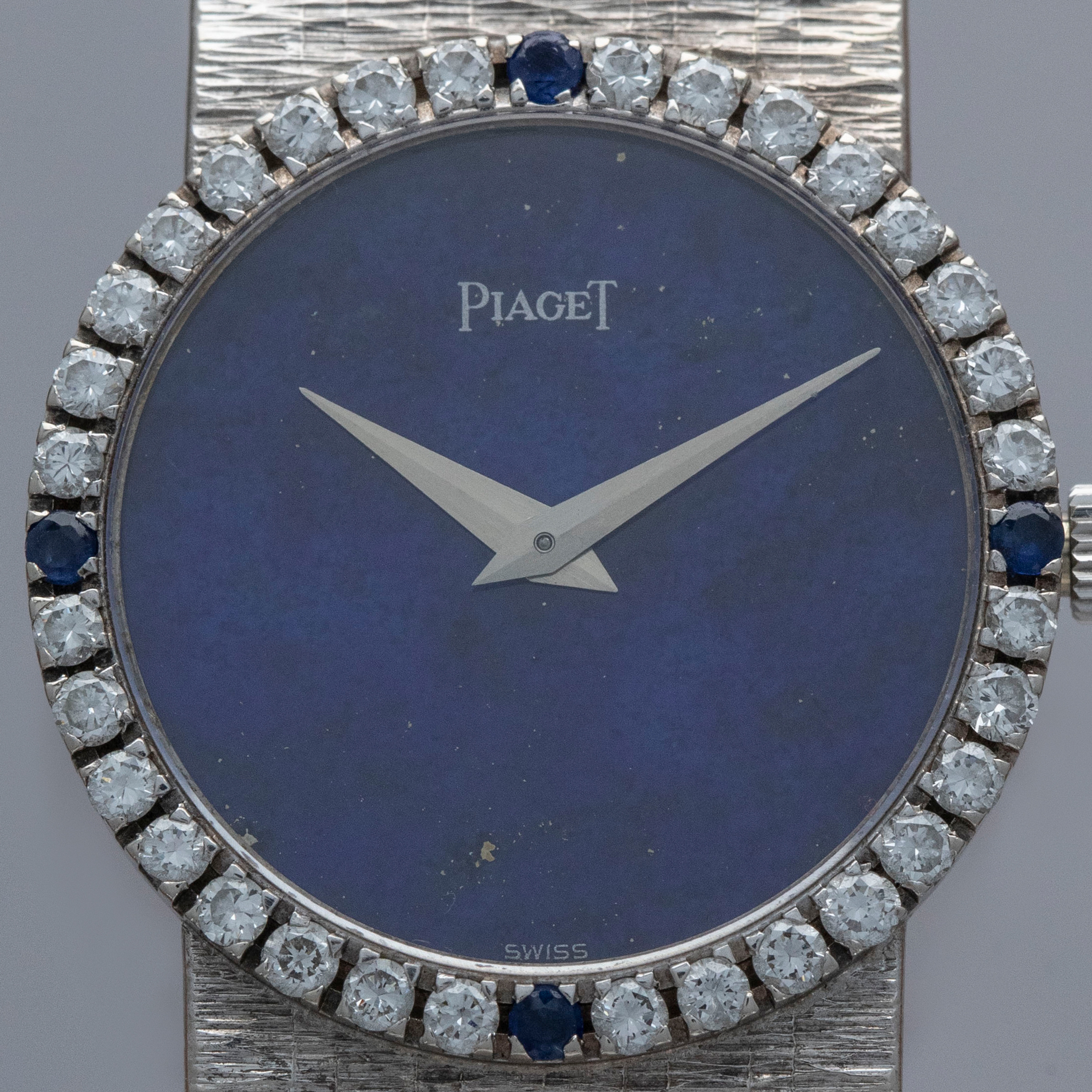 Piaget Ladies 9706 Lapis Dial with Diamond and Sapphire Bezel 18k WG