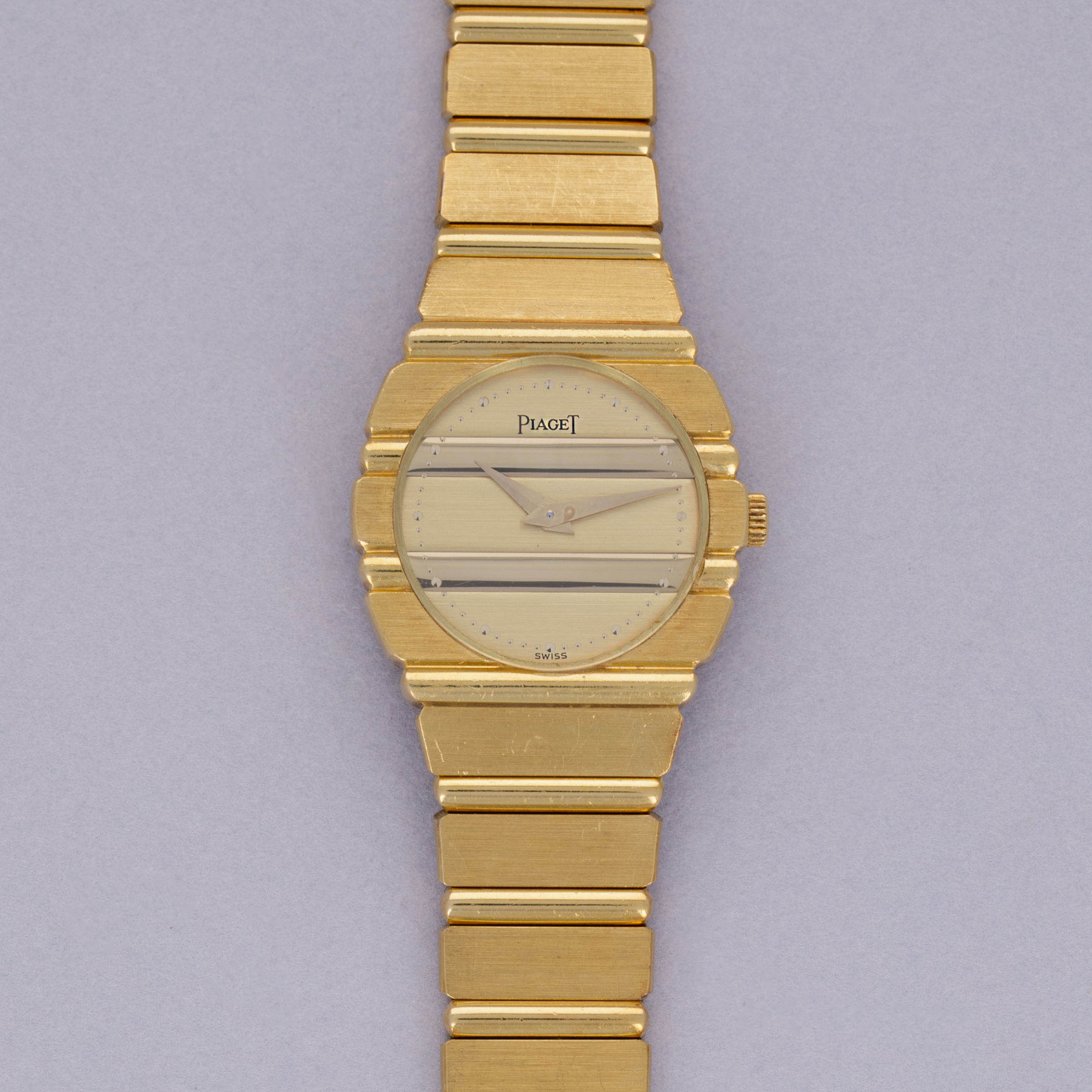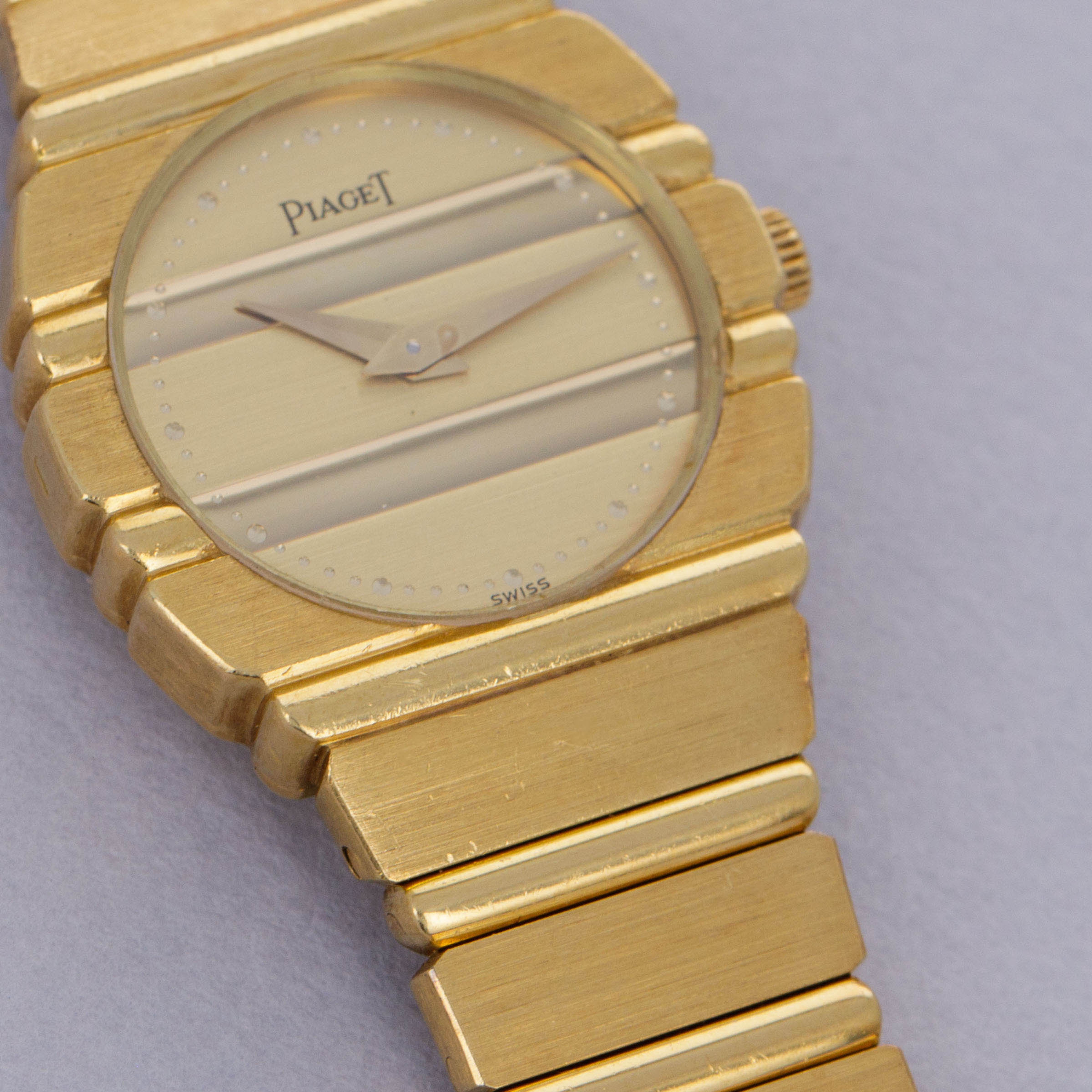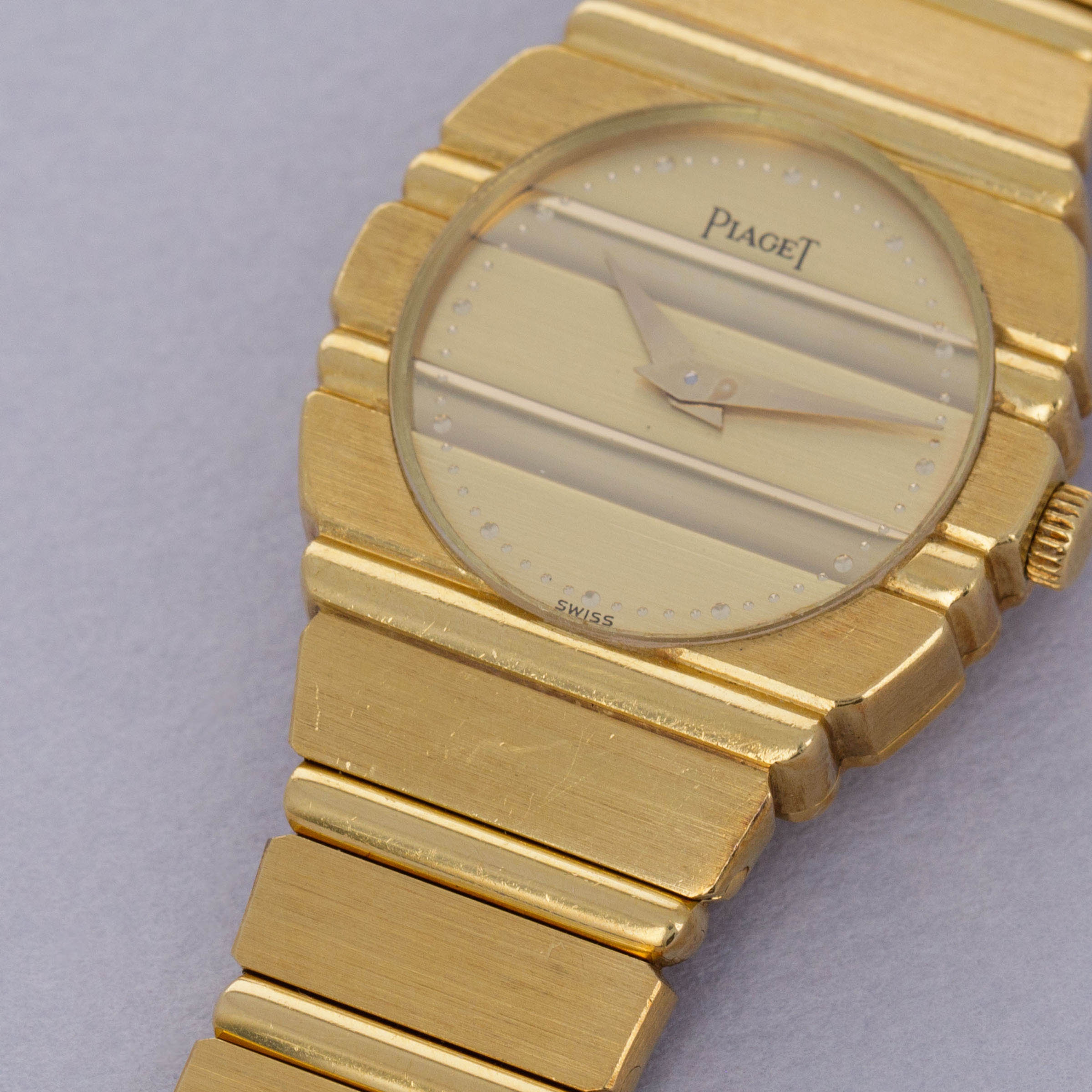 Fitting in with Piaget's affinity for thin watches, the Polo benefits from a quartz movement that enables its case to sit flat on the wrist and accentuate its unique profile.