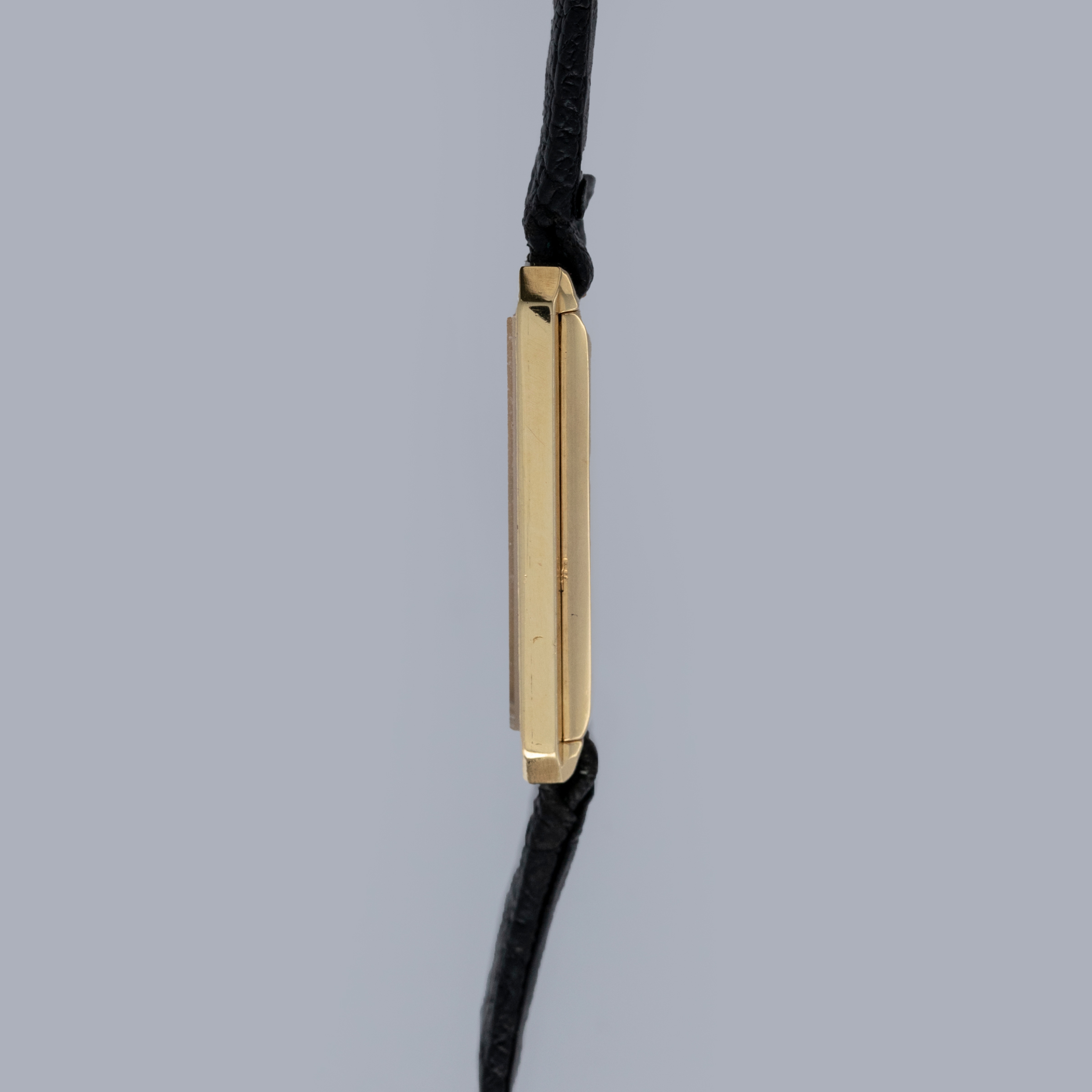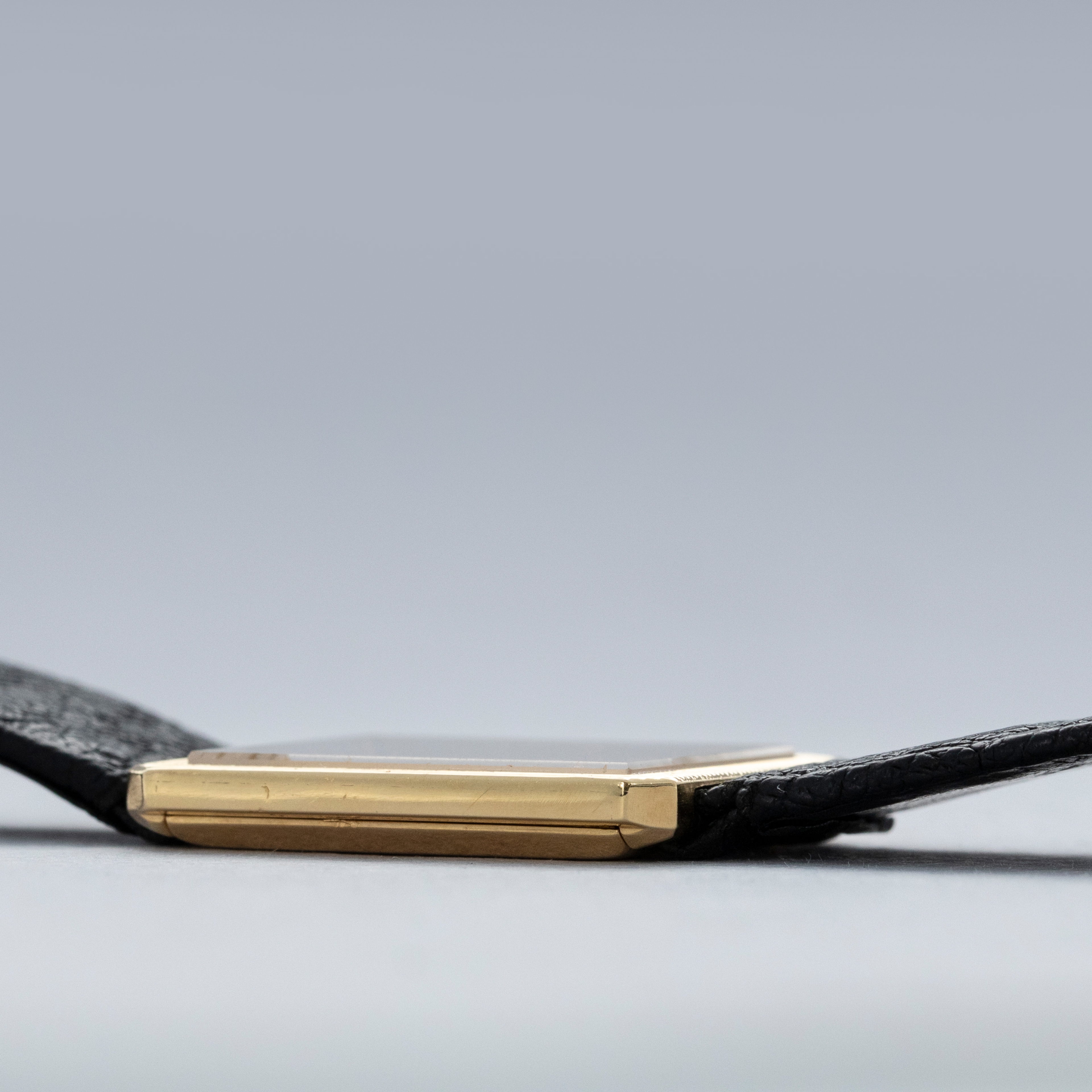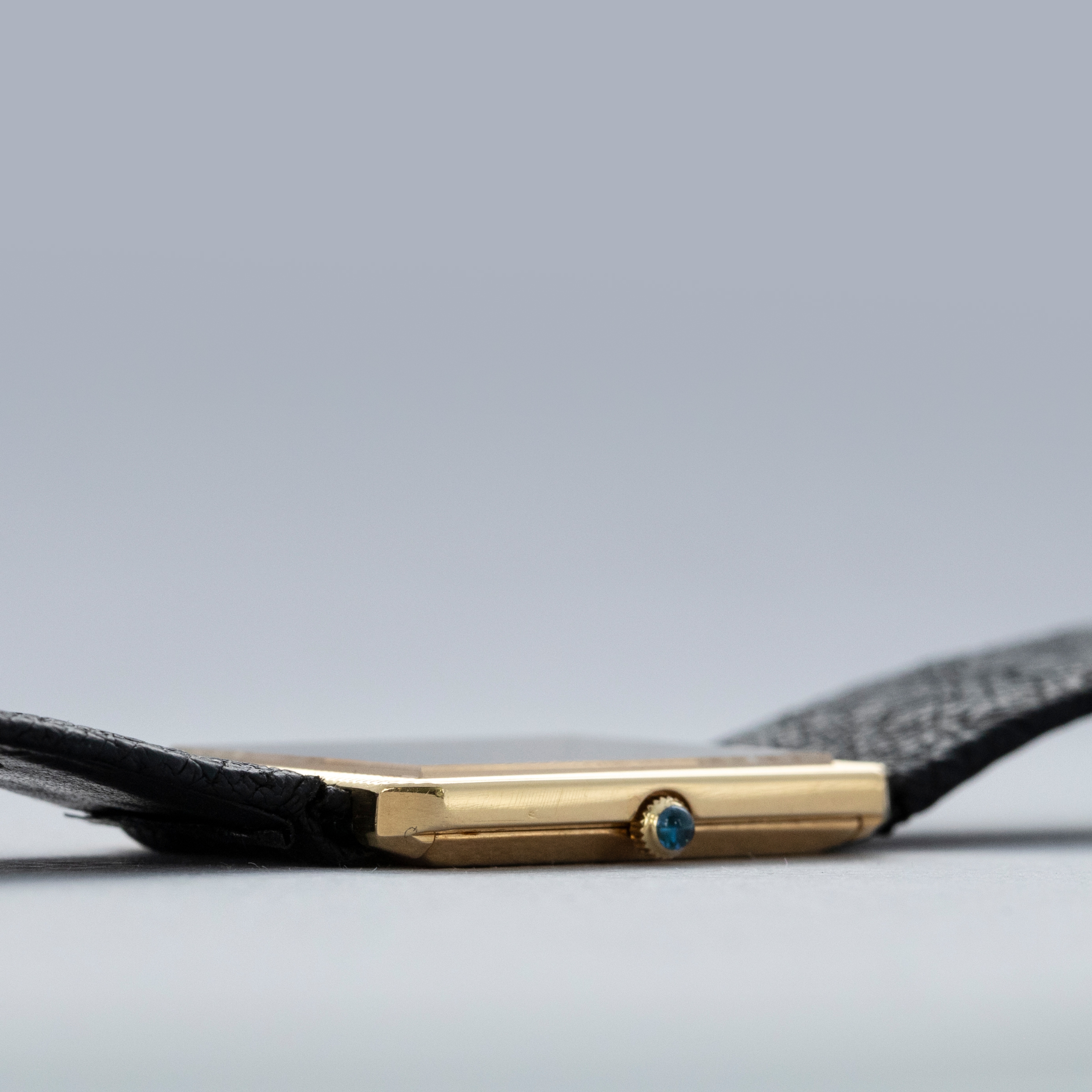 Founded in 1874 by a young 19-year-old in the village of La Côte-aux-Fées, Piaget was originally nothing but a means for Georges Piaget to earn some extra money as he worked on movements and watches during the winter. After decades of producing watches for other brands, it was not until 1943 that the watchmaker would begin to sign their own watches and develop as the famed watchmaker that they are today. From then on, Piaget began to experiment with ultra-thin watches and push both horological and design boundaries, which eventually led to the brand expanding into jewelry in 1959, perhaps the brand’s best-known avenue today. With their impeccable craftsmanship, audacious style, and dedication to the spectacular, Piaget’s timepieces and jewelry began to coalesce, resulting in timepieces much like the Protocole ref. 5194 that we have here, which became a signature offering from within Piaget’s catalog. Boasting an 18kt yellow gold rectangular case measuring 25mm wide and 28mm tall with a lug-free design and an interesting vertical ‘tapestry’ pattern engraved down its entire front, the Protocole is an iconic piece of Piaget design. However, while the ref. 5194’s case is unique, this example’s jet-black onyx stone dial is what truly sets it apart. A stunning result of Piaget’s incredible work with stone dials, this timepiece likely resulted from Piaget’s Style Selector program where clients could pick from a variety of dials, bracelet options, case finishes, materials, and more for their watch. These stone dial Piaget offerings have become increasingly sought-after, and this onyx dial Protocole ref. 5194 is a perfect reminder of why collectors have flocked to them in recent times.