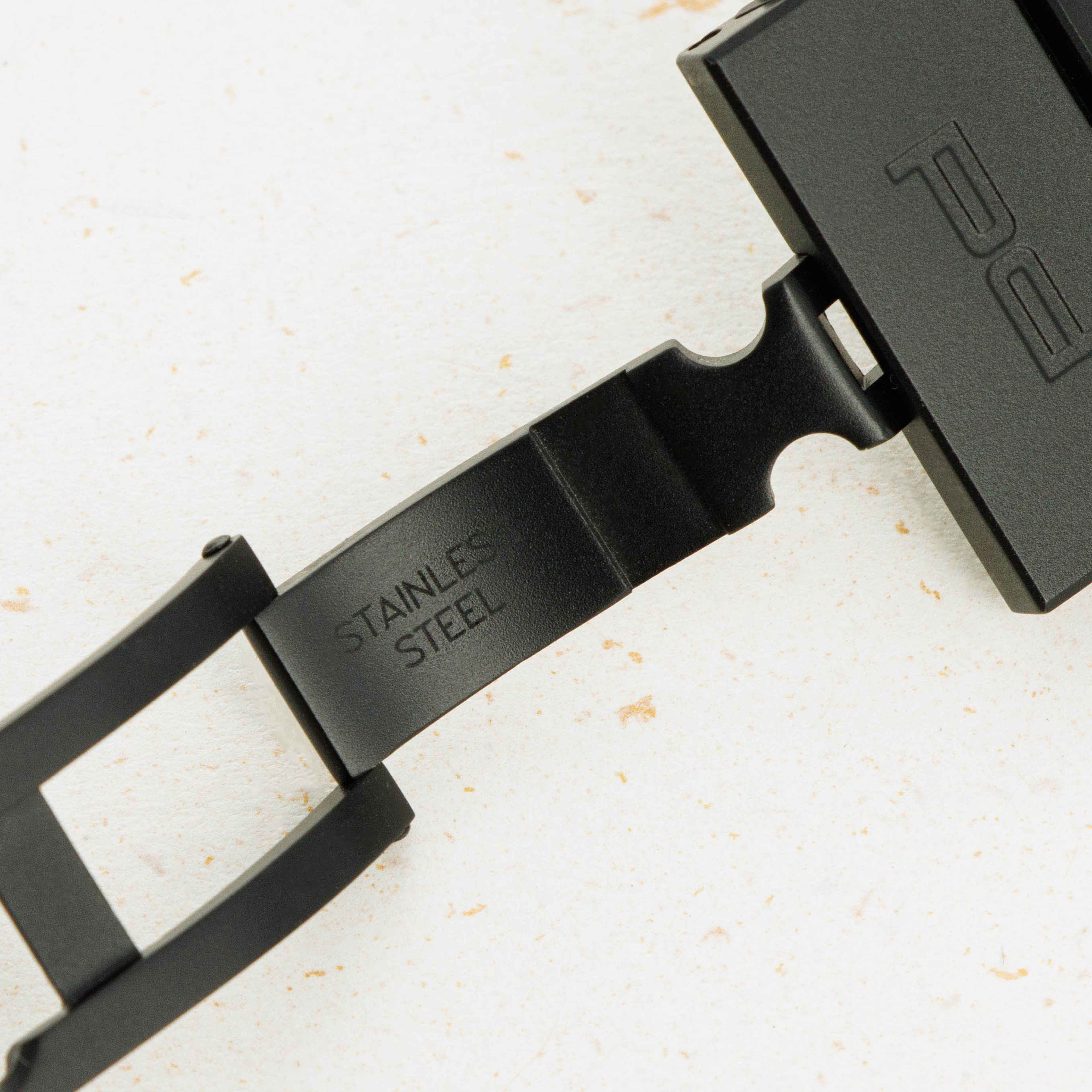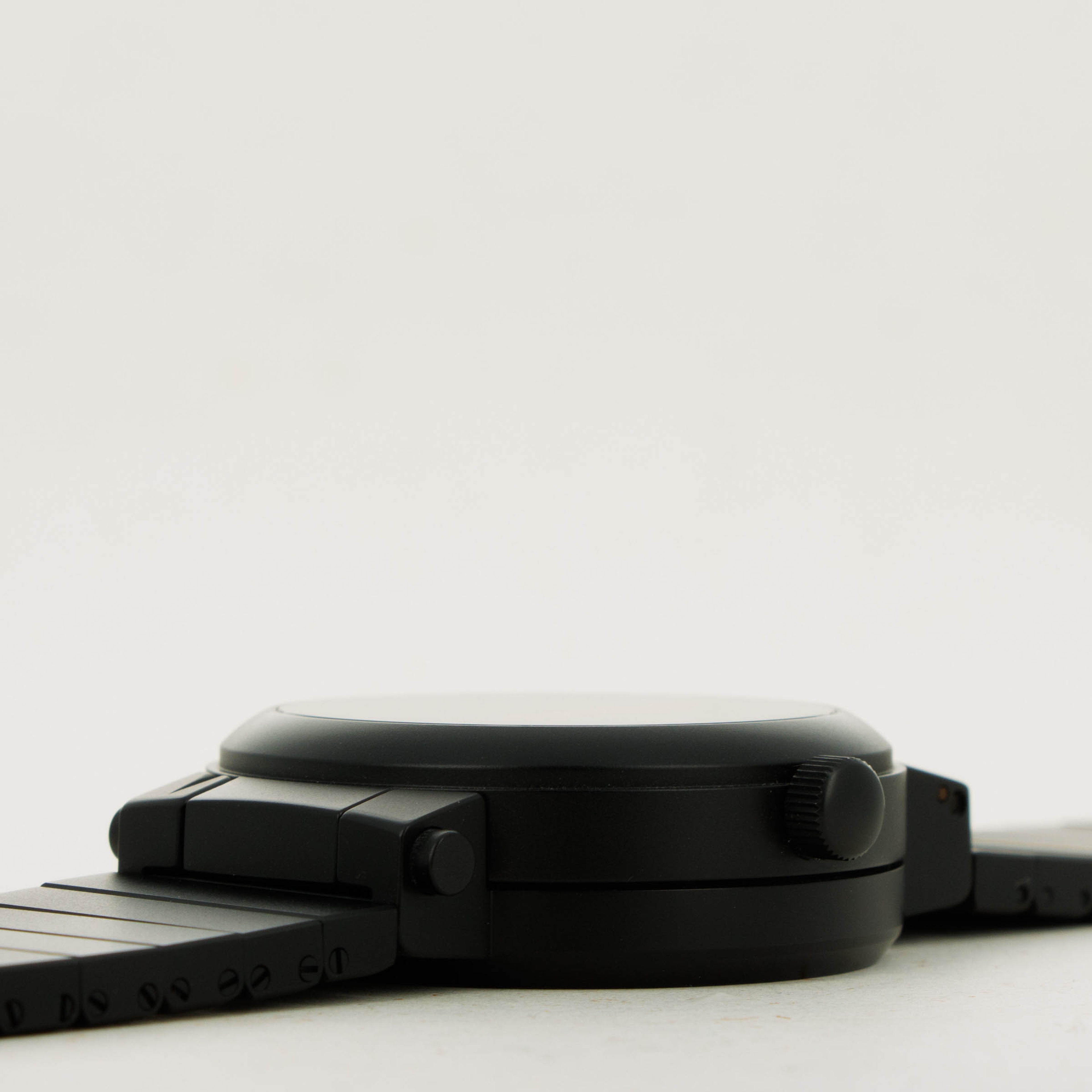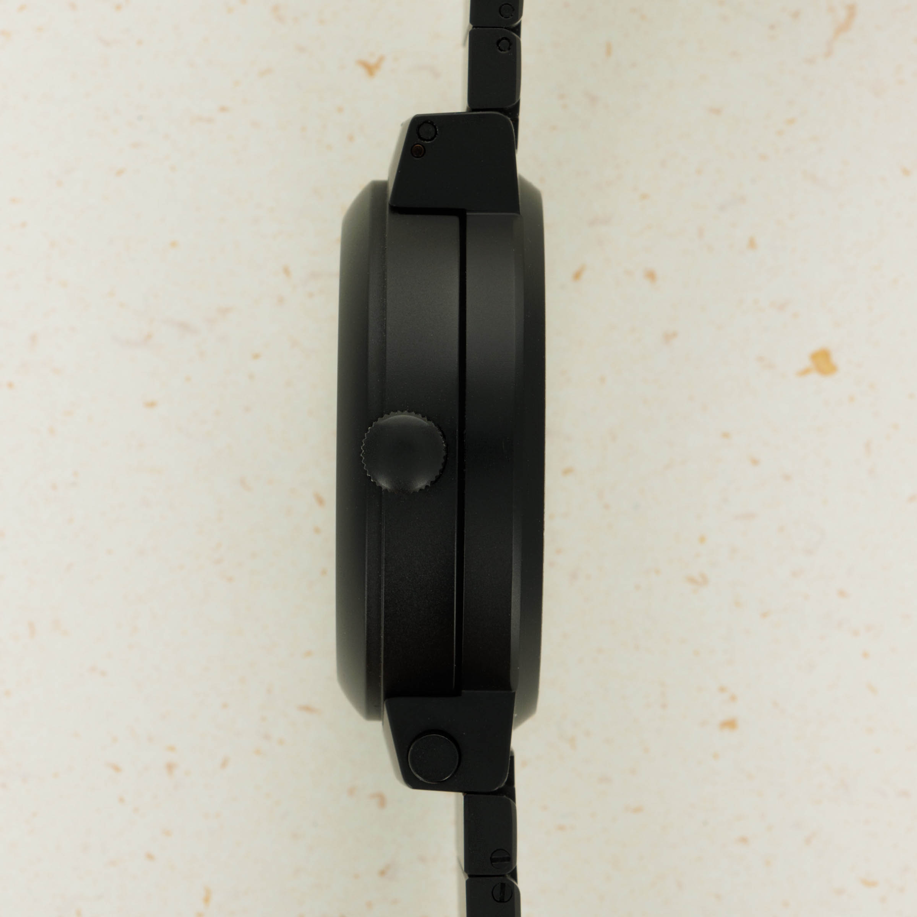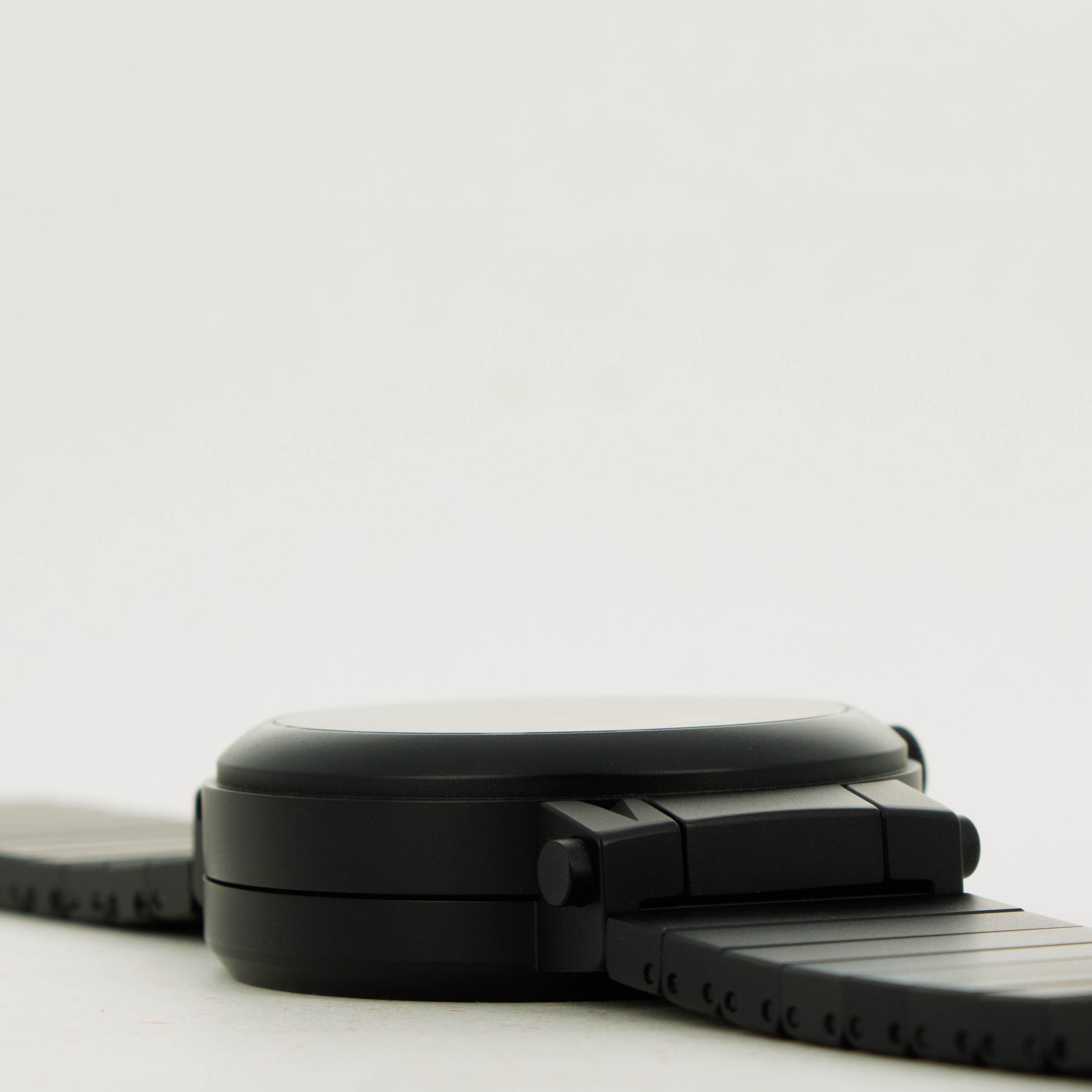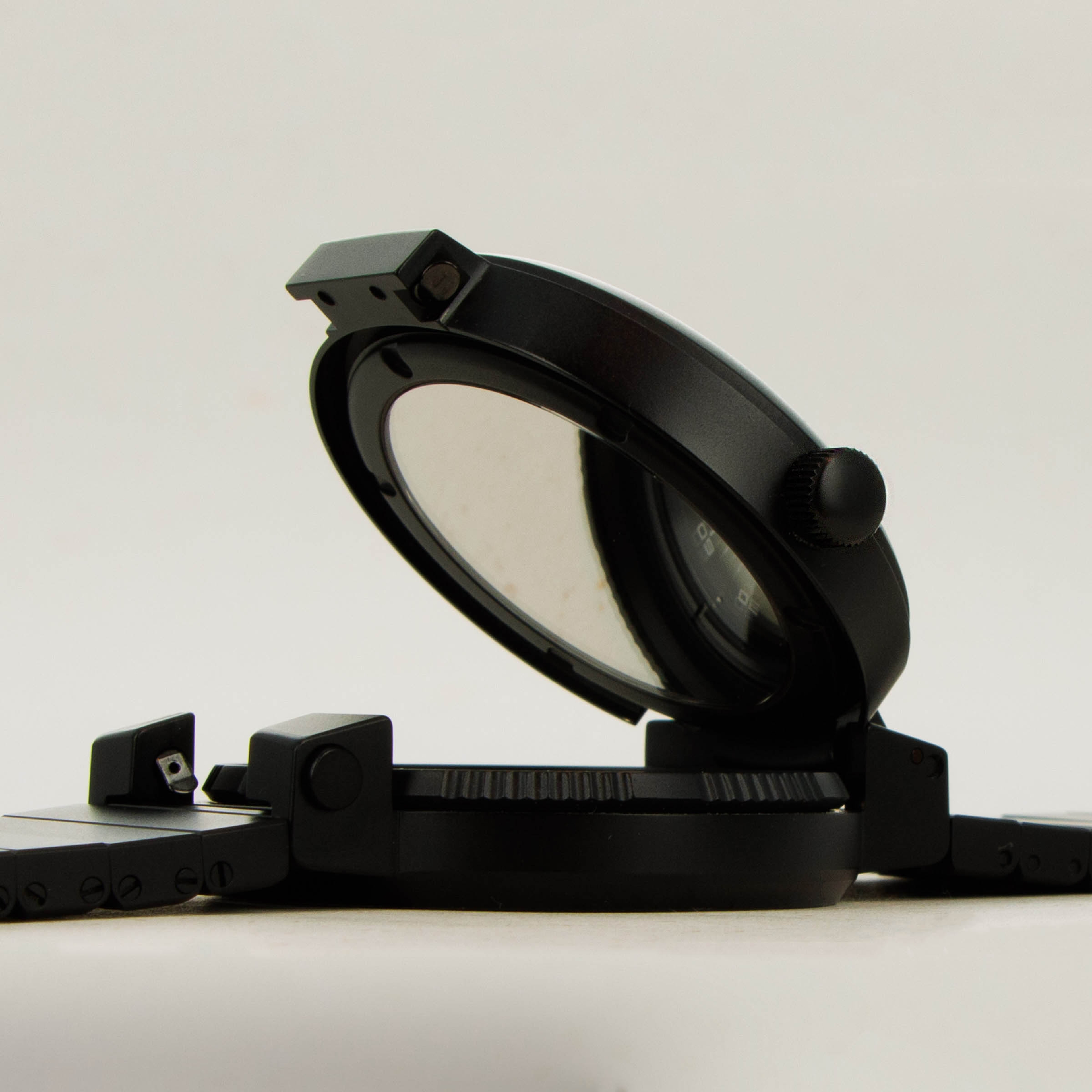 Made from PVD-coated titanium, the Compass watch's black bracelet and case are an incredibly sleek combination that add to its already minimalist design aesthetic. However, more importantly, titanium's anti-magnetic properties allow the compass to operate as intended.