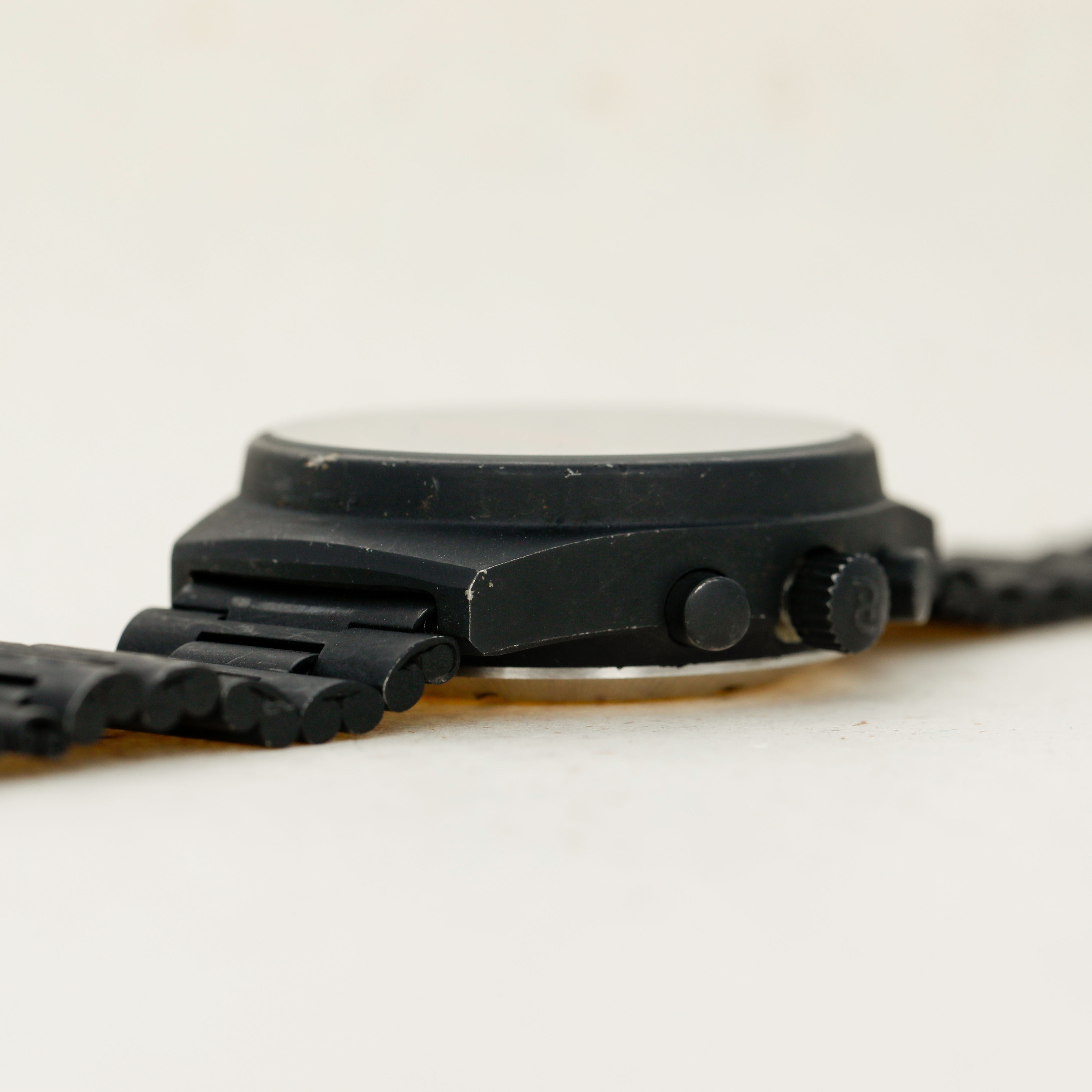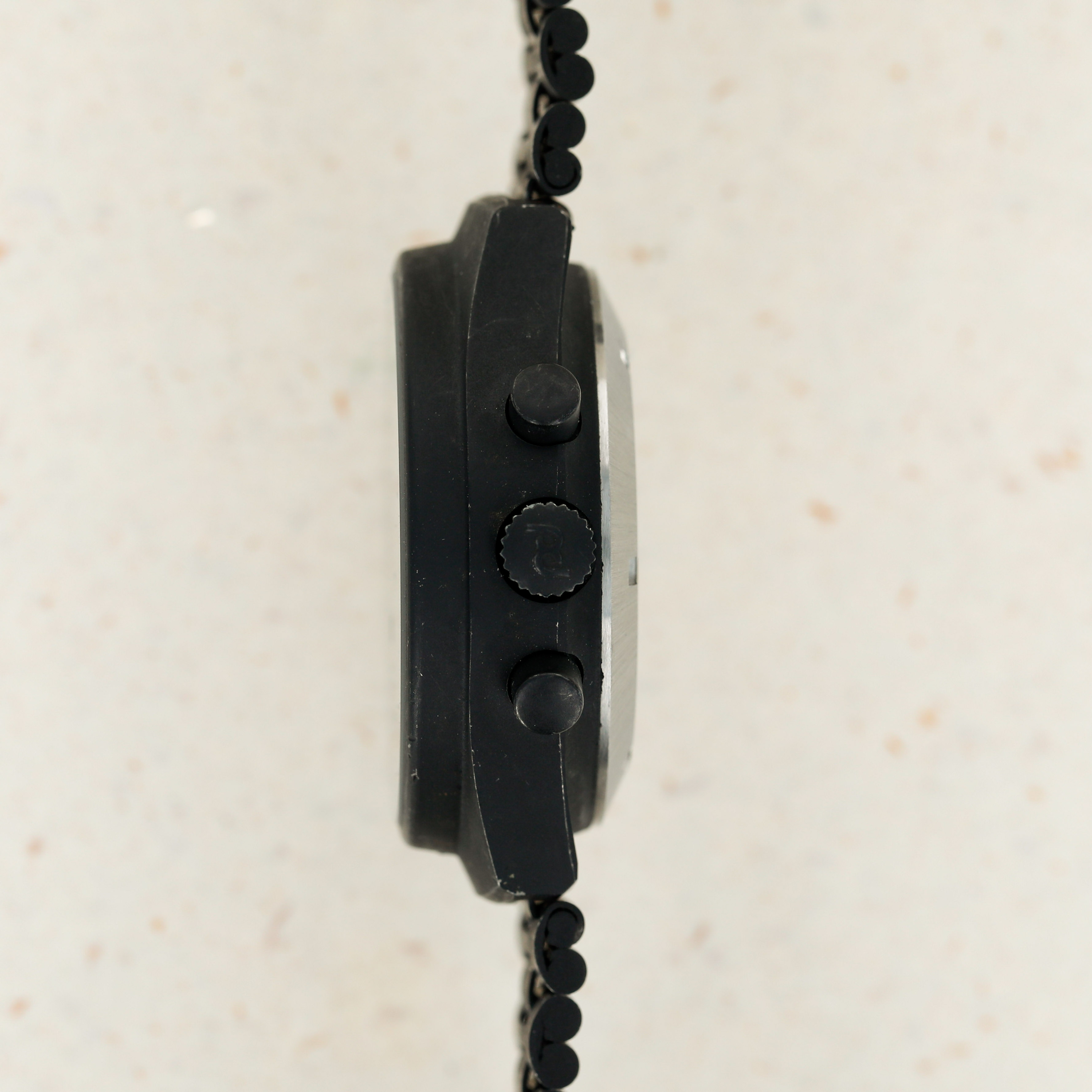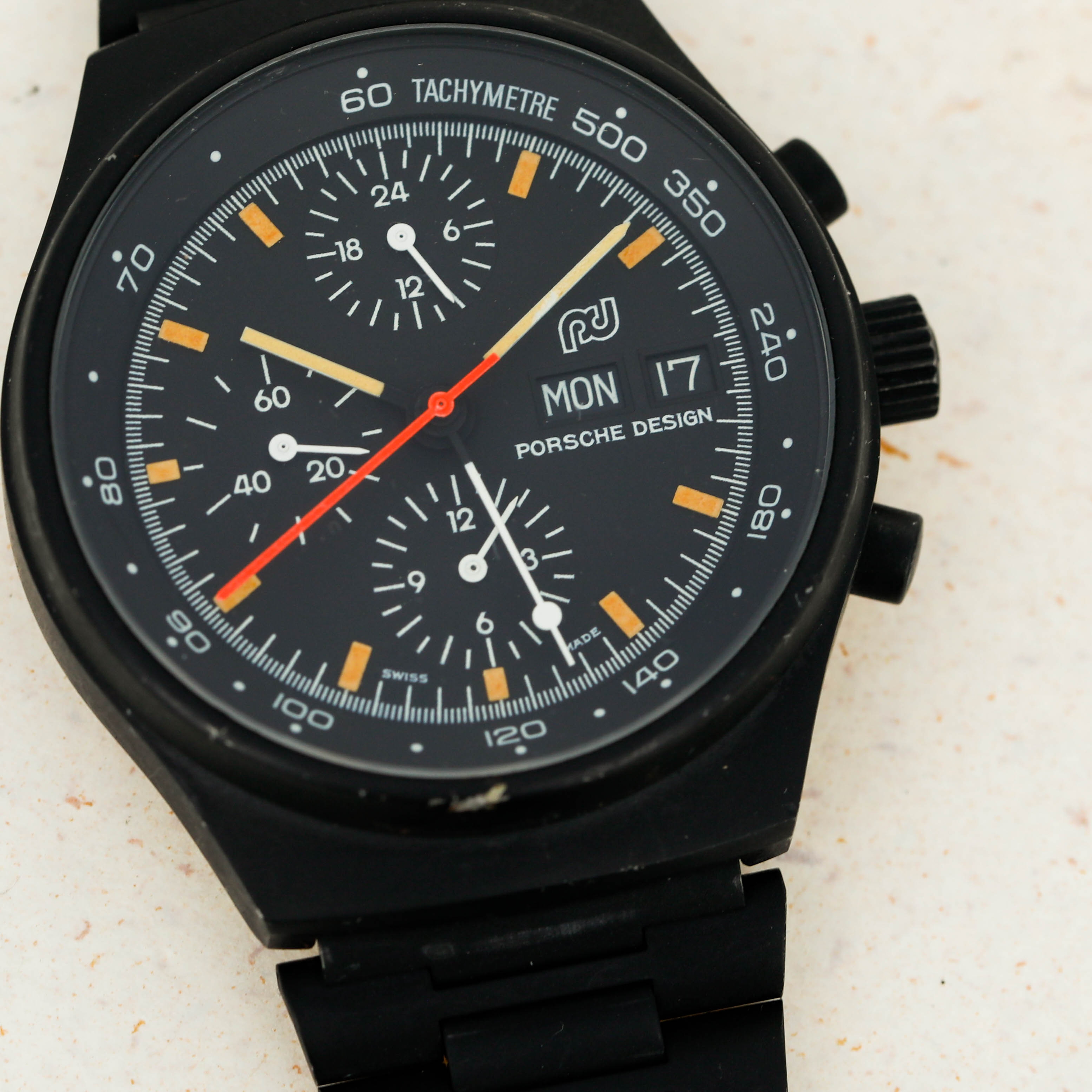 While the Porsche name might be best known for their incredible cars, Porsche’s design studio Porsche Design have an impressively long history in watchmaking too which goes as far back as the 1970s when they kicked things off with a collaboration between themselves and Orfina in 1972 that resulted in the Chronograph 1, which was also one of the first products Porsche Design ever launched. Offered as a PVD-coated stainless steel timepiece, it featured a black dial with a completely blacked-out 40mm construction and an automatic chronograph movement with a day and date display. With two movements used in the watch across its 6 year production, the automatic Valjoux cal. 7750 movement was used from 1972 to 1975 and the Lemania cal. 5100 was used from 1975 to 1978, which is what powers our example here - identifiable by its 24-hour subdial at 12 o’clock. Offered as one of the earliest blacked-out timepieces, the Chronograph 1 was a trailblazing timepiece that created a boom in blacked-out watches that lasted into the 1990s with several watchmakers following suit, which was aided by its role in the iconic movie Top Gun whereby Tom Cruise’s character can be seen sporting a Chronograph 1 at several points in the film.
