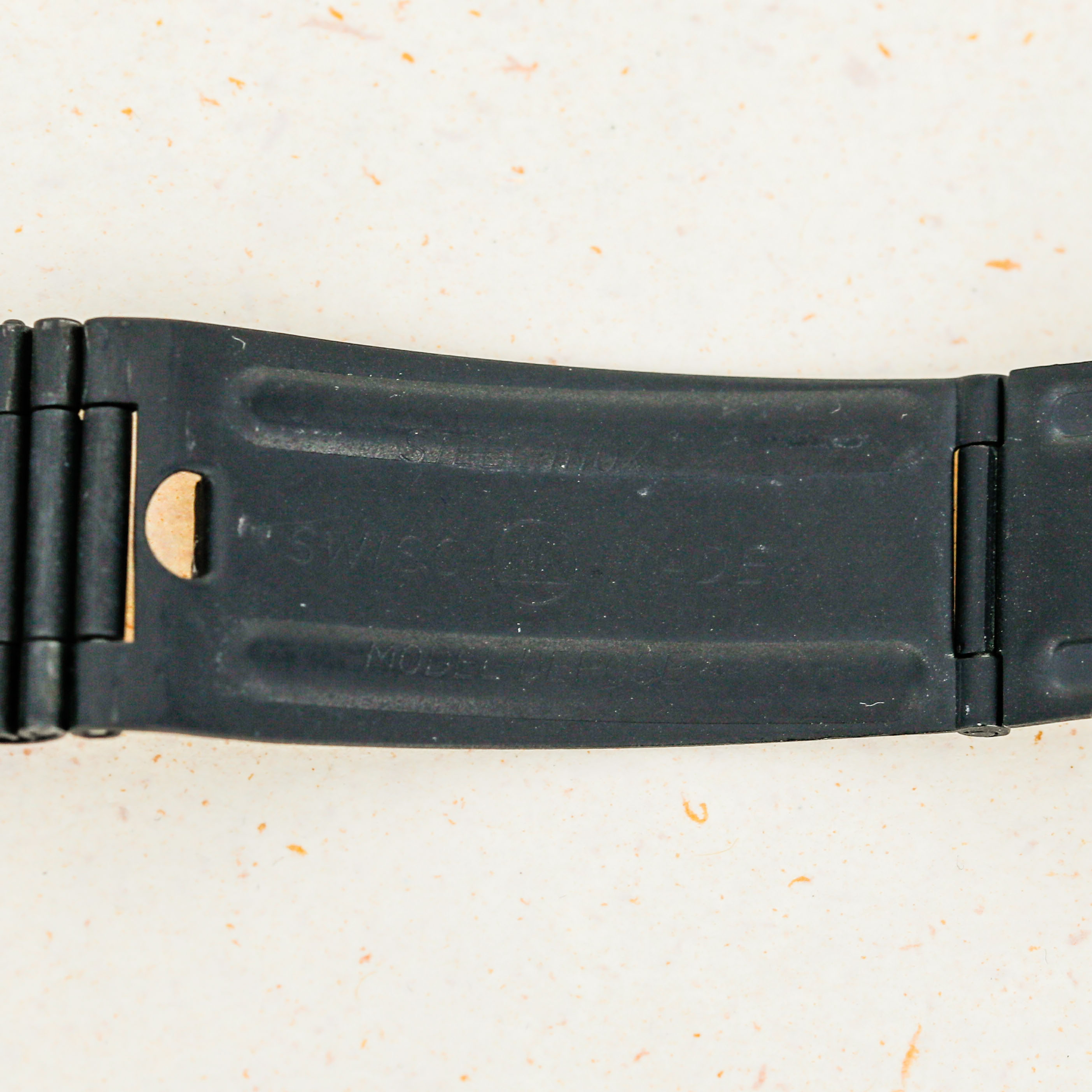 Watch appears to have been seldom used if ever, but the PVD surface has several areas of scratches and peeling along the case and bracelet. Dial with nicely aged luminous that matches the hands.