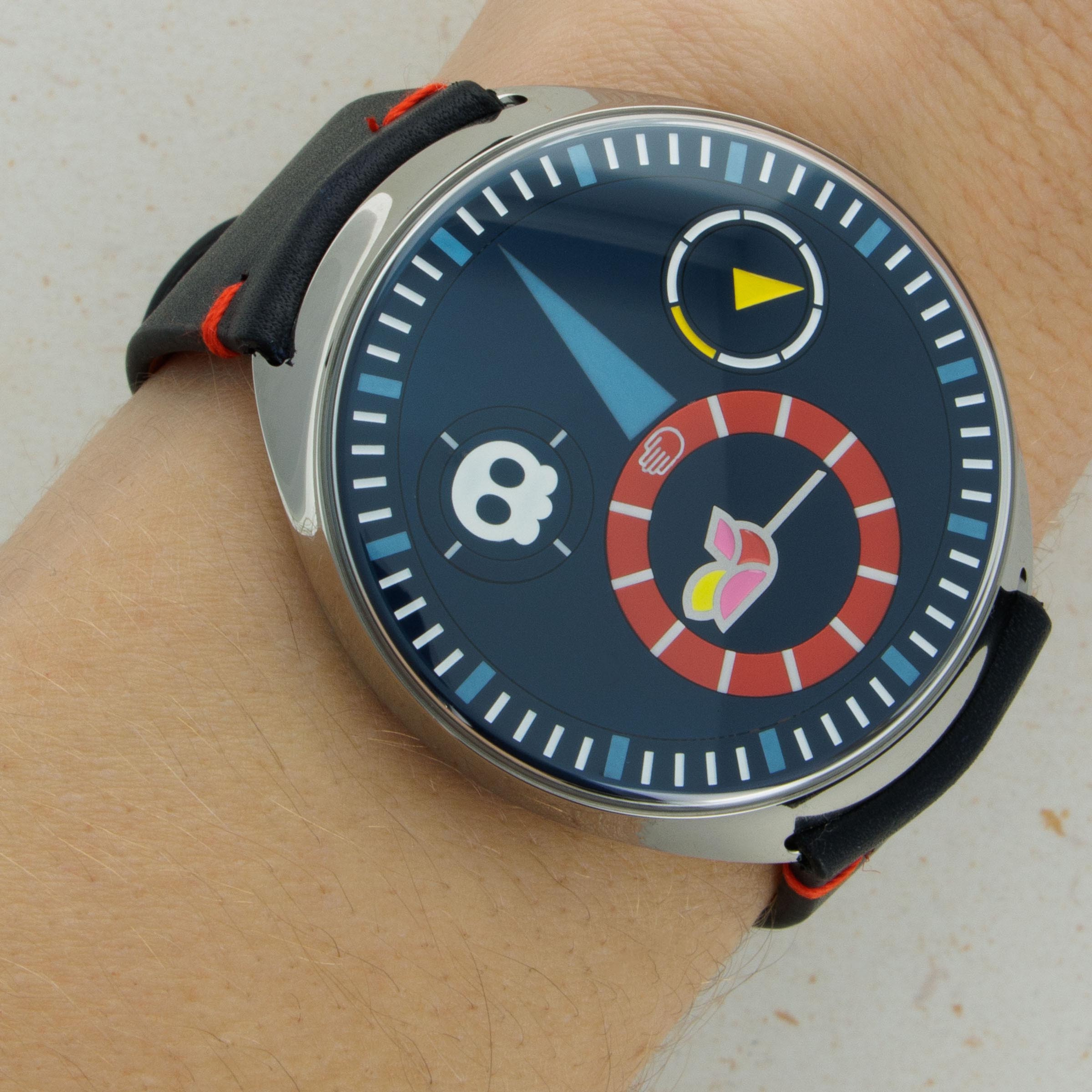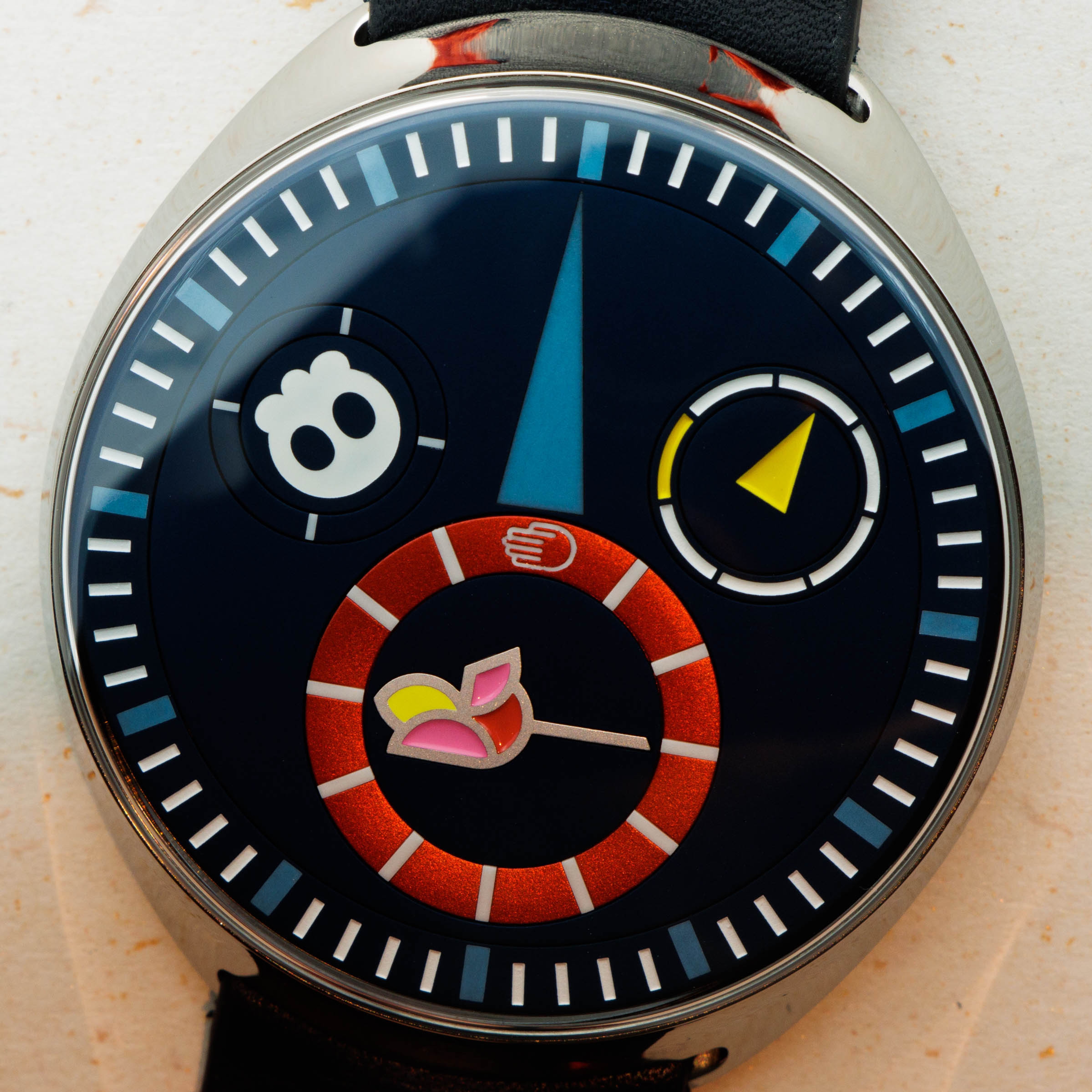 As is with most of Alain Silberstein's own timepieces and the watches he collaborates on, the Carpe Diem Type 1 boasts his quirky design language with plenty of color and unusual imagery.