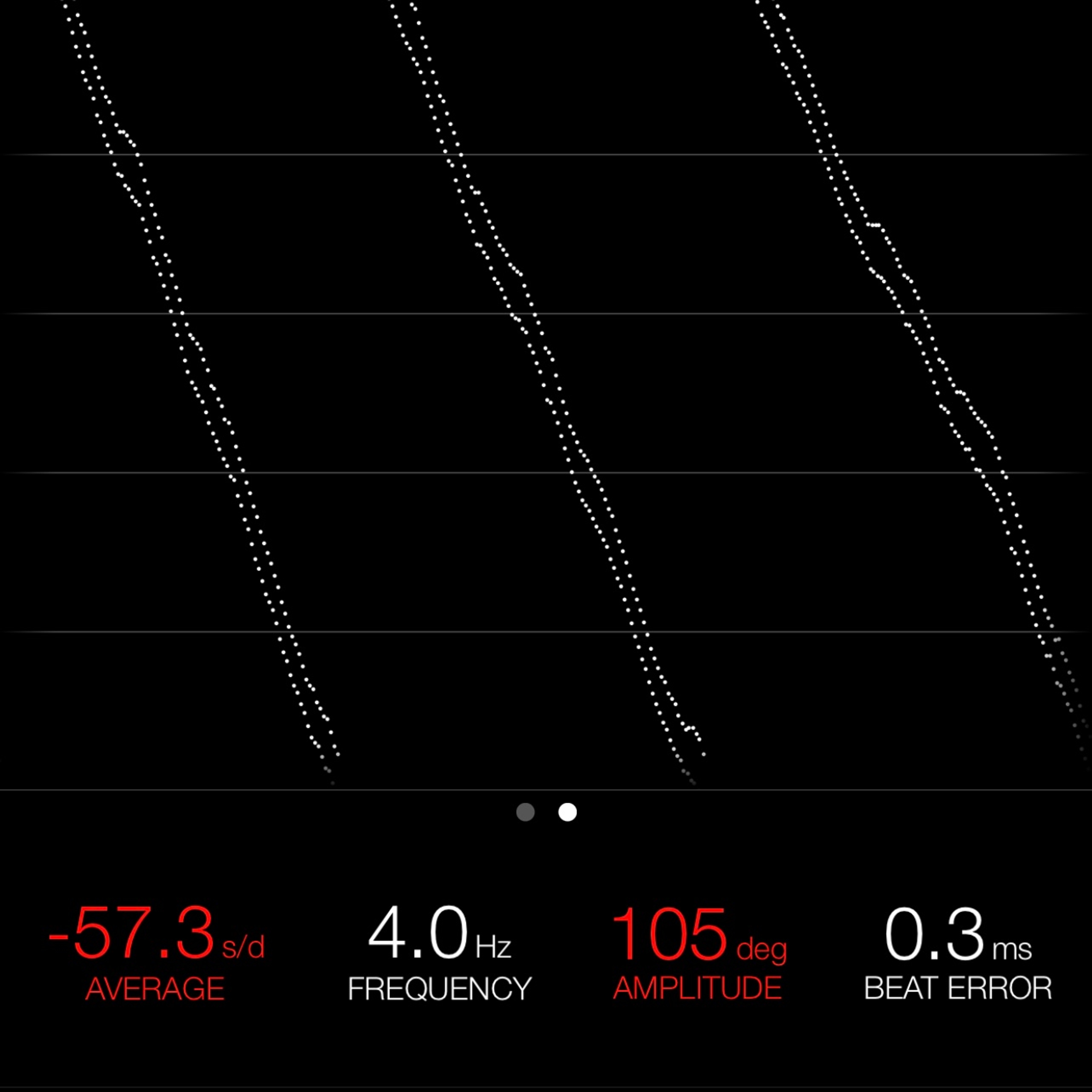 This reading was taken (crown down) with a ONEOF Accuracy Boutique Edition timing machine at time of cataloging. It is provided as a courtesy only, and shall not be construed as a warranty or guarantee of any kind. Please refer to our terms and conditions of sale for more information.