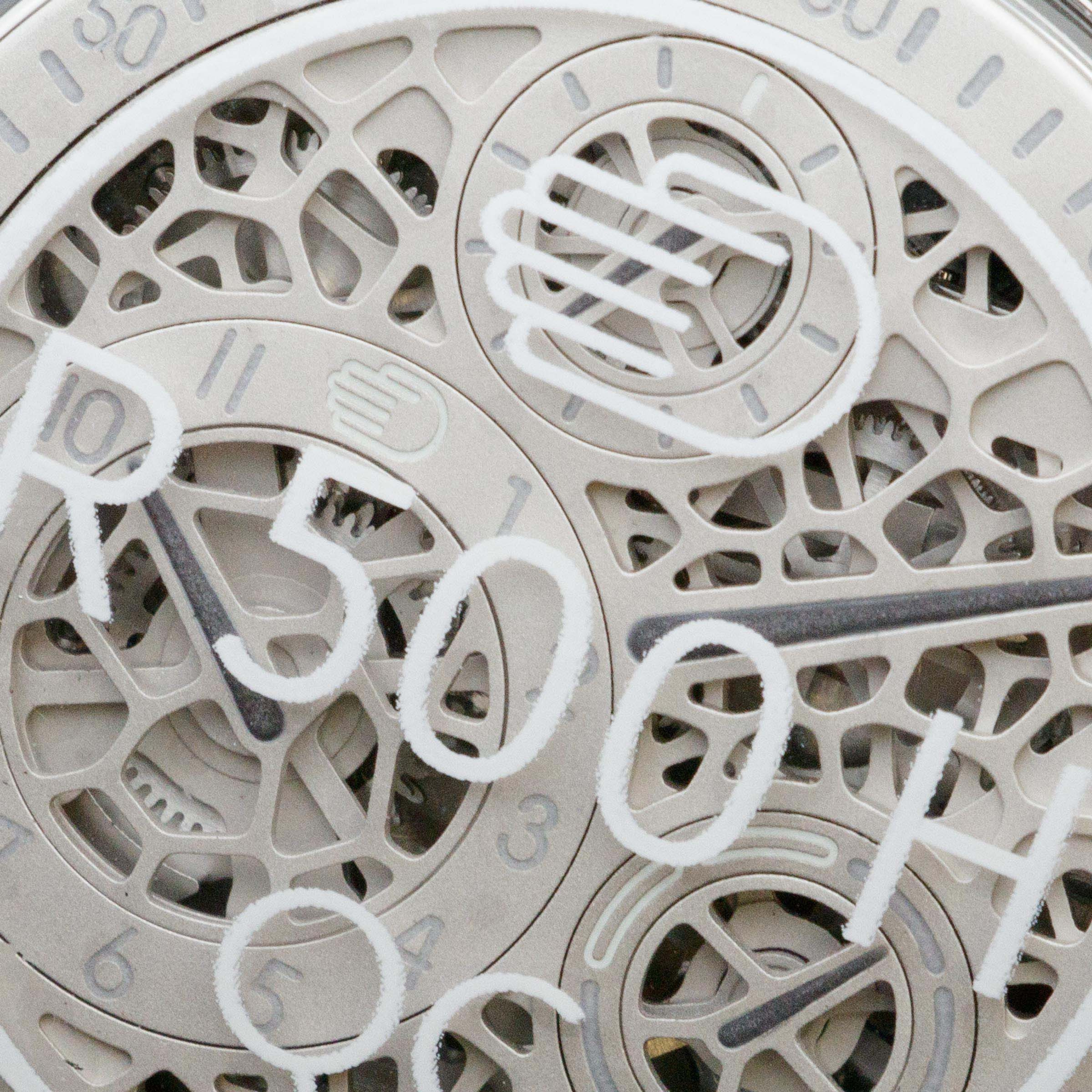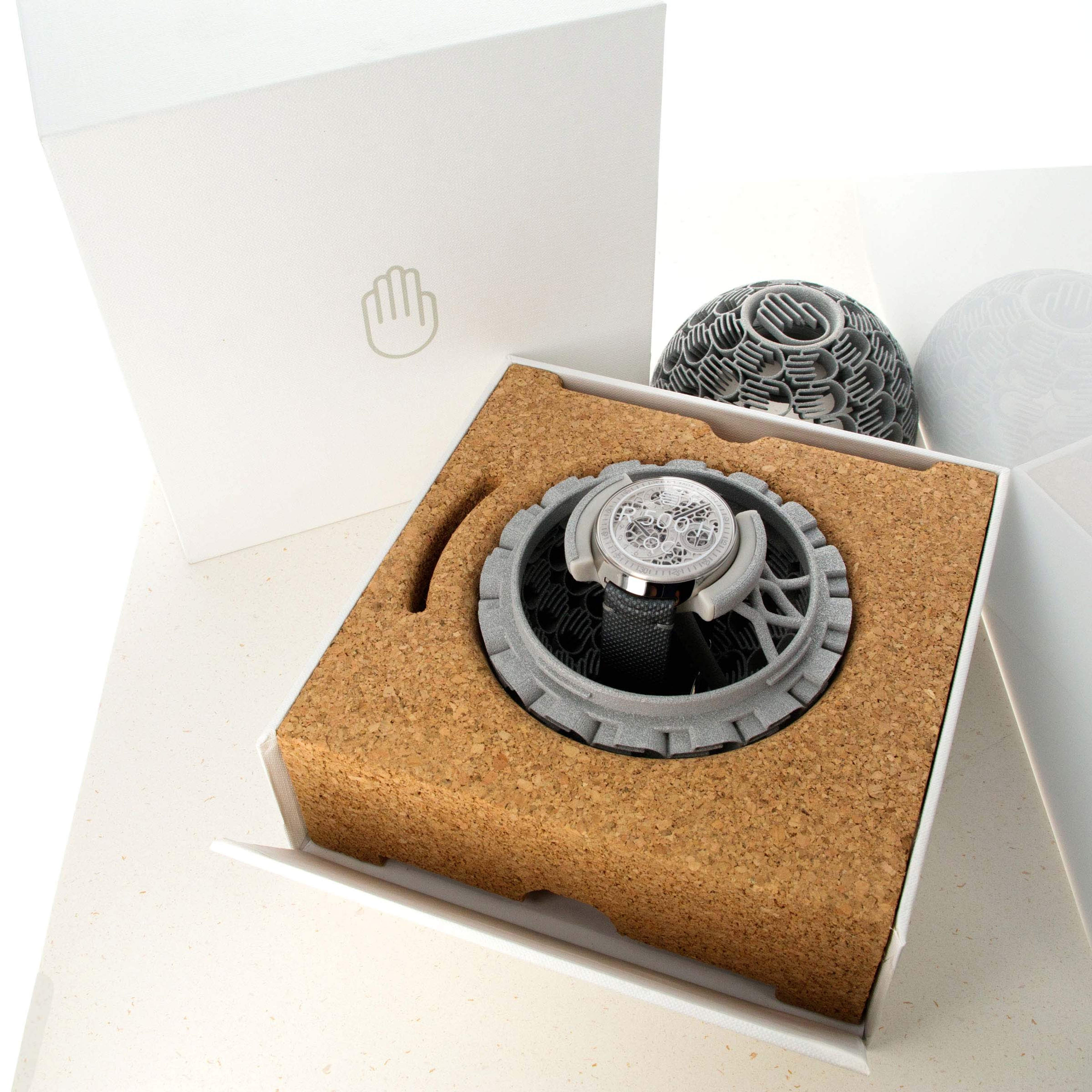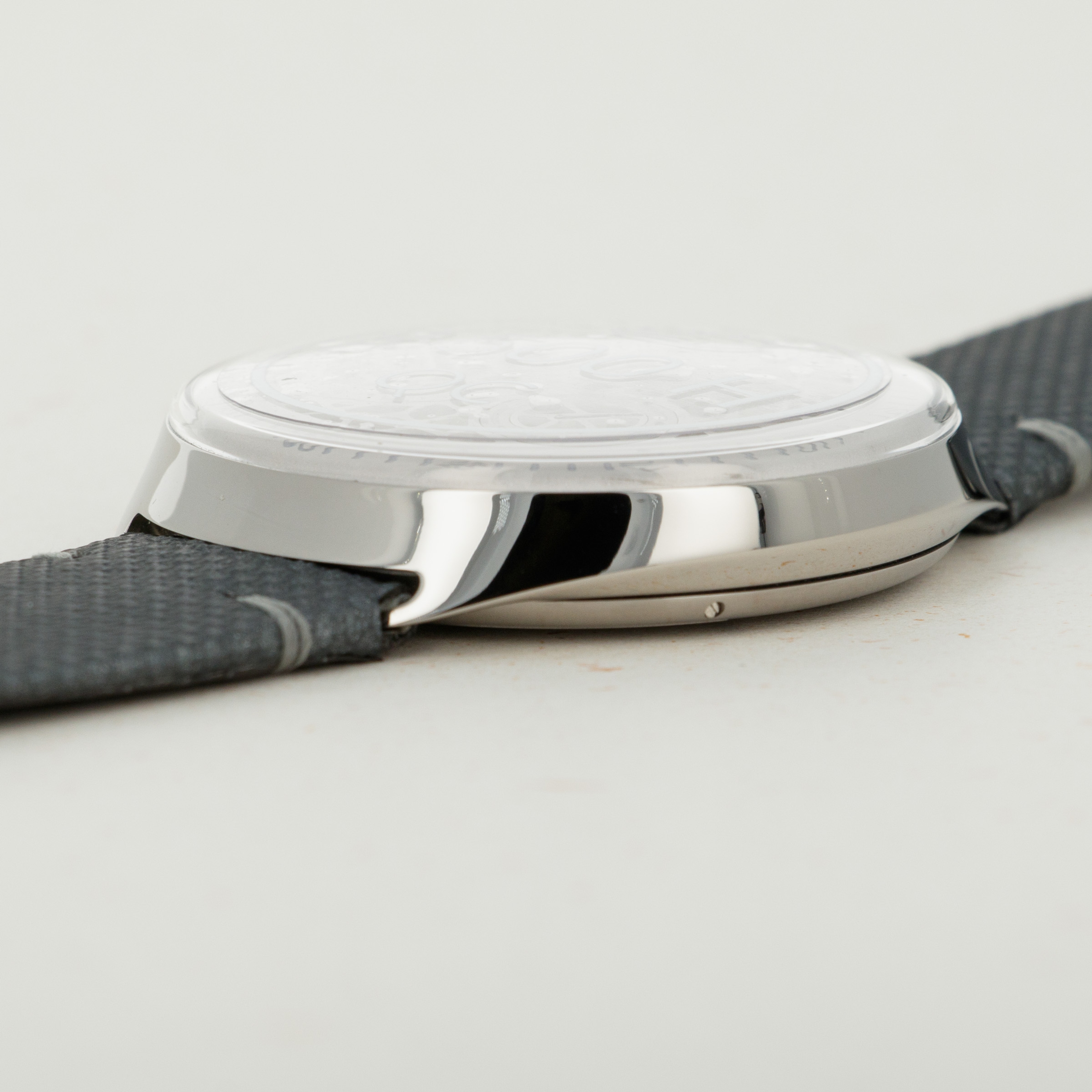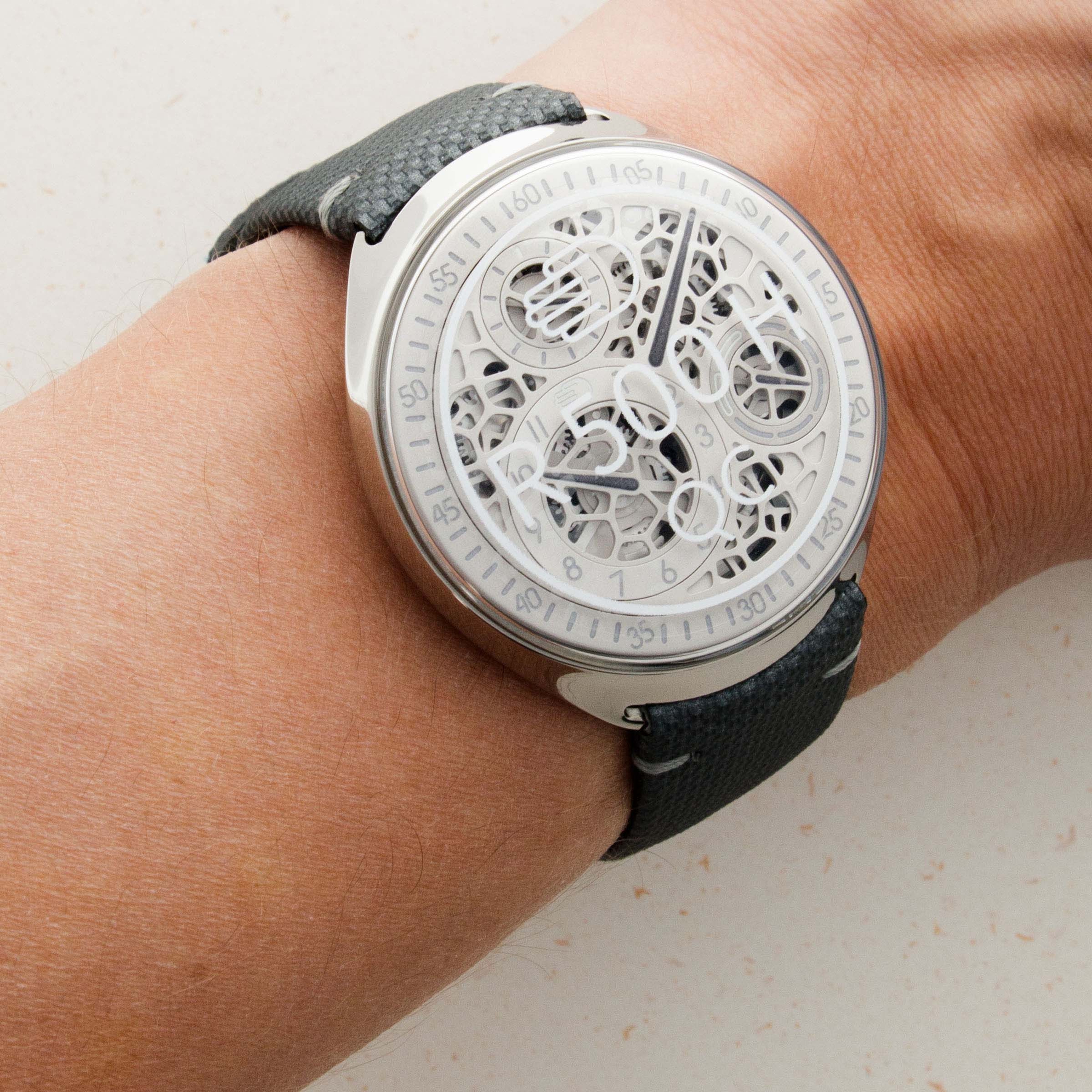 A collaboration between Ressence and the famed watch publication HODINKEE, the Ressence Type 1 Slim HOD is, as HODINKEE put it, "the most unadulterated take on a Ressence watch yet" as the two brands have worked to distill Ressence's signature design language and simultaneously remove any distracting design details. With its skeletonized dial, the timepiece highlights the movement beneath without compromising the unique display that has gone on to become one of Ressence's most important details in its aesthetic and mechanical execution. Offered in a monochromatic grey case and dial on a grey textile strap, the timepiece pays homage to HODINKEE's signature color while also playing to the timepiece's intention to refrain from being too loud. With only 20 pieces produced, this is an incredibly limited and rare timepiece that has the looks to back up its unique aesthetic and intriguing mechanics.