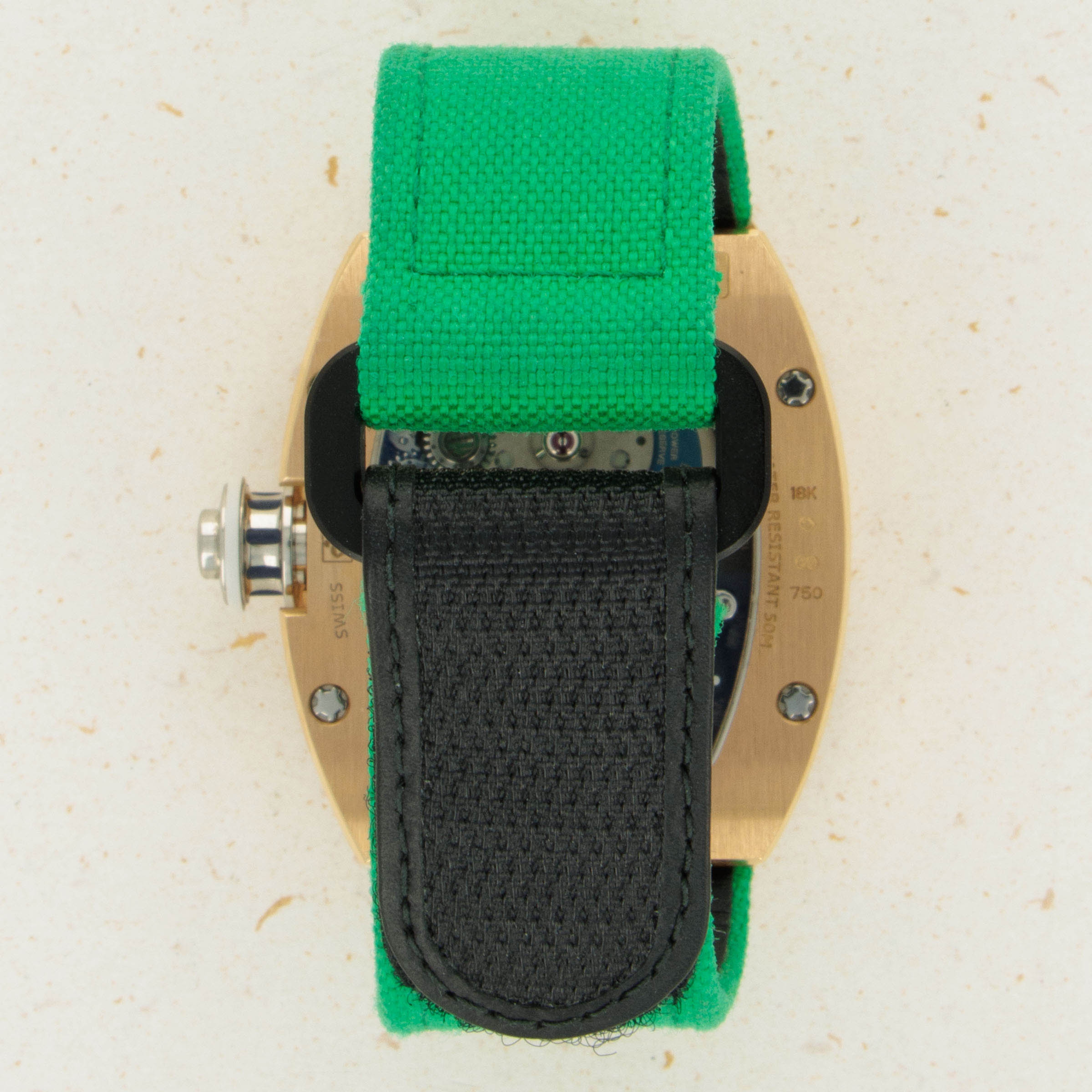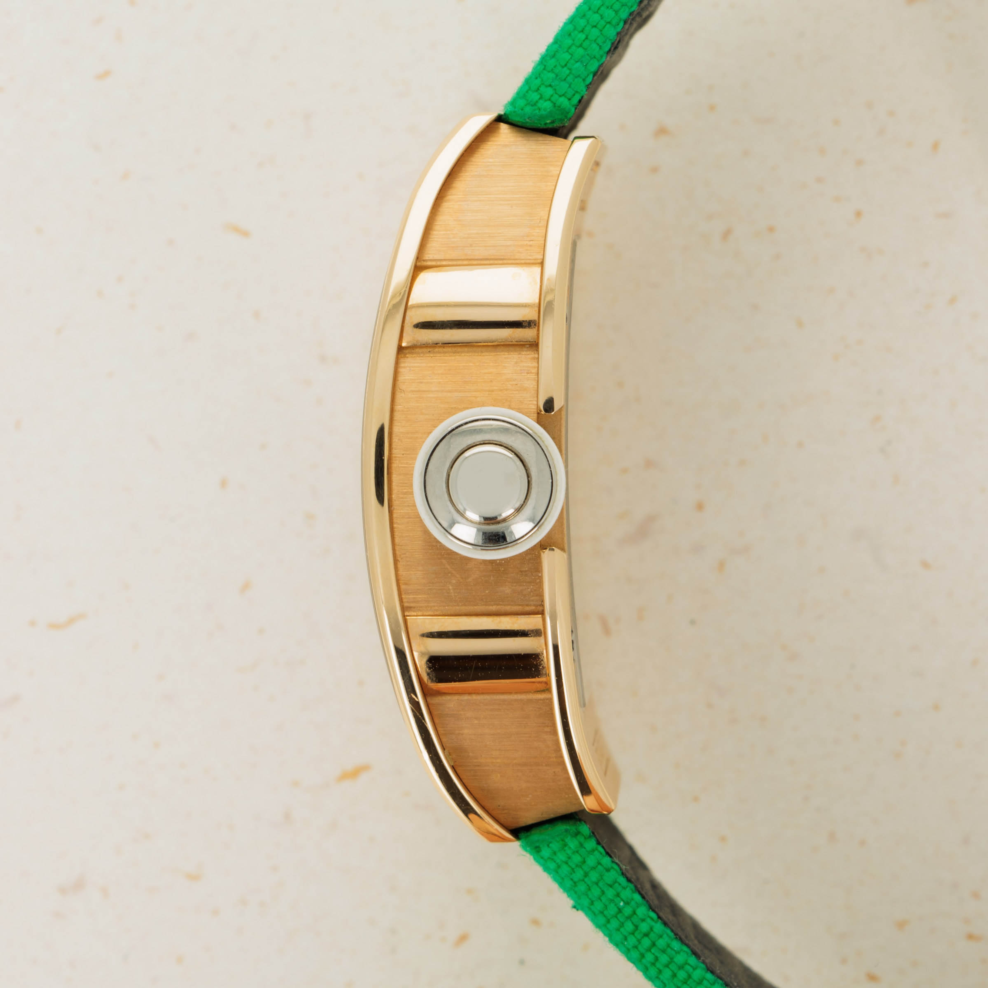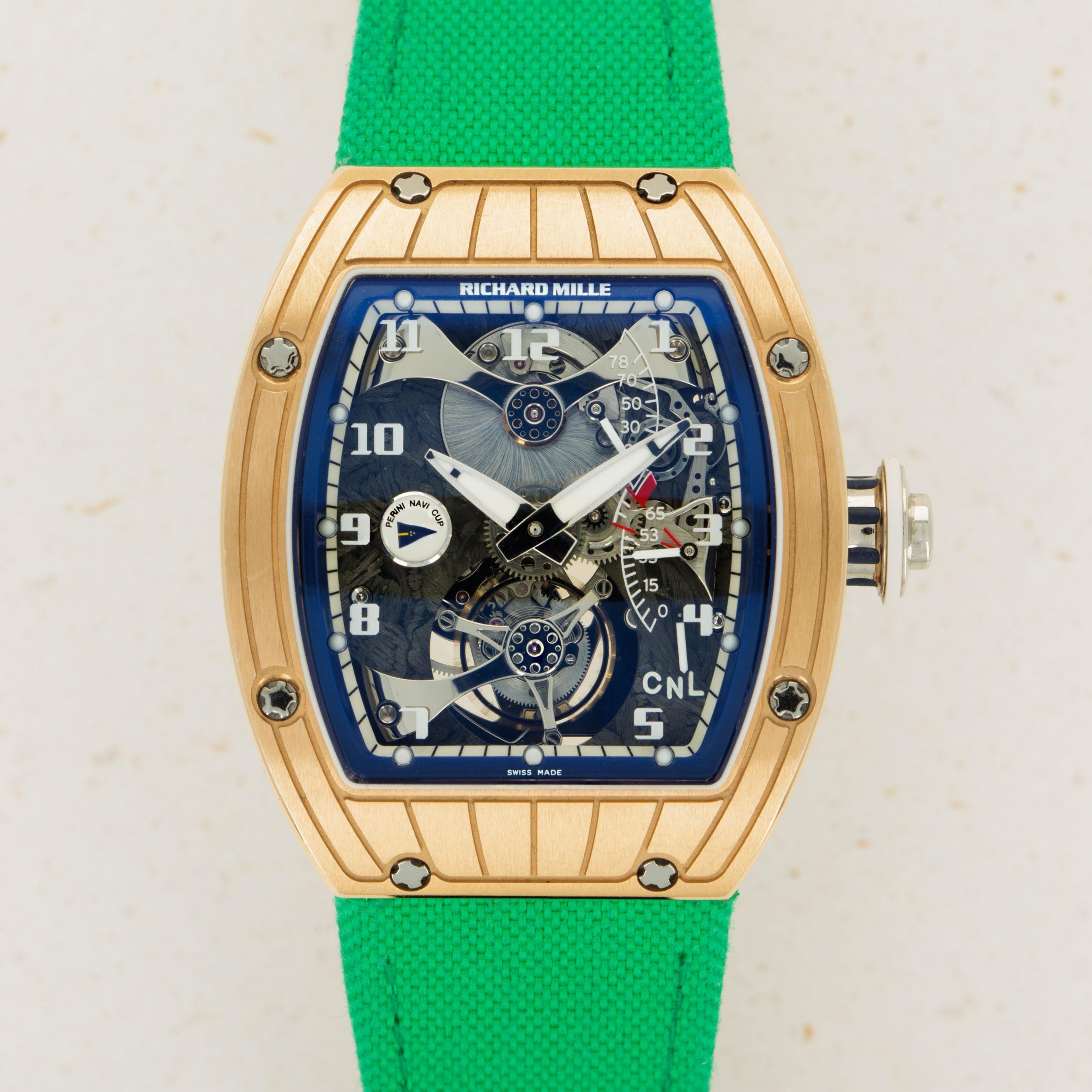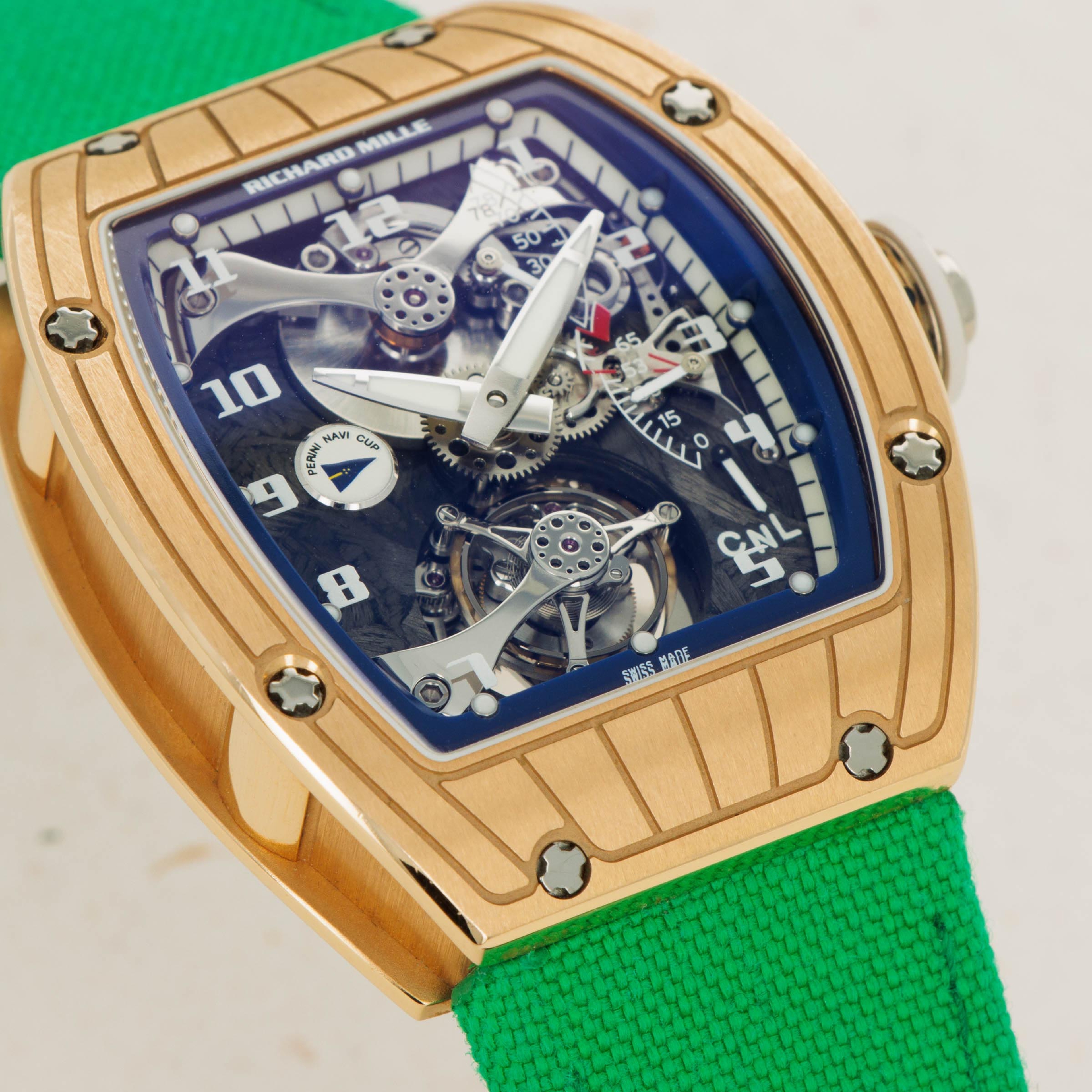 Featuring Richard Mille's signature tonneau-shaped construction with a ribbed design engraved across its 18kt rose gold bezel; the RM014 boasts the brand's emblematic wrist presence that has allowed the watchmaker to become instantly recognizable on the wrist of its collectors.
